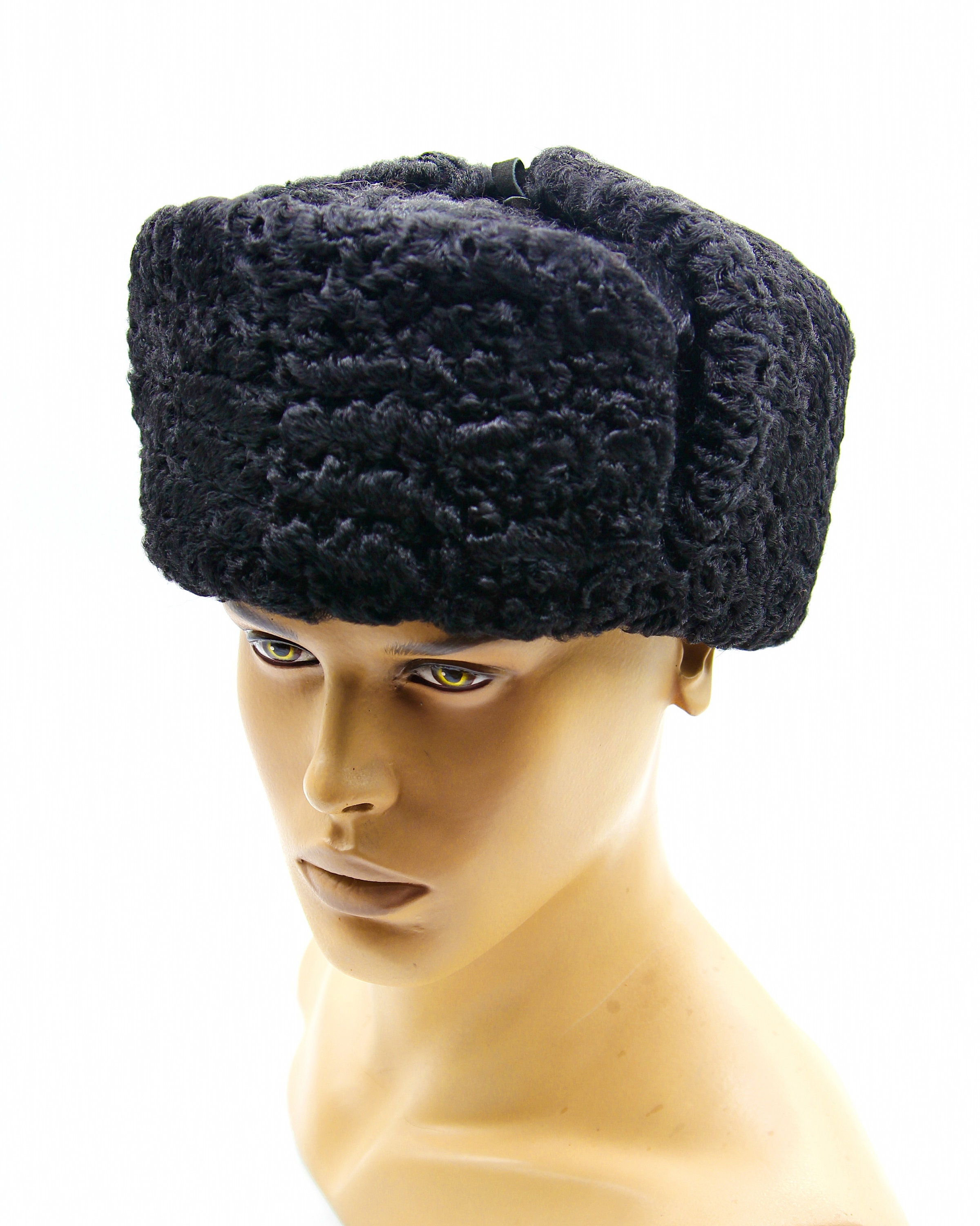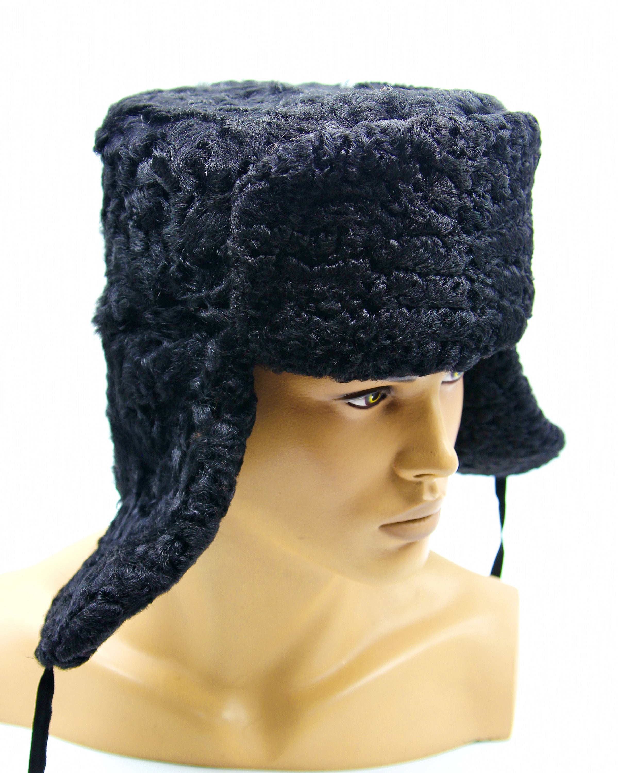 Black Astrakhan Fur Hat - Men's Winter Ushanka with Quilted Lining