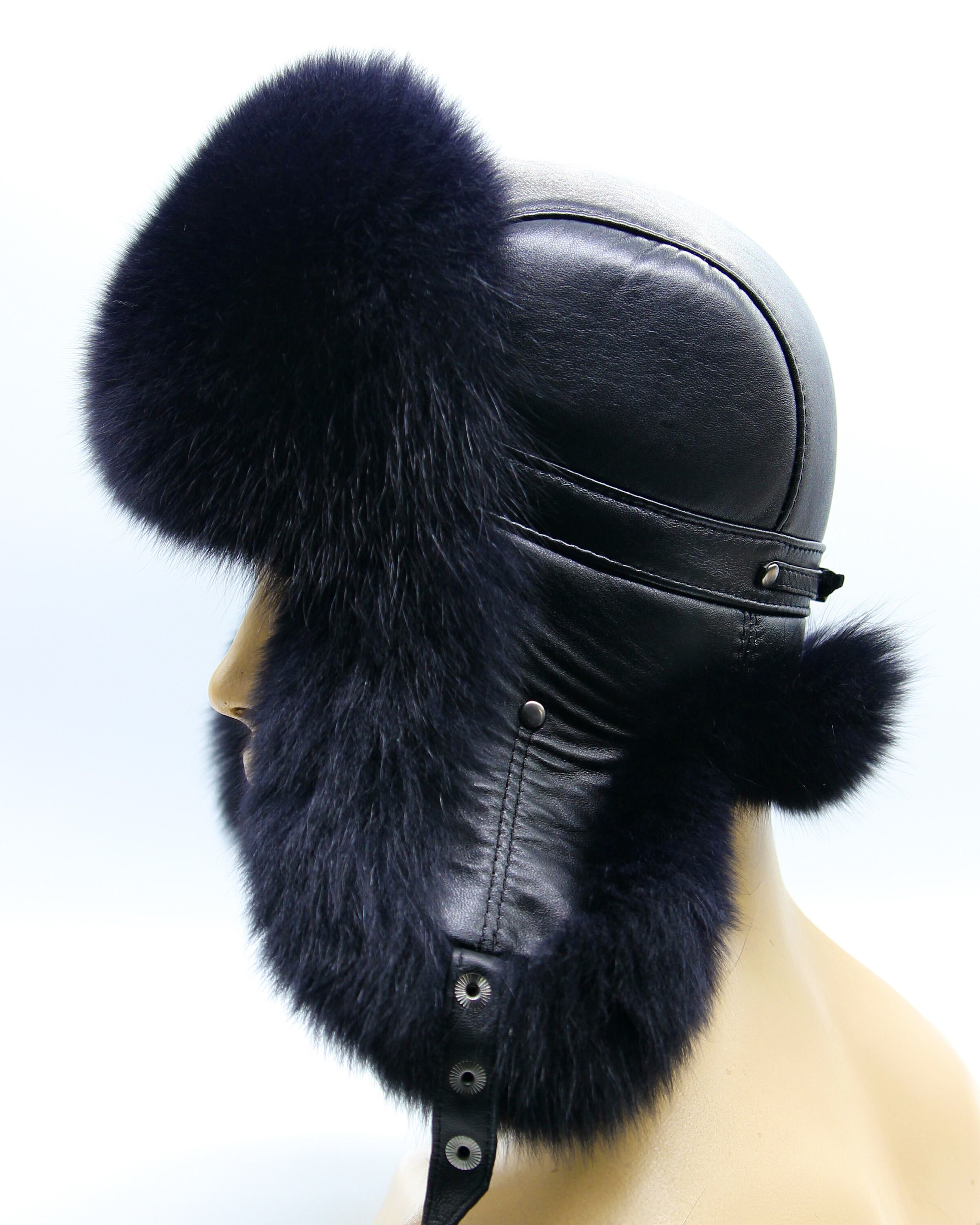 This black fur ushanka came about when my regular customer from Thunder Bay brought his grandfather's 1960s hat asking for exact replica. "Make it like they used to," he kept saying. Took me three attempts getting the fur volume right because modern techniques produce thinner results.