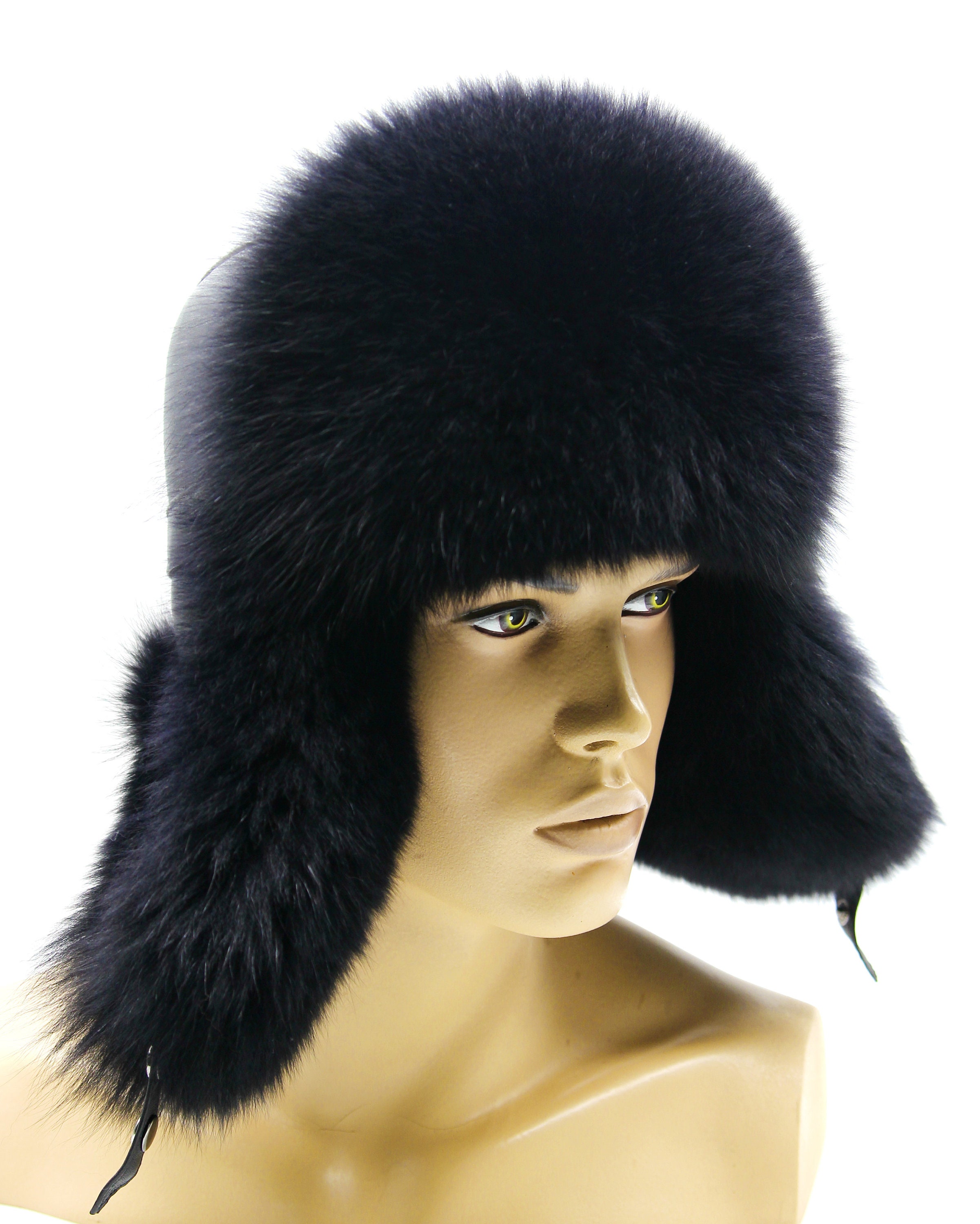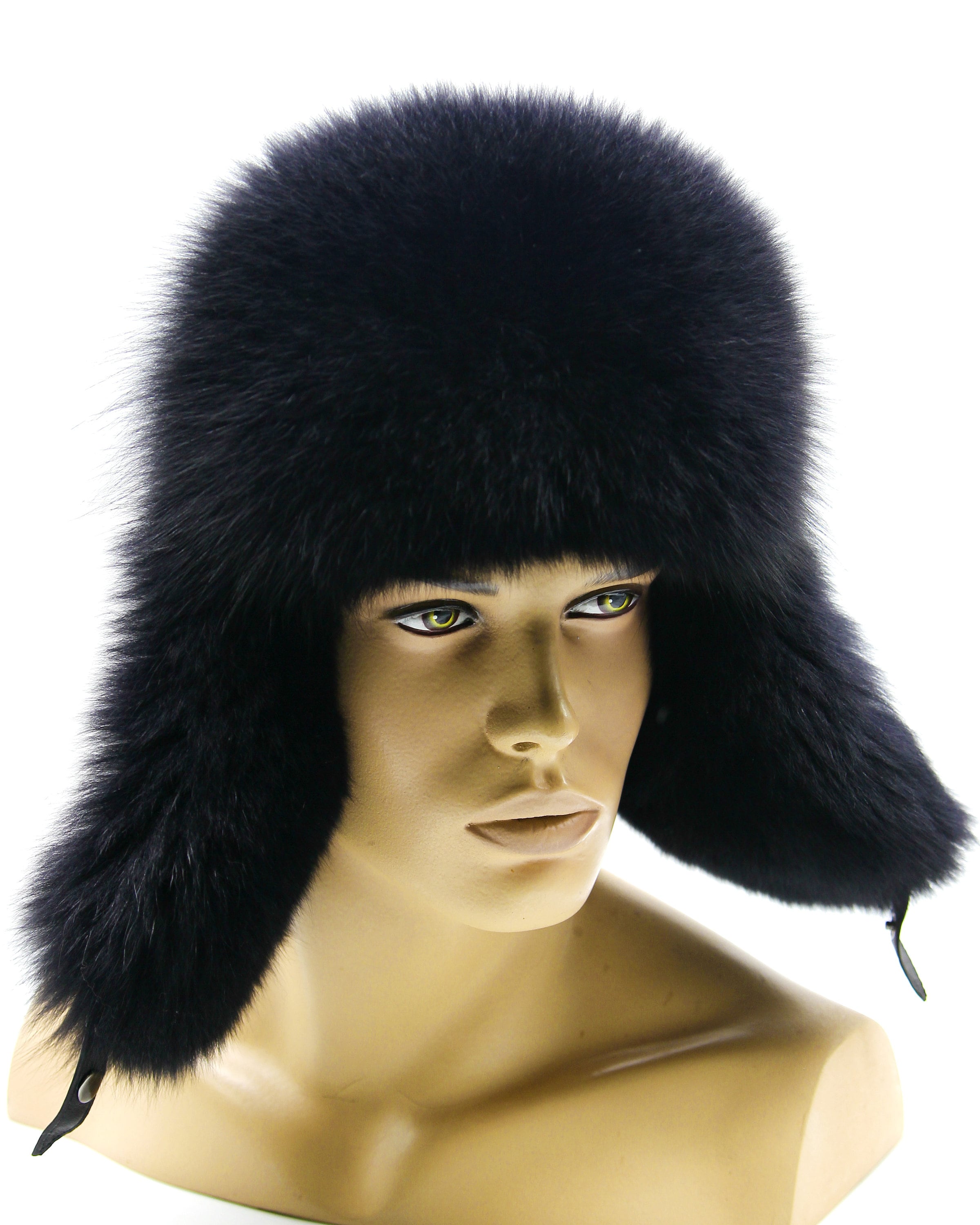 Black Fur Ushanka Classic - Traditional Long Fluffy Winter Hat for Men