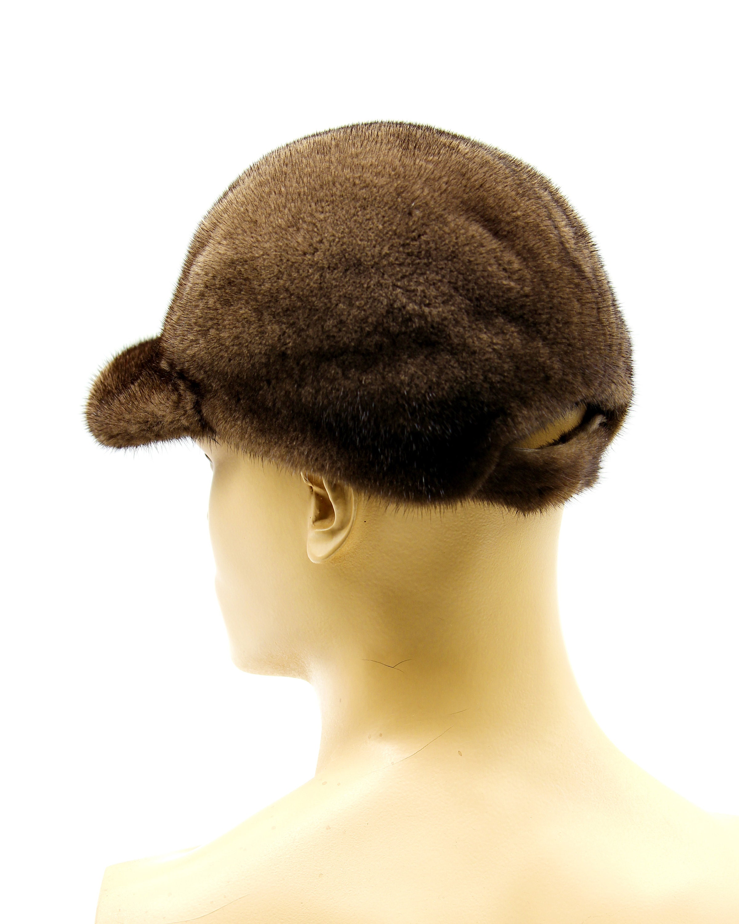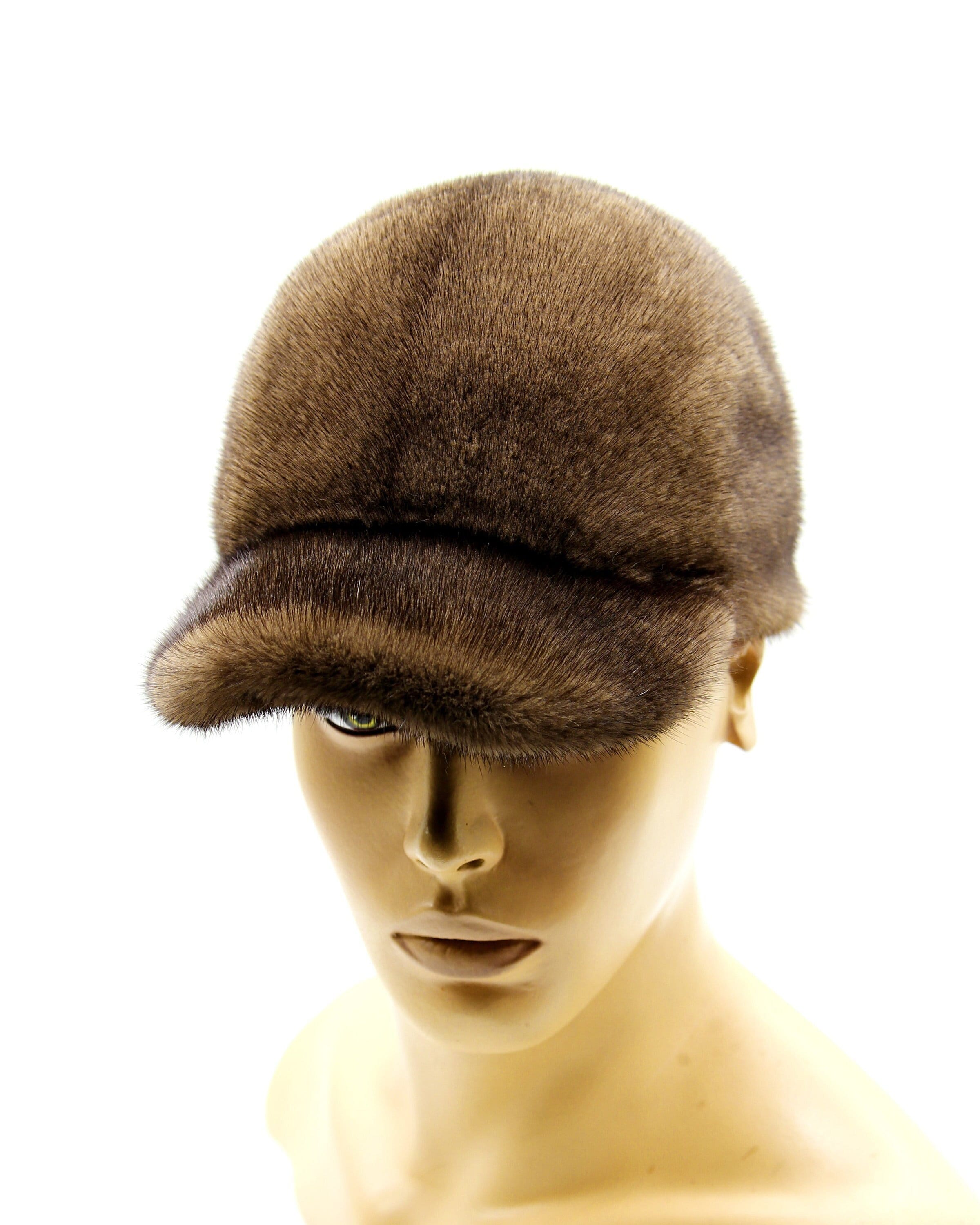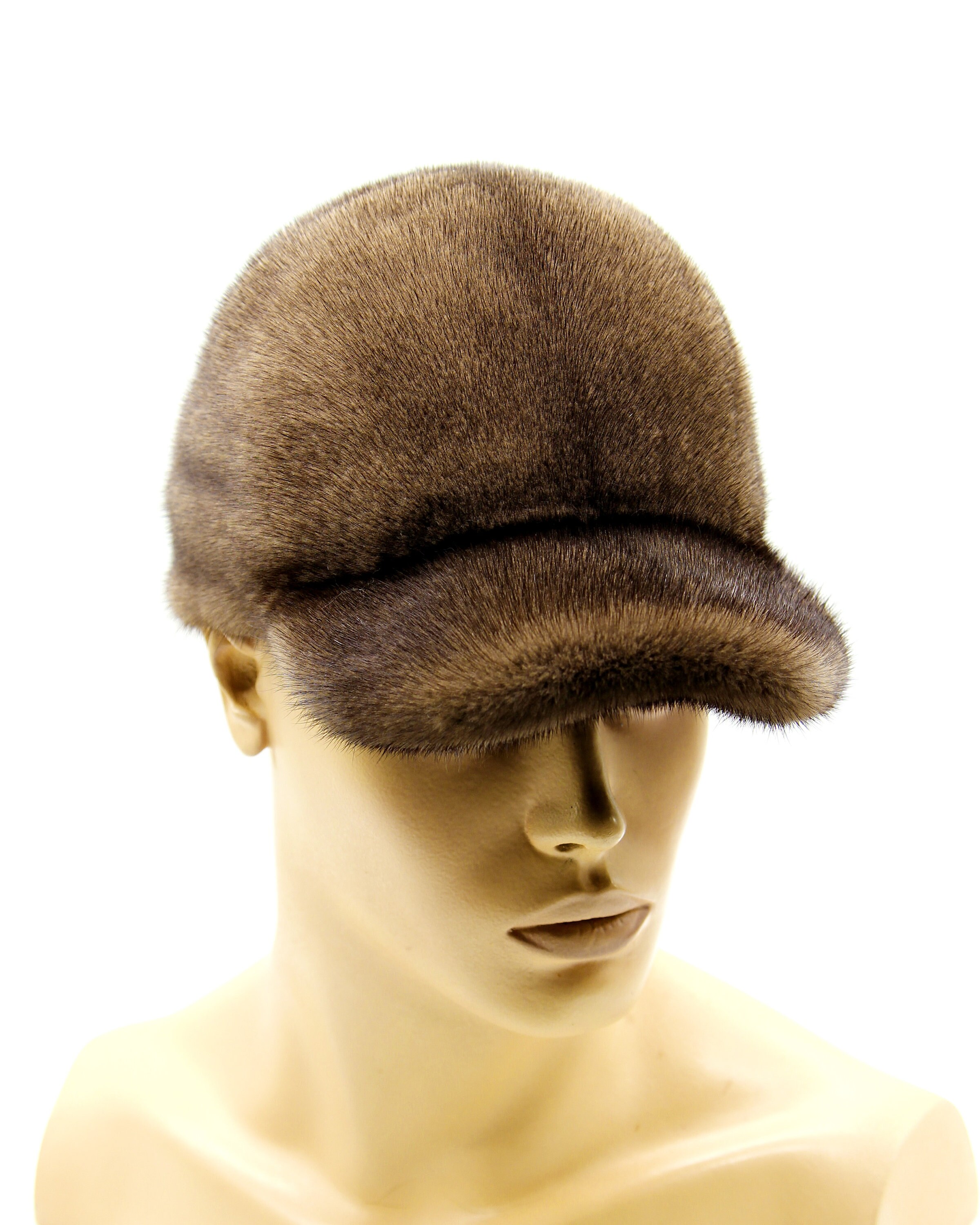 Premium Brown Pastel Mink Fur Baseball Cap - Soft Luxury Men's Winter Headwear