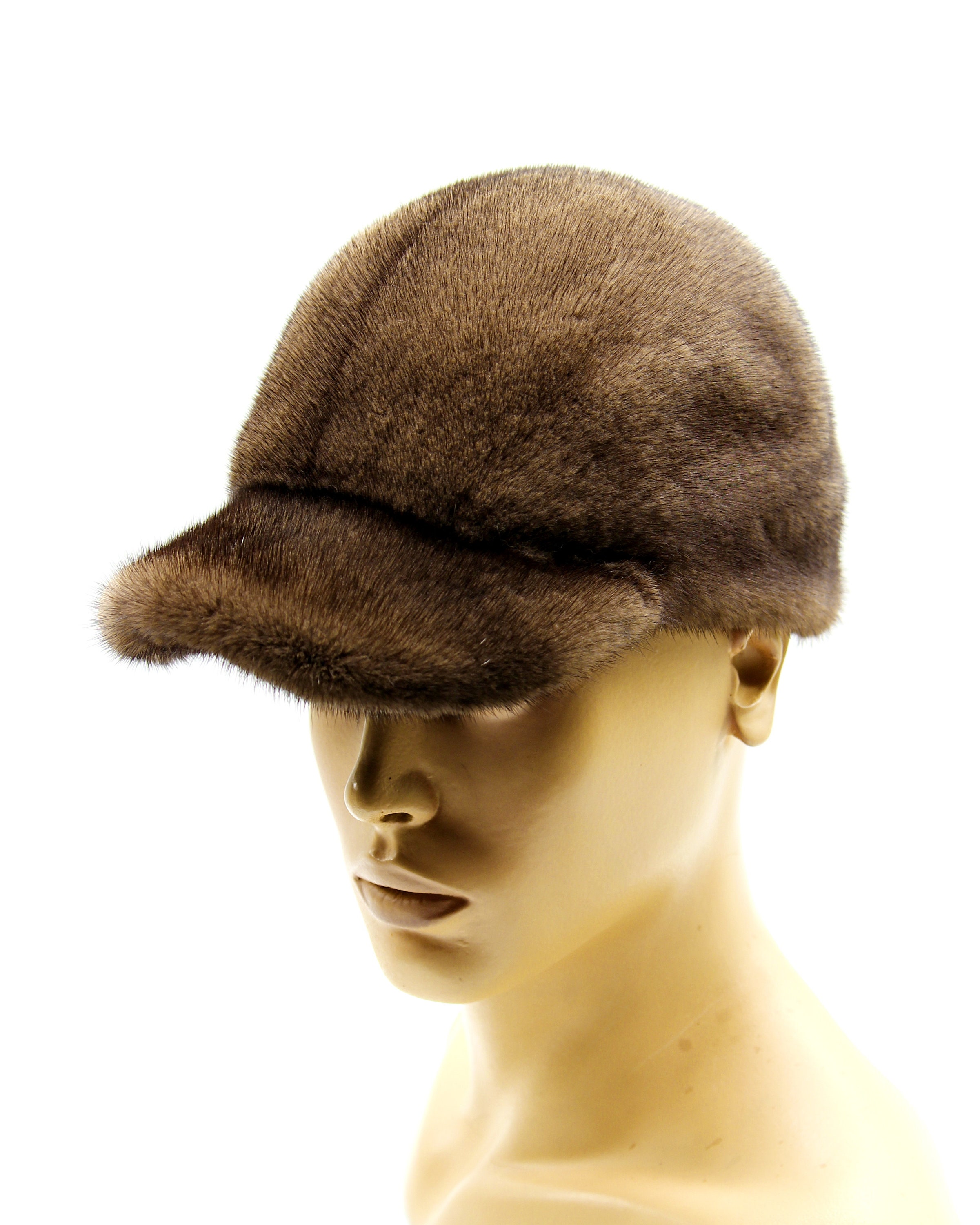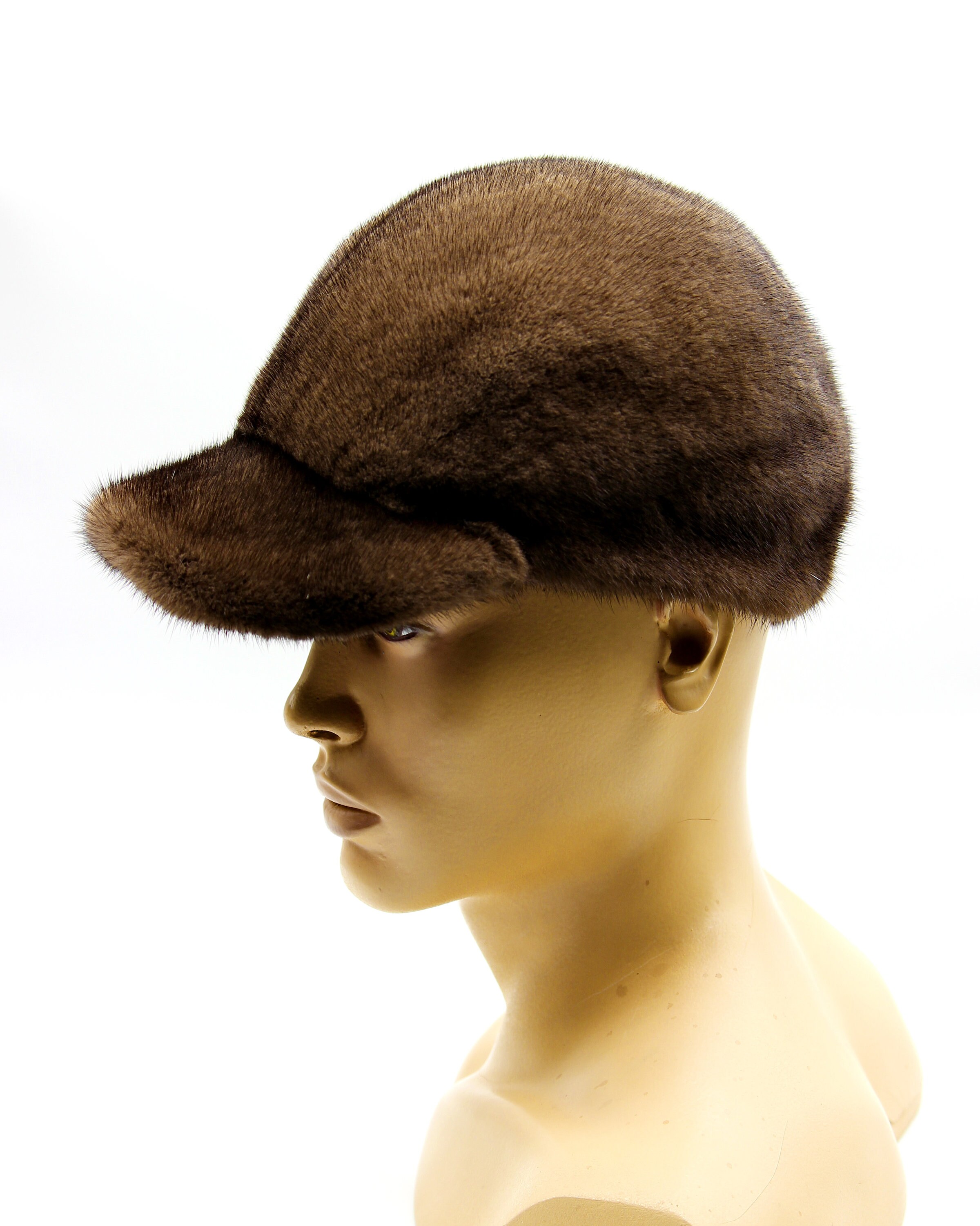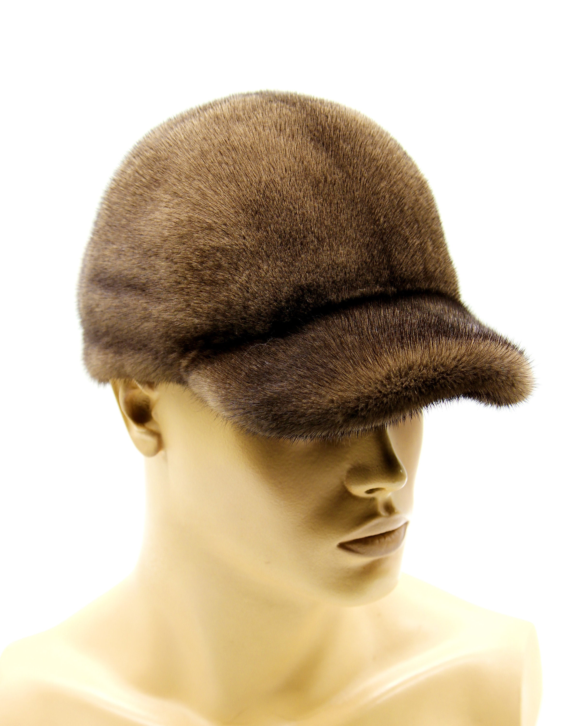 Premium Brown Pastel Mink Fur Baseball Cap - Soft Luxury Men's Winter Headwear