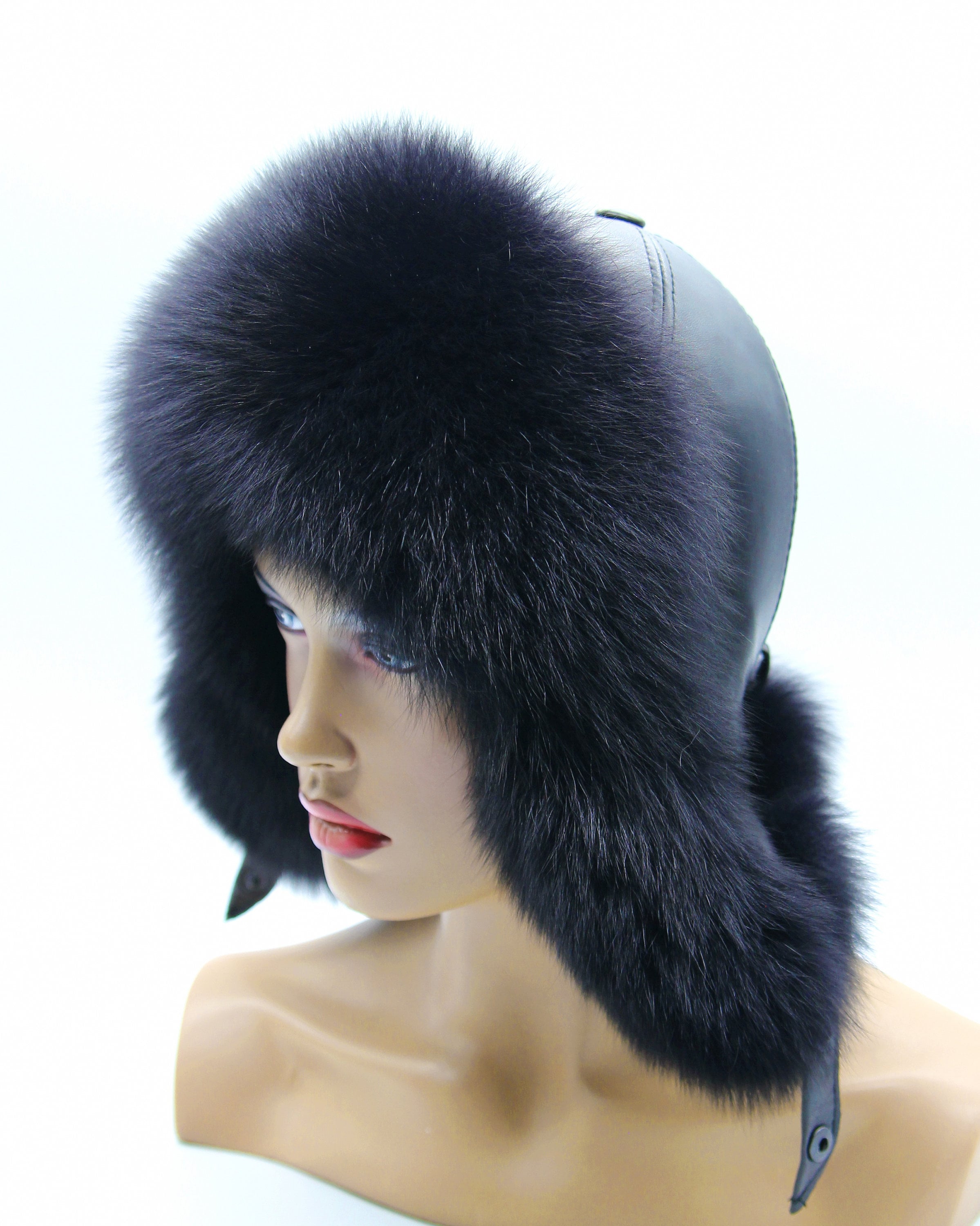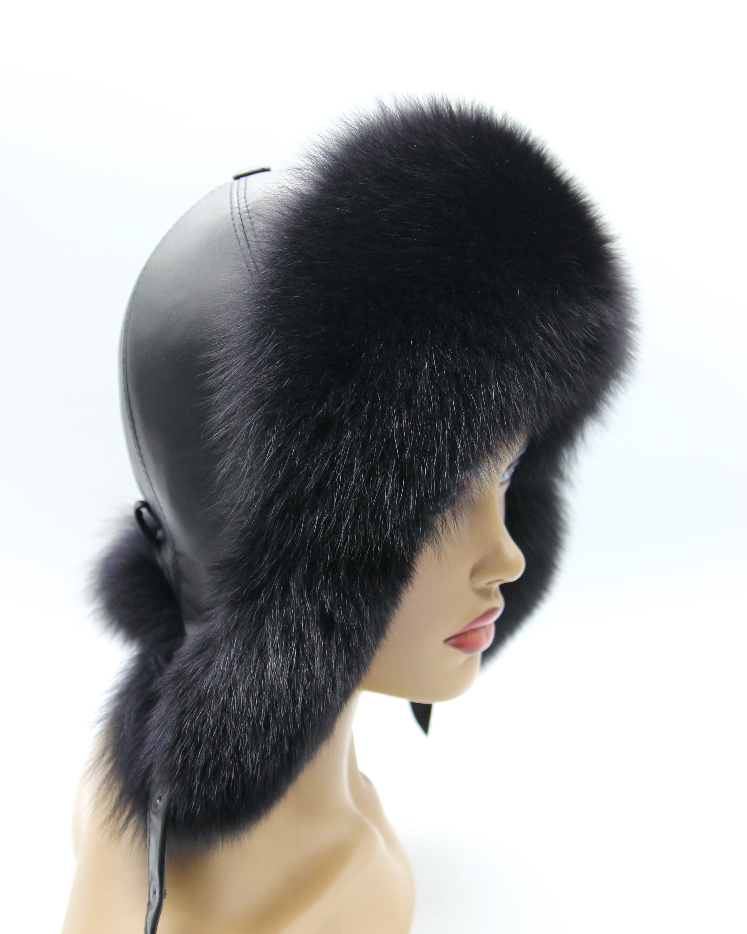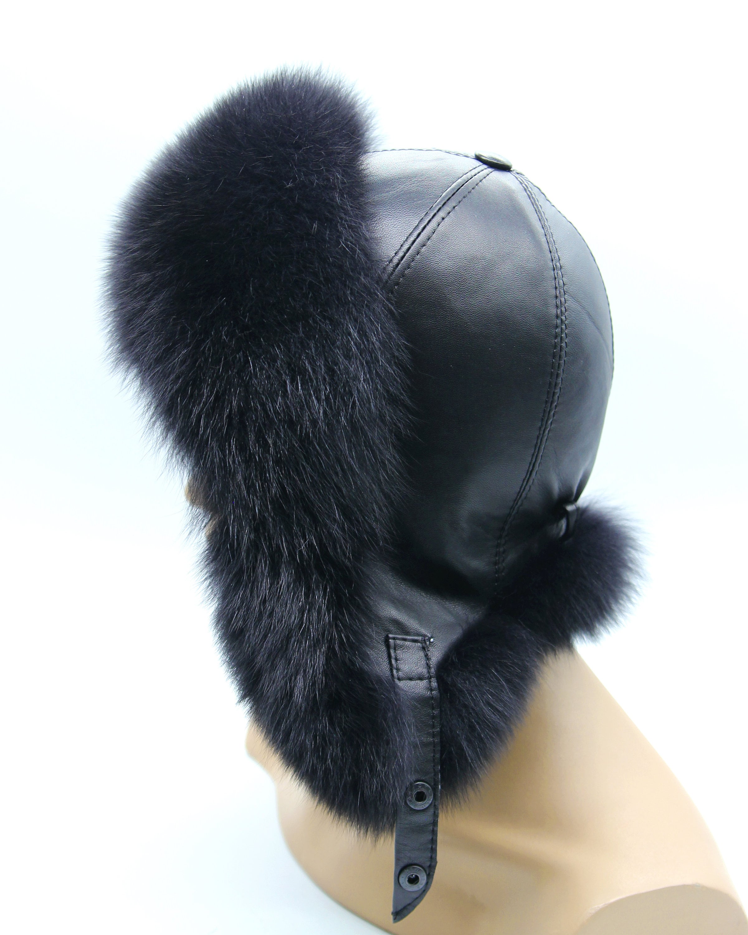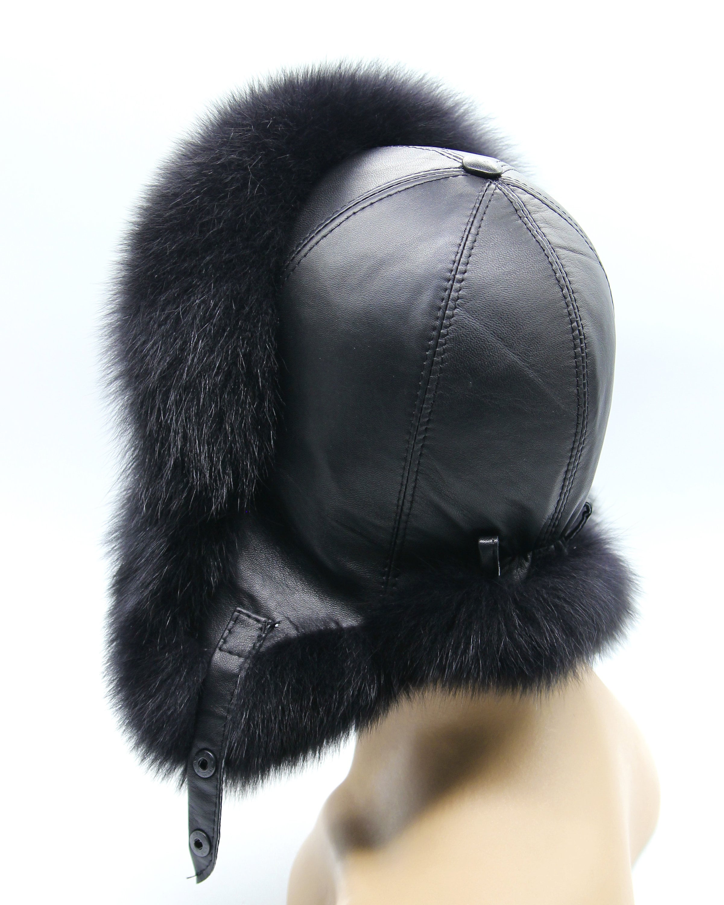 Black leather ushanka with fox fur trim. Urban twist on traditional Russian design mixing sleek black leather with genuine black fox creating contemporary look that actually works in cold.Black leather forms main body and crown structure. Black fox fur trims all edges and covers entire earflaps inside and out. When earflaps hang or you tie them different ways, that real fox frames your face keeping ears protected from cold.Design OriginsStarted developing this black leather-fox combo about five years back. Customer wanted traditional ushanka warmth but regular all-fur felt too bulky commuting around city daily. Black leather body with fox trim solved her requirements – streamlined enough for urban professional settings, warm enough handling actual winter conditions, distinctive enough creating impression without being loud.Black leather shows smooth finish blocking wind and light precipitation effectively. Maintains structured shape without becoming stiff. More durable for everyday wear than fabric alternatives while offering sleek contemporary aesthetic traditional all-fur ushanka lacks.Black fox fur covers strategic warmth areas. Natural black coloring creates bold unified appearance. Real fox insulates critical zones where most body heat escapes – surrounding face, covering ears completely, protecting neck when tied.Construction DetailsTakes approximately 8 hours crafting each piece by hand. Black fox requires careful matching because even black varies between individual pelts – some showing warmer undertones, others cooler shades. Leather work demands precise cutting maintaining clean transitions where material meets fur.Adjustable interior sizing accommodates different head dimensions. Hidden band allows customization ensuring secure fit without creating pressure points. Leather ties with metal clasps on earflap tips enable multiple wearing configurations – tie under chin for maximum warmth, behind head for moderate temperatures, leave down for traditional full coverage.Temperature PerformanceFunctions effectively -25°C to +5°C based on testing across cold climates. Black leather blocks wind exceptionally well while black fox fur insulates strategic areas where heat loss occurs rapidly. Natural materials breathe properly preventing overheating during moderate temperature days or active movement.Target UsersDaily commuter from New York wears on subway every morning. Black leather with fox looks polished enough for office environment, provides genuine warmth, easy to pack in bag without damaging structure or appearance.Photographer from Boston uses during winter street photography sessions. Leather handles snow and sleet far better than fabric alternatives, fox fur keeps face warm during extended outdoor shoots, appearance stays distinctively stylish without crossing into costume territory.Business traveler from Chicago selected for winter client visits around city. Professional enough wearing into meetings, warm enough for outdoor walking between downtown buildings, distinctive without appearing unusual or unprofessional.Student from Montreal saved specifically for this design combination. Looks more mature and polished than knit beanie alternatives, genuine fox fur makes substantial difference maintaining warmth, black color coordinates with entire existing wardrobe.Maintenance RequirementsProfessional leather and fur cleaning when needed based on wear frequency. Black leather wipes clean easily with damp cloth for minor marks or dirt accumulation. Fox fur shake gently after wearing removing any snow or moisture naturally. Store hanging or laying flat in cool dry location. Avoid folding leather sharply which creates permanent creases damaging overall appearance.Technical SpecificationsMaterials: Black leather body with real black fox fur trim