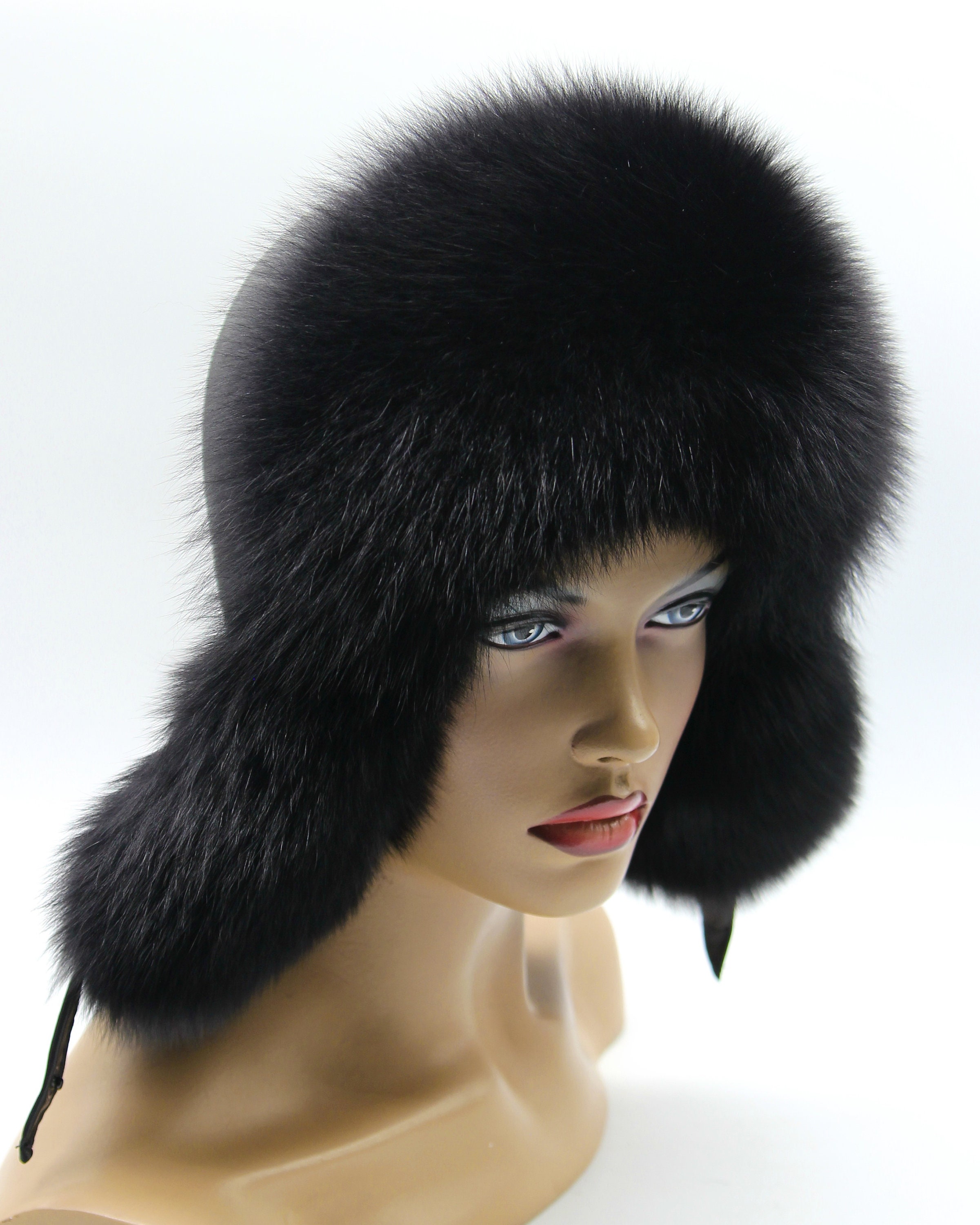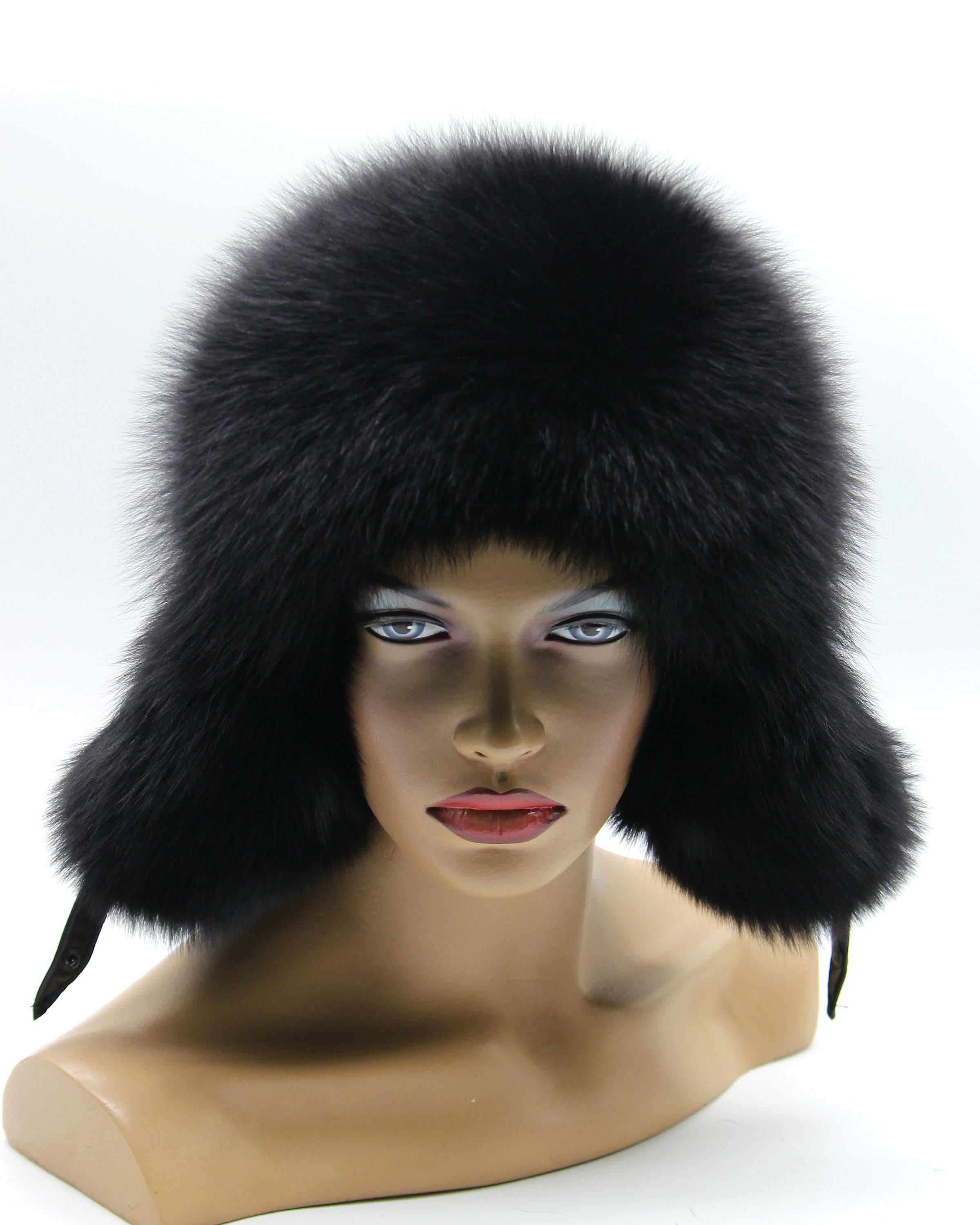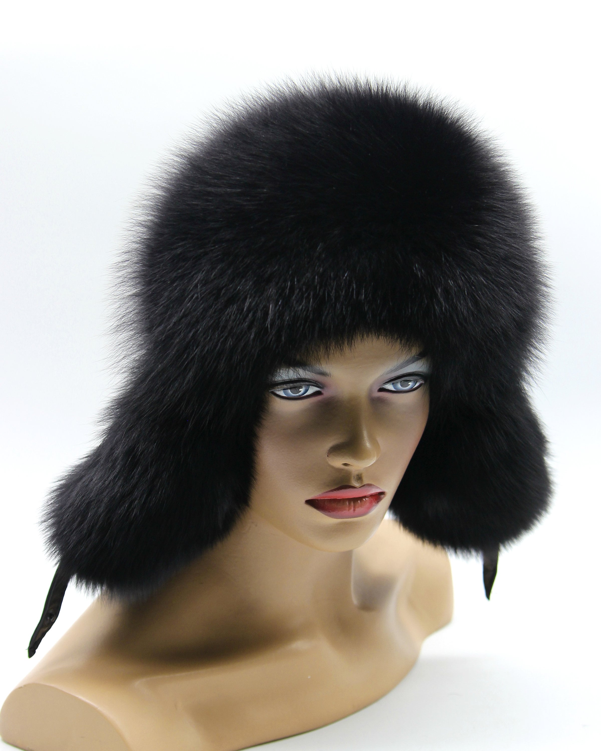 Edge trim and earflaps: Black fox fur (inside and outside)