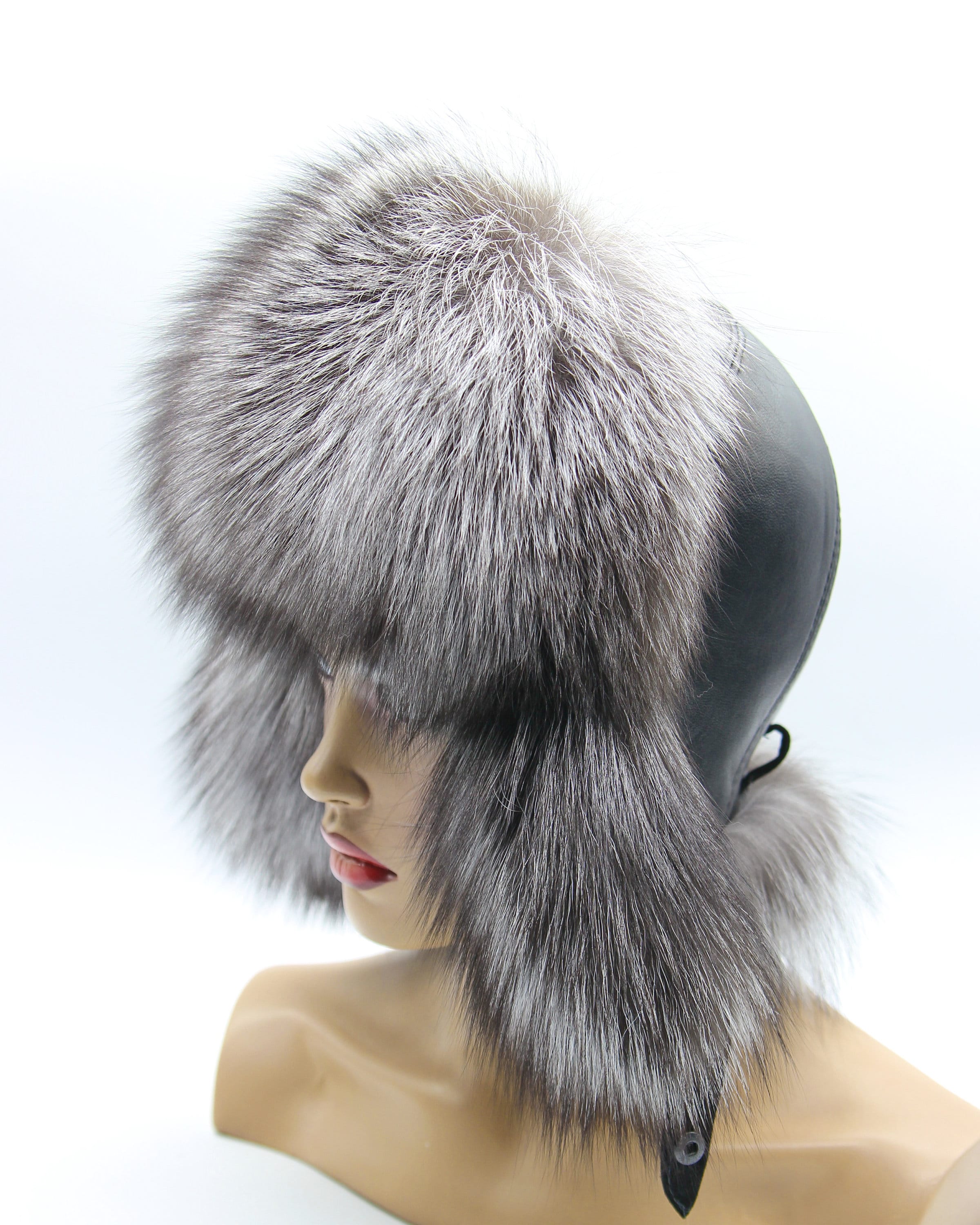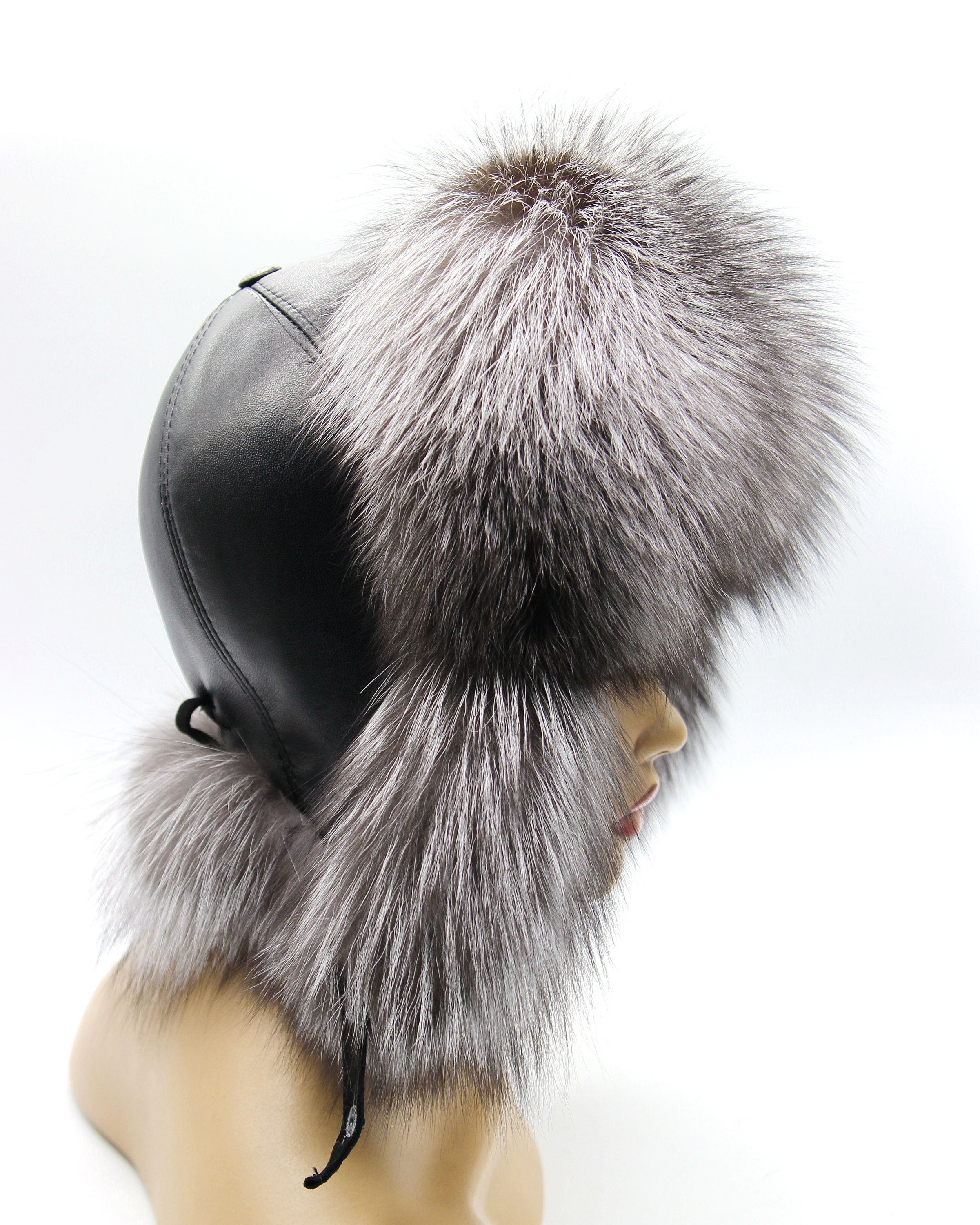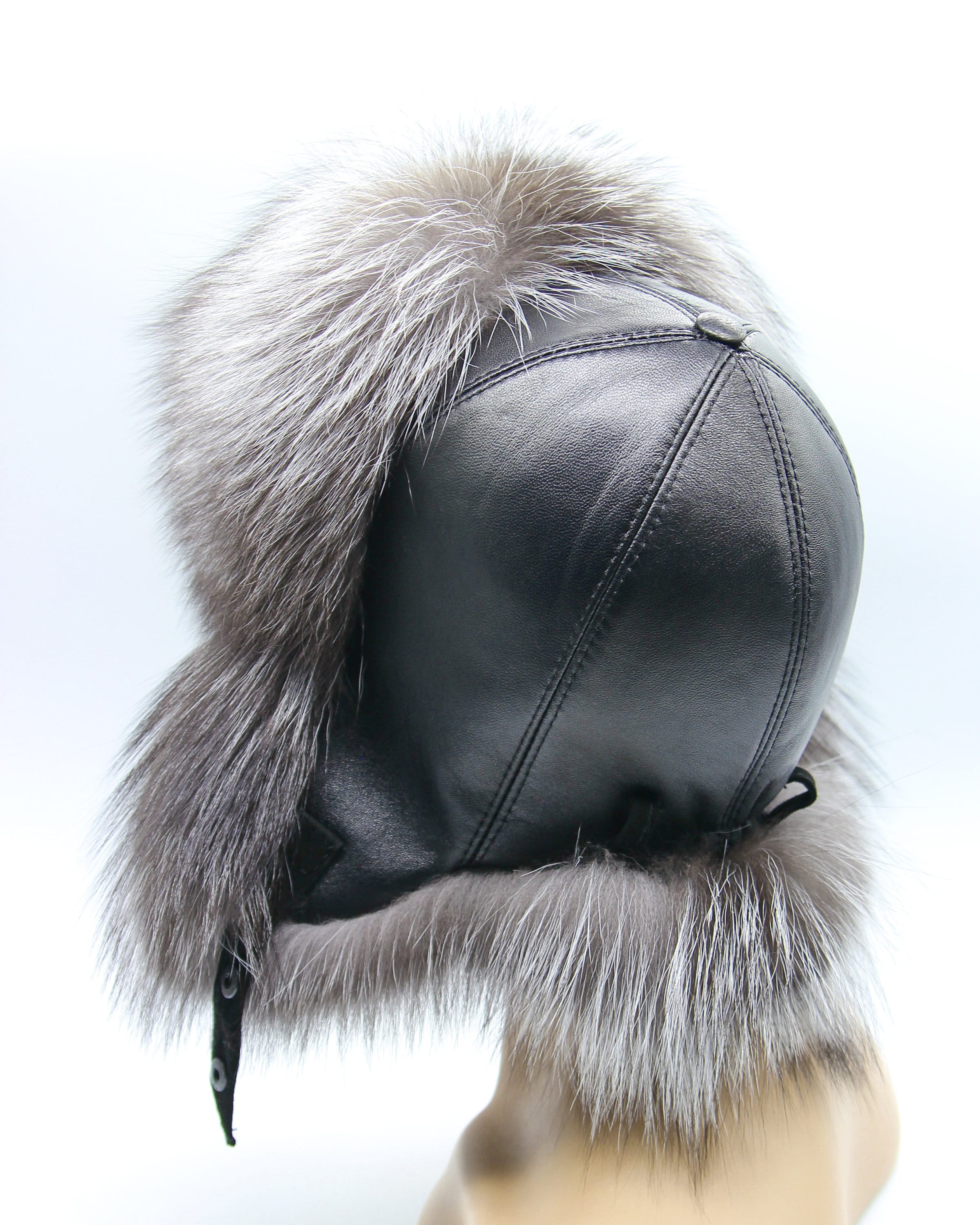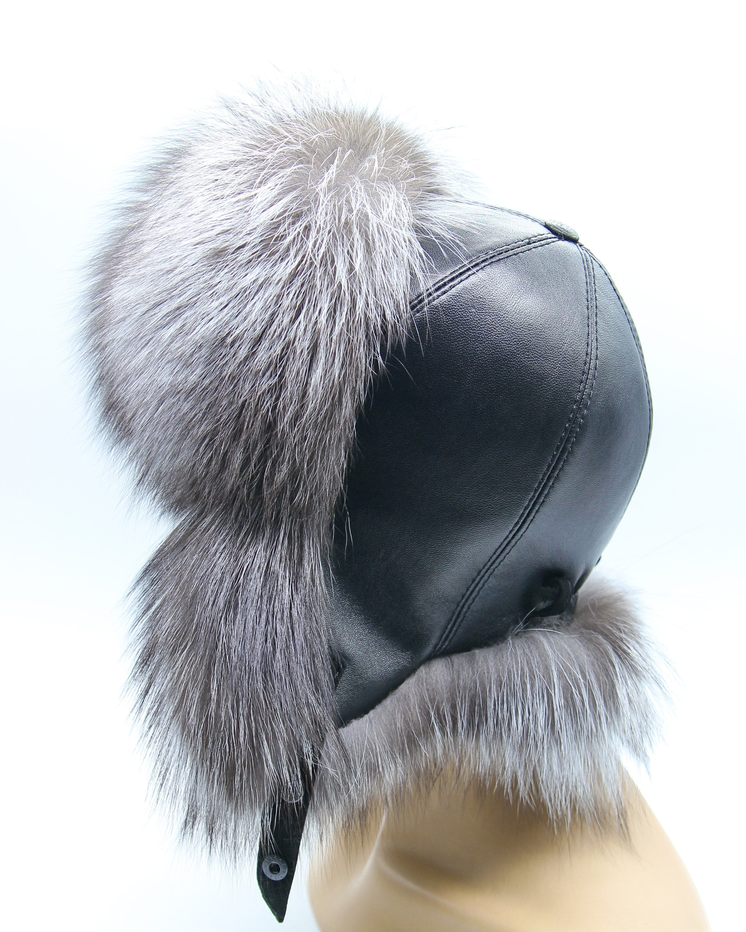 Black leather ushanka with silver fox fur trim. Urban twist on traditional design mixing sleek leather with genuine fox creating something both modern and actually functional.Black leather makes up the main body and crown. Silver fox fur trims all edges and covers entire earflaps inside and out. When earflaps hang or you tie them different ways, that real fox frames your face while keeping ears protected from cold.How This StartedBegan making this leather-fox mix about six years back. Customer wanted traditional ushanka warmth but regular all-fur felt too bulky commuting around city daily. Black leather body with fox trim solved her problem – streamlined enough for professional settings, warm enough handling actual winter, distinctive enough people remember seeing you.Black leather shows smooth matte finish blocking wind and light snow effectively. Keeps structured shape without going stiff. More durable for everyday wear than fabric while giving contemporary look traditional all-fur ushanka doesn't have.Silver fox fur covers the spots where you actually need warmth. Natural grey-black frosted coloring looks interesting against solid black leather. Real fox insulates critical areas where most heat escapes your head – around face, over ears completely, protecting neck when tied.Building ProcessTakes roughly 9 hours making each one. Leather work needs precise cutting and stitching keeping lines clean throughout. Fox sections gotta match carefully because natural coloring's noticeably different between individual pelts. Where leather meets fur better be seamless or quality drops obviously.Adjustable inside fits different head sizes. Hidden band lets you customize getting secure fit without pressure spots. Leather ties with metal clasps on earflap ends let you wear it multiple ways – tie under chin for max warmth, behind head for moderate temps, leave down for traditional full coverage.Cold PerformanceWorks fine -25°C to +5°C based on testing across cold places. Black leather blocks wind exceptionally well while silver fox insulates strategic spots where heat loss happens fastest. This material combo actually performs better than you'd think – leather's wind resistance plus fox warmth at critical zones.Who Gets ThisDaily commuter from Boston wears on subway every morning. Black leather with silver fox looks polished enough for his office, gives genuine warmth, easy packing in bag without messing up structure.Photographer from Chicago uses during winter street shoots. Leather handles snow and sleet way better than fabric hats, fox keeps her face warm during long outdoor sessions, looks distinctively good without being costume-like.Business traveler from Toronto got this for winter client visits around Canada. Professional enough wearing into meetings, warm enough walking between downtown buildings outdoors, packs relatively flat in luggage without losing shape.Student from Montreal saved specifically wanting this design. Looks more grown-up and polished than knit beanie, actually keeps him warm crossing campus all winter, gets compliments constantly from professors and classmates both.Taking CareProfessional leather and fur cleaning when needed based how often you wear it. Black leather wipes clean easy with damp cloth for minor marks or dirt. Silver fox shake gently after wearing removing snow or moisture naturally. Store hanging or flat somewhere cool and dry. Don't fold leather sharply creating permanent creases that mess up how it looks.What's IncludedMaterials: Black leather body with real silver fox fur trim