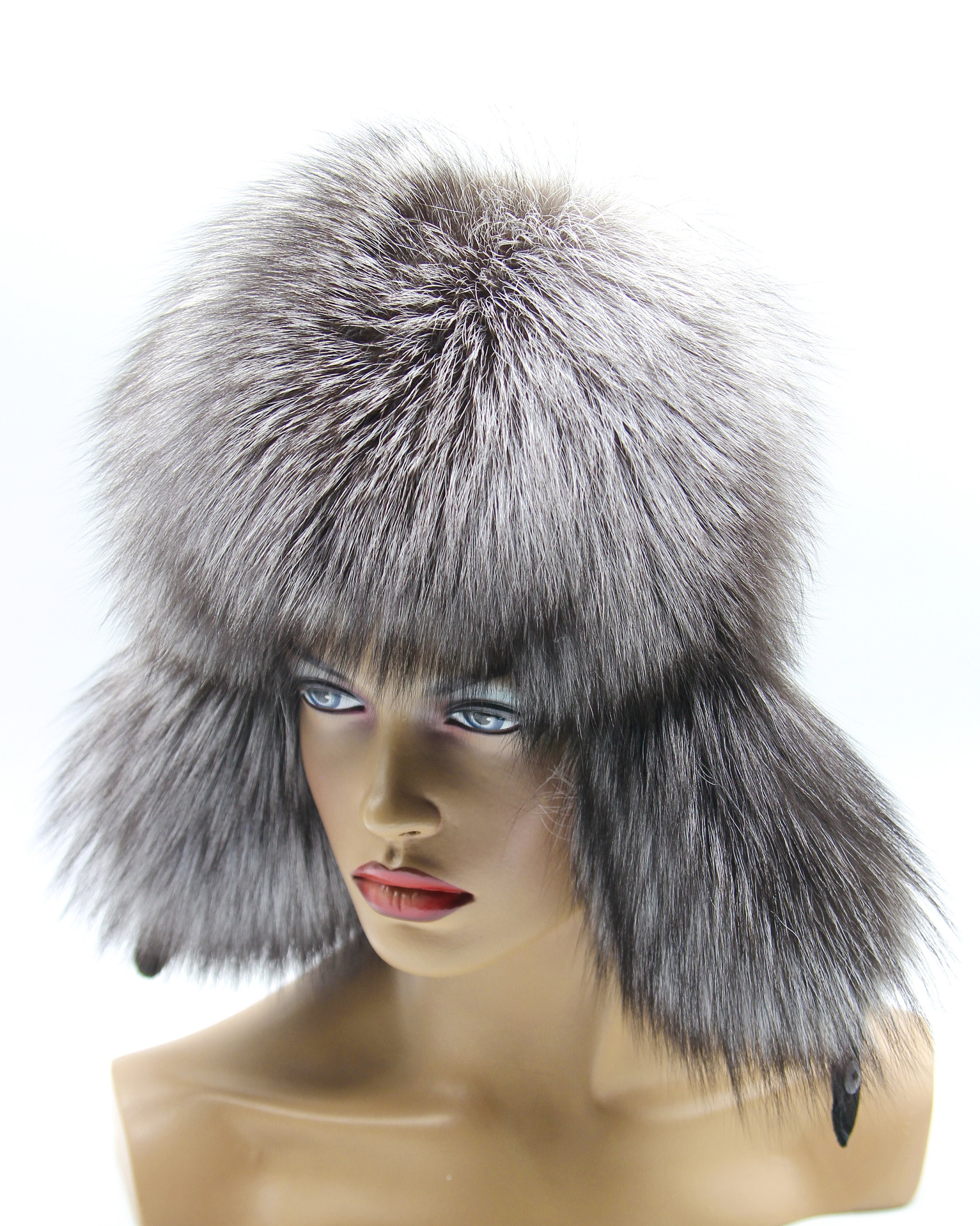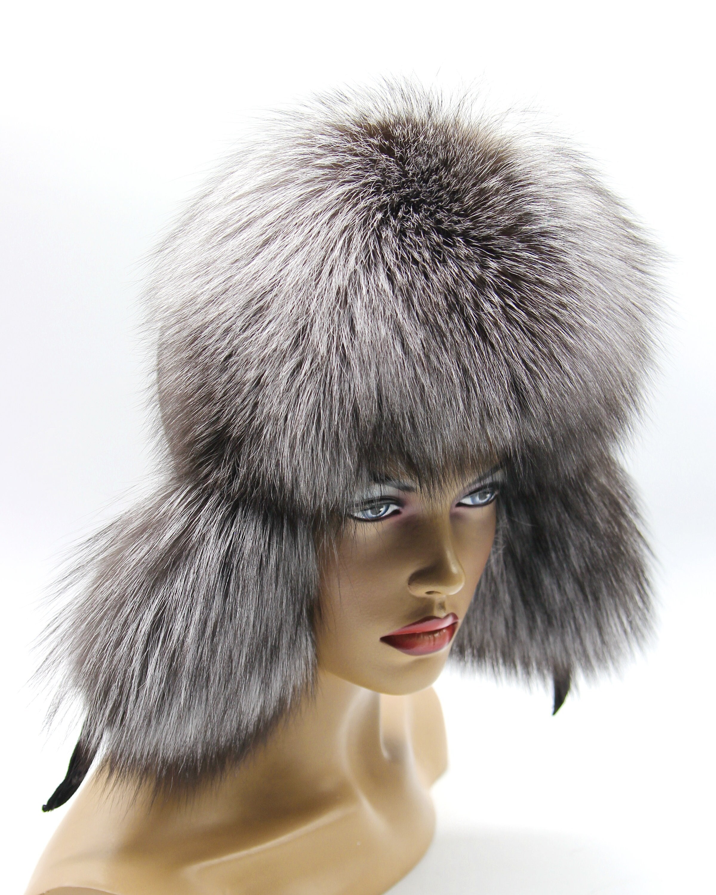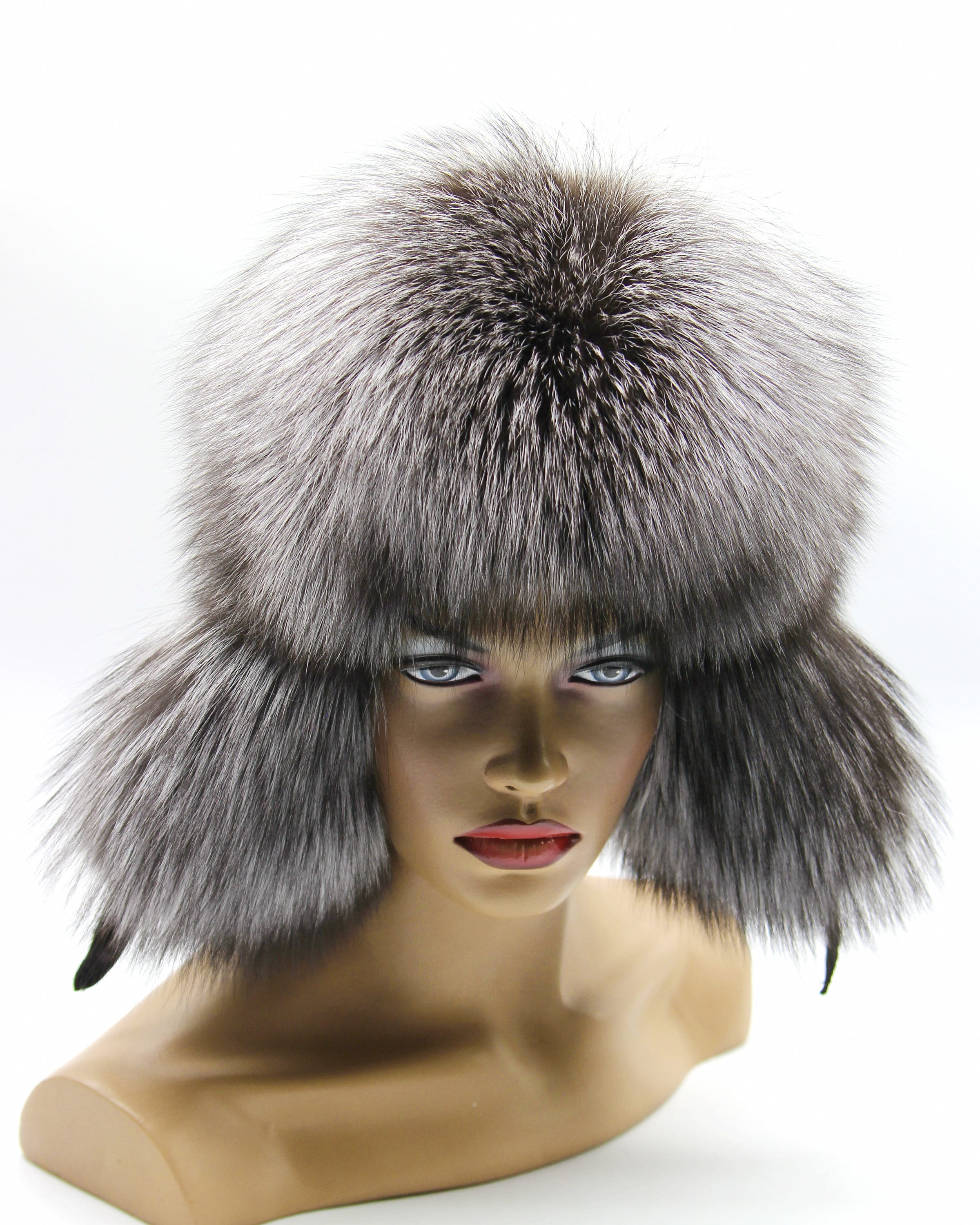 Edge trim and earflaps: Silver fox fur (natural grey-black)
