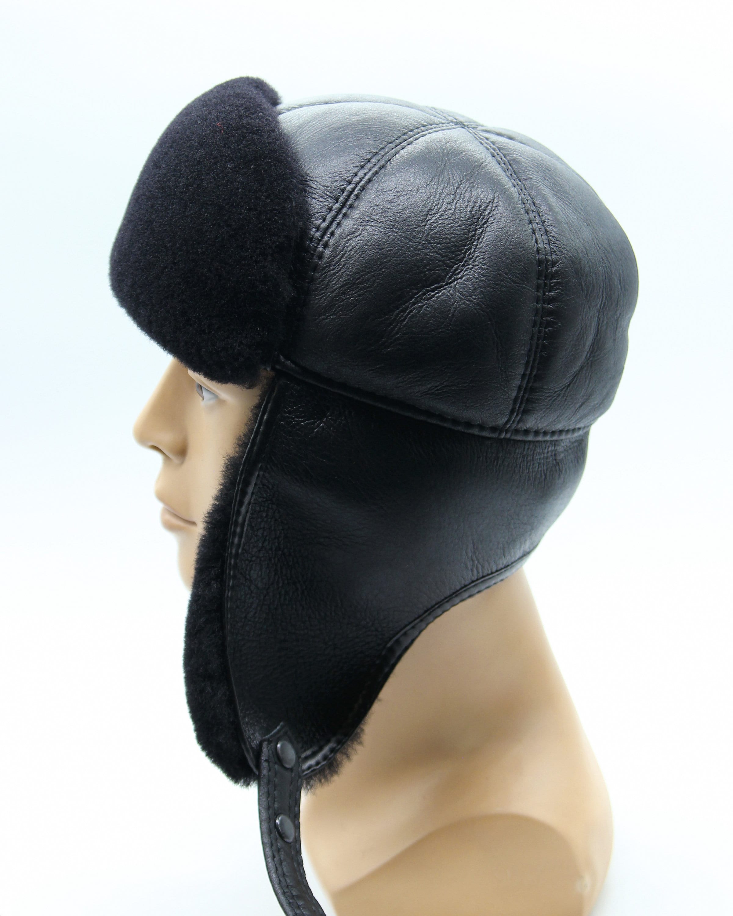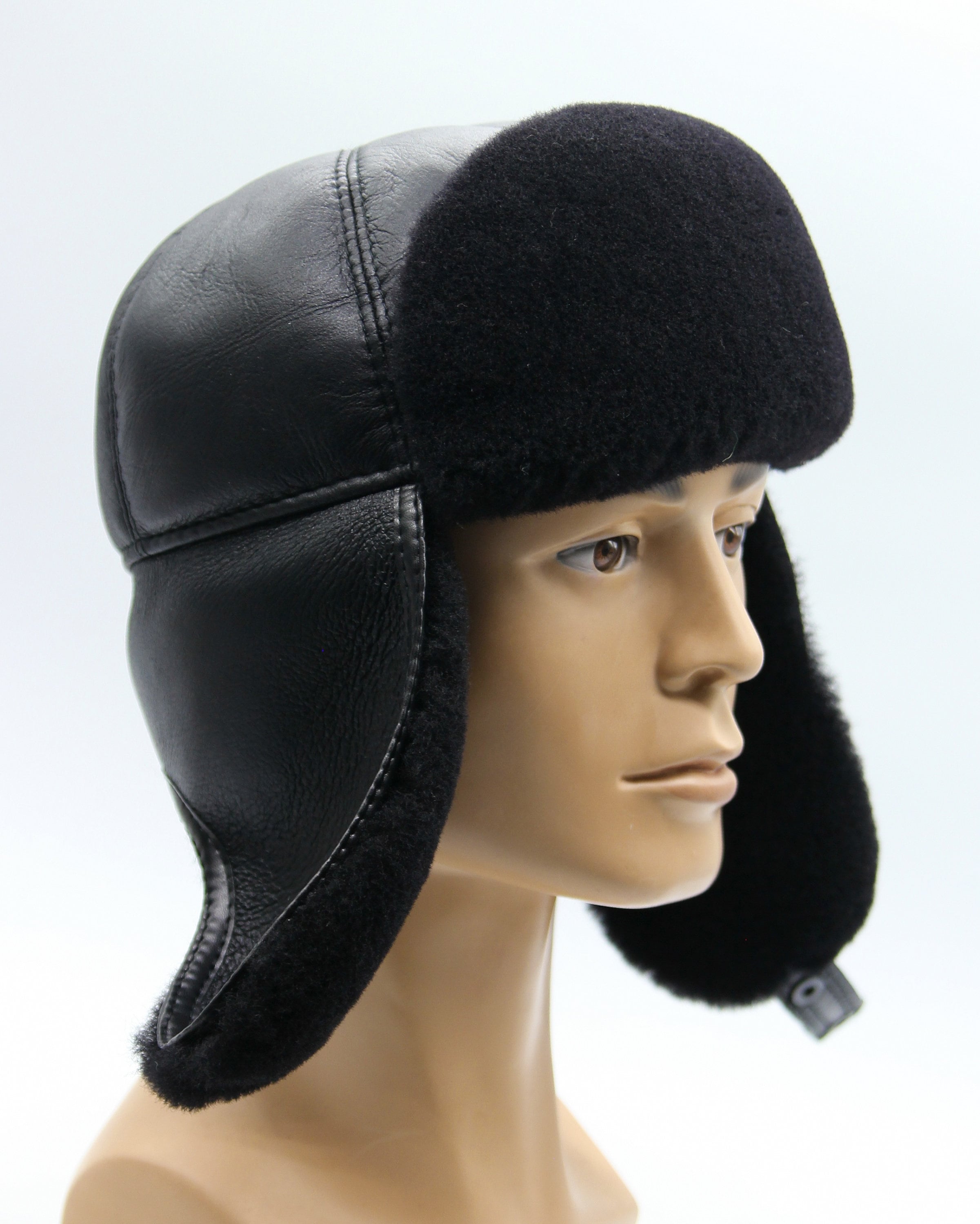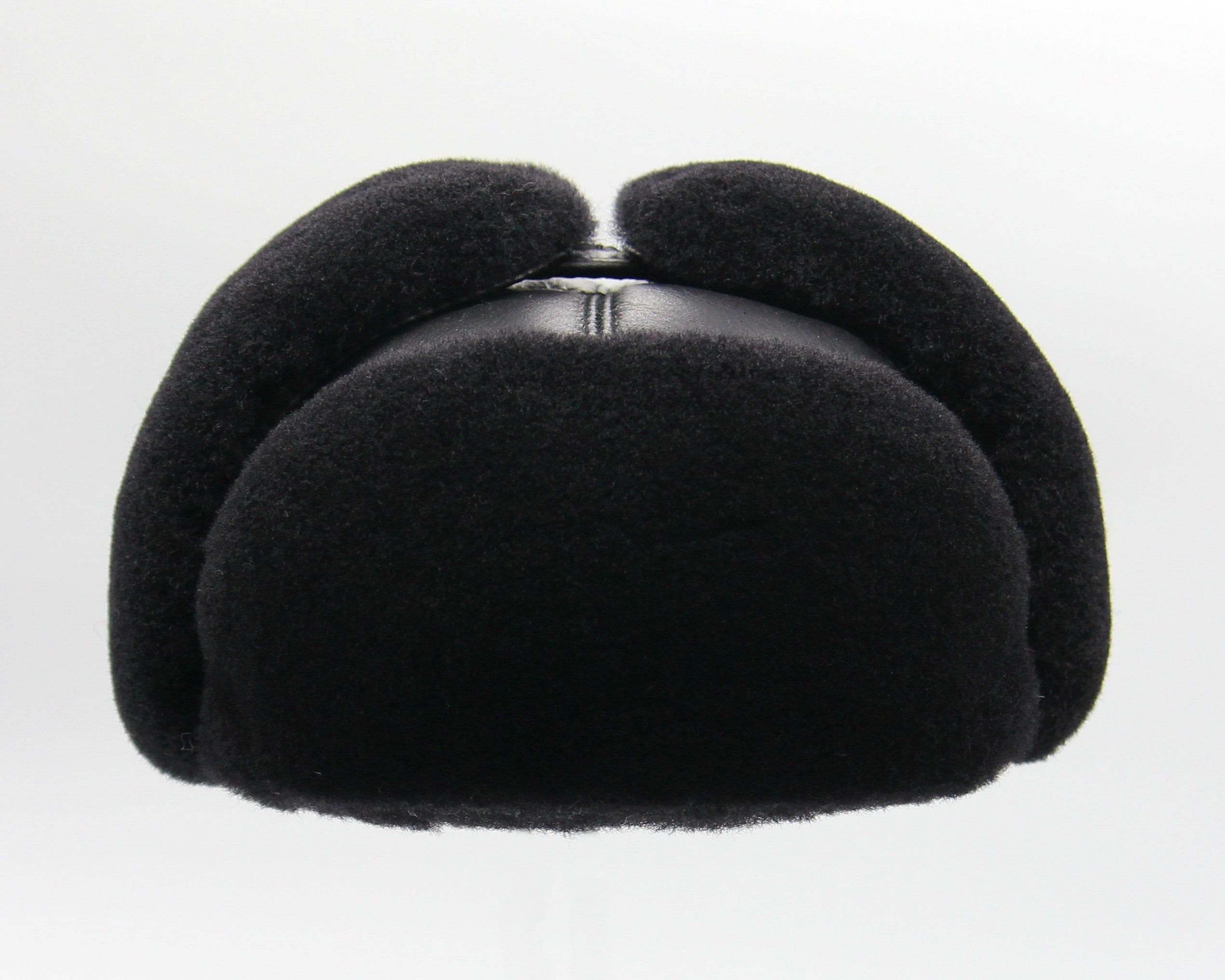Black Shearling Fur Hat - Men's Aviator Winter Ushanka with Sheepskin