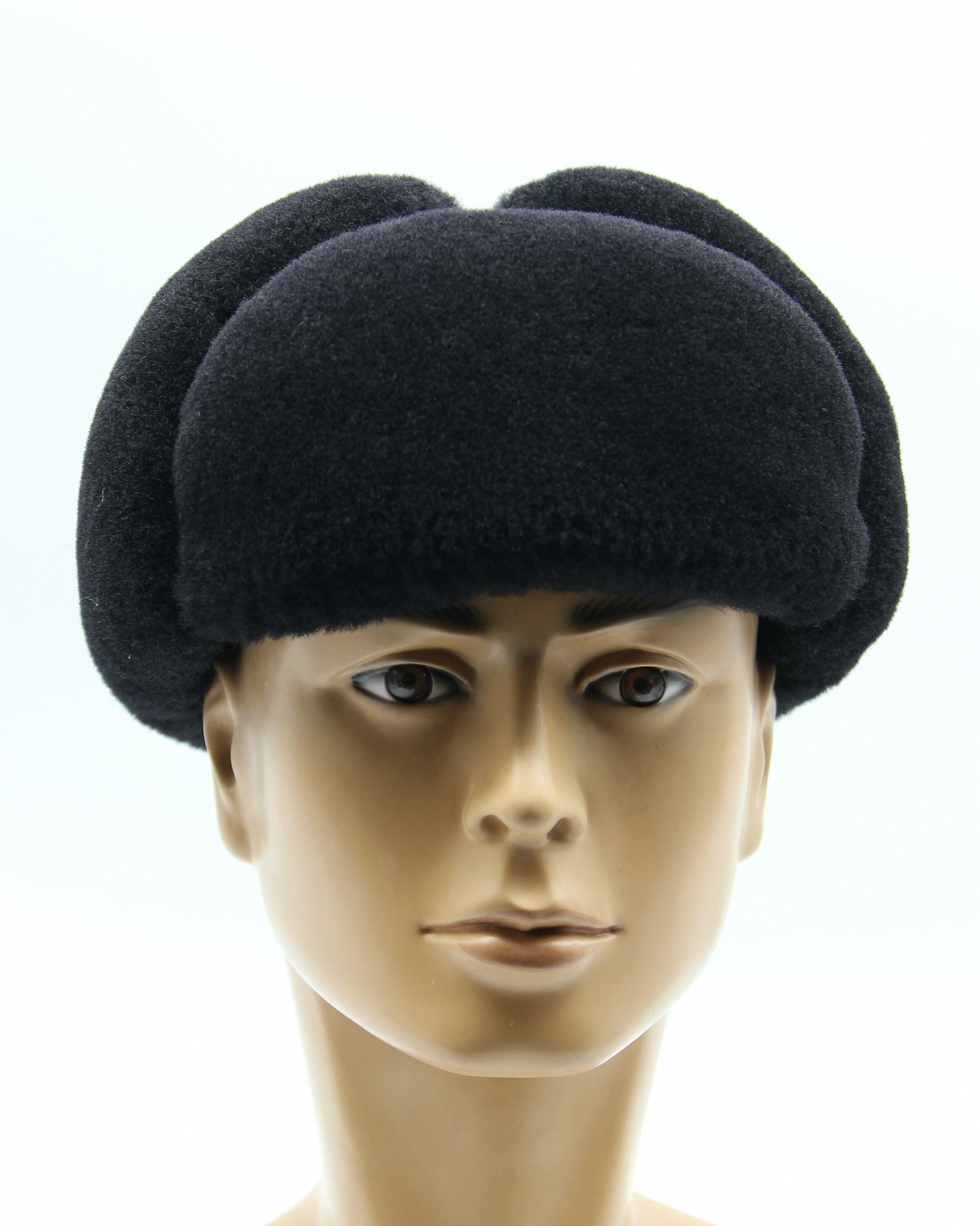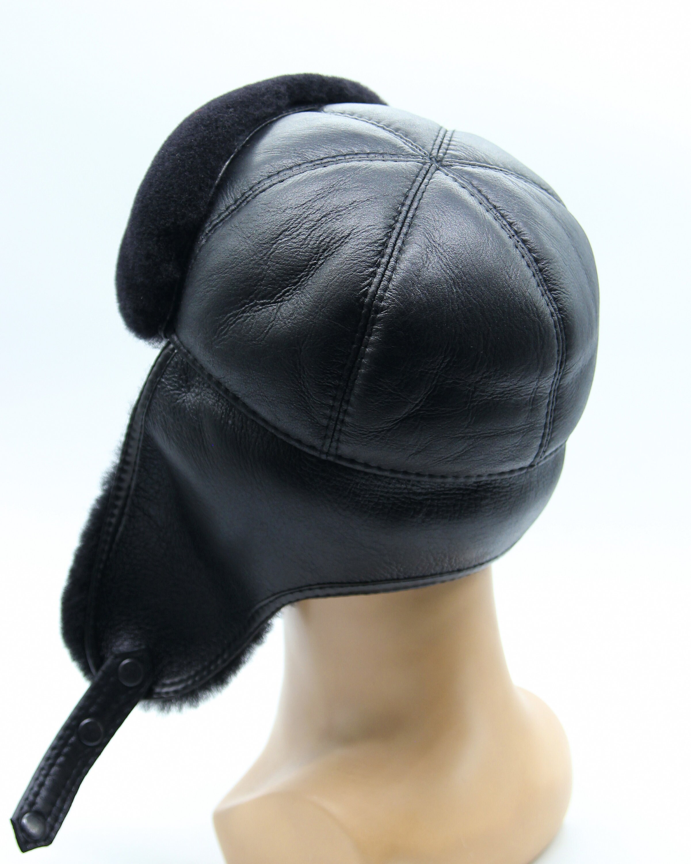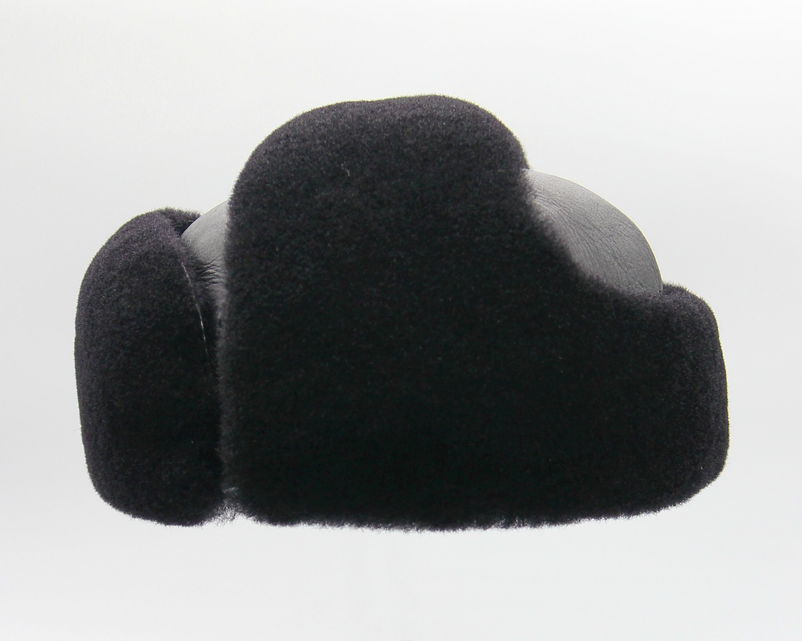 Black Shearling Fur Hat - Men's Aviator Winter Ushanka with Sheepskin