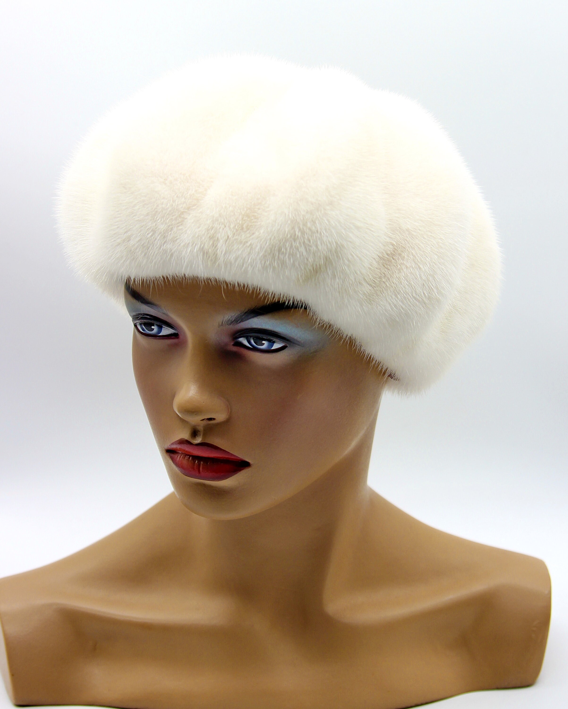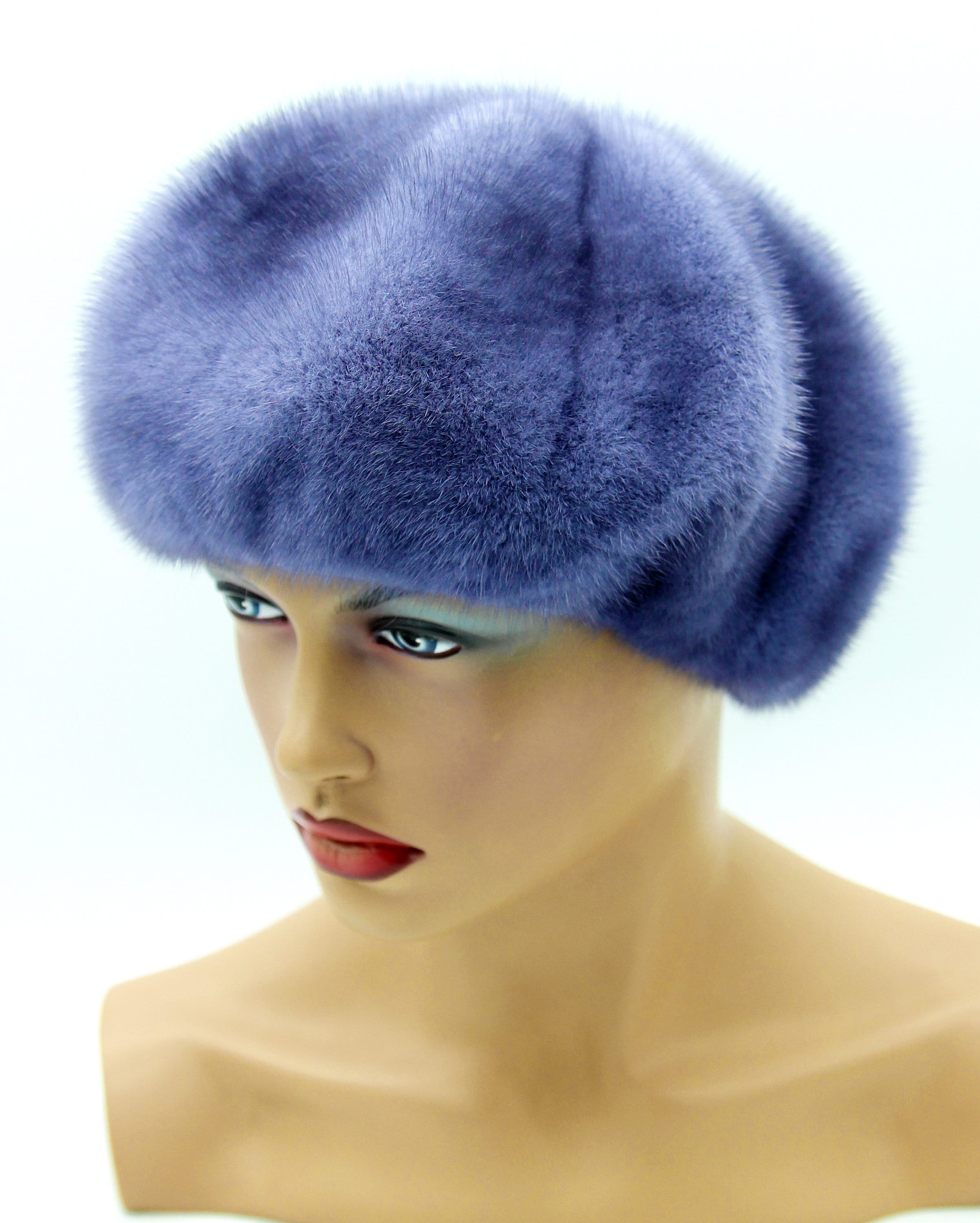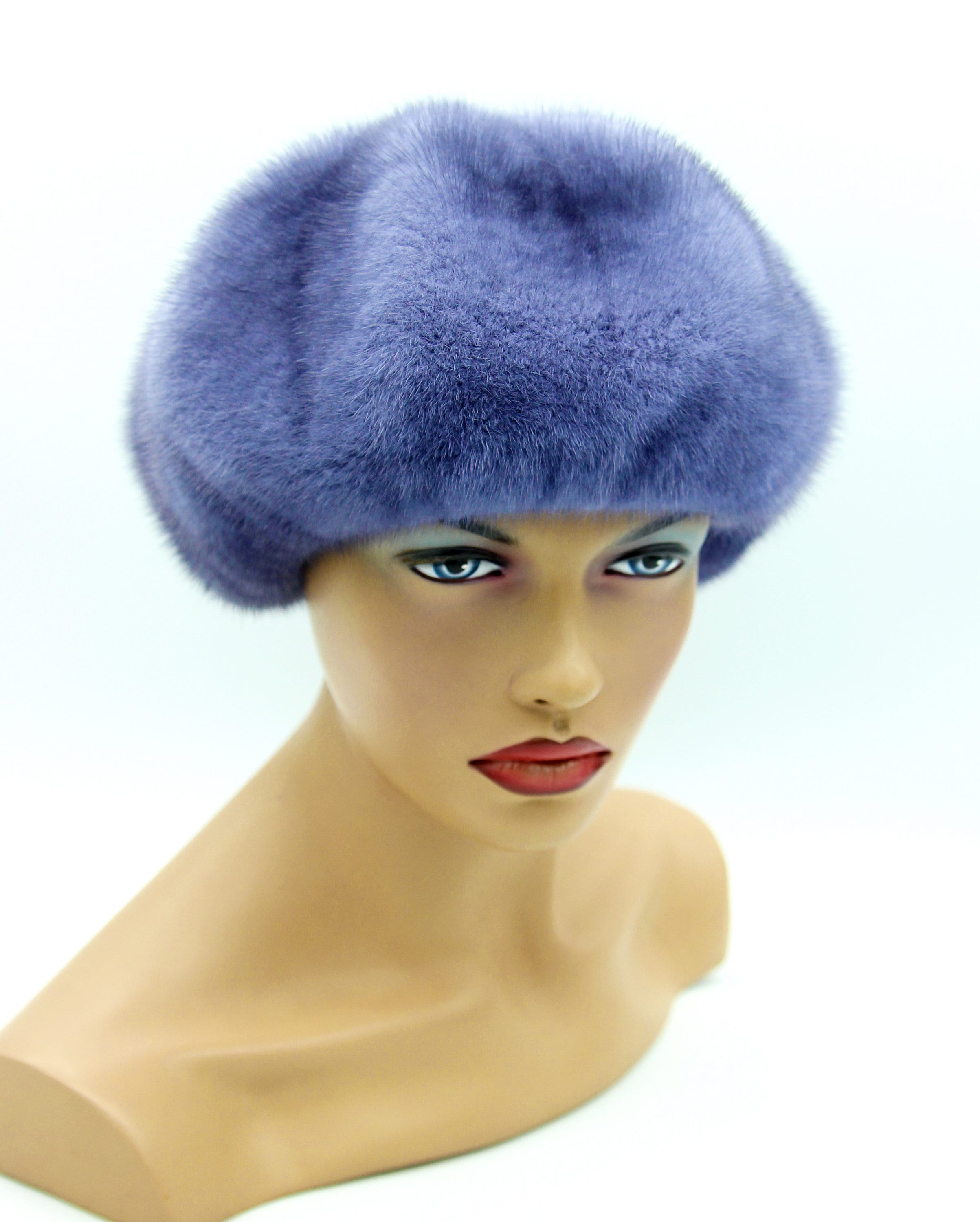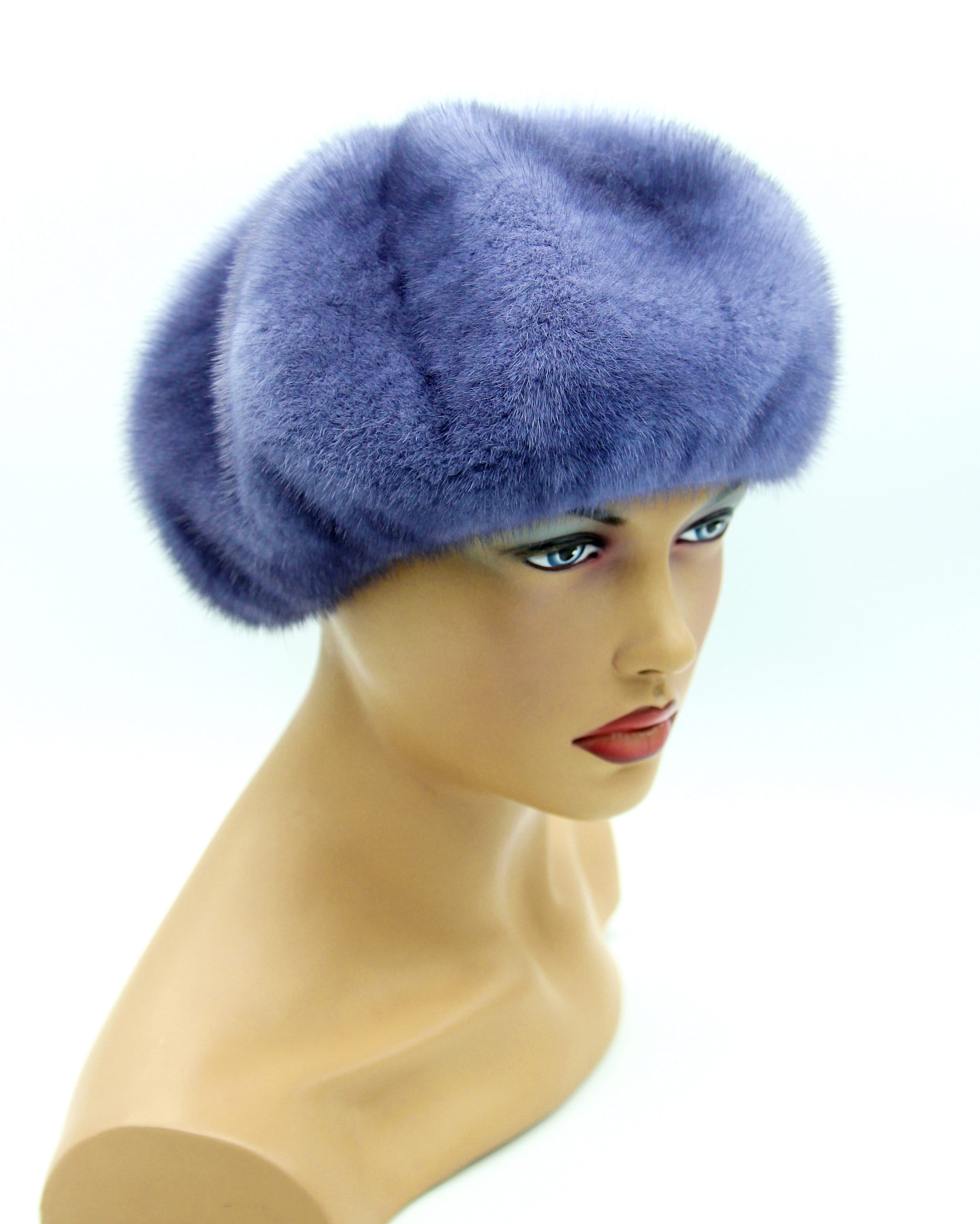 Mink Fur Hat Beret Ribbed White Purple Ukraine Women