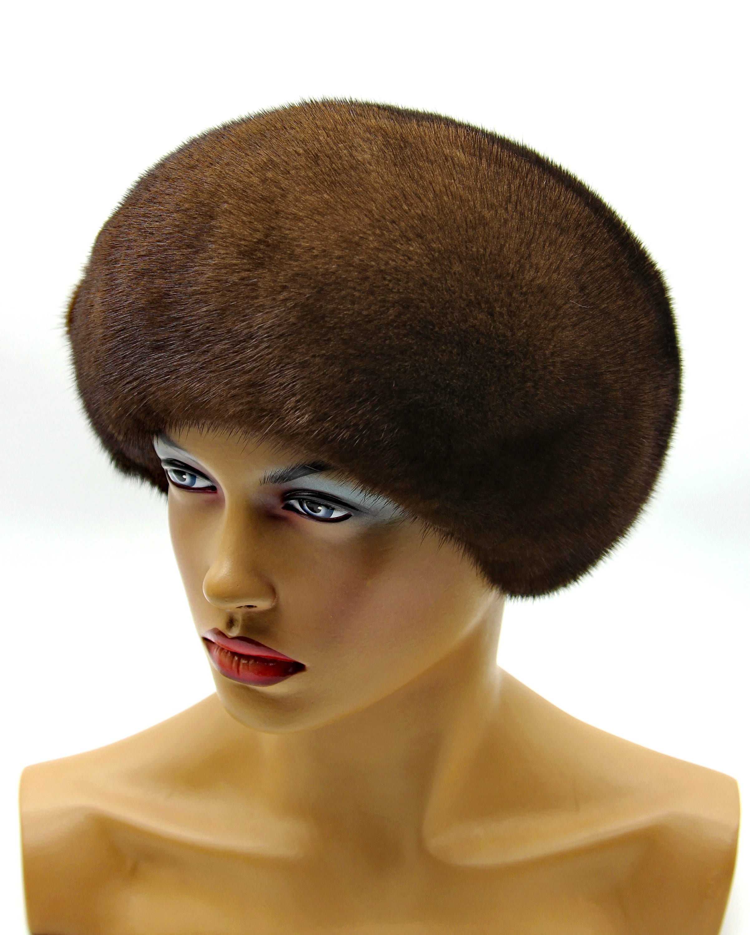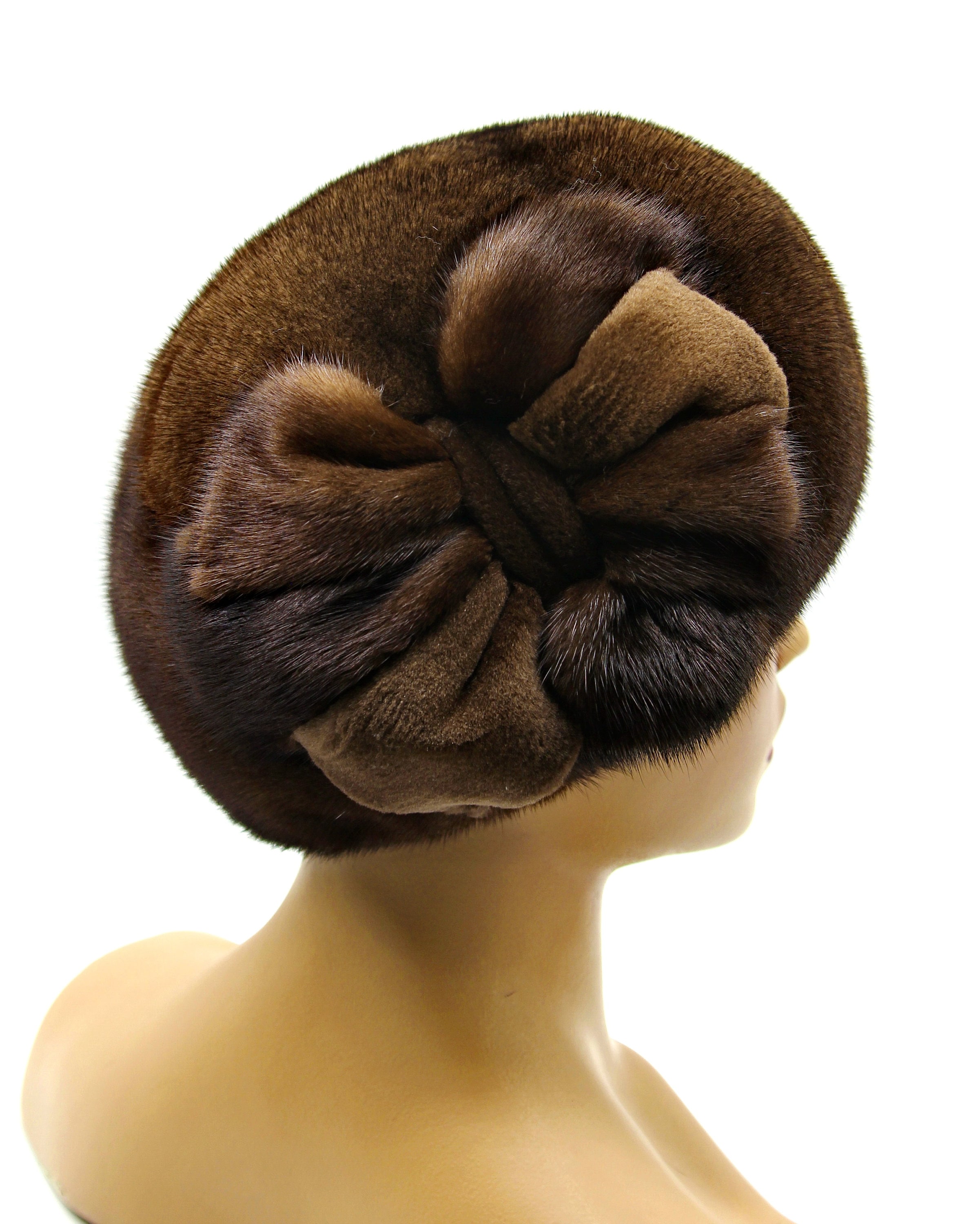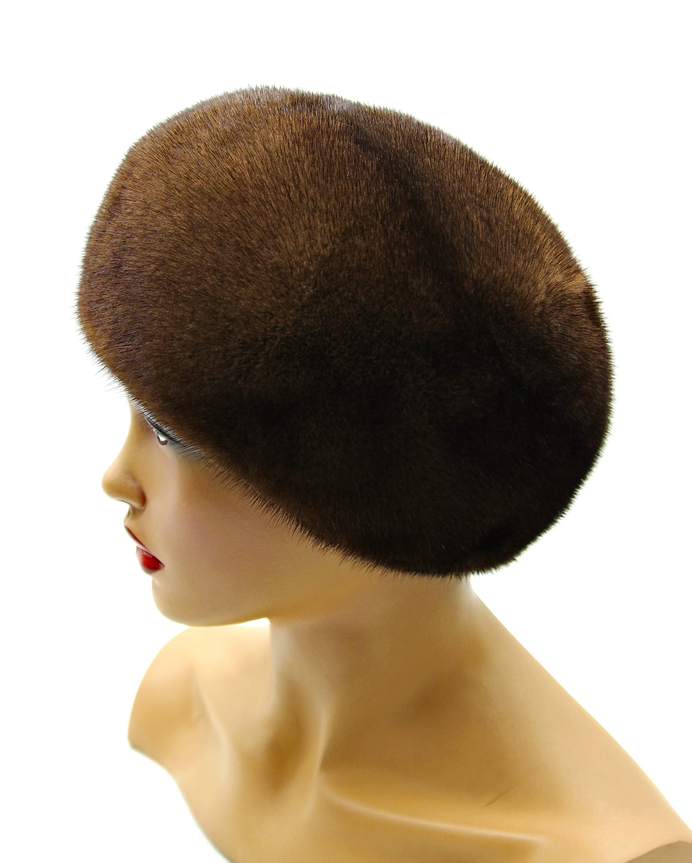 Pastel Mink Fur Hat Beret Flower Ukraine Women Brown