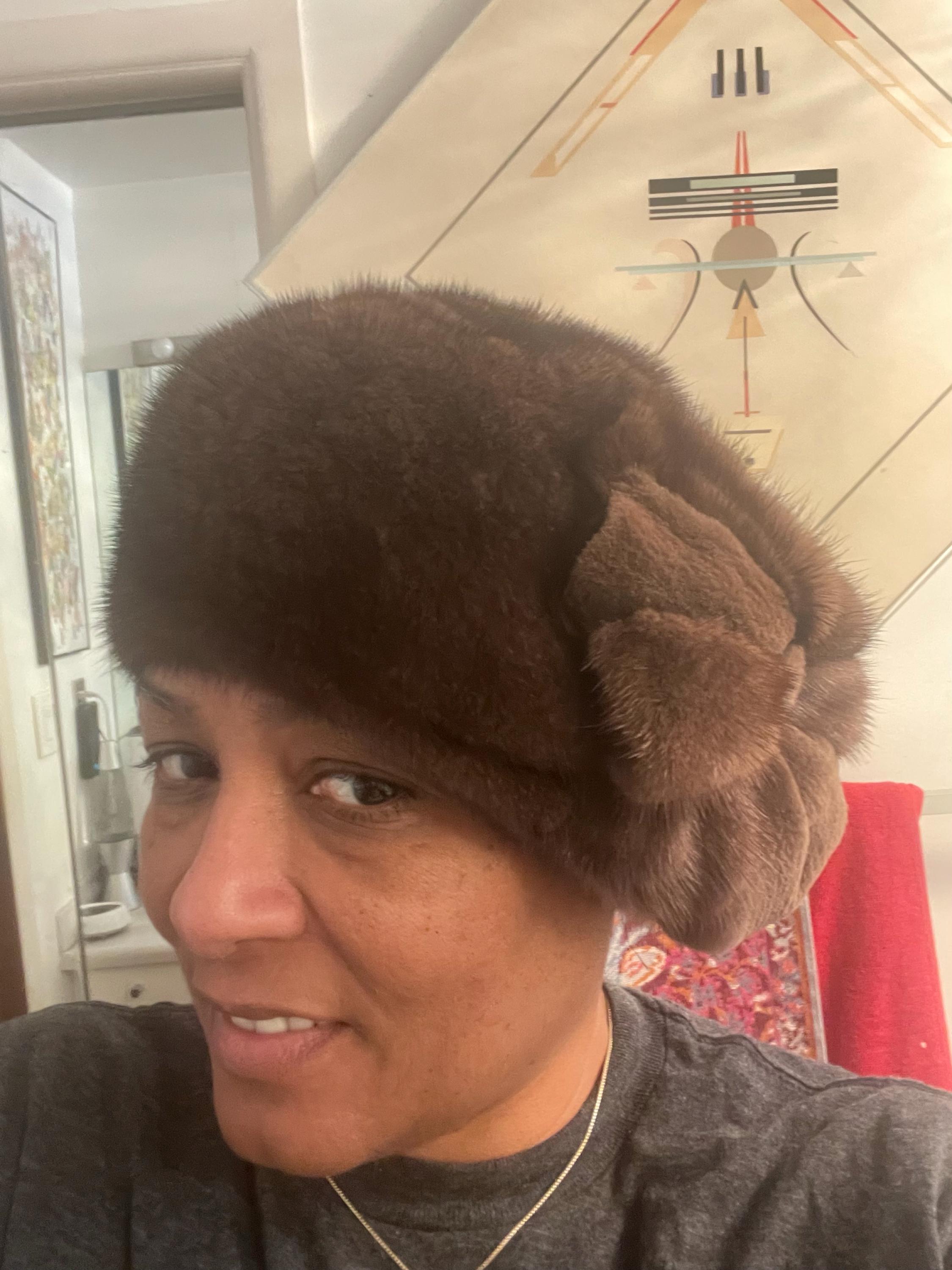 Handle this fur hat carefully around flower detail. Professional fur hat cleaning recommended - cleaners know how to work around decorative elements on your fur hat. Store carefully maintaining both fur and floral accent.