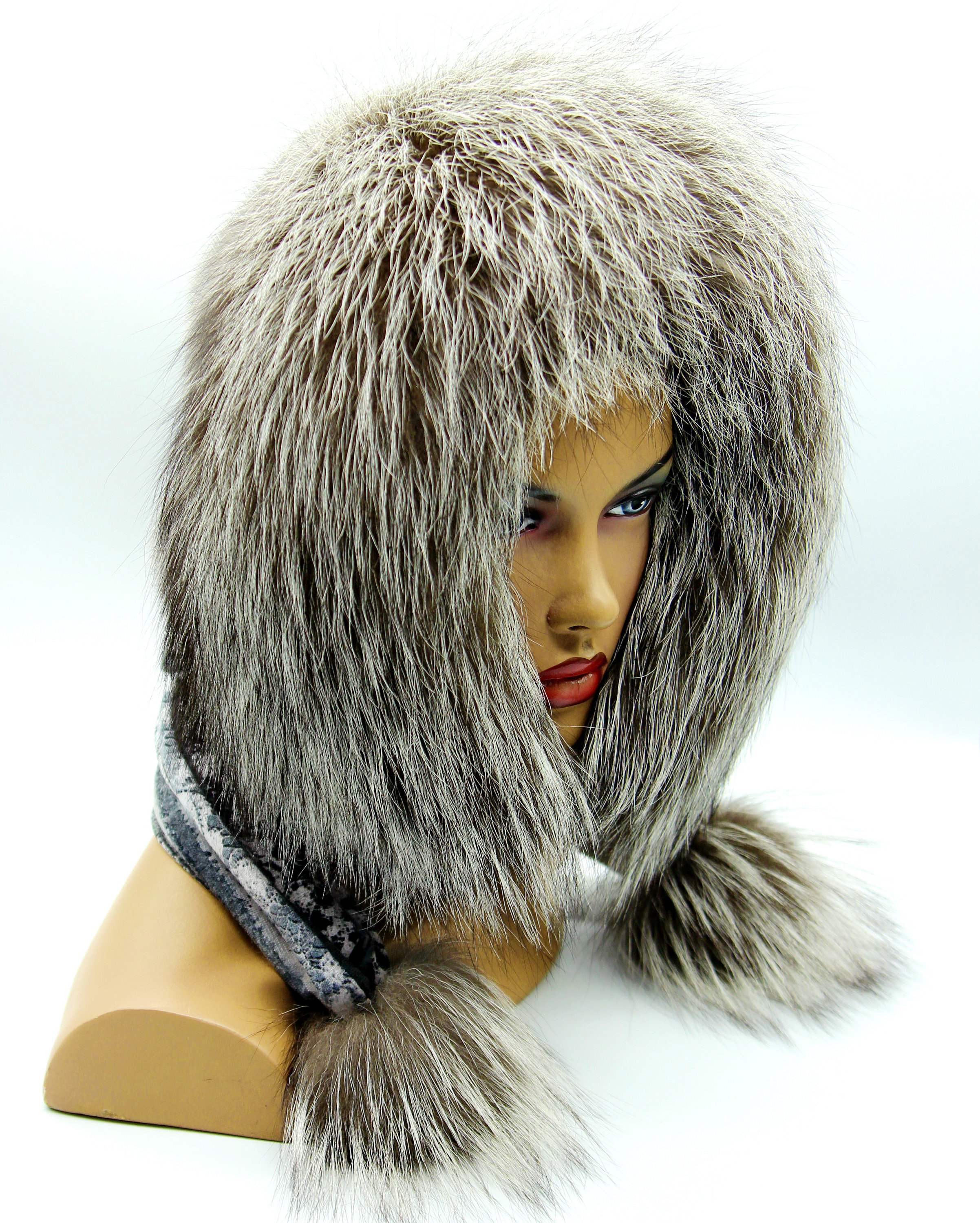 Silver Mink Fur Hat Hood Scarf: Women's Winter Cowl