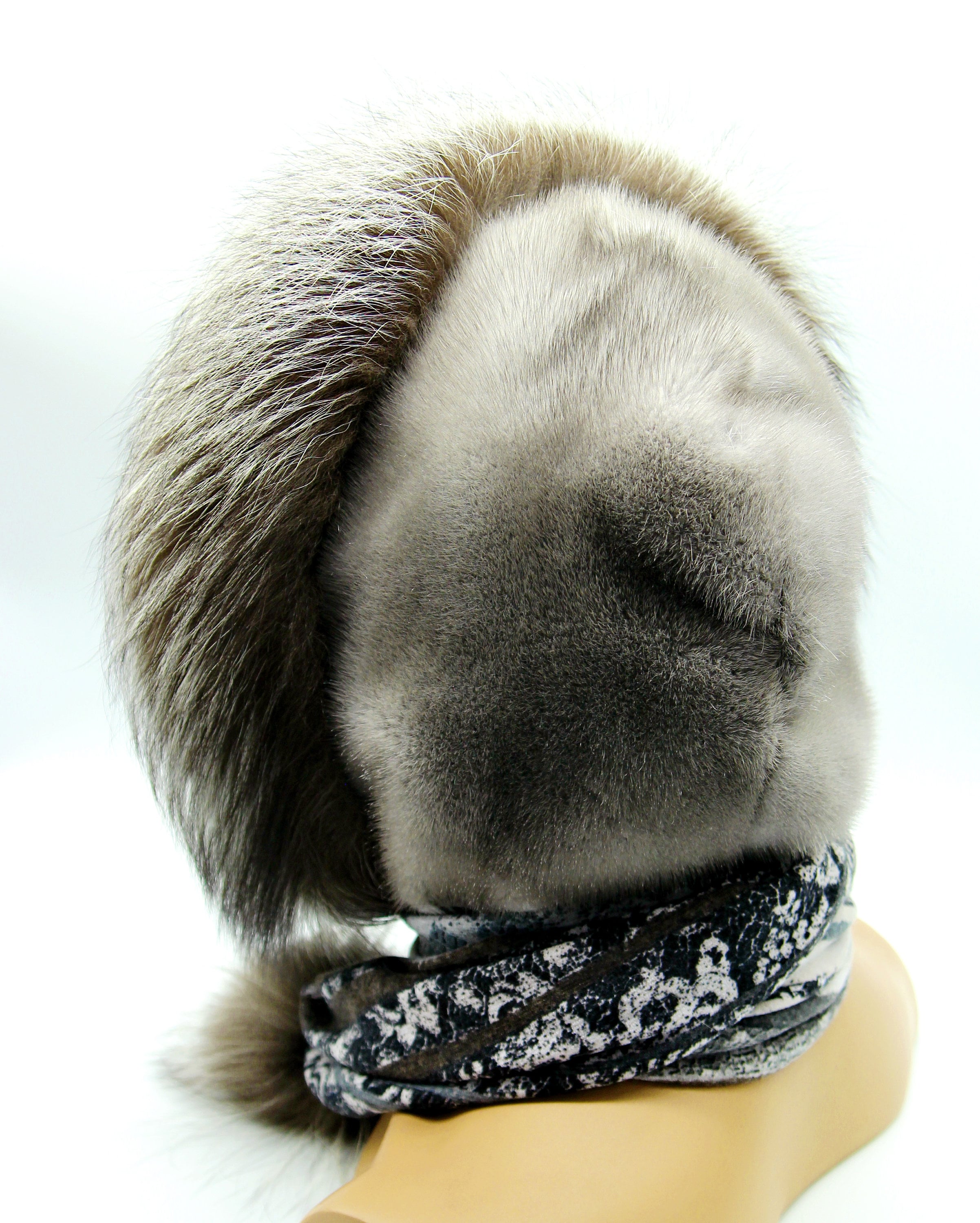 The plush Mink fur brings a touch of opulence to your wardrobe, while the resilient Chernoburka fur ensures warmth in the harshest winters. Colored in a lustrous silver shade, the hat adds a timeless appeal to any outfit, allowing you to step out in style even in frigid temperatures.