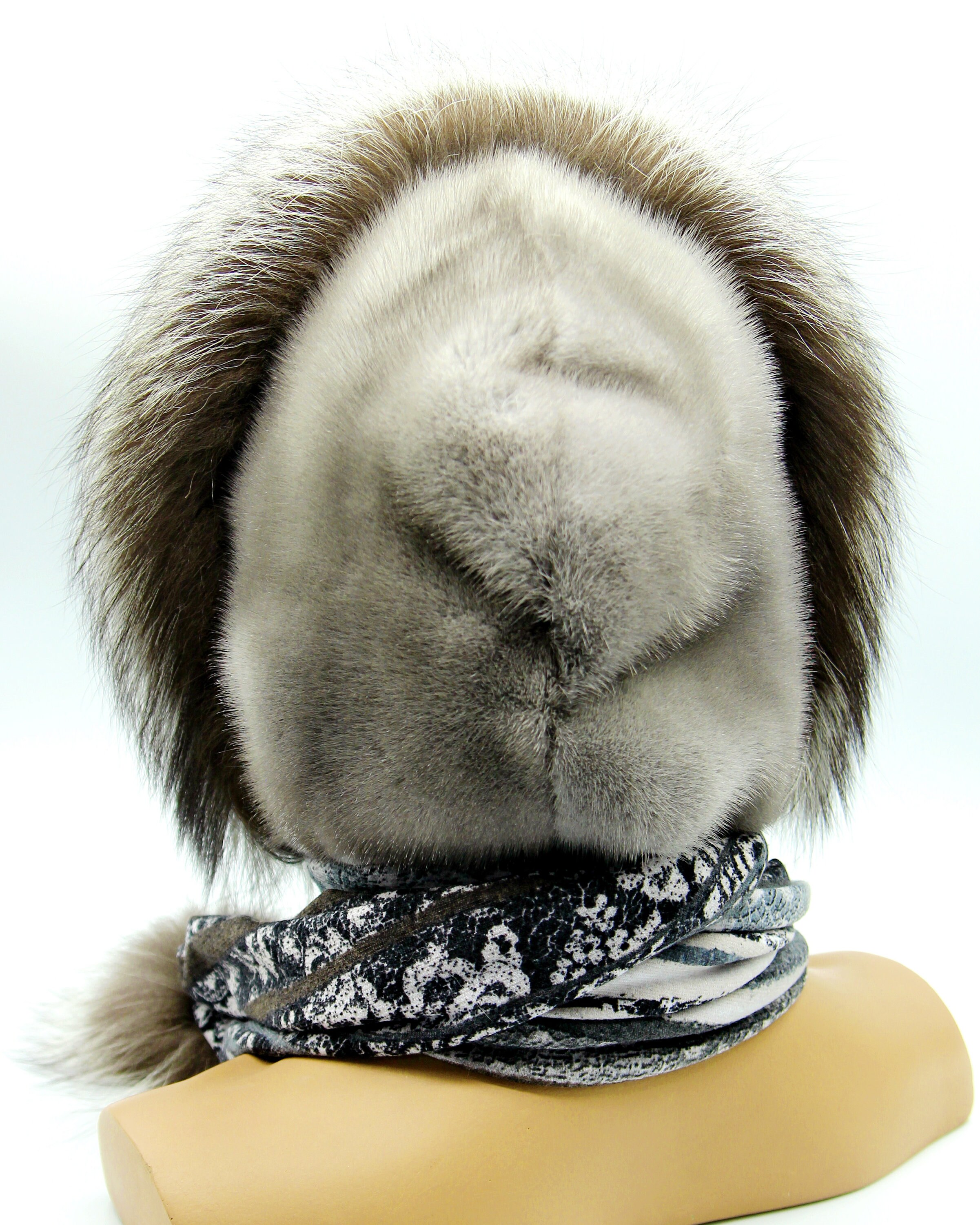 Embrace the allure of exquisite comfort with our versatile Mink fur hat hood, thoughtfully crafted from the highest quality Mink and Chernoburka fur in Ukraine. This luxurious piece serves as a hood, hat, and scarf all at once, making it an ideal winter accessory for the modern woman. Constructed on a jersey foundation, it showcases a seamless blend of comfort and sophistication.