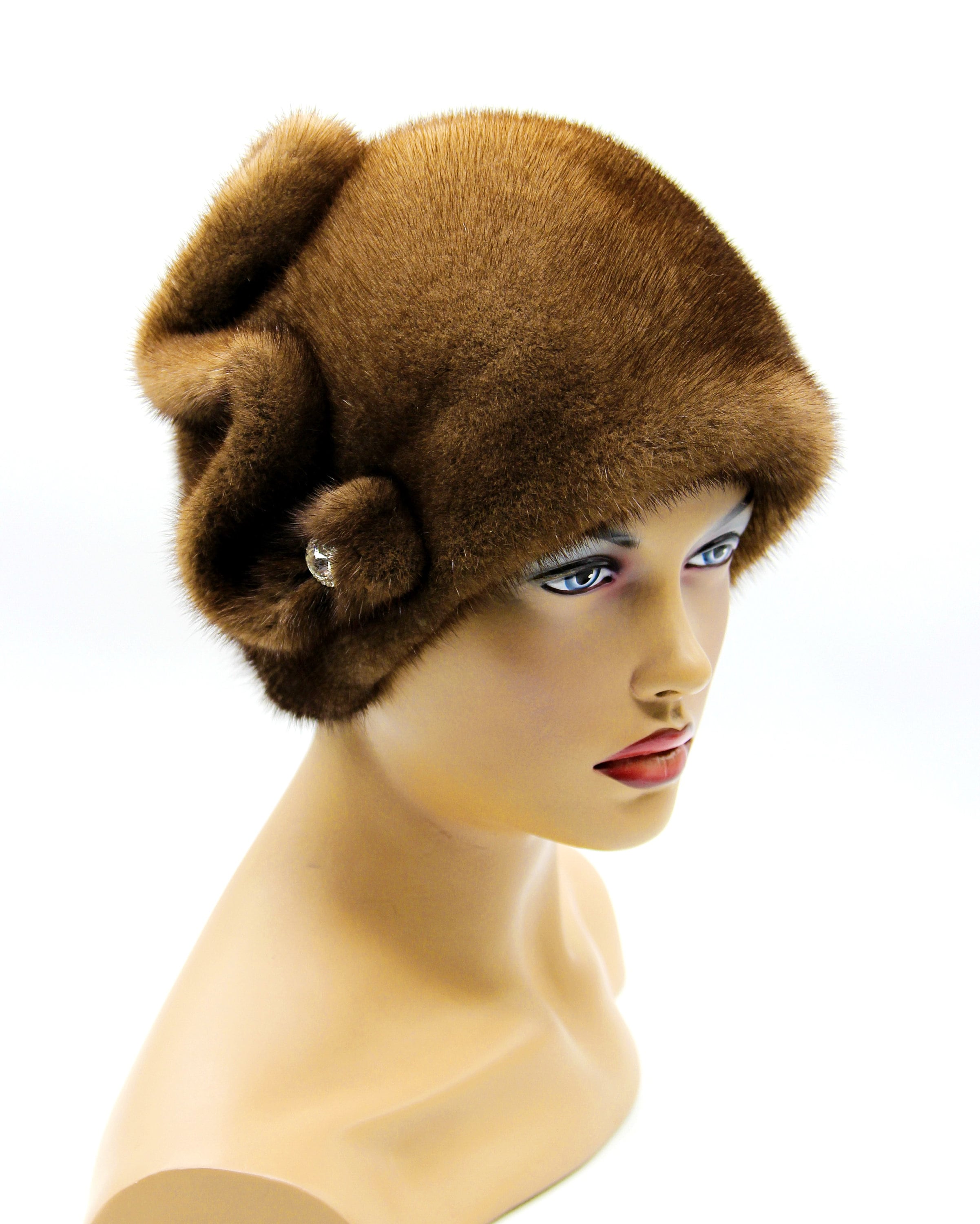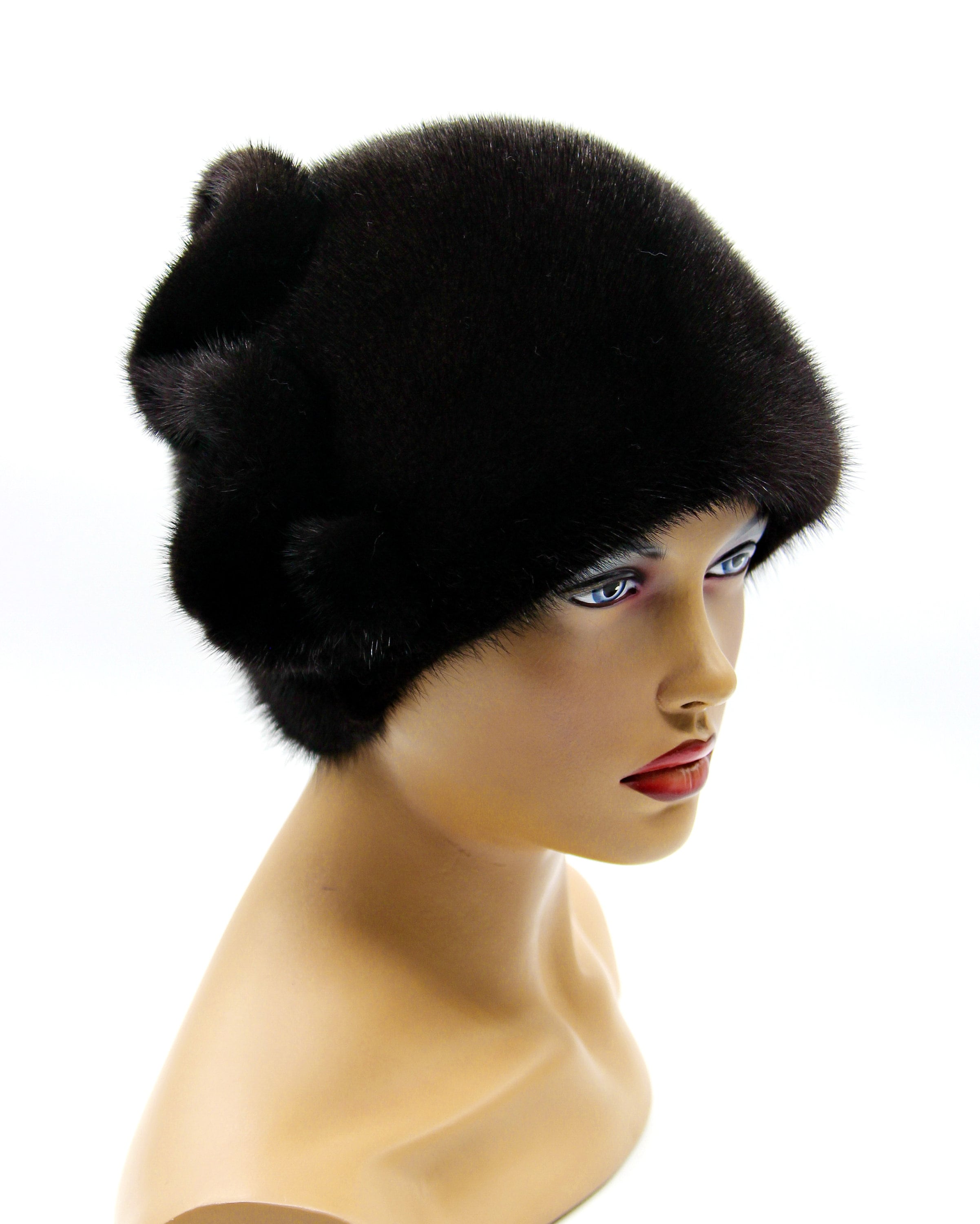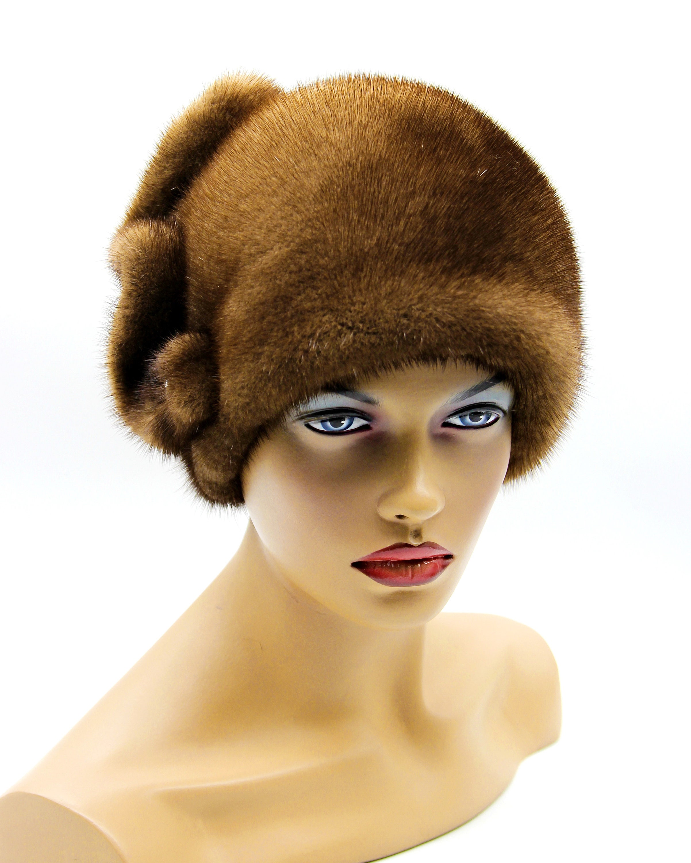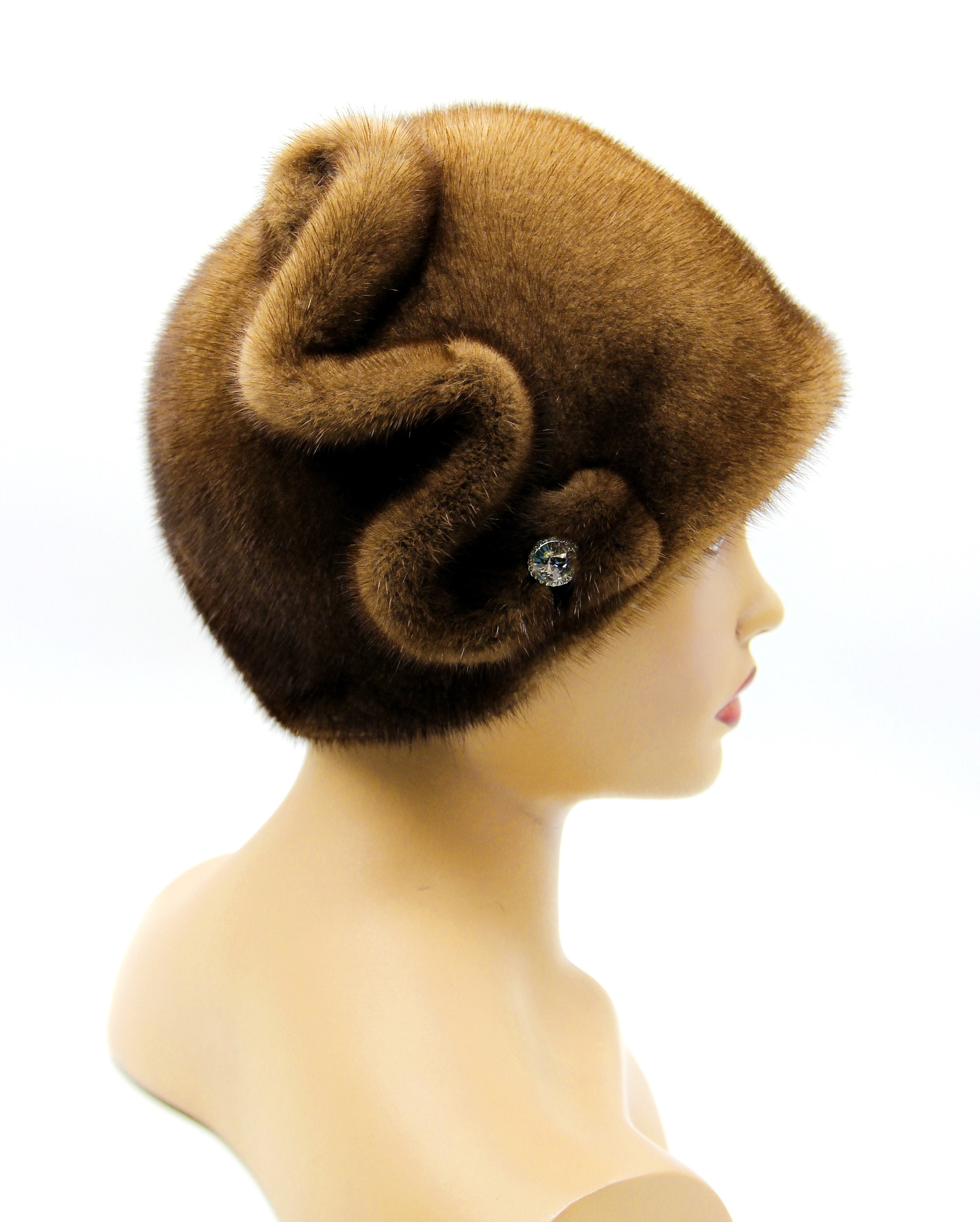 Women's mink fur hat "Pattern" real winter warm ladies headdress