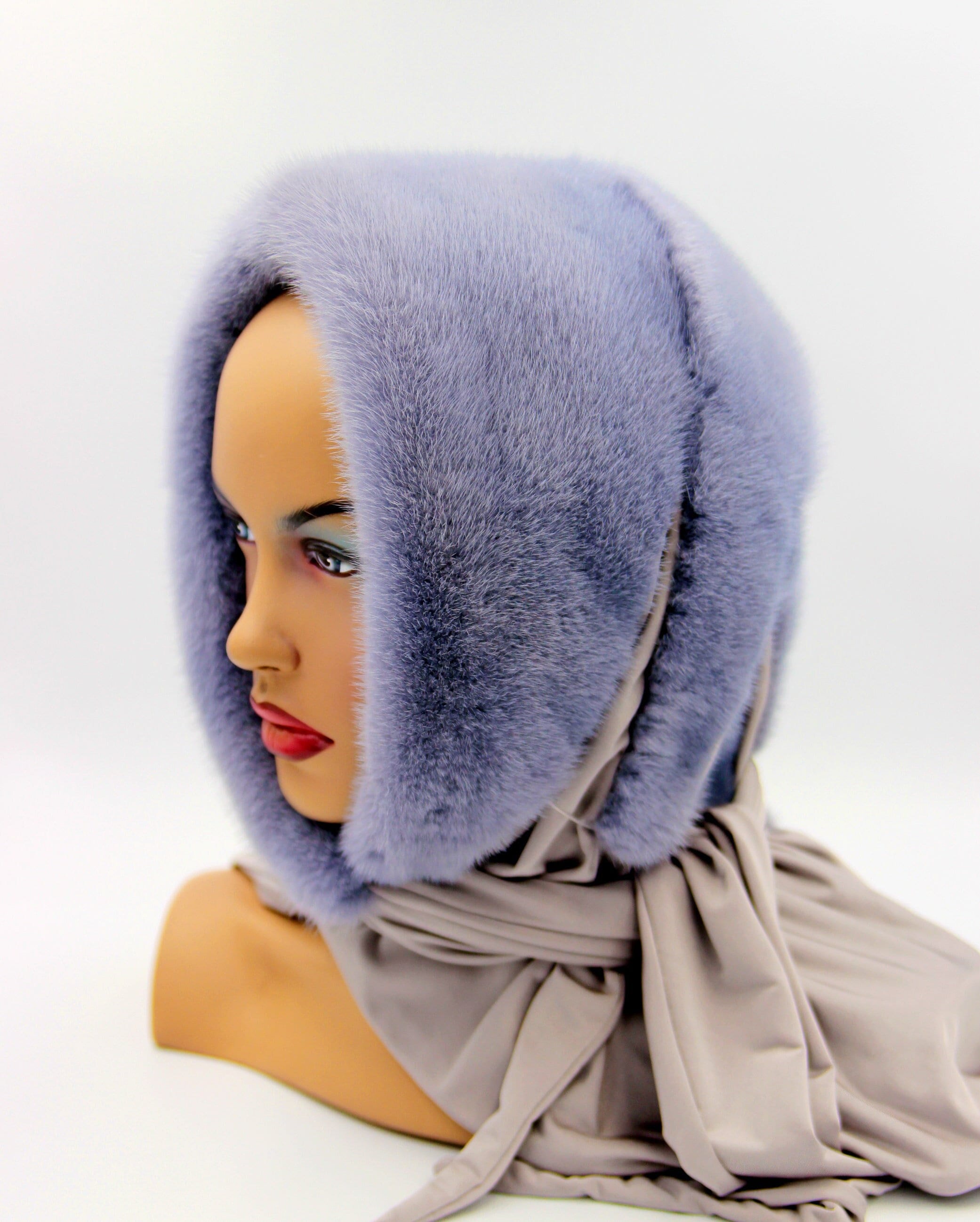 Iris Purple Dyed Mink Fur Hat Hooded Scarf - Lavender Violet Winter Wrap