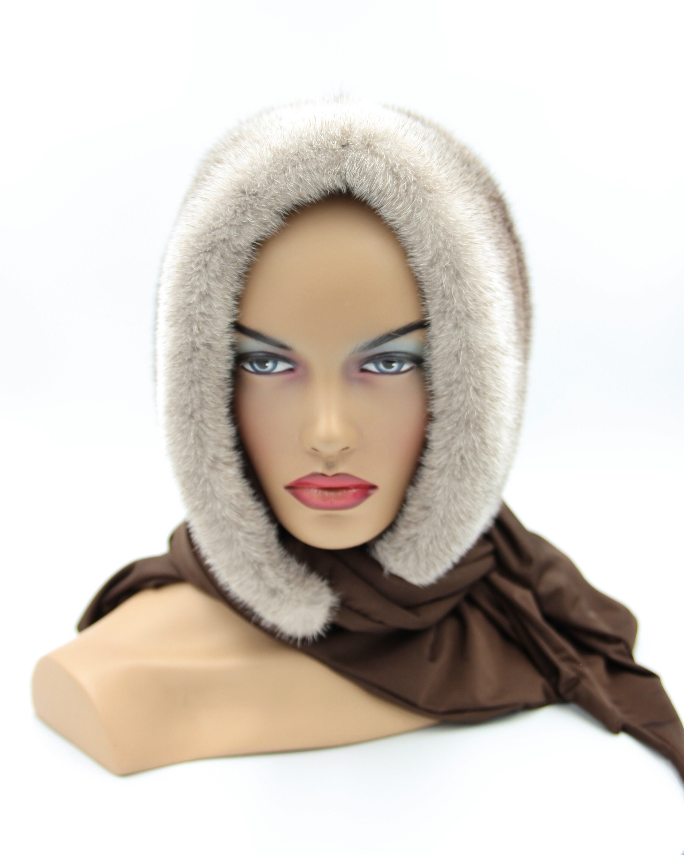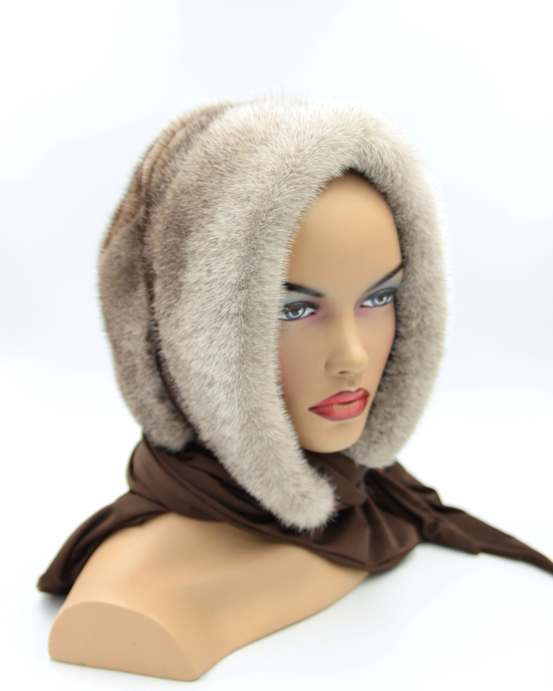 Mink fur hood fur hat winter scarf headdress shawl woman's