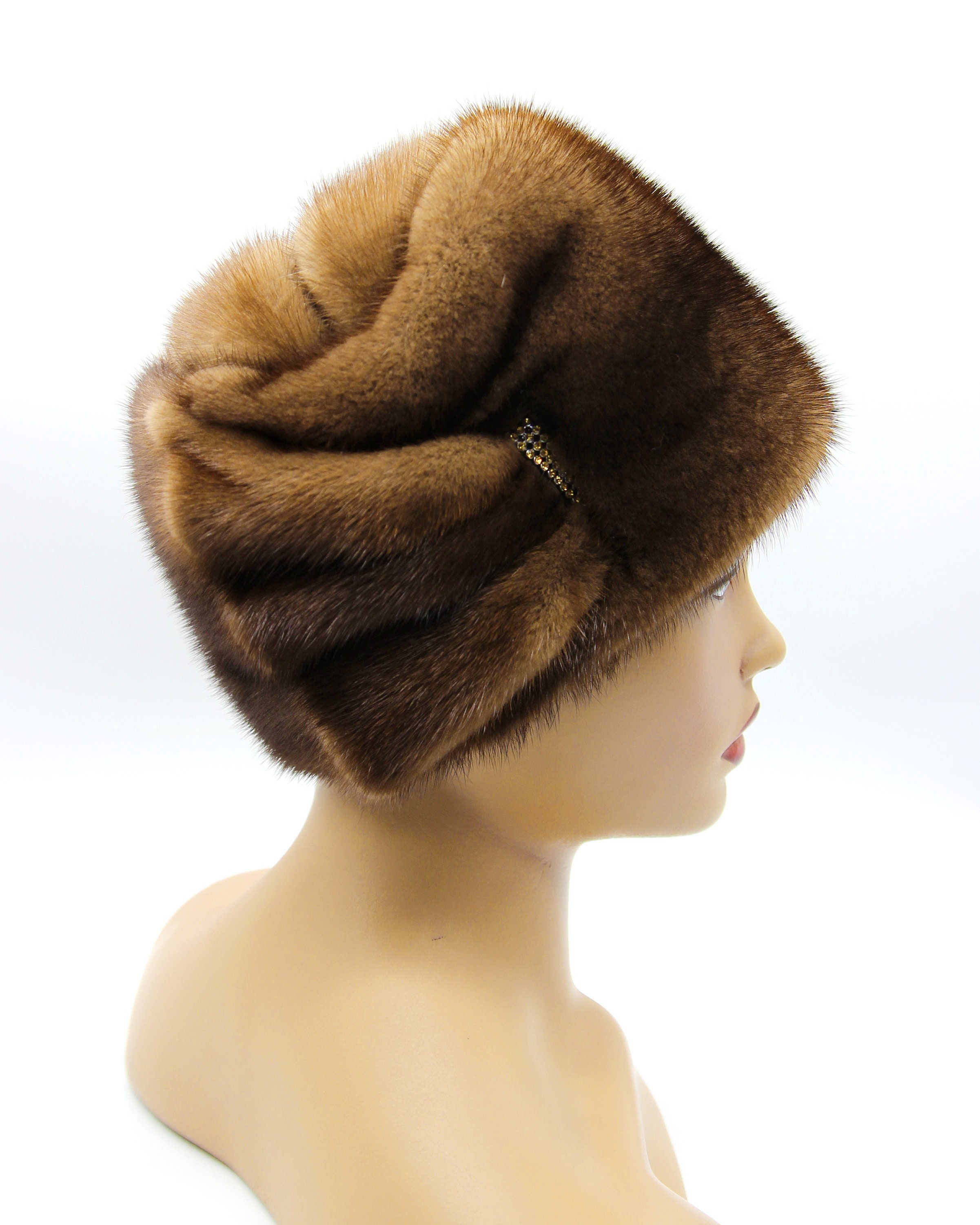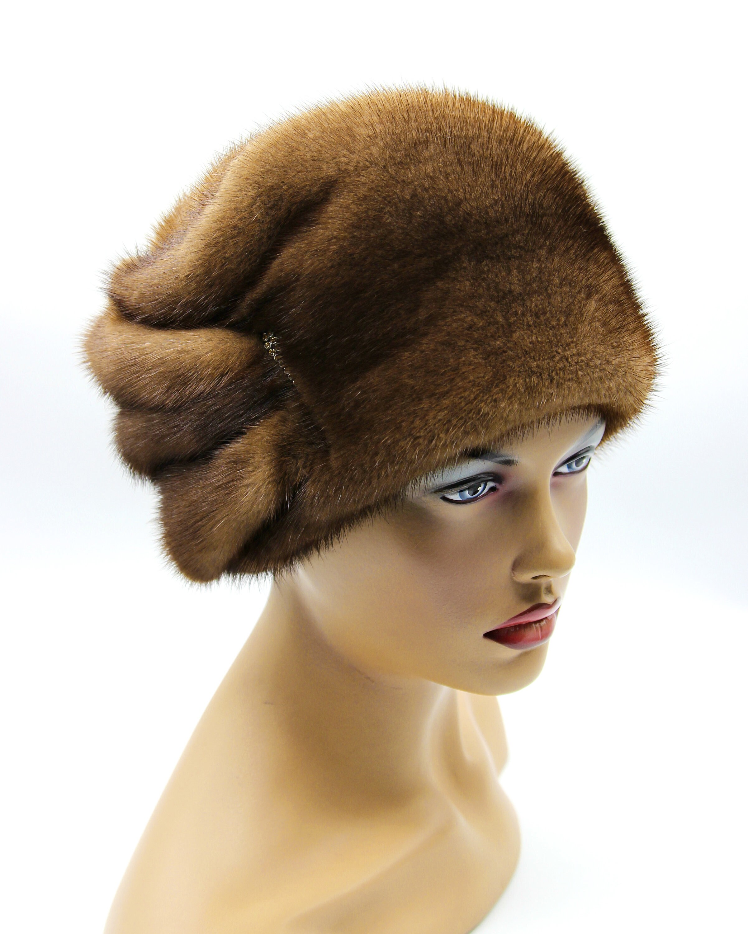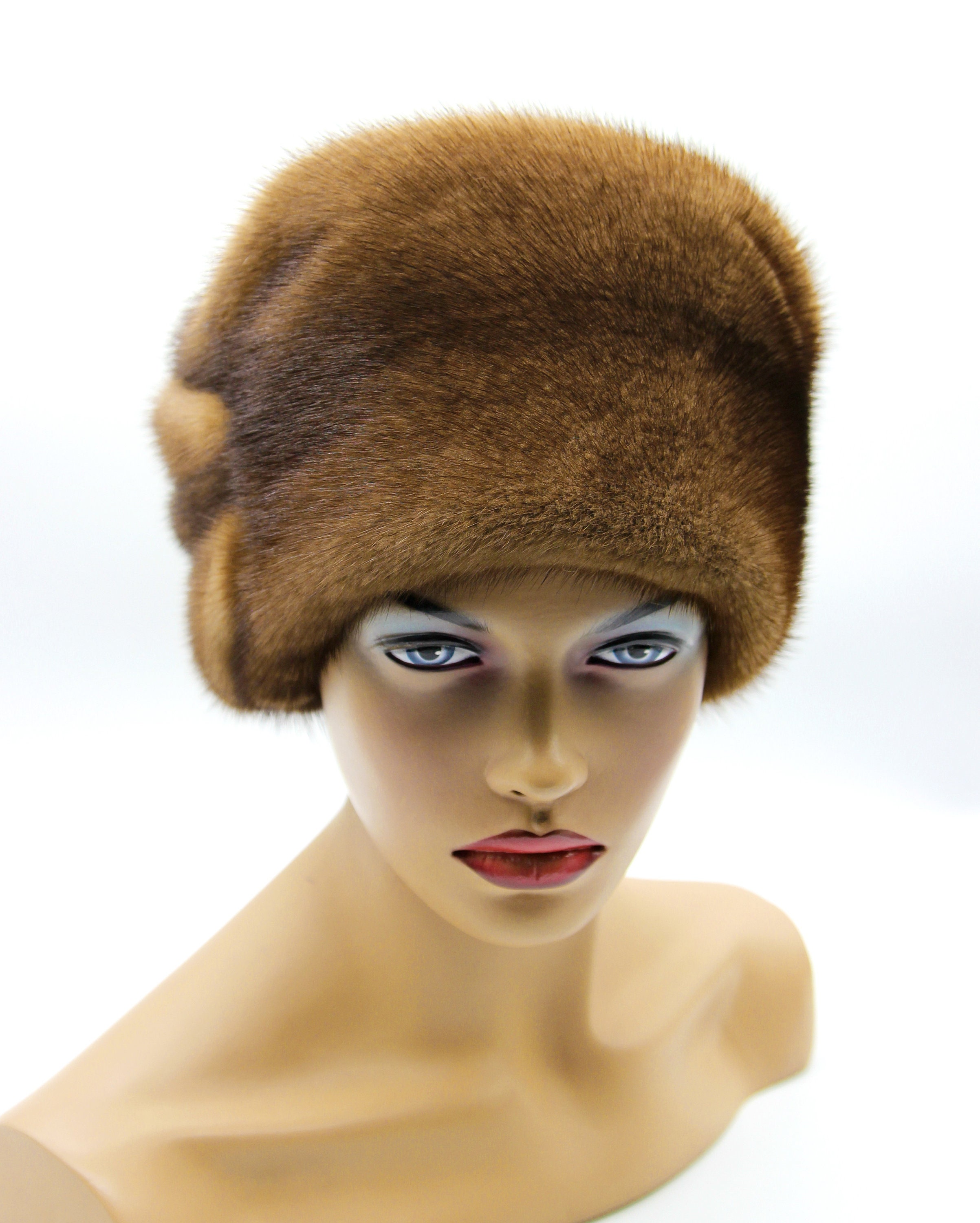 Fur hat mink women's ladies warm winter "Pilot with Tucks" headdress
