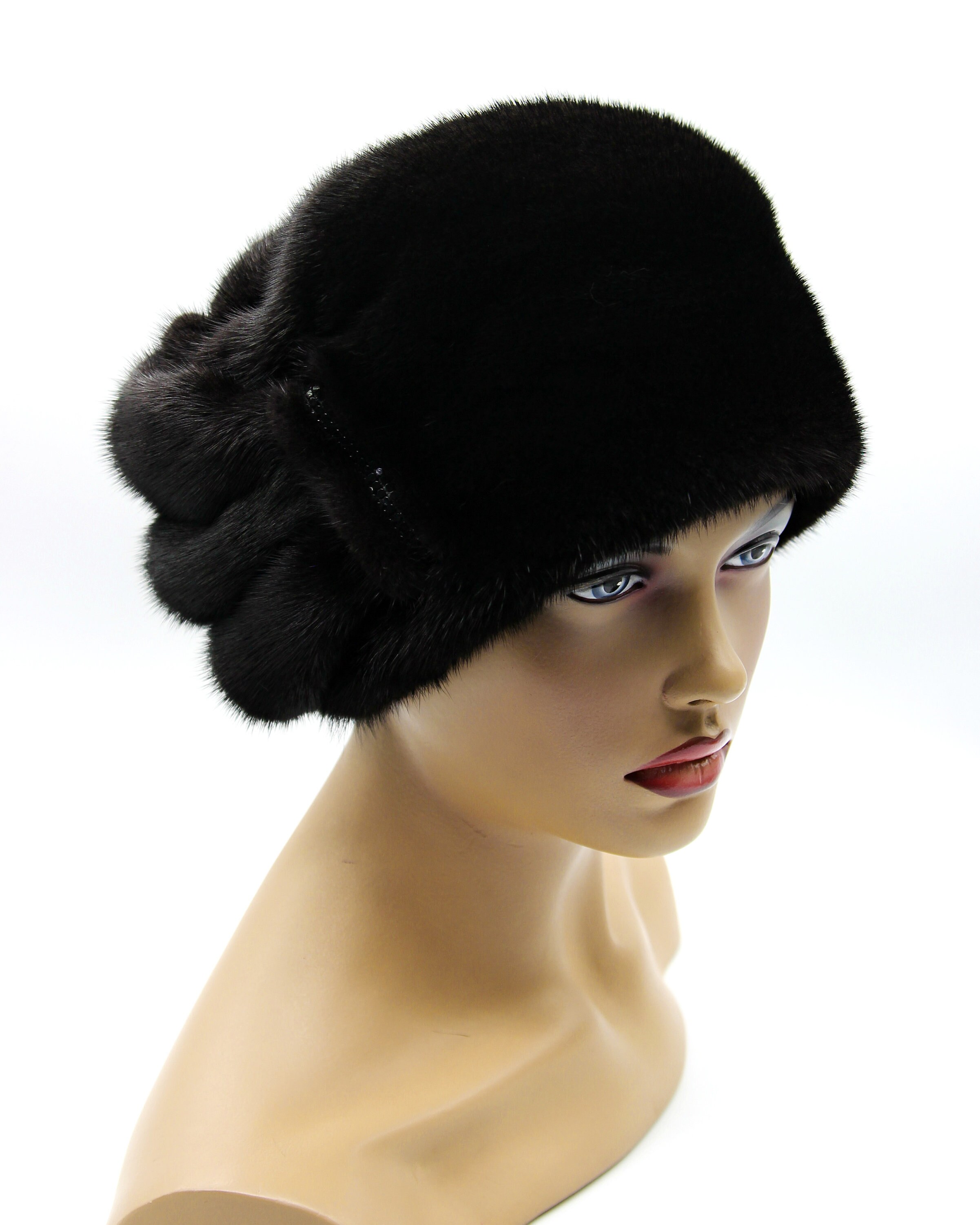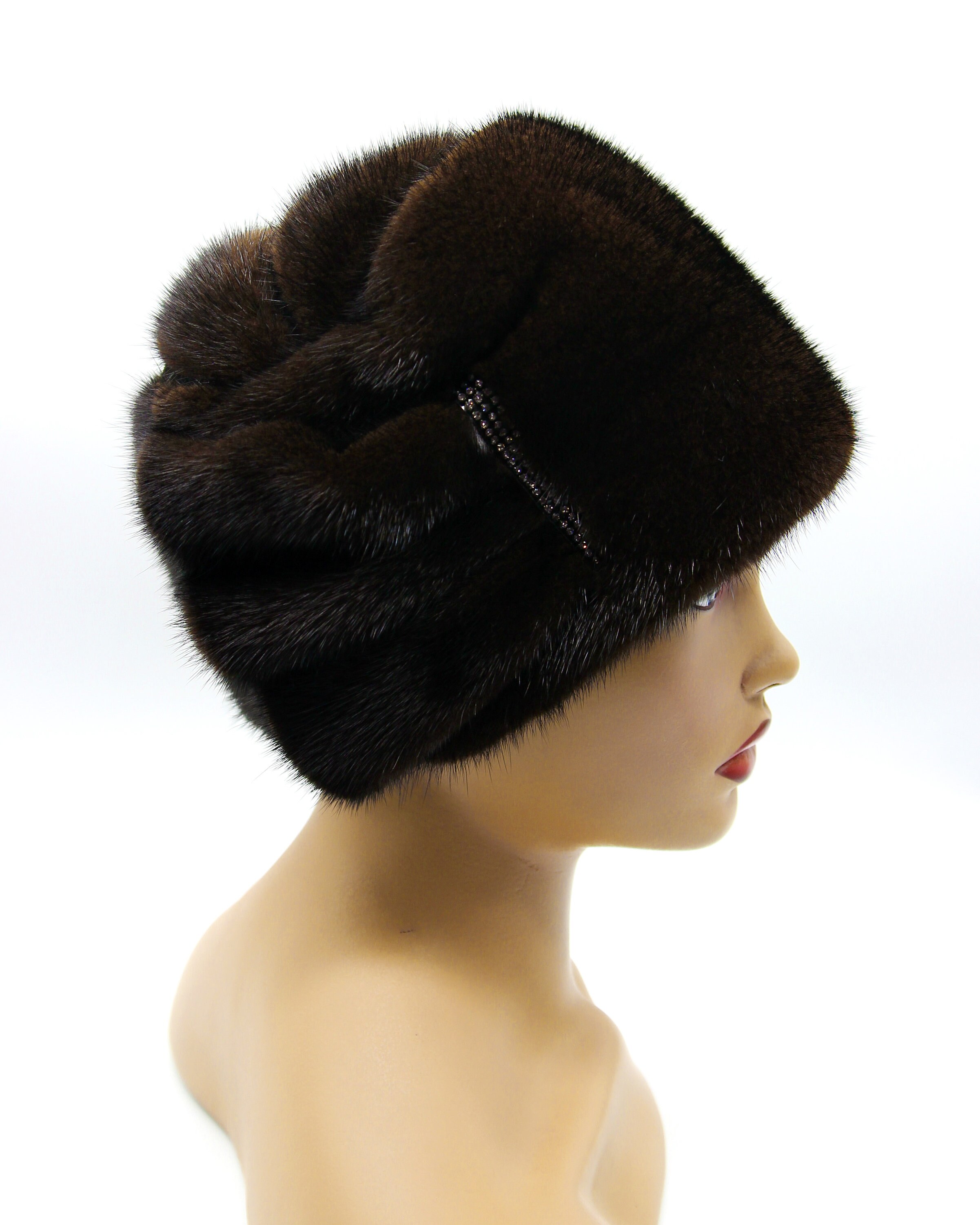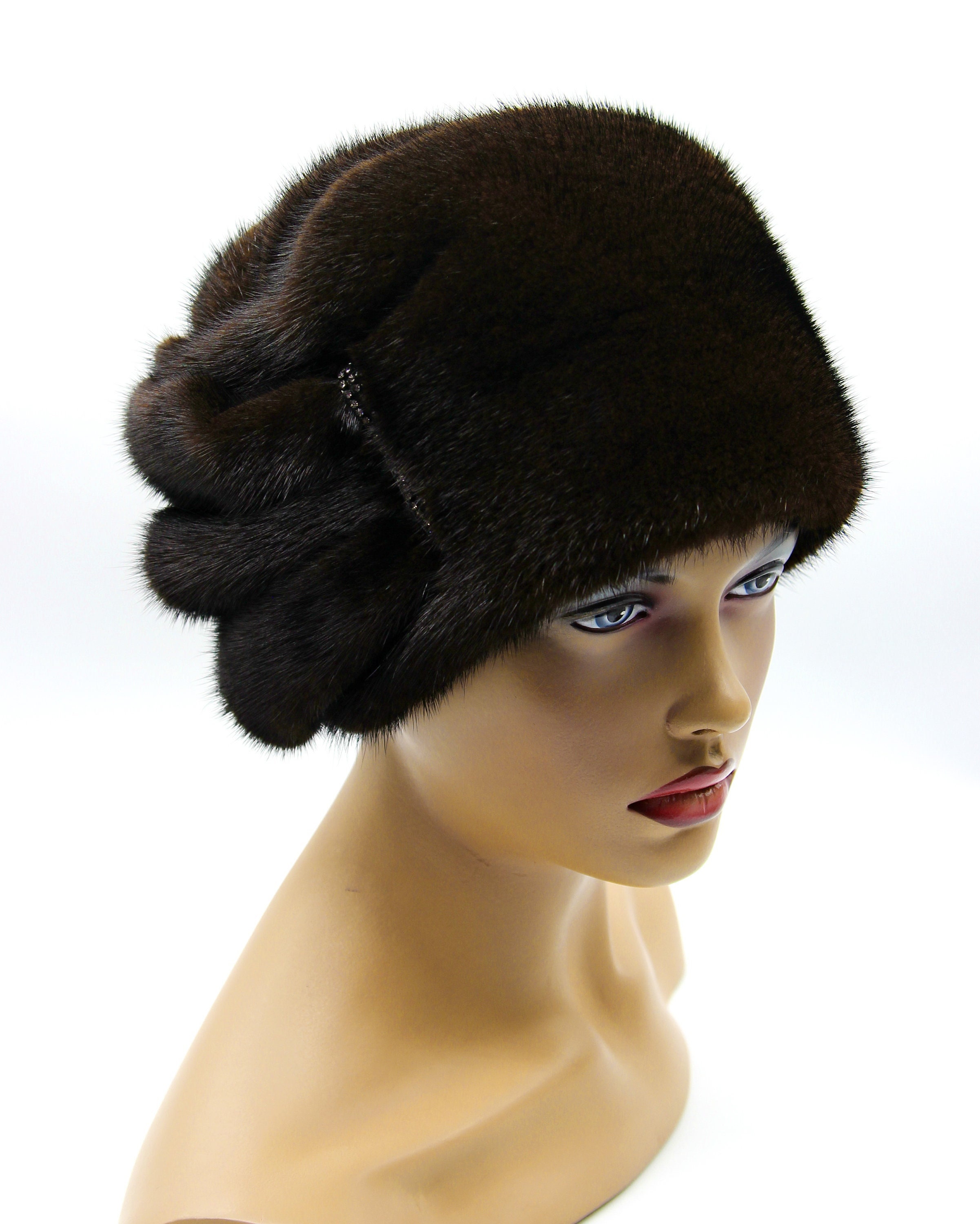 Fur hat mink women's ladies warm winter "Pilot with Tucks" headdress
