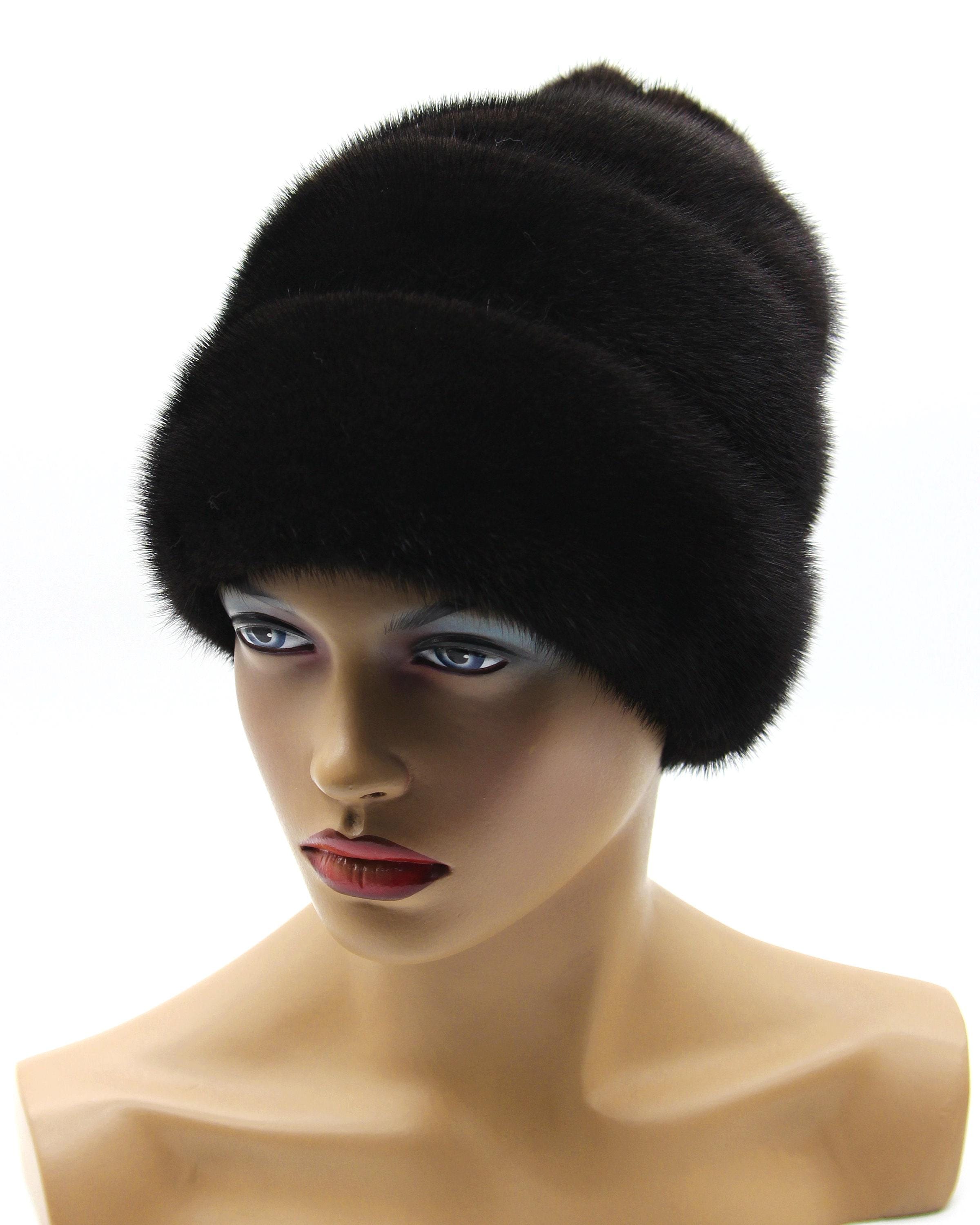 Black Mink Fur Hat "Rose" - Handcrafted Luxury Winter Headwear