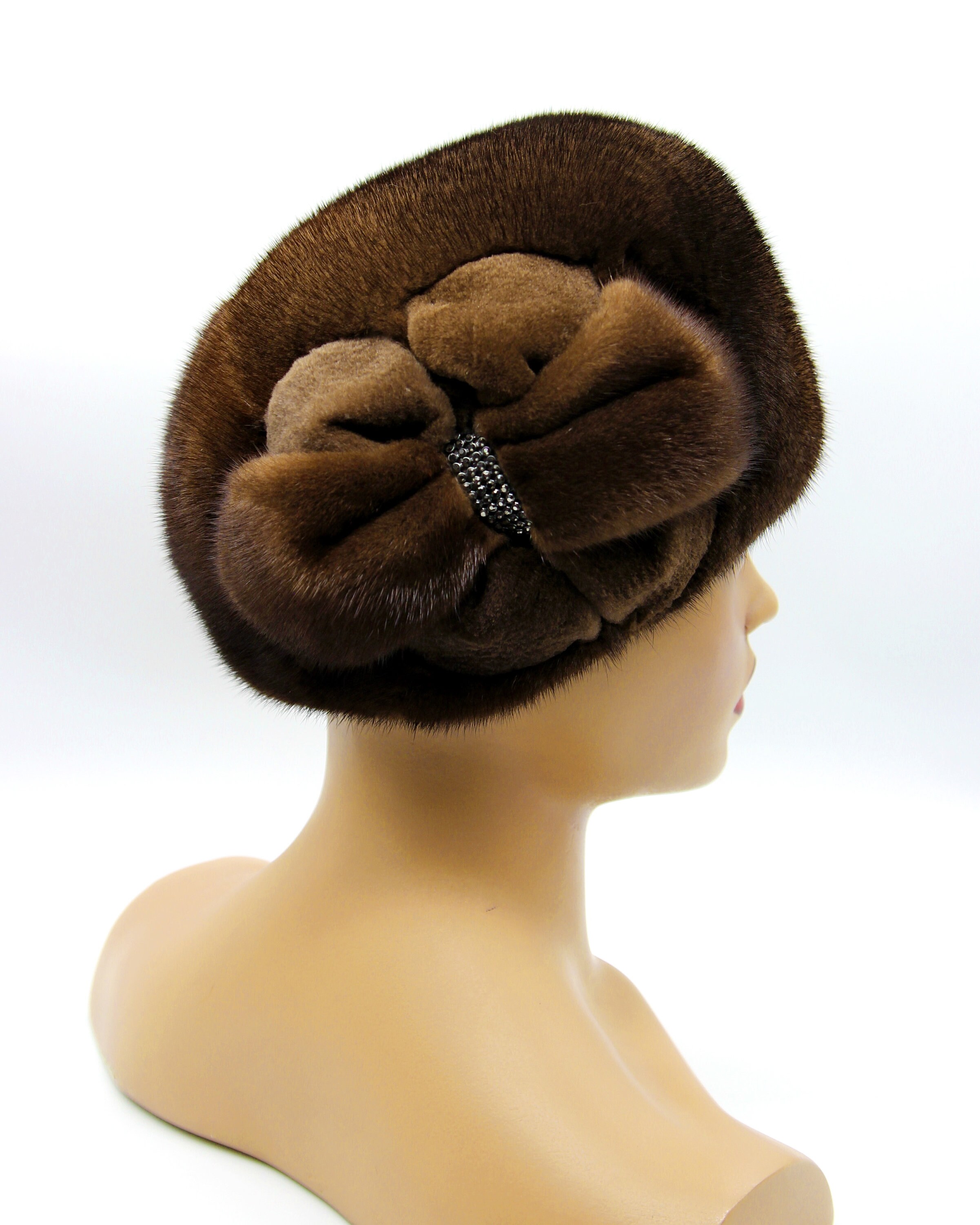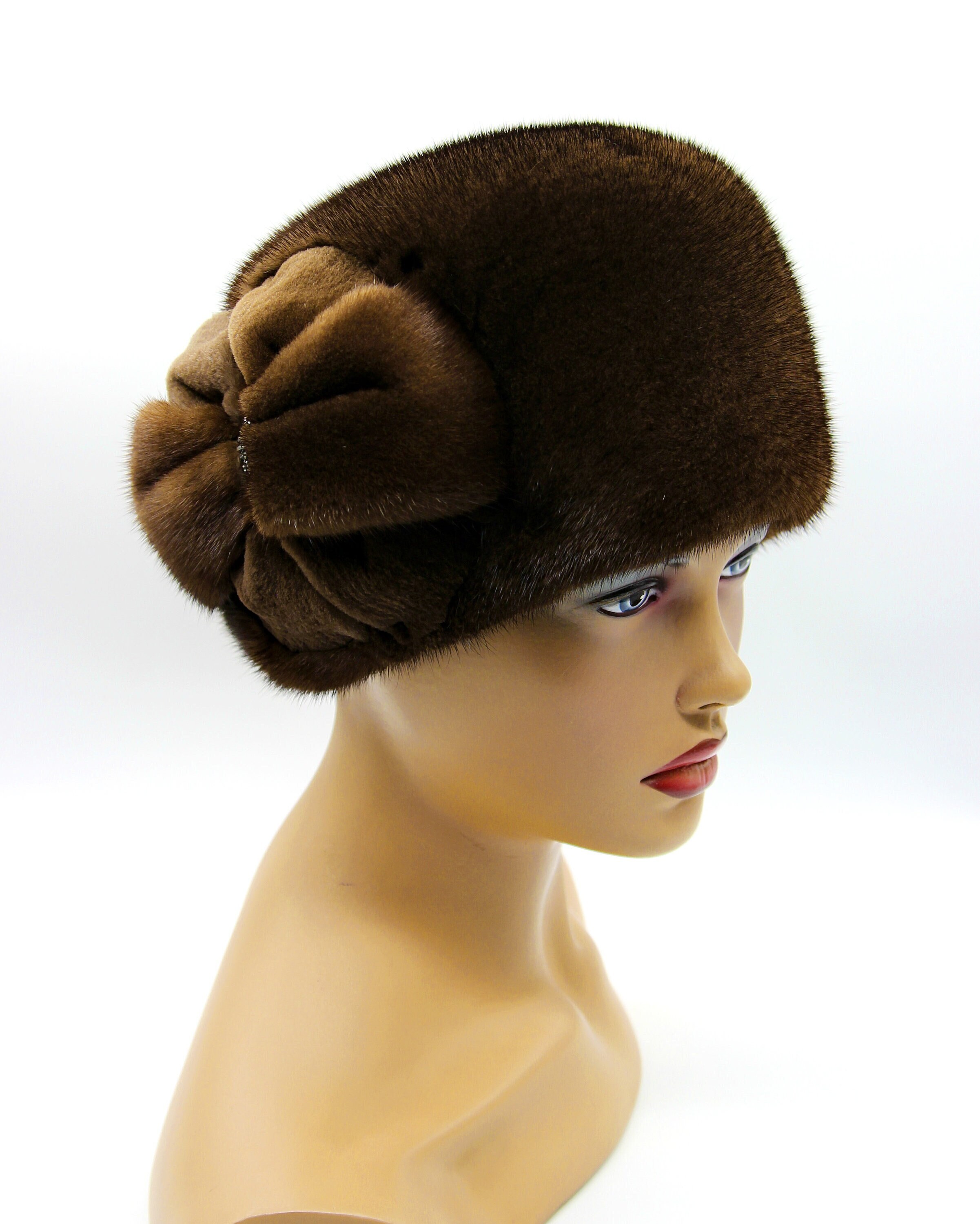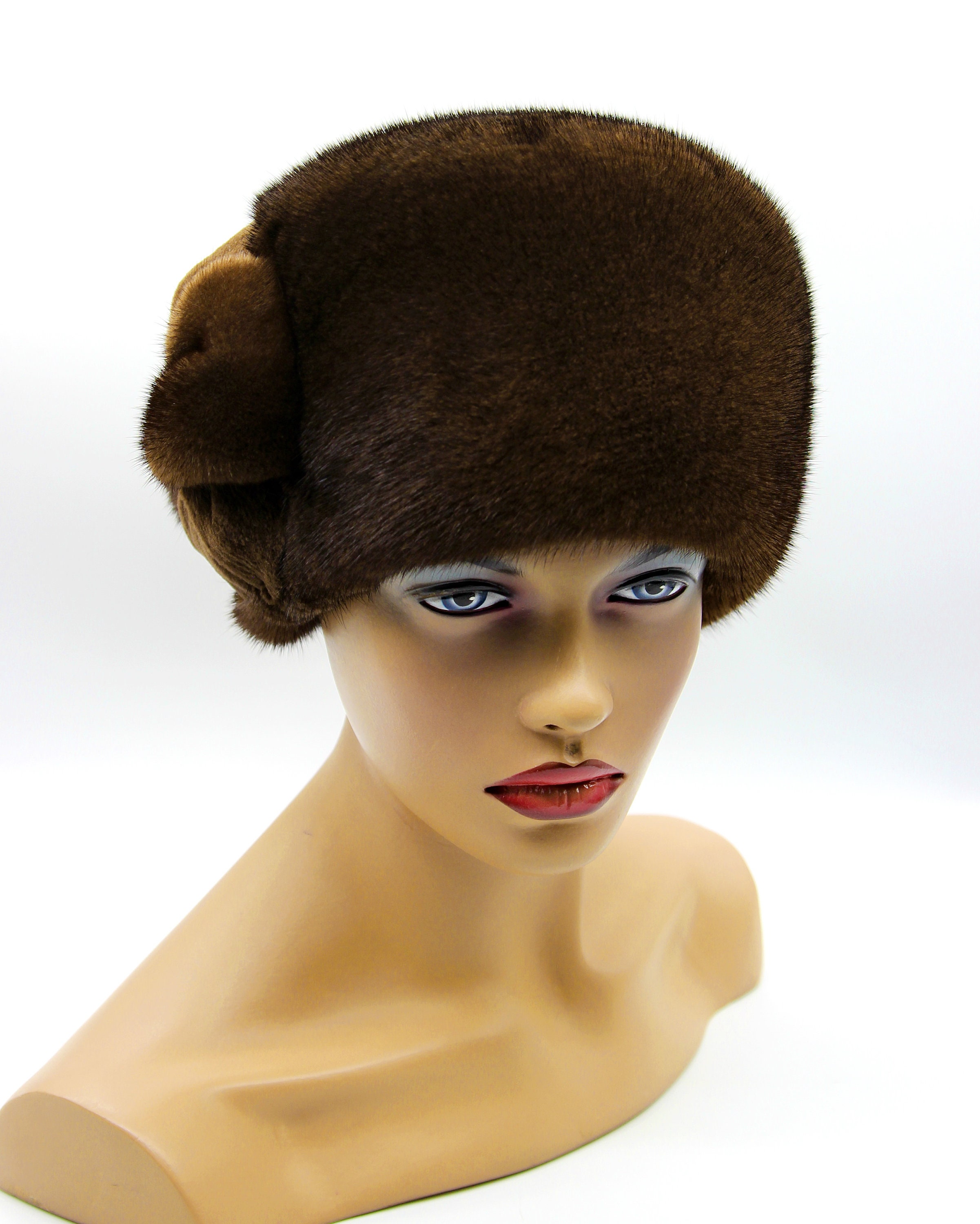 Experience the warmth and elegance of the "Kubanka" - a splendid Women's Fur Hat adorned with a flower, a fine creation from Ukraine. Tailored from high-quality mink fur, this hat stands as an ideal winter headdress that combines style and coziness.