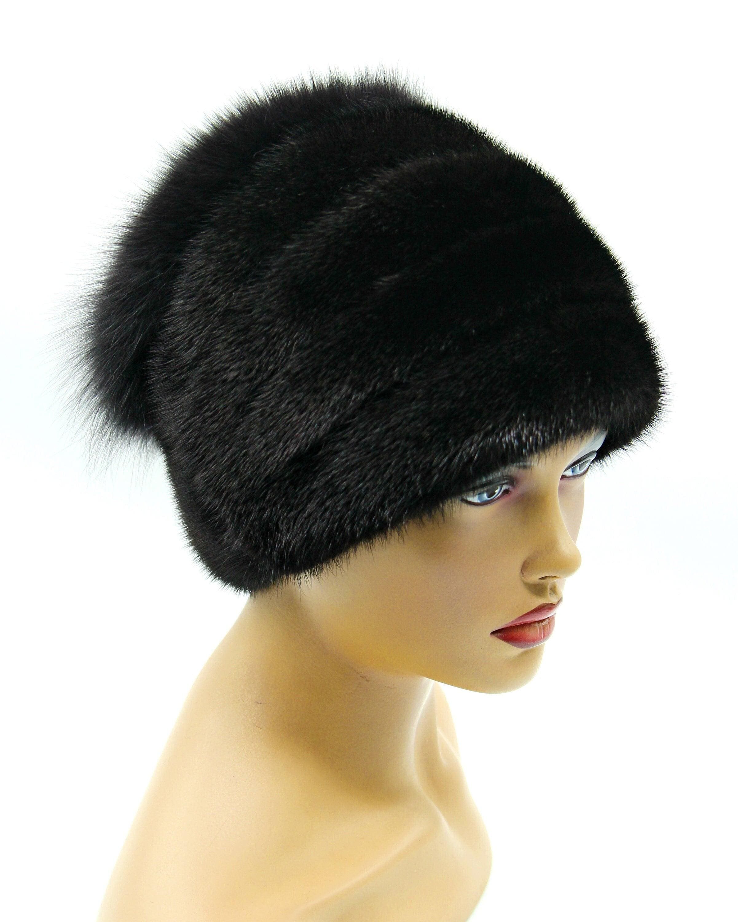 Black Fox Mink Fur Hat Women Winter Anyuta - Handmade Luxury Warm Headwear Classic Timeless Style