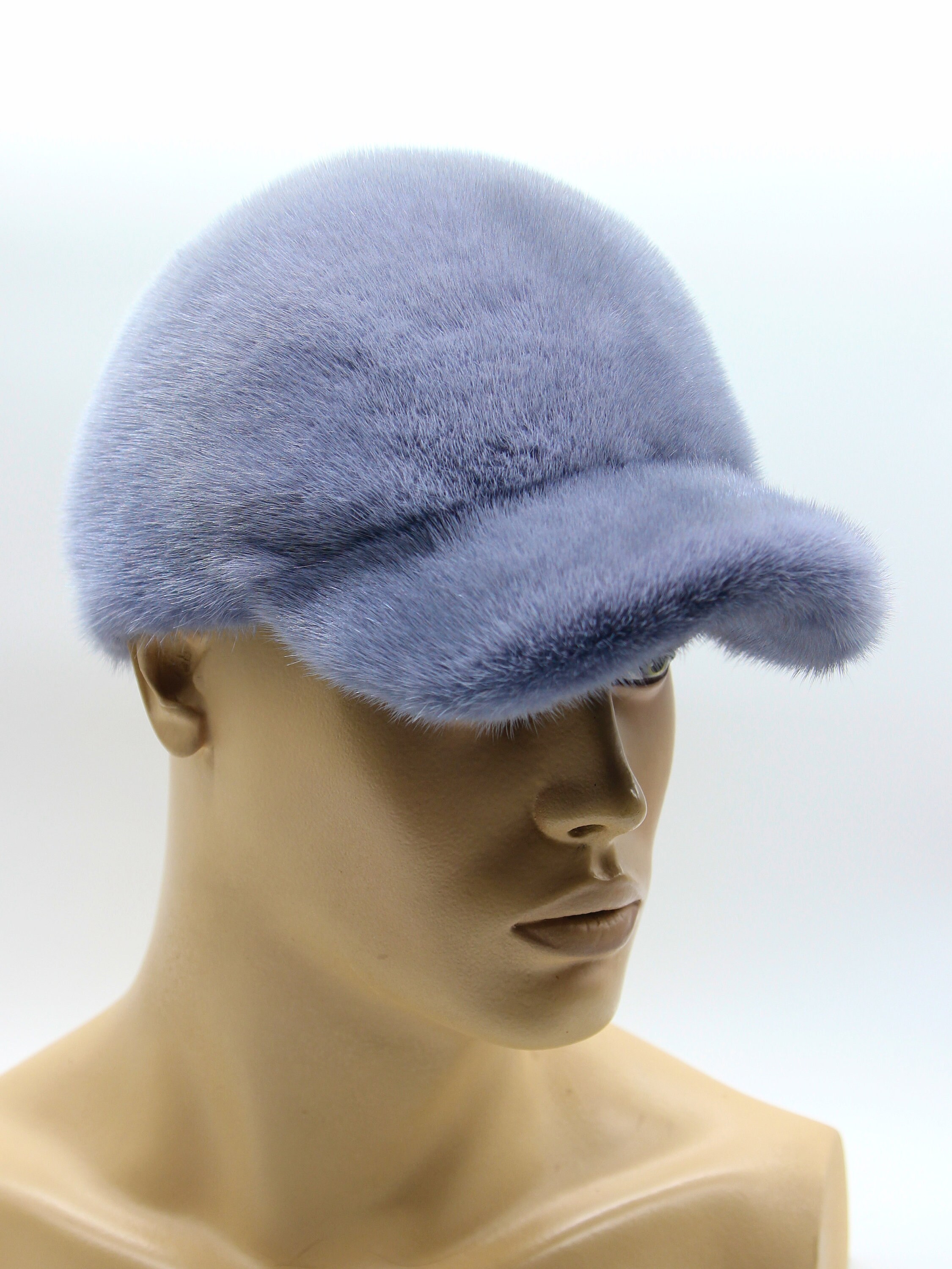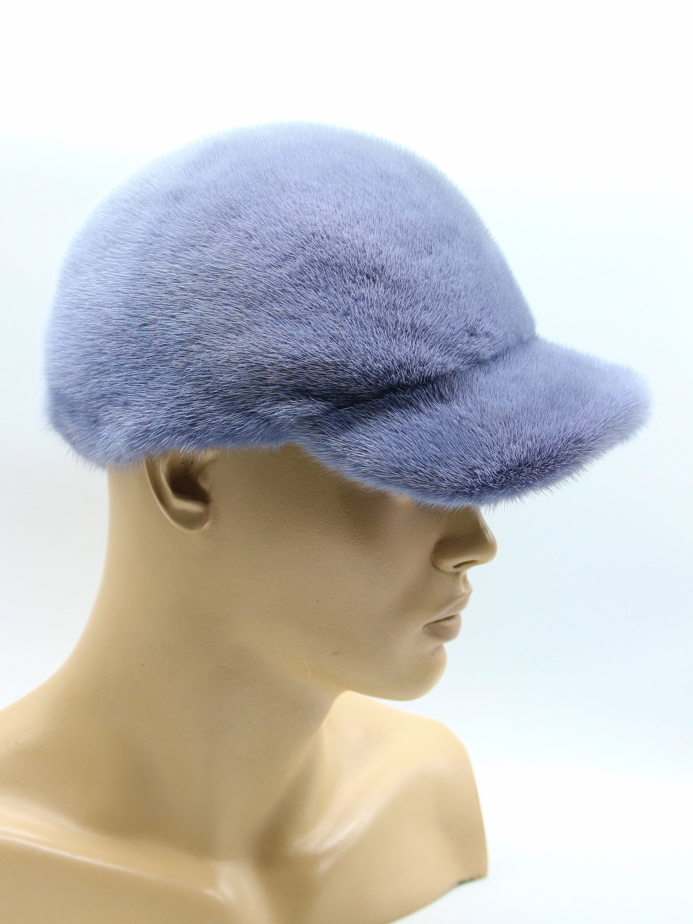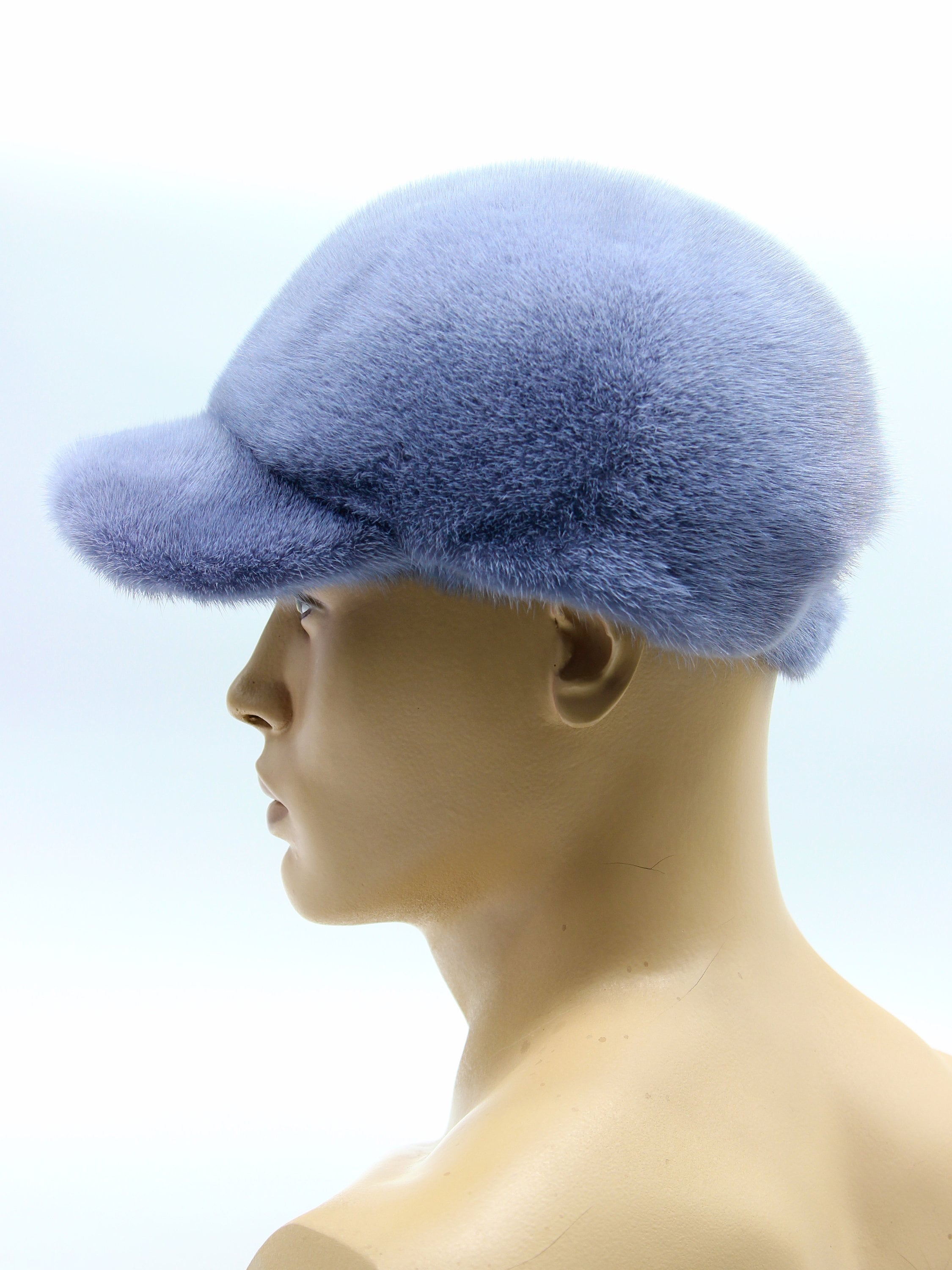 Premium Blue Dyed Mink Fur Baseball Cap - Luxury Winter Headwear