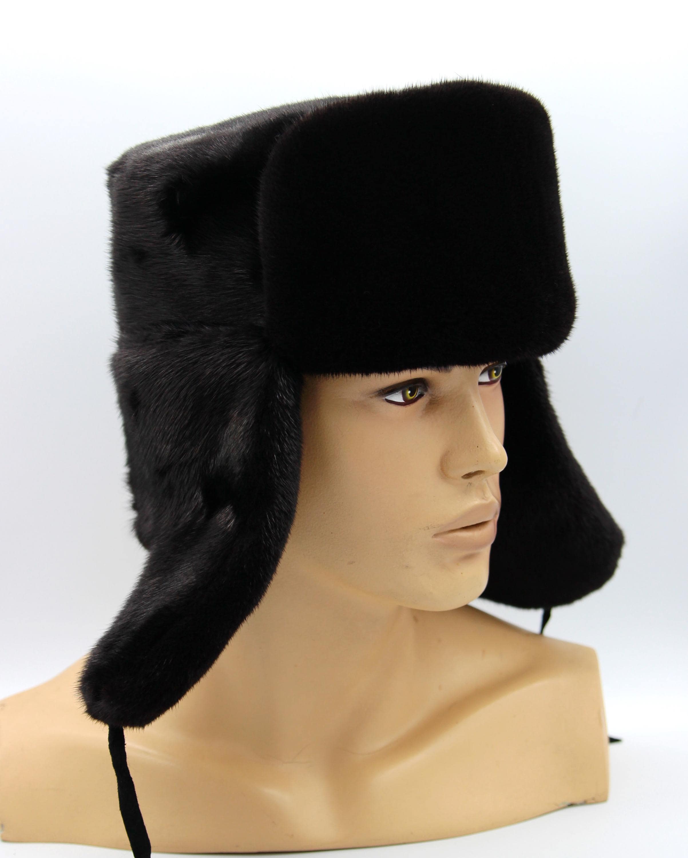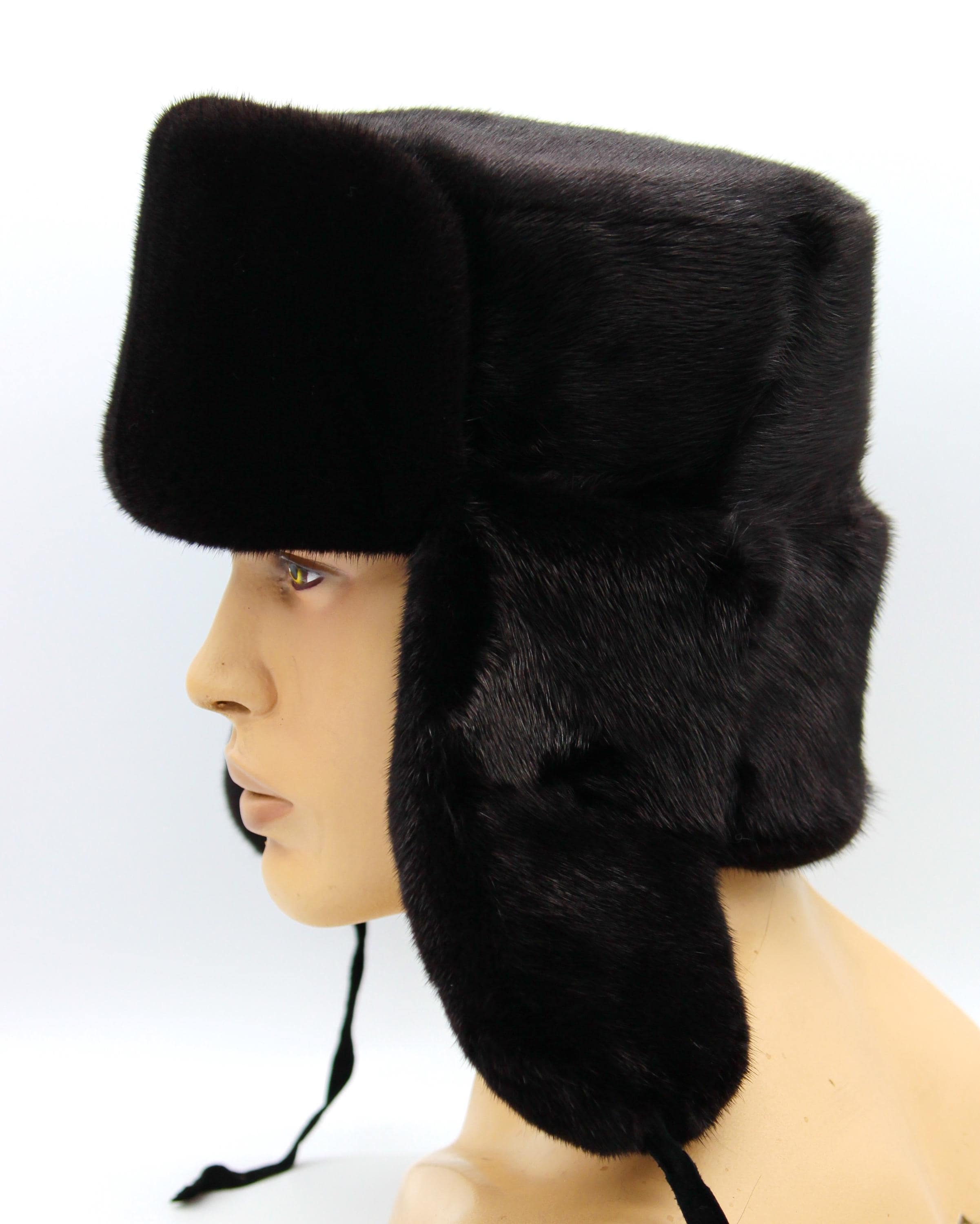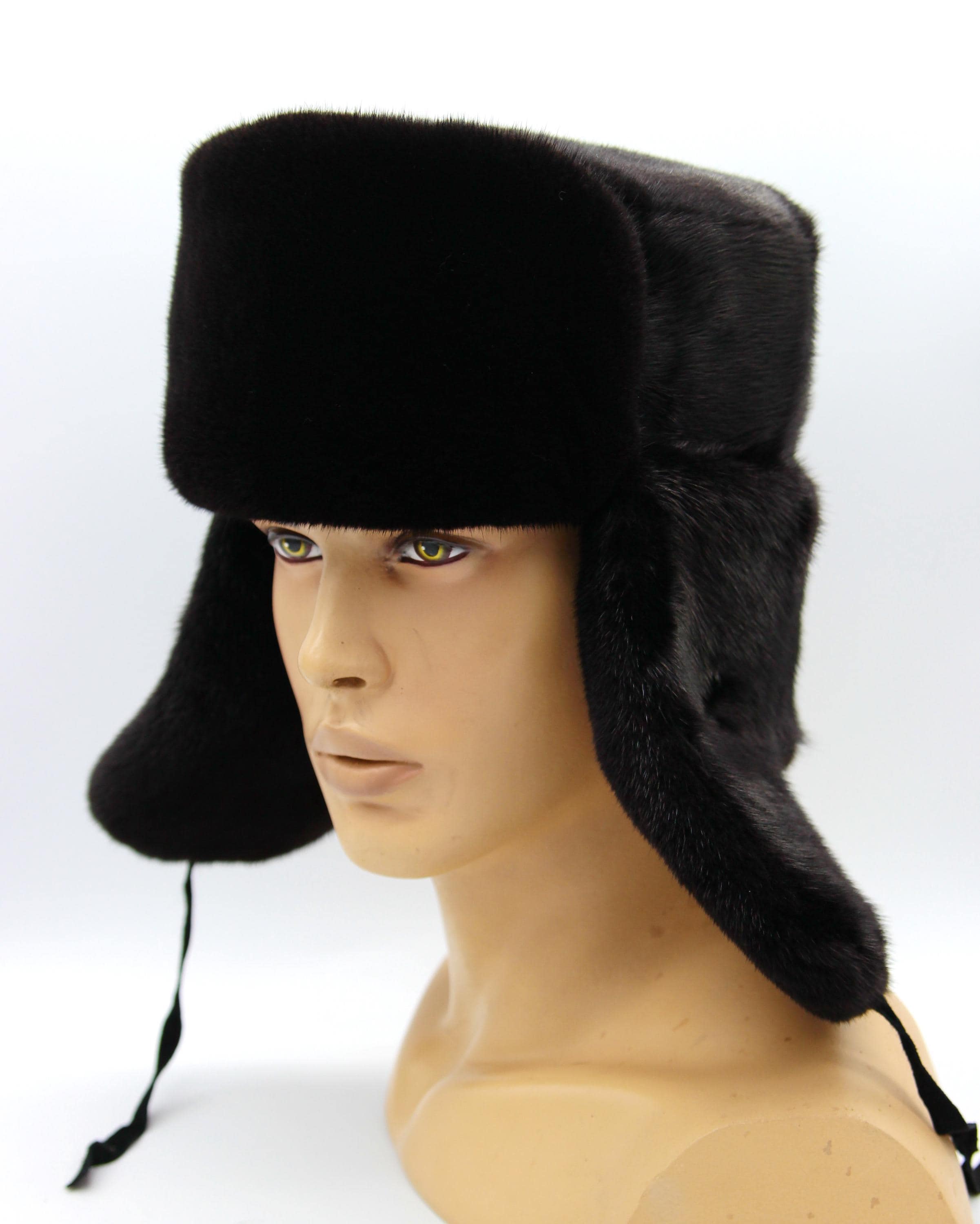 Premium Black Mink Ushanka - Complete Fur Construction Excellence