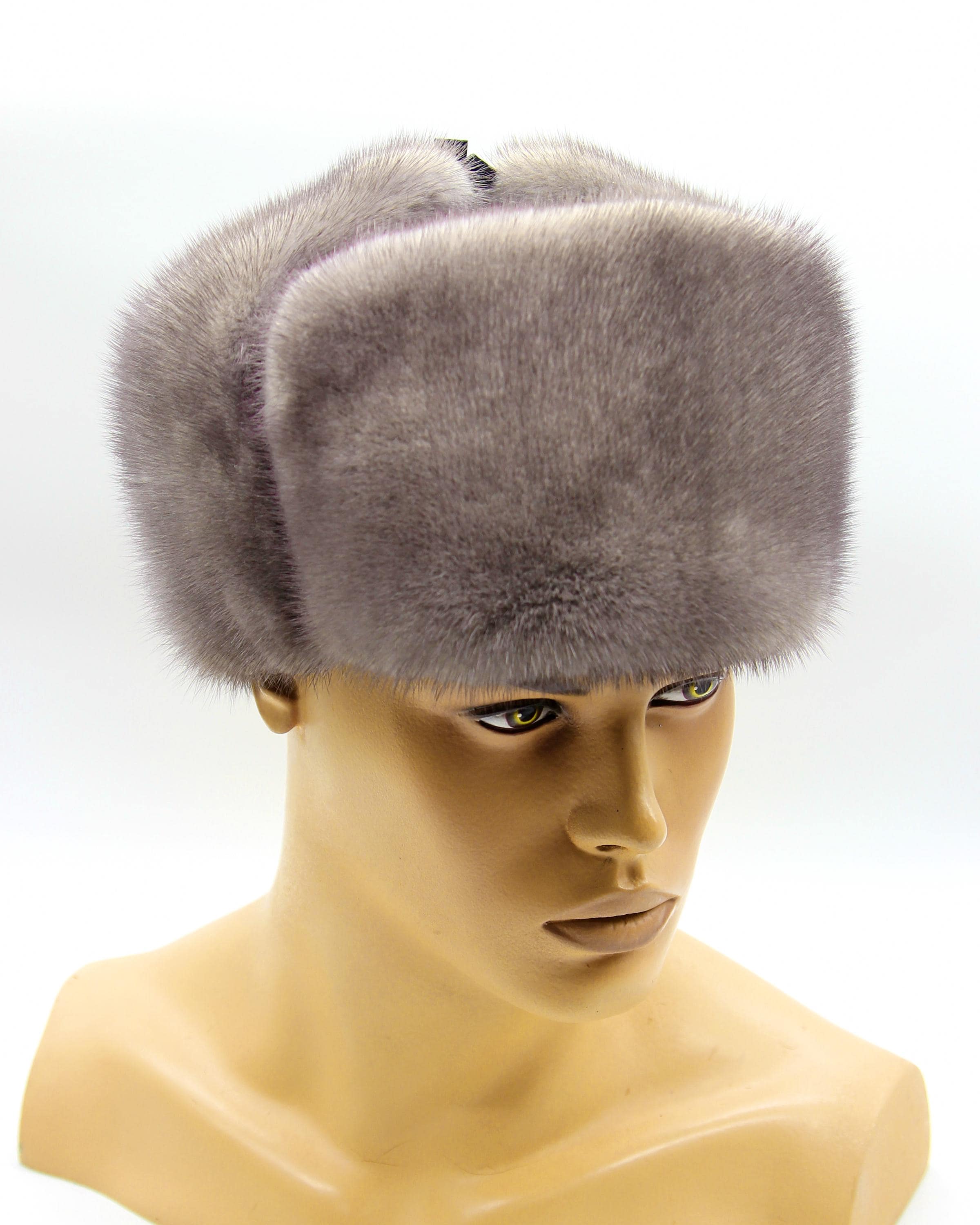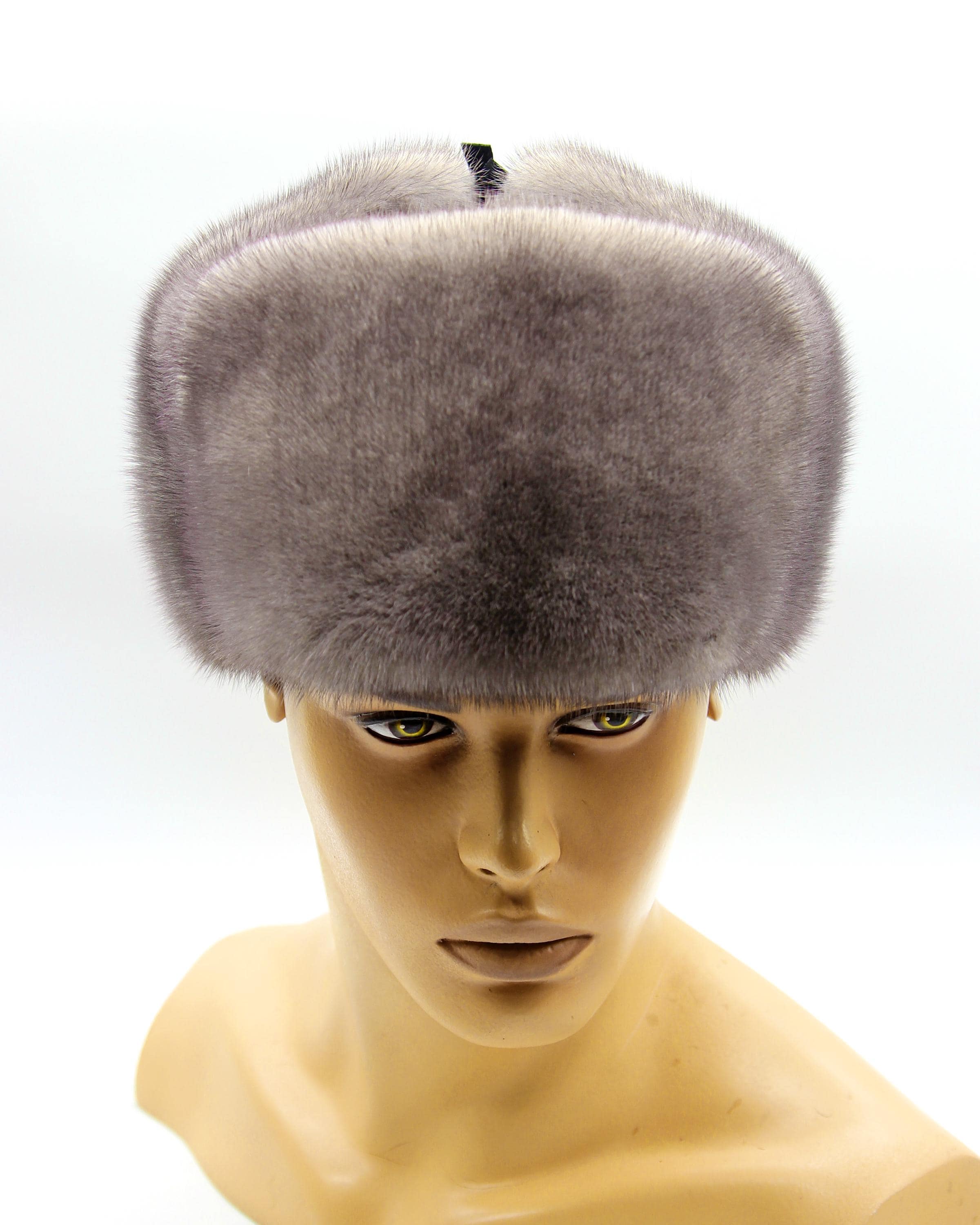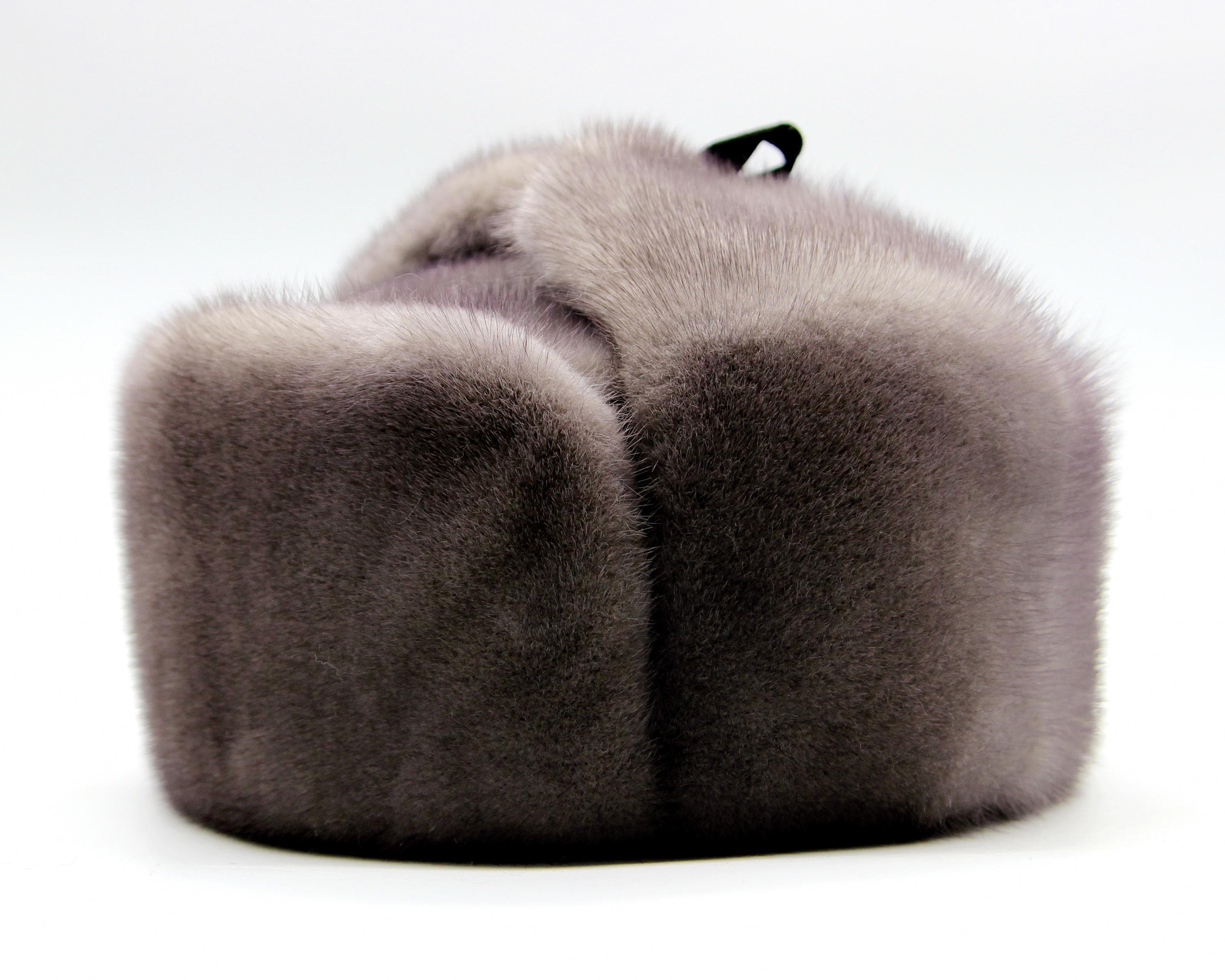 Sapphire Mink Fur Ushanka with Suede Interior - Innovative Dual-Material Winter Hat