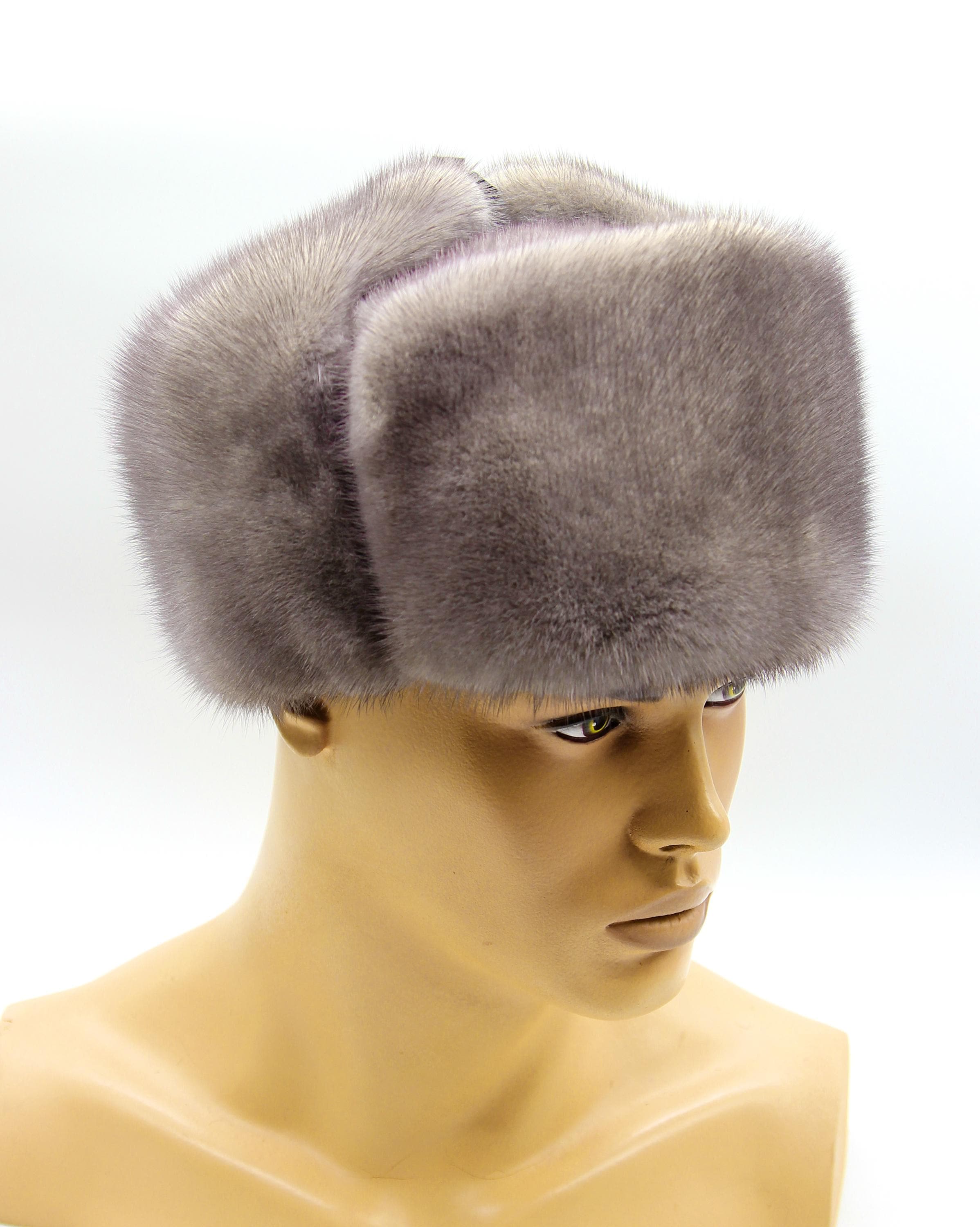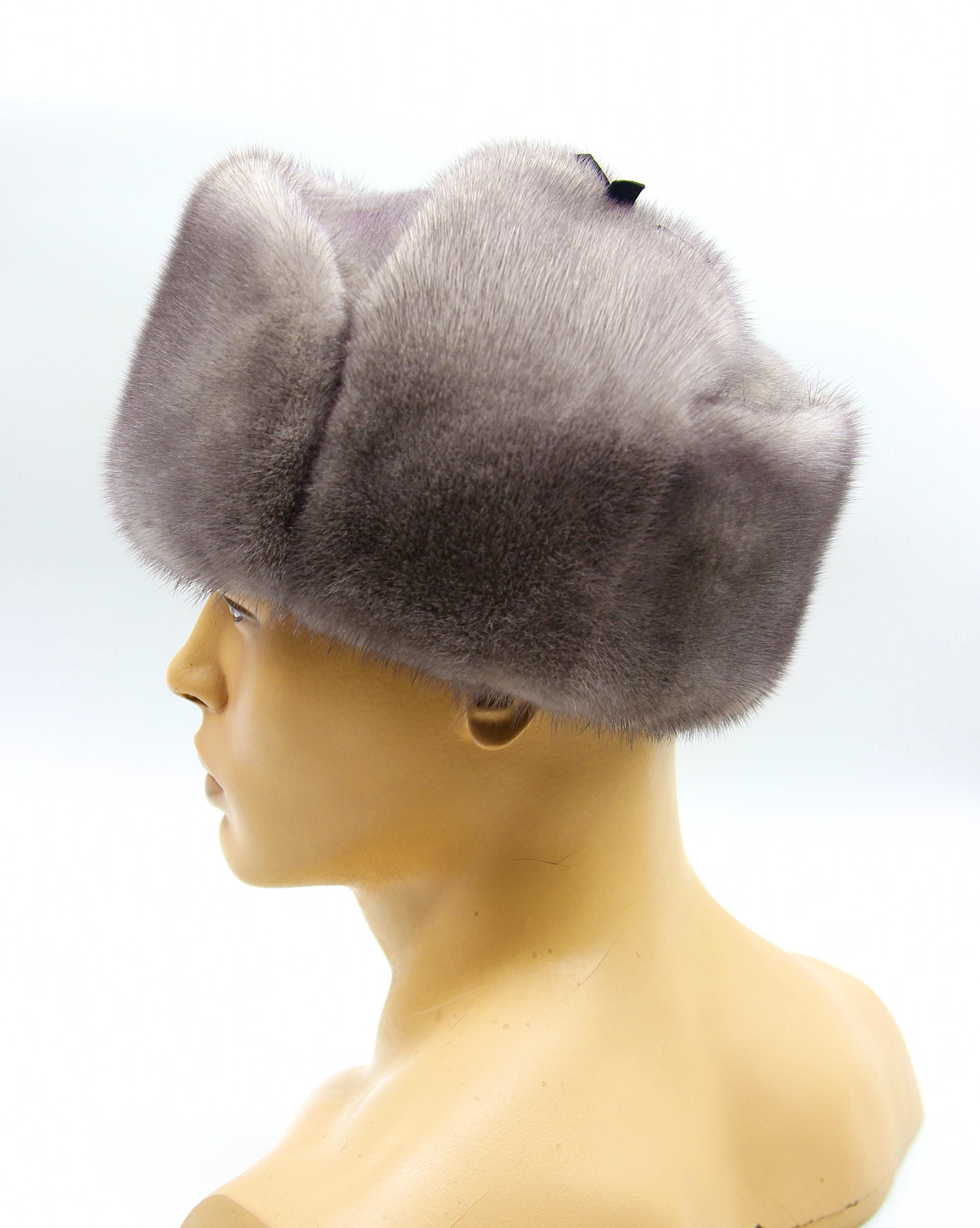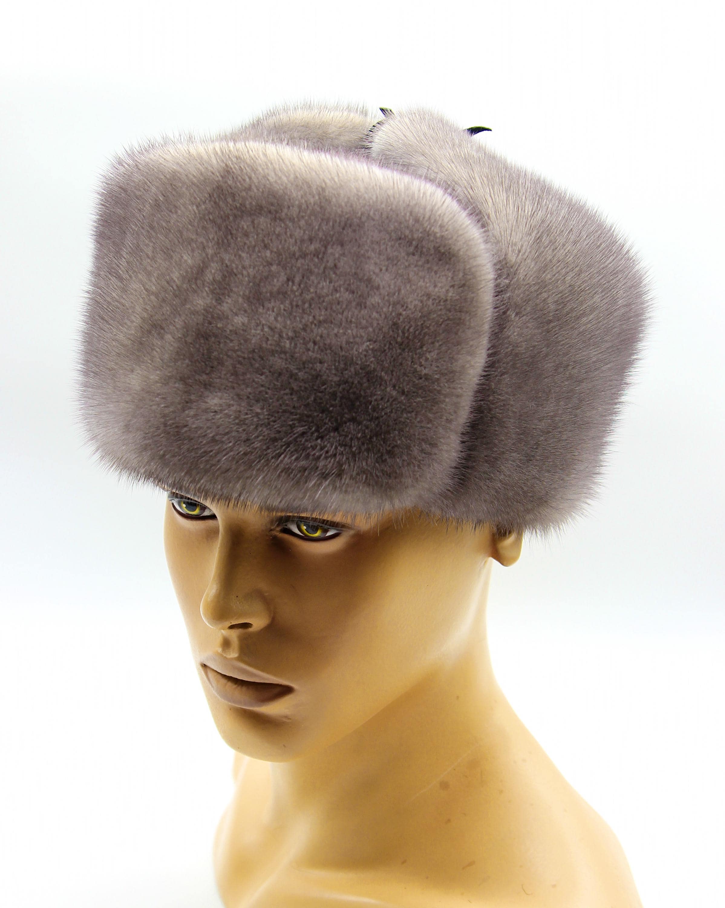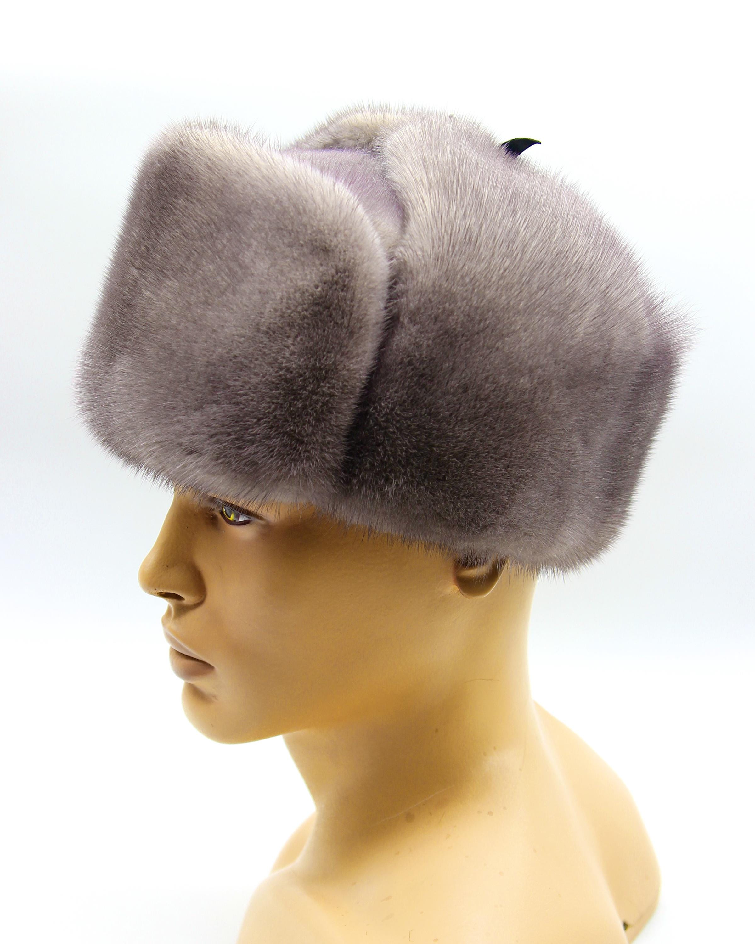 Sapphire Mink Fur Ushanka with Suede Interior - Innovative Dual-Material Winter Hat