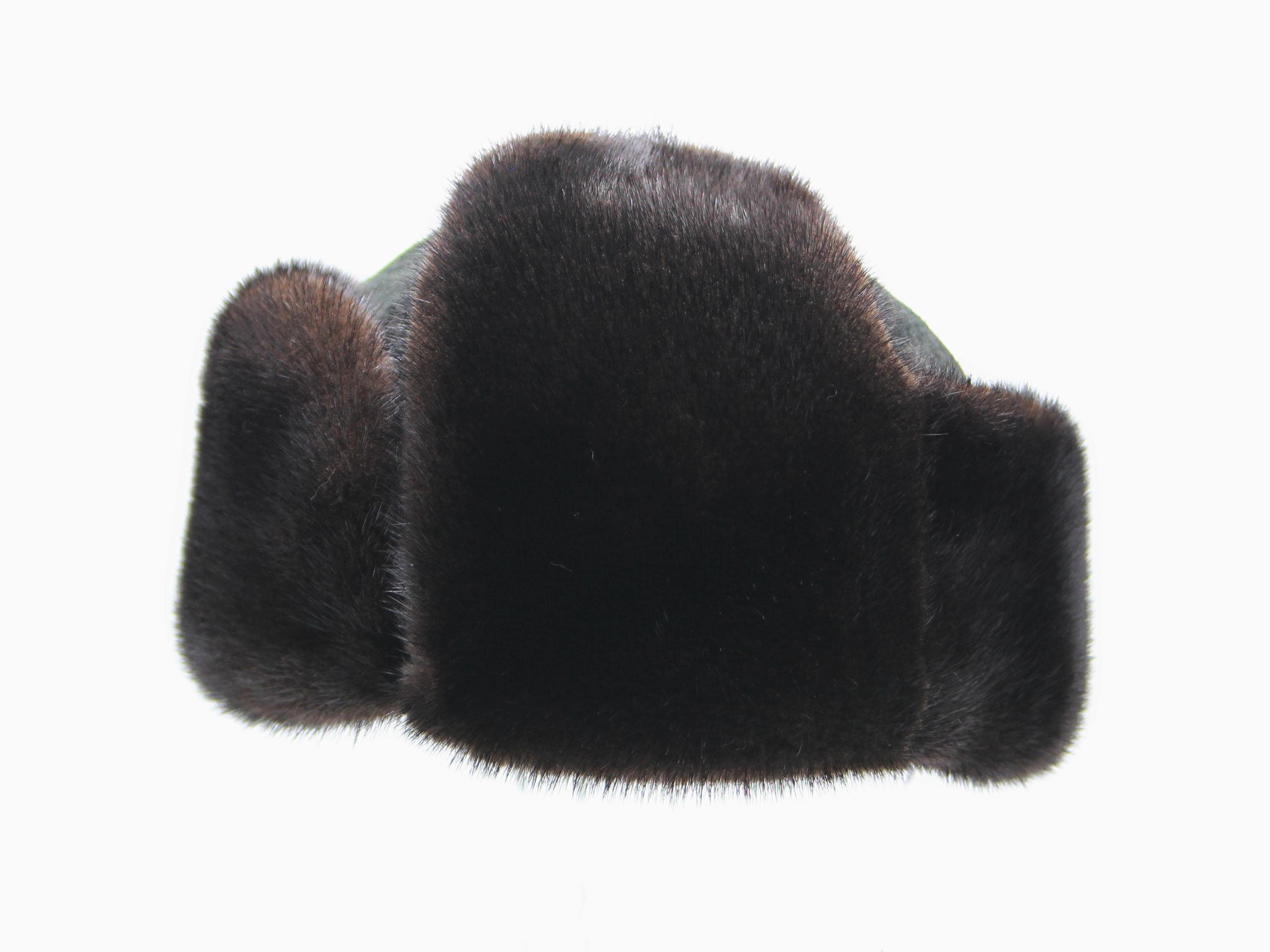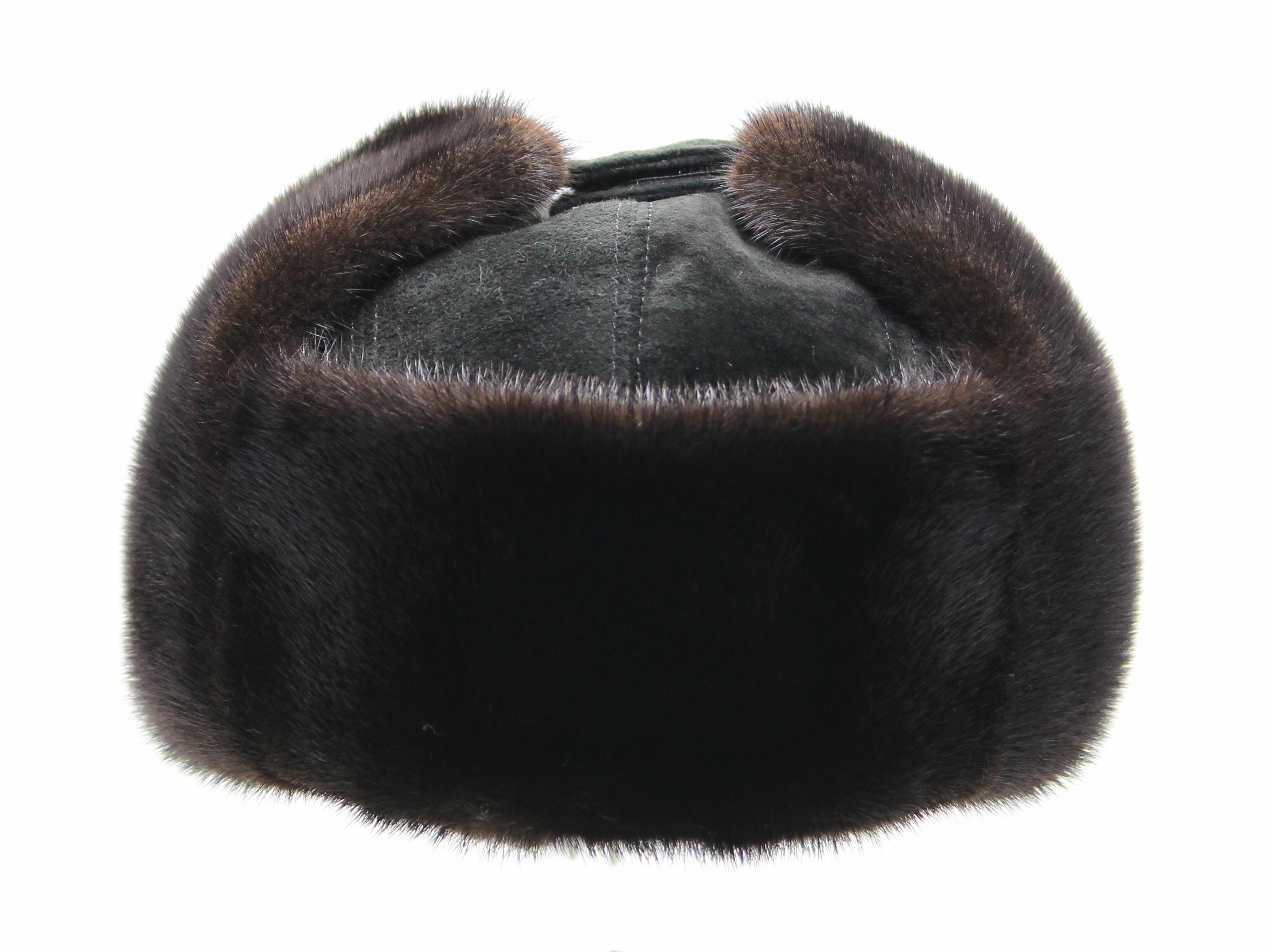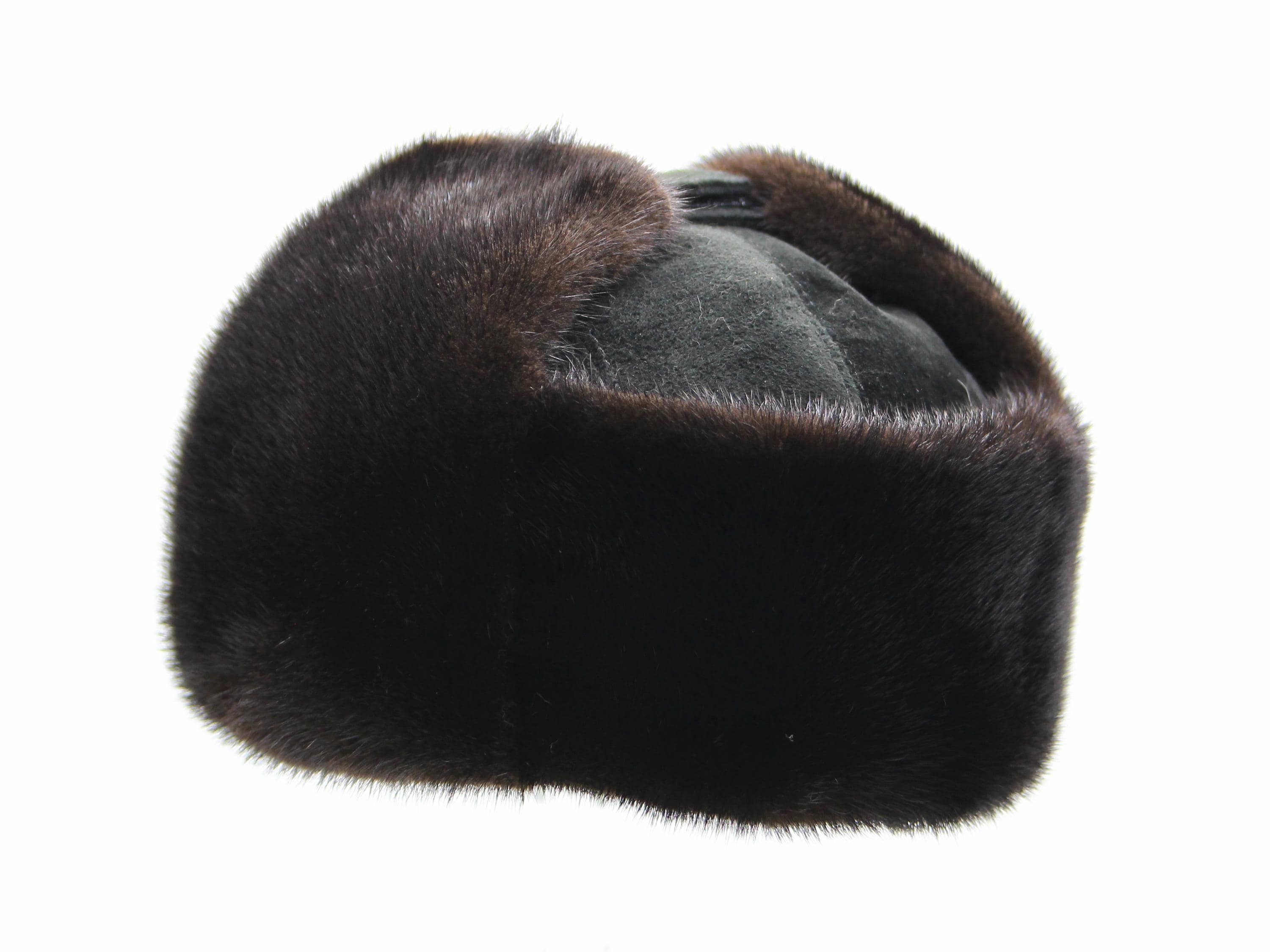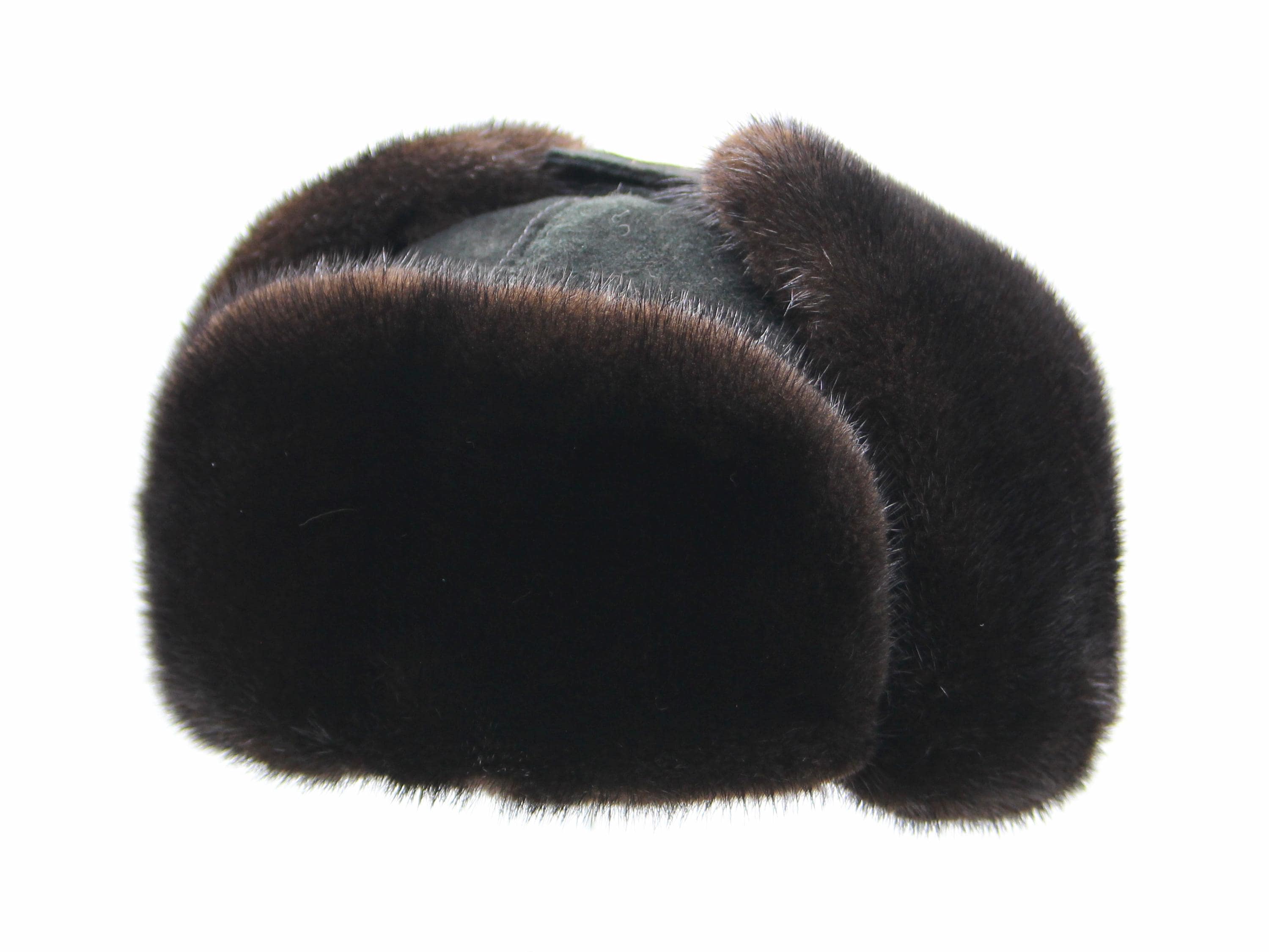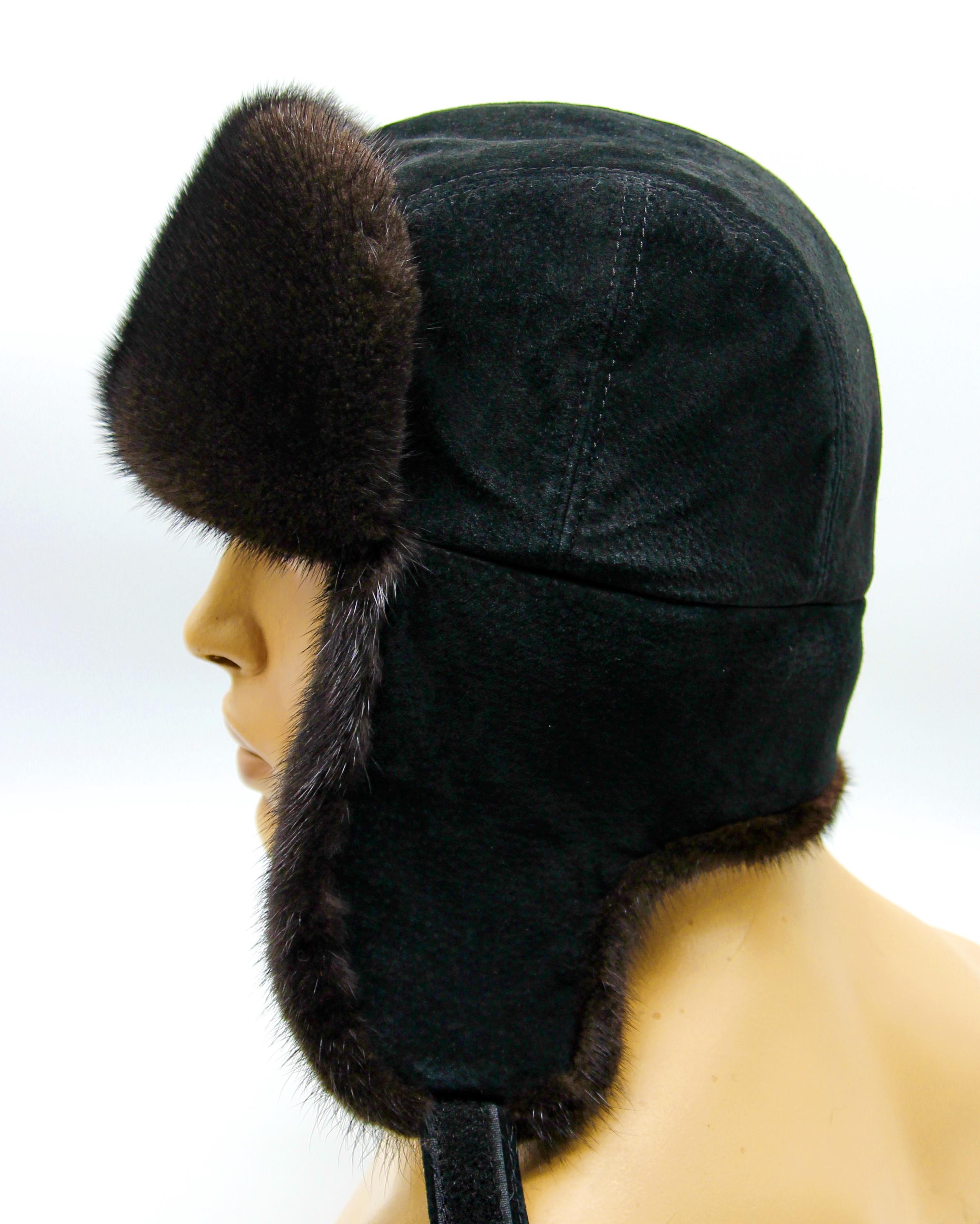 Brown Mink Fur Black Suede Ushanka Youth - Bold Contrast Winter Hat
