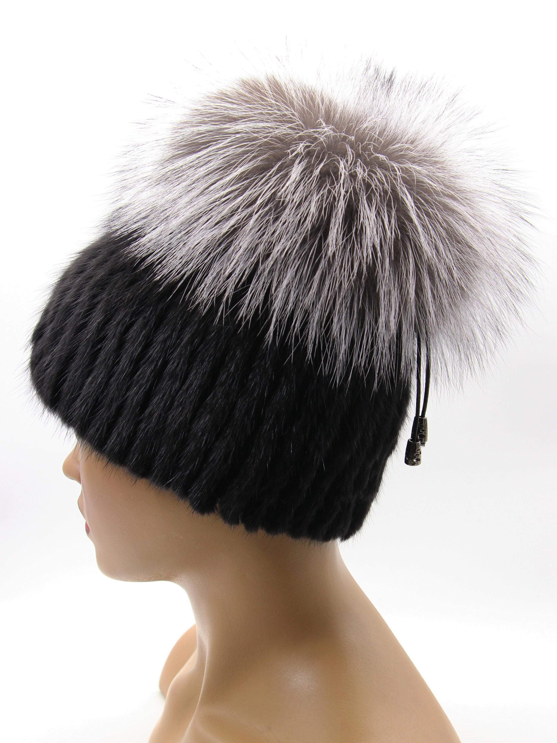 You know what's amazing about working with genuine fur? Every piece tells its own story. This black fur hat with gray pompom came to me during one of those brutal February storms here in Ukraine. I was experimenting with different natural fur combinations at 2 AM, and when I paired that silvery-gray fur pompom with the deep black fur... it just clicked.