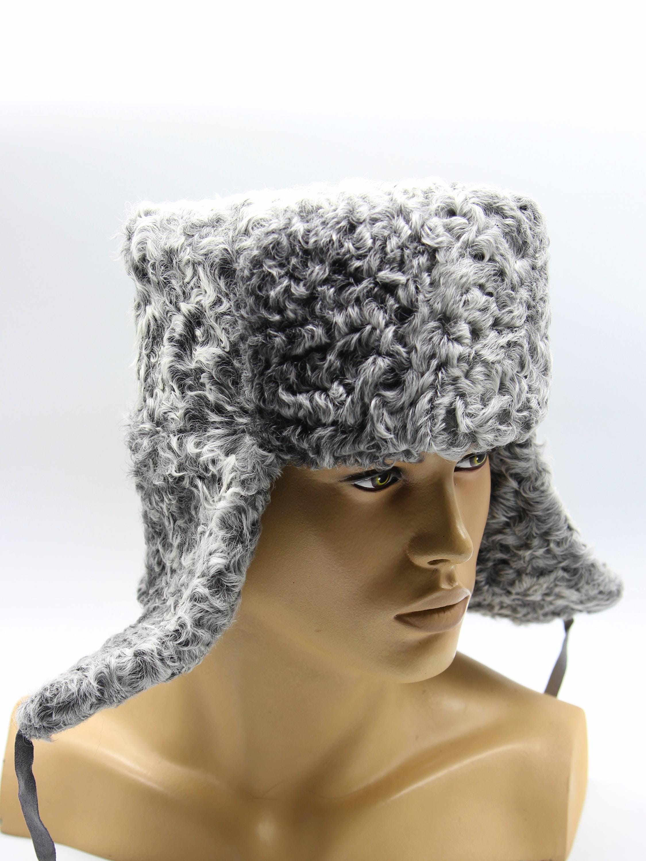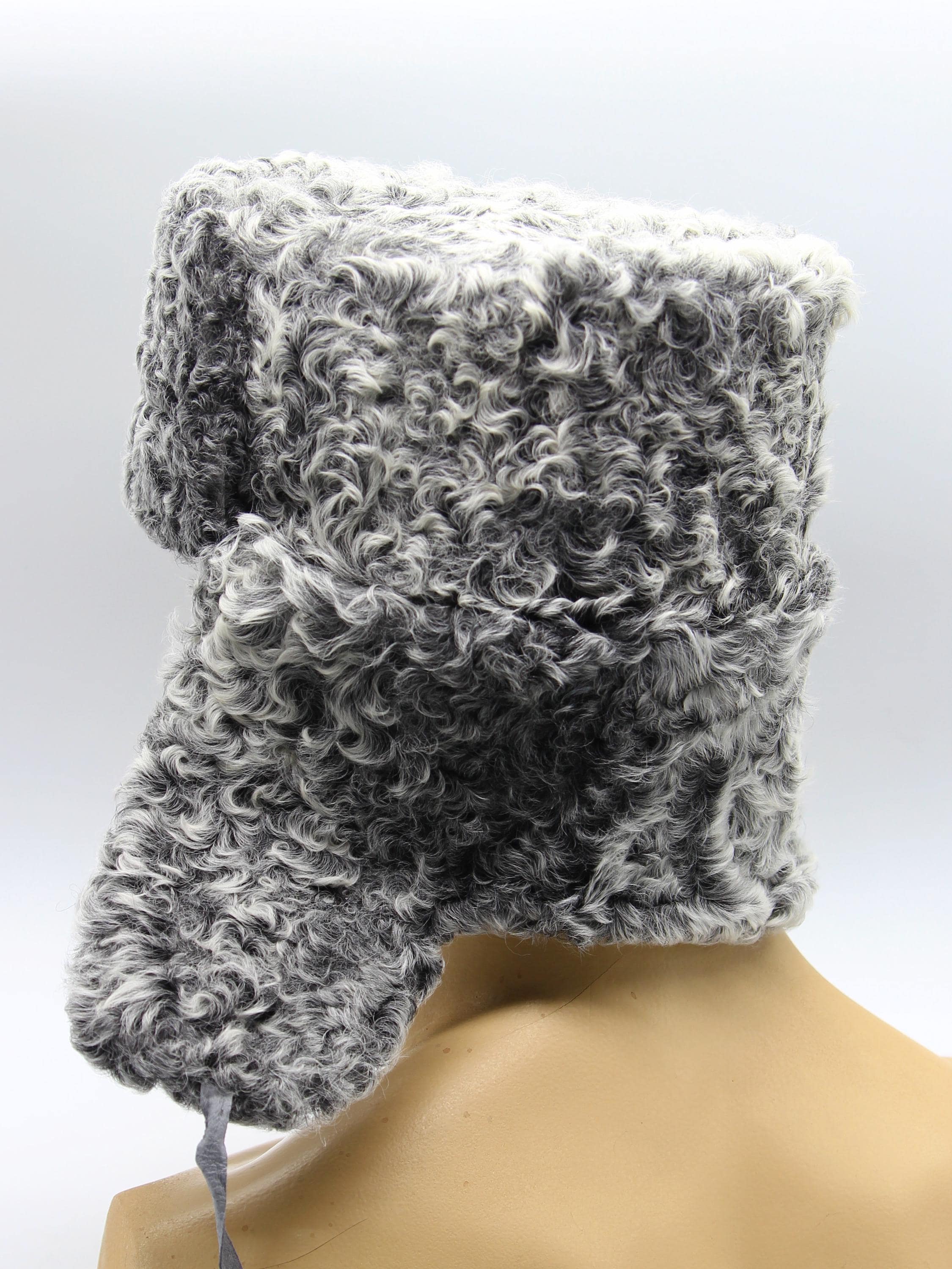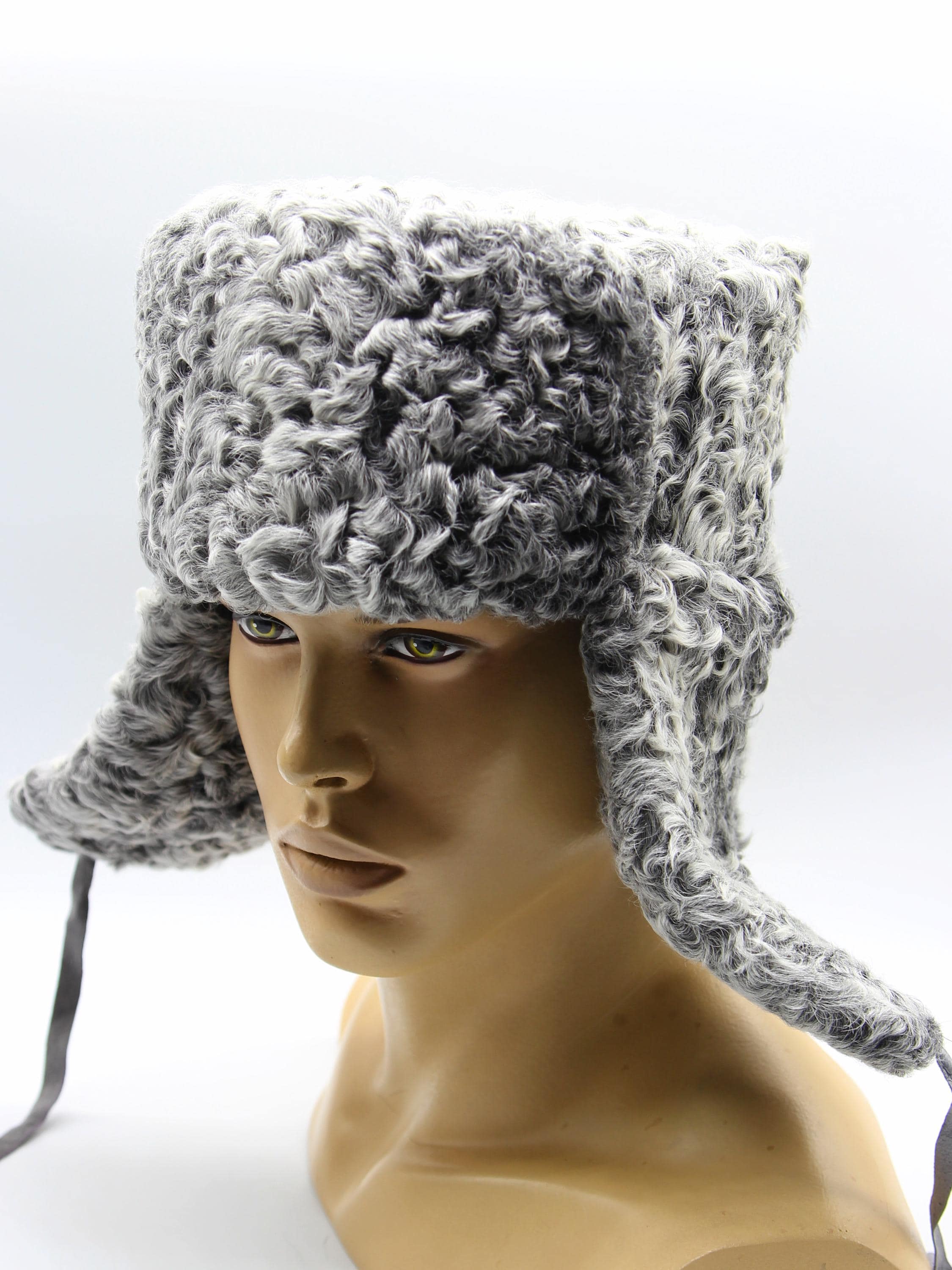 Natural Grey Astrakhan Fur Hat - Men's Karakul Winter Ushanka