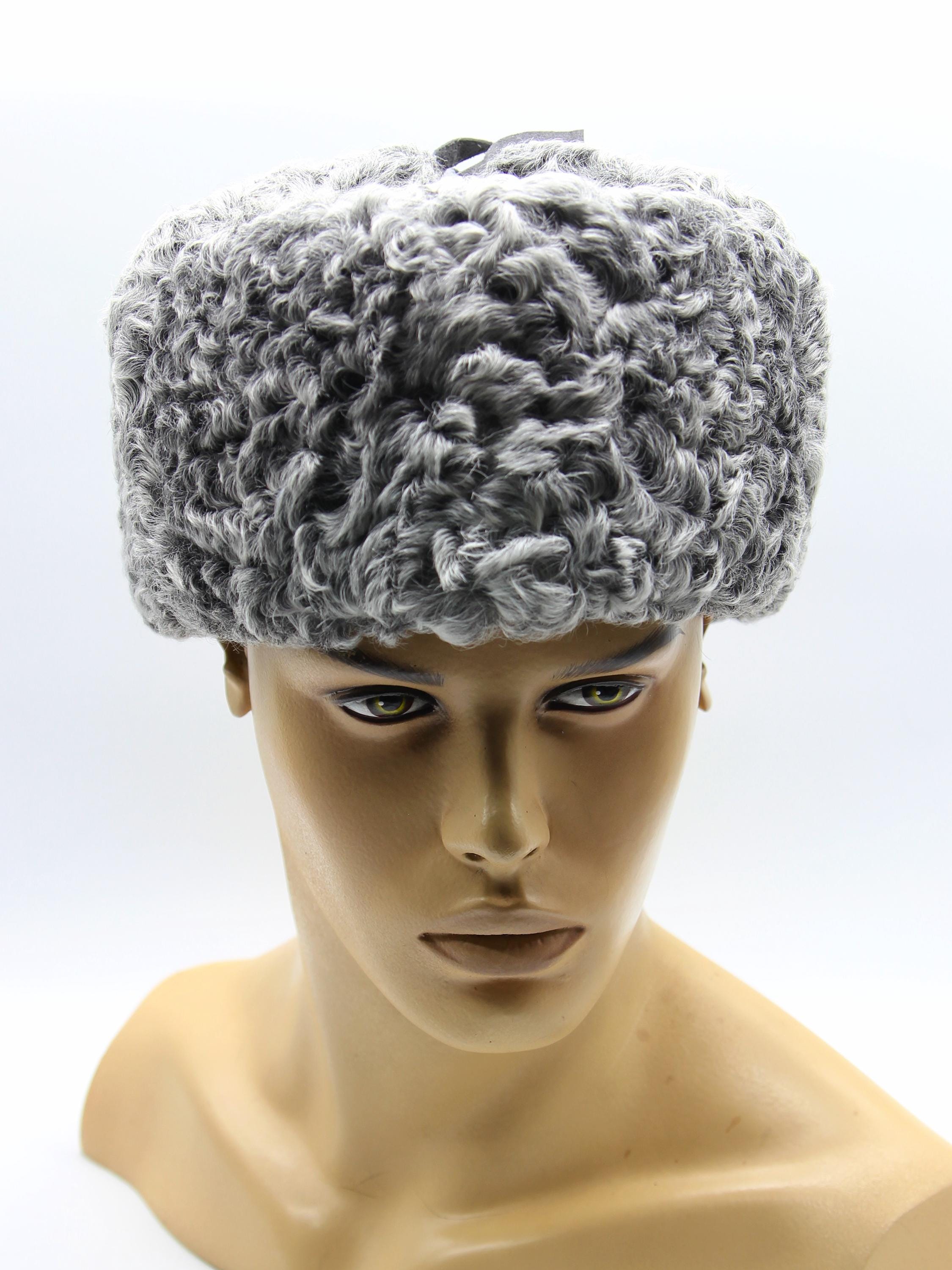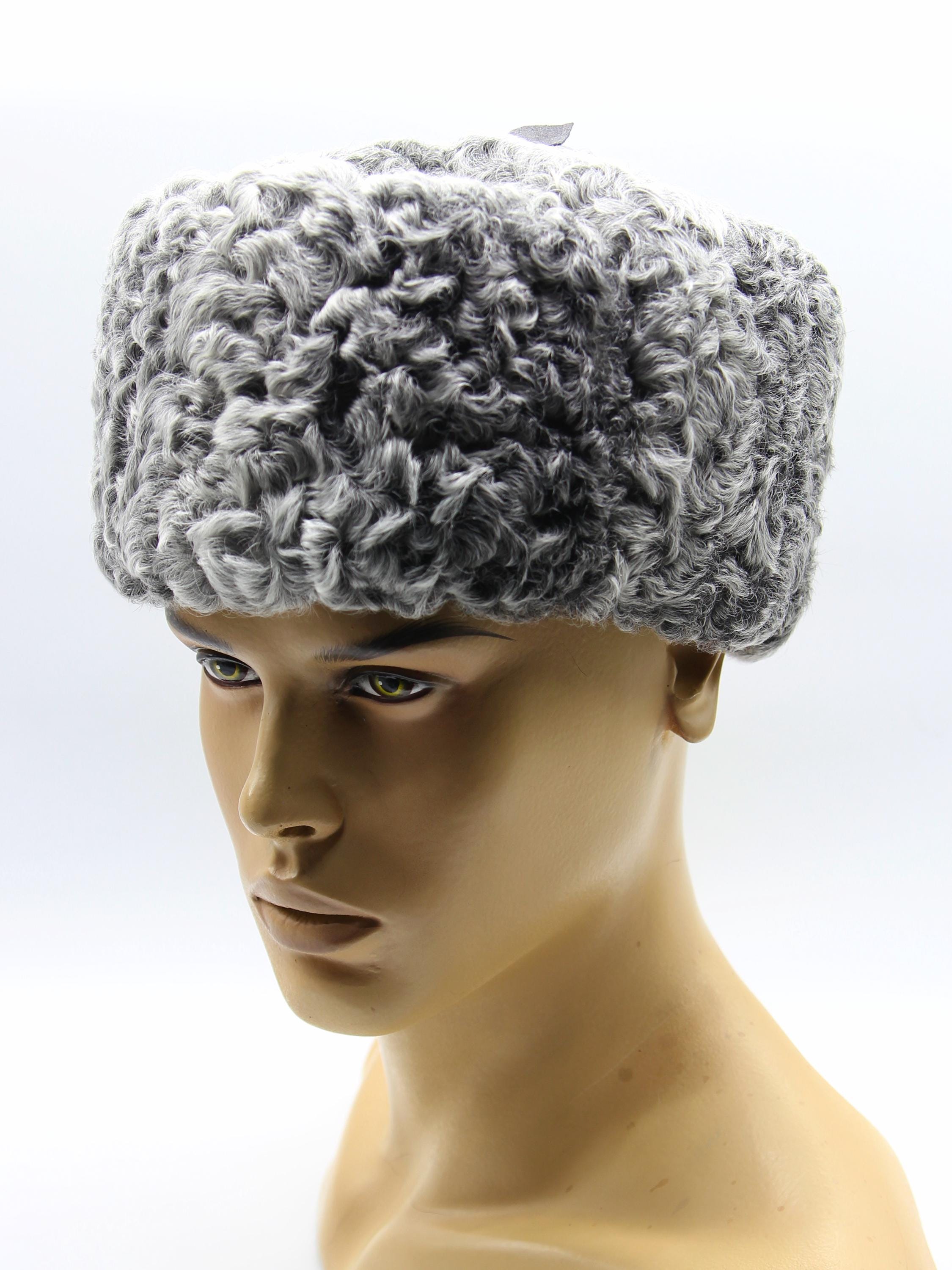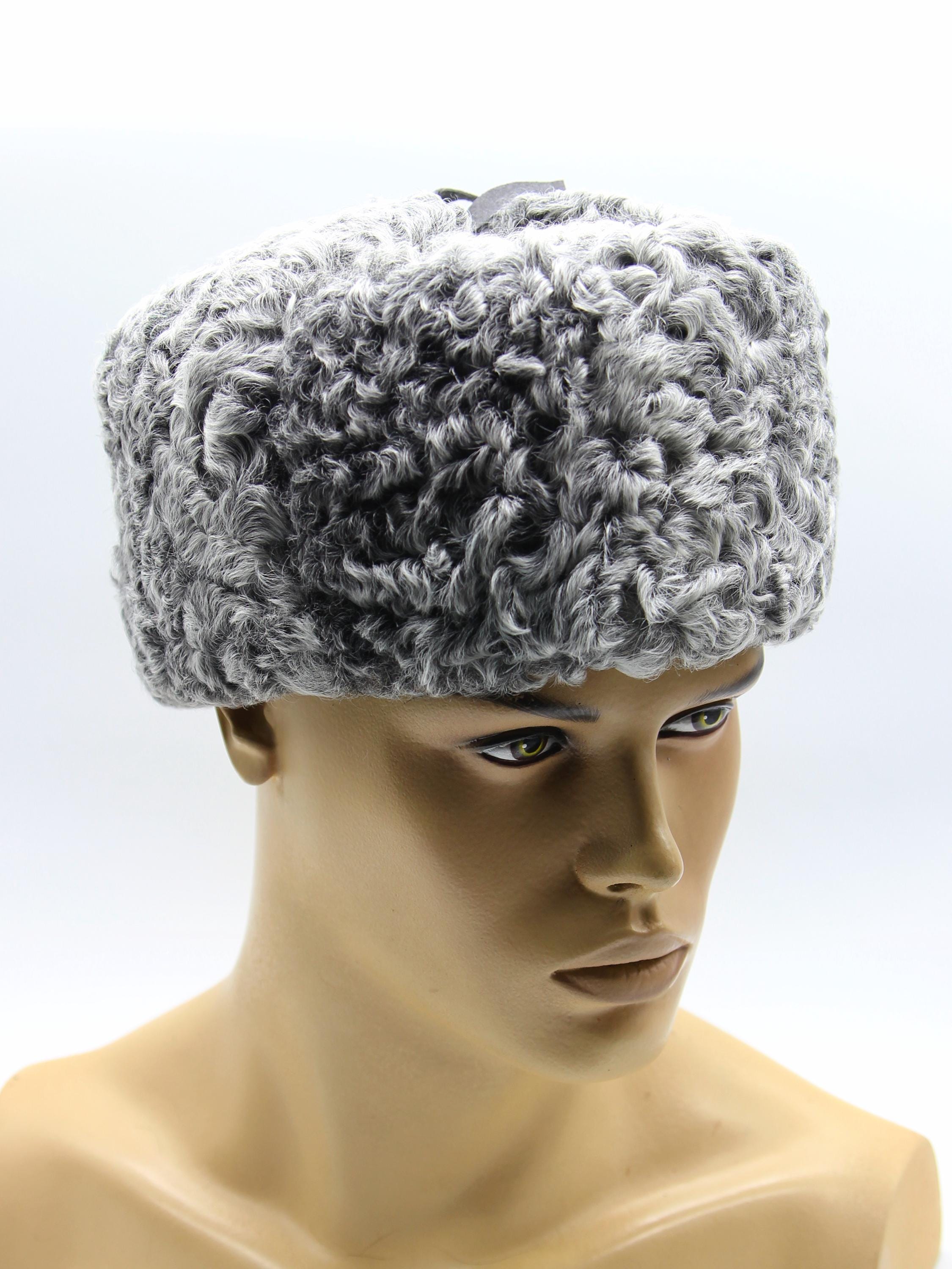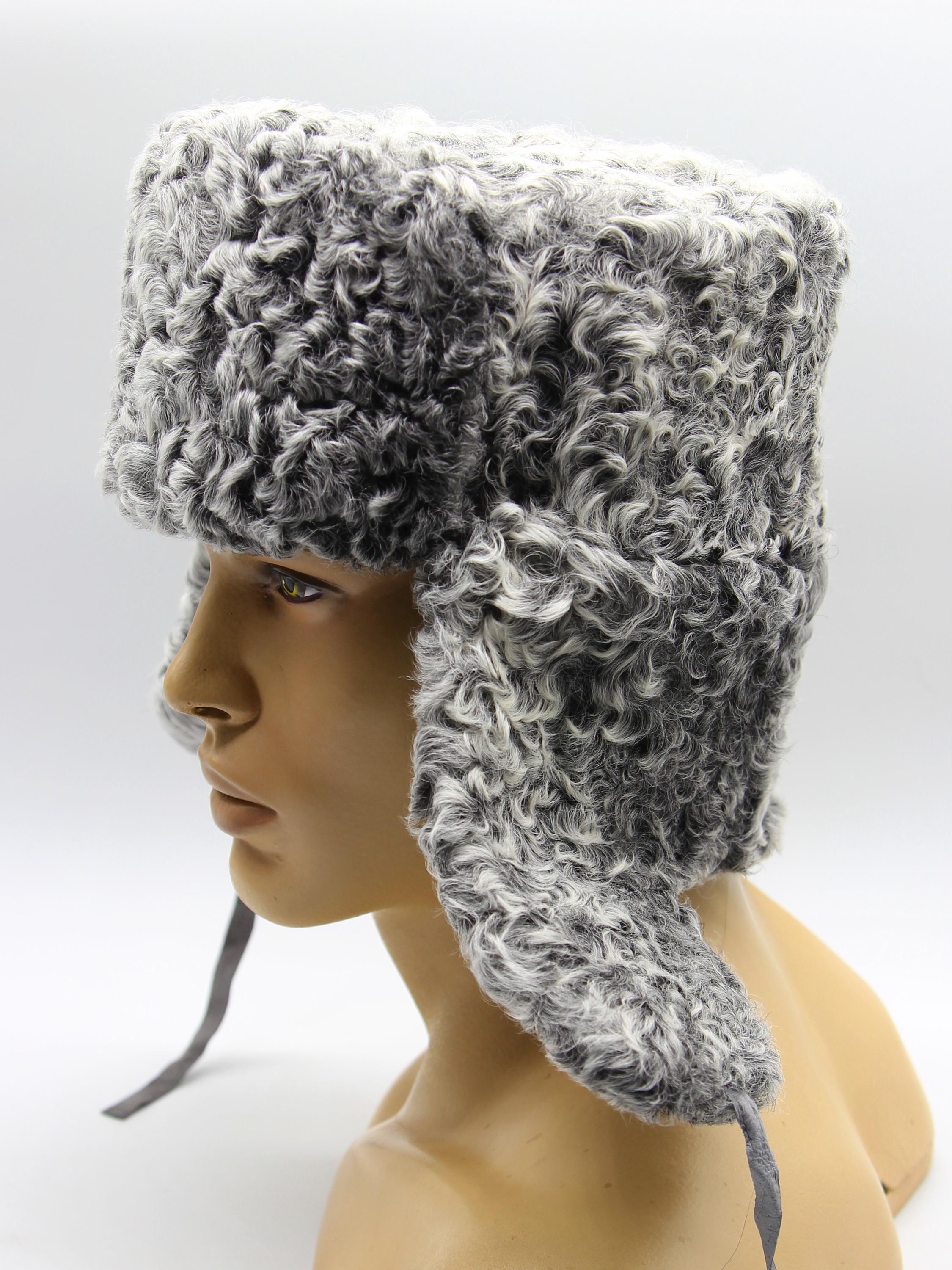 Natural Grey Astrakhan Fur Hat - Men's Karakul Winter Ushanka