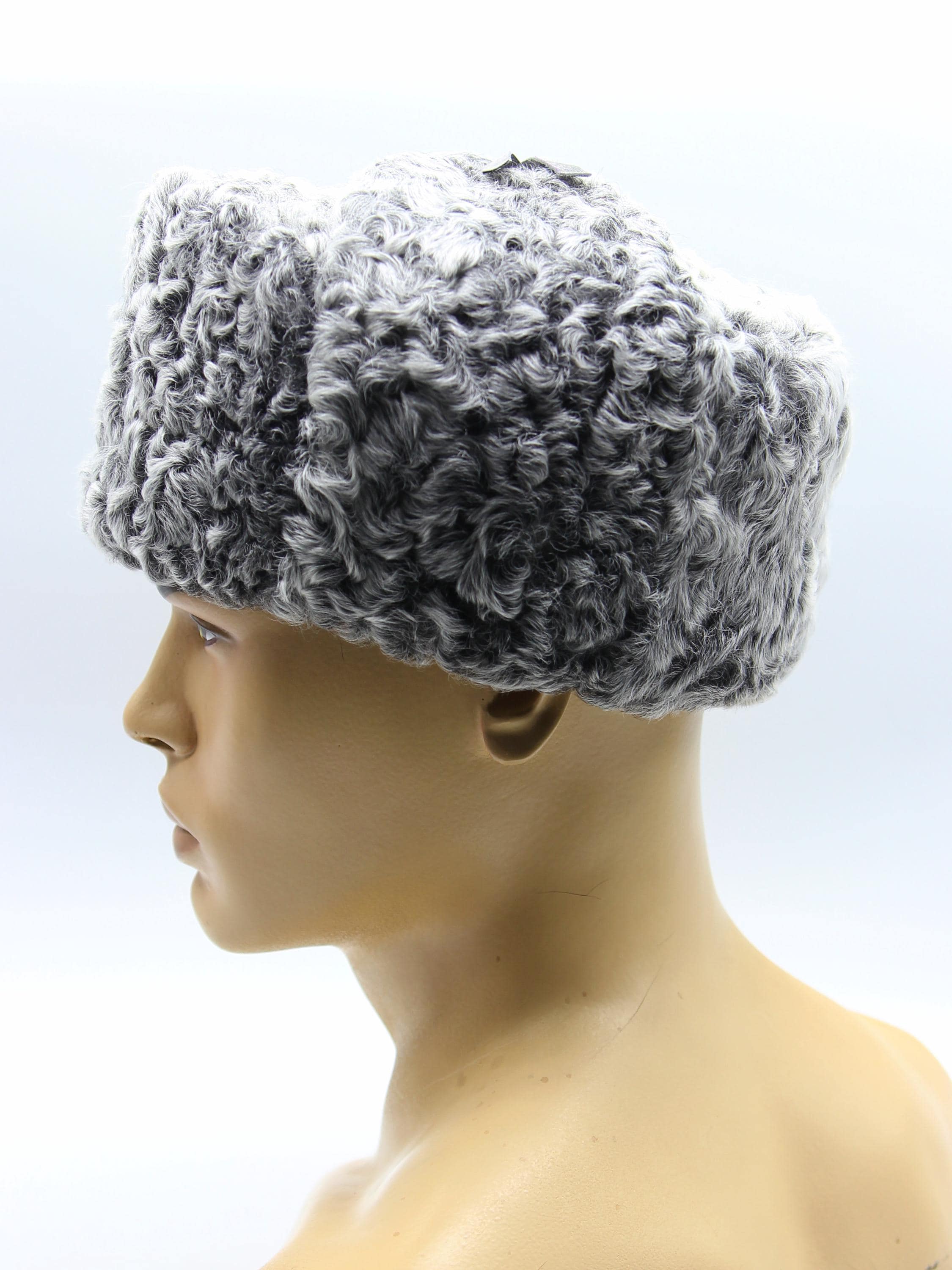 Natural Grey Astrakhan Fur Hat in Authentic Karakul