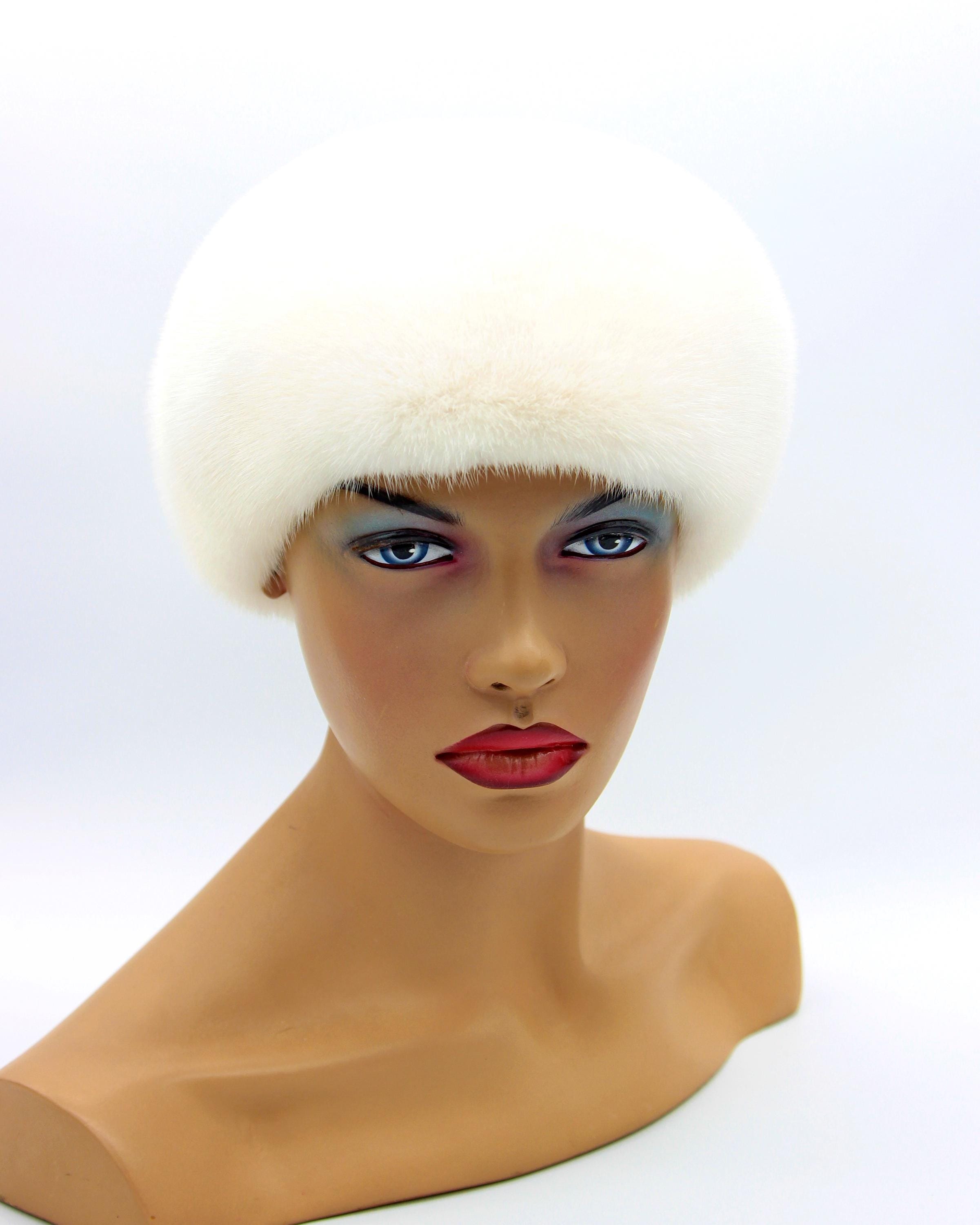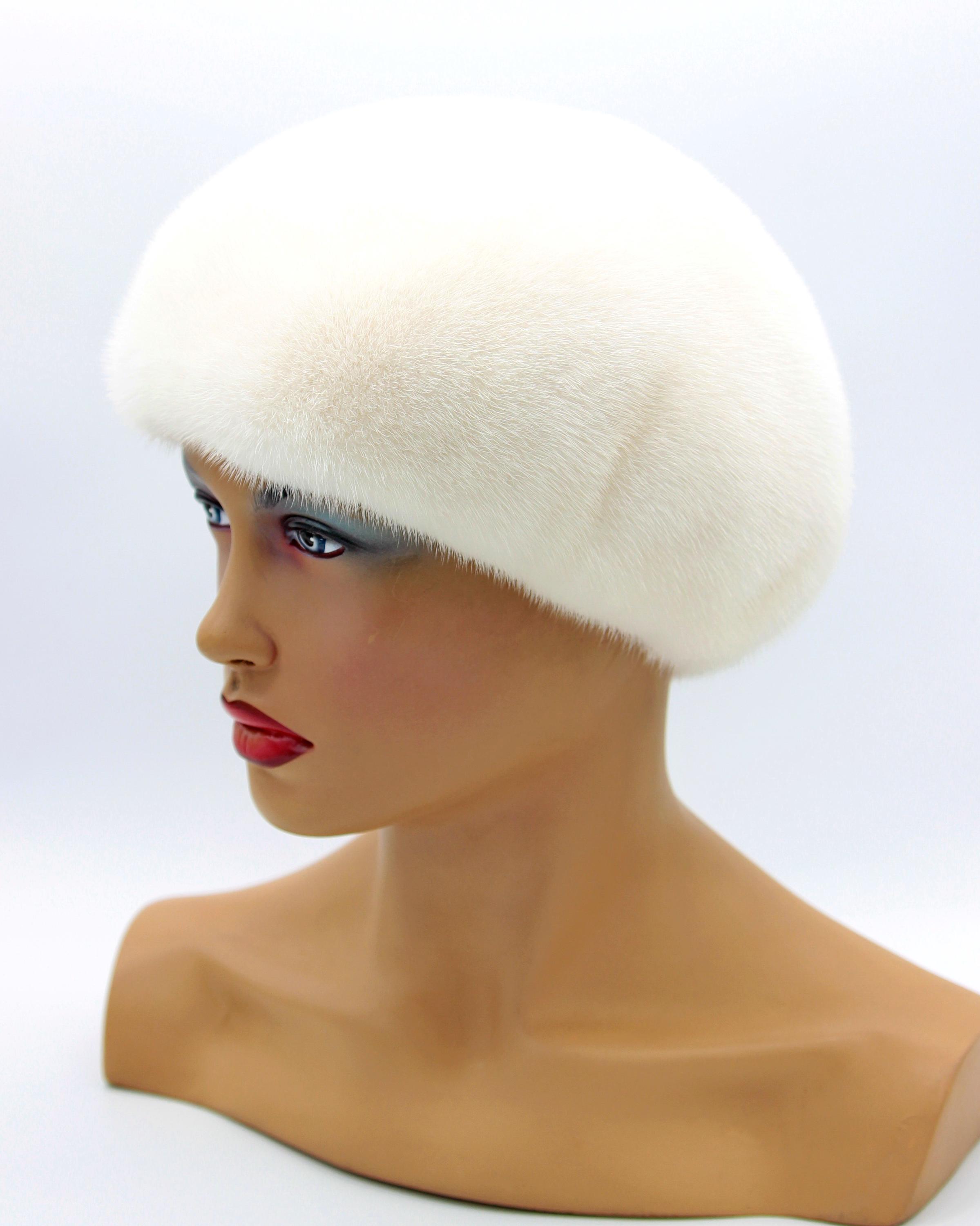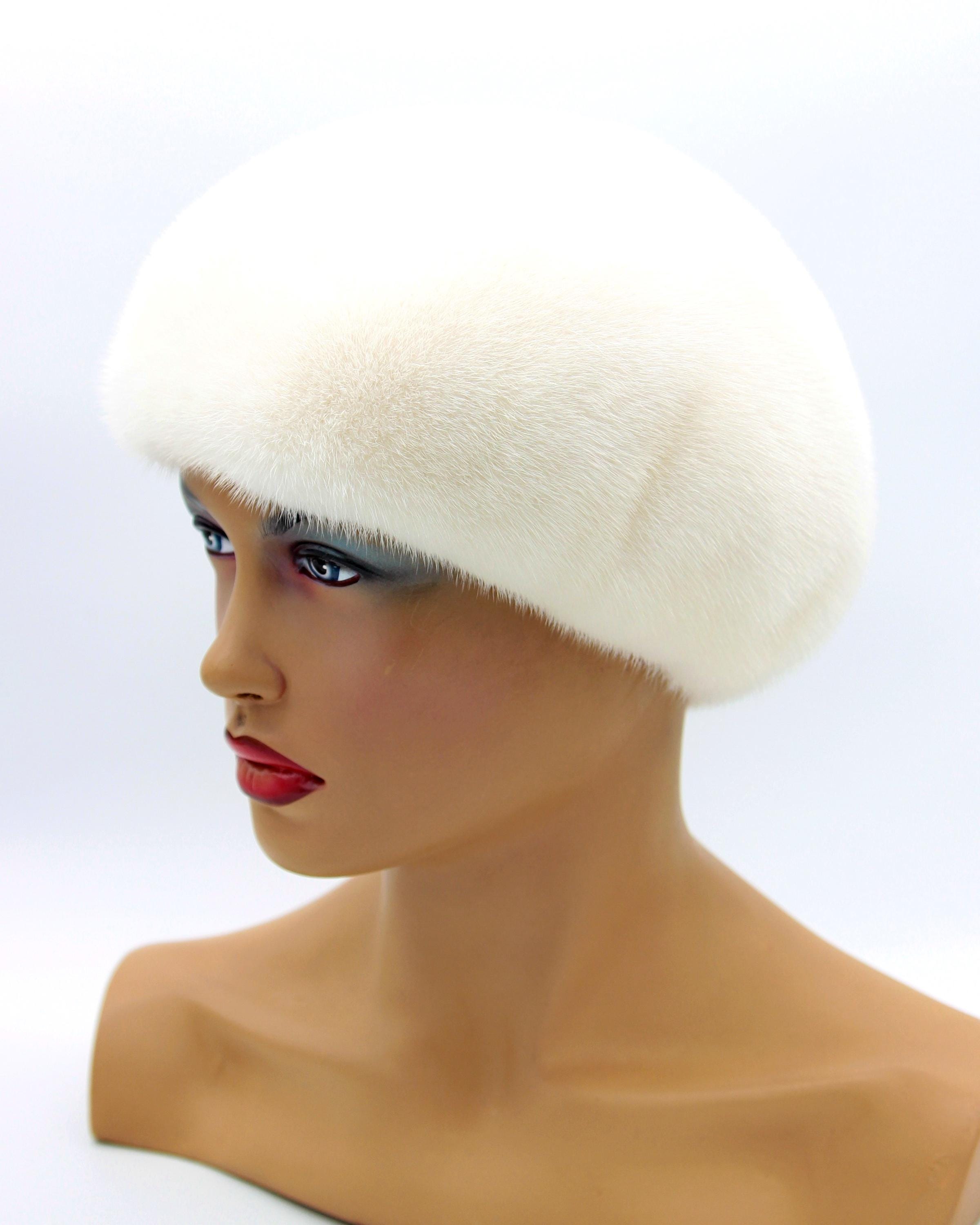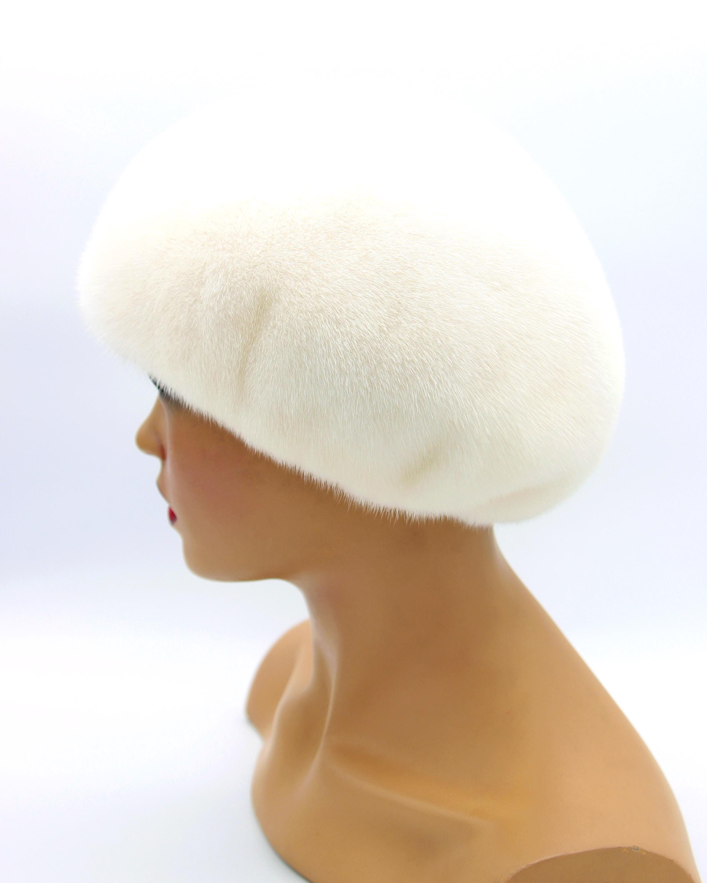 White Mink Fur Beret Handmade Ukraine Luxury Winter Hat