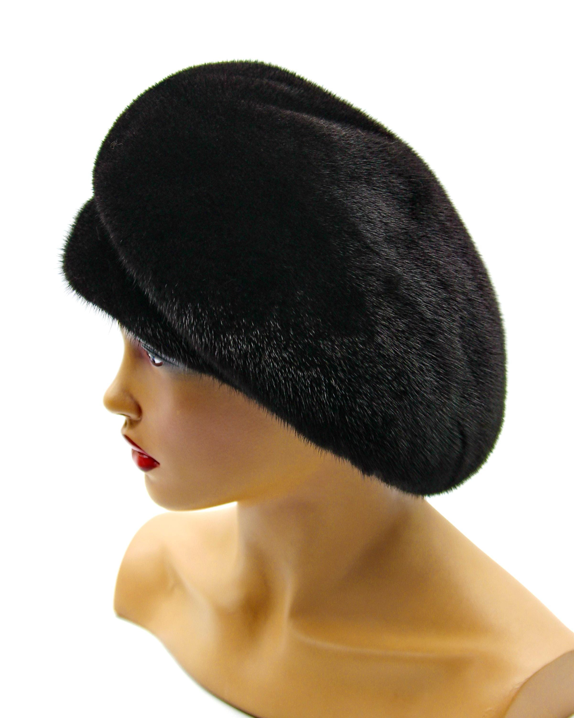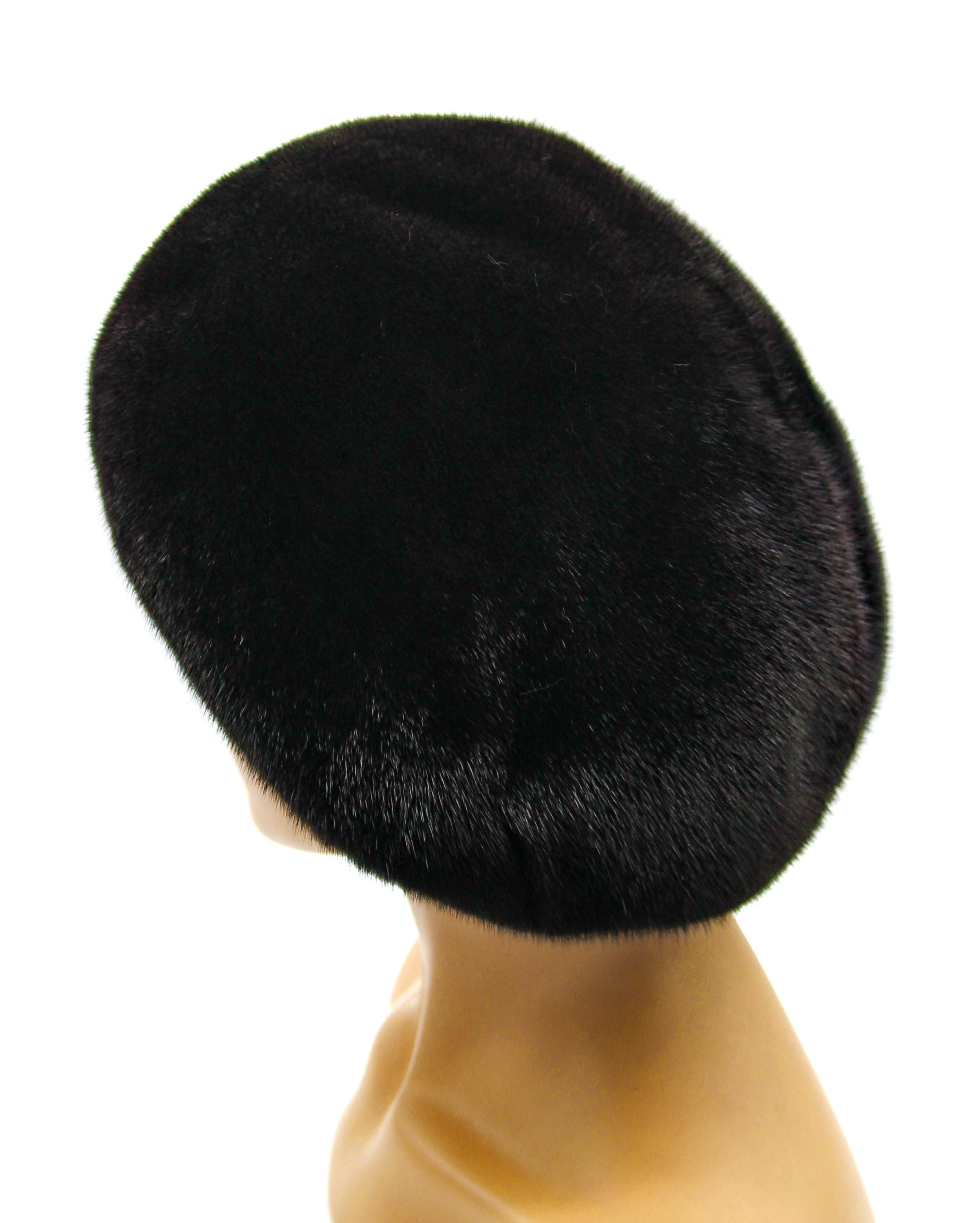 Voluminous Black Mink Fur Hat Beret - Fuller Classic Shape