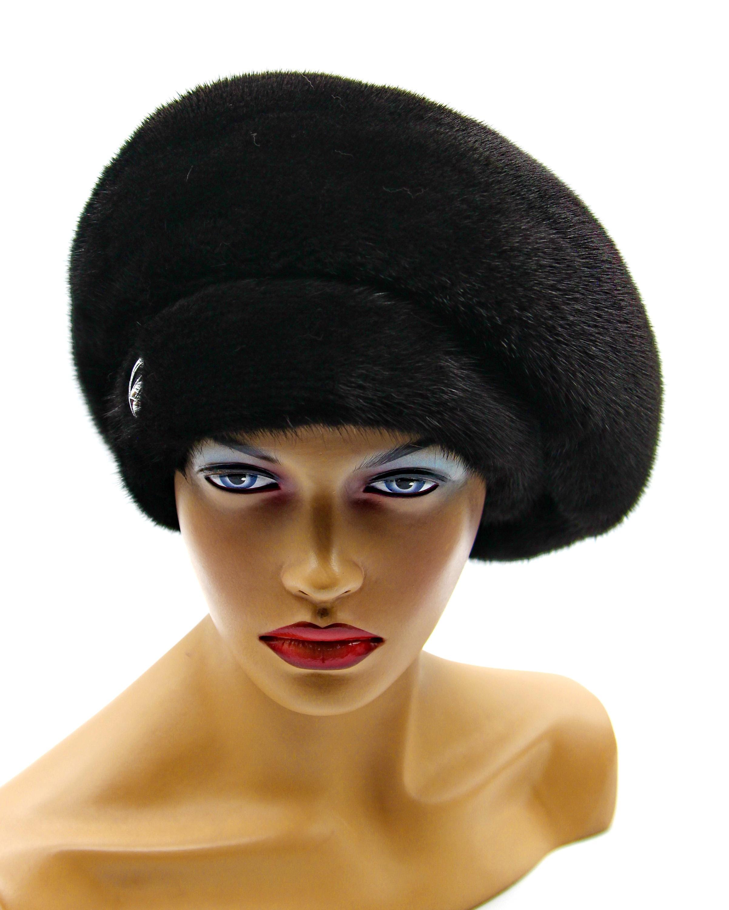 This fur hat for women combines extra volume with classic black color. Fuller than standard berets, timeless in black. Two features together in this mink fur hat - fullness and versatile color making your fur hat both noticeable and elegant.