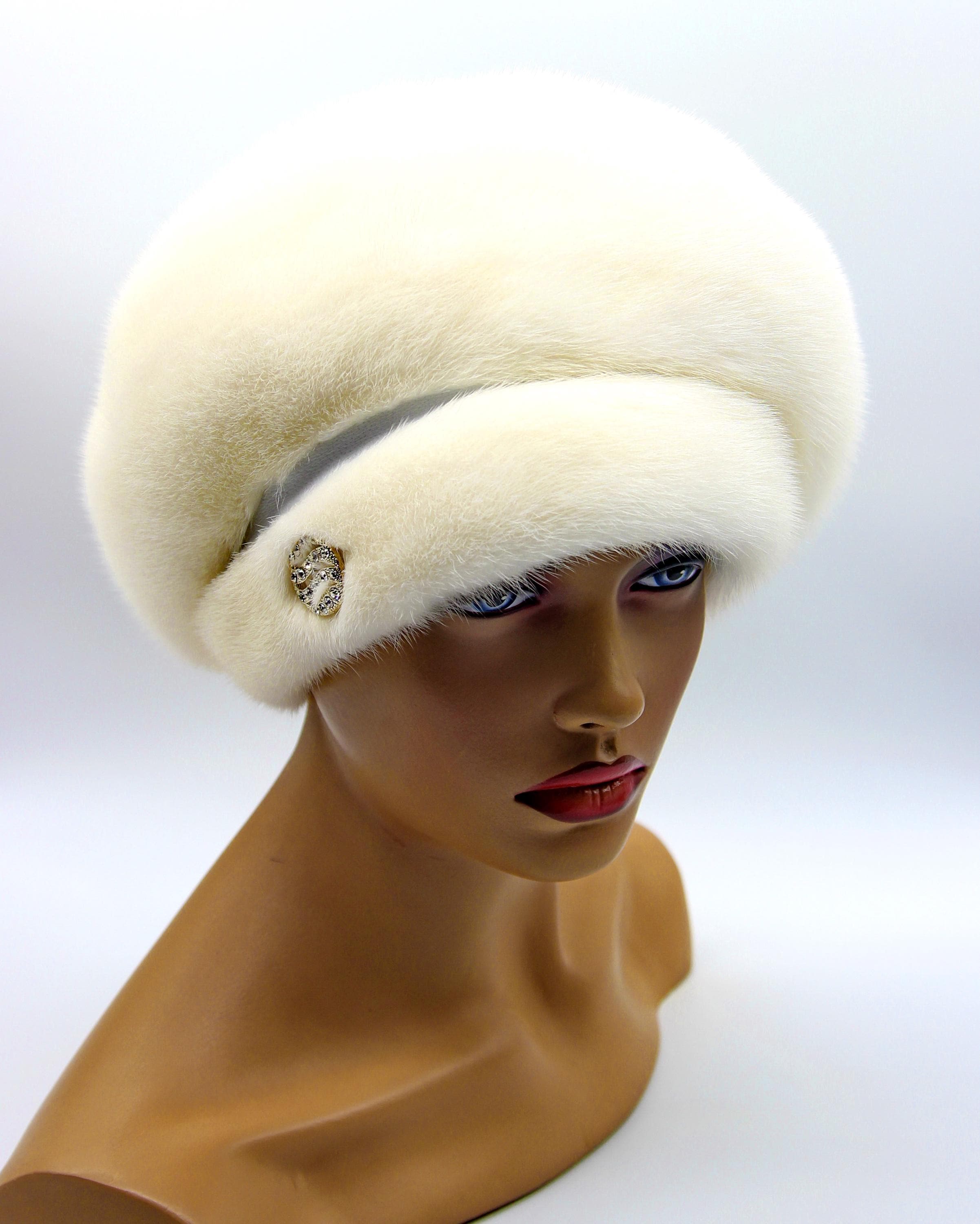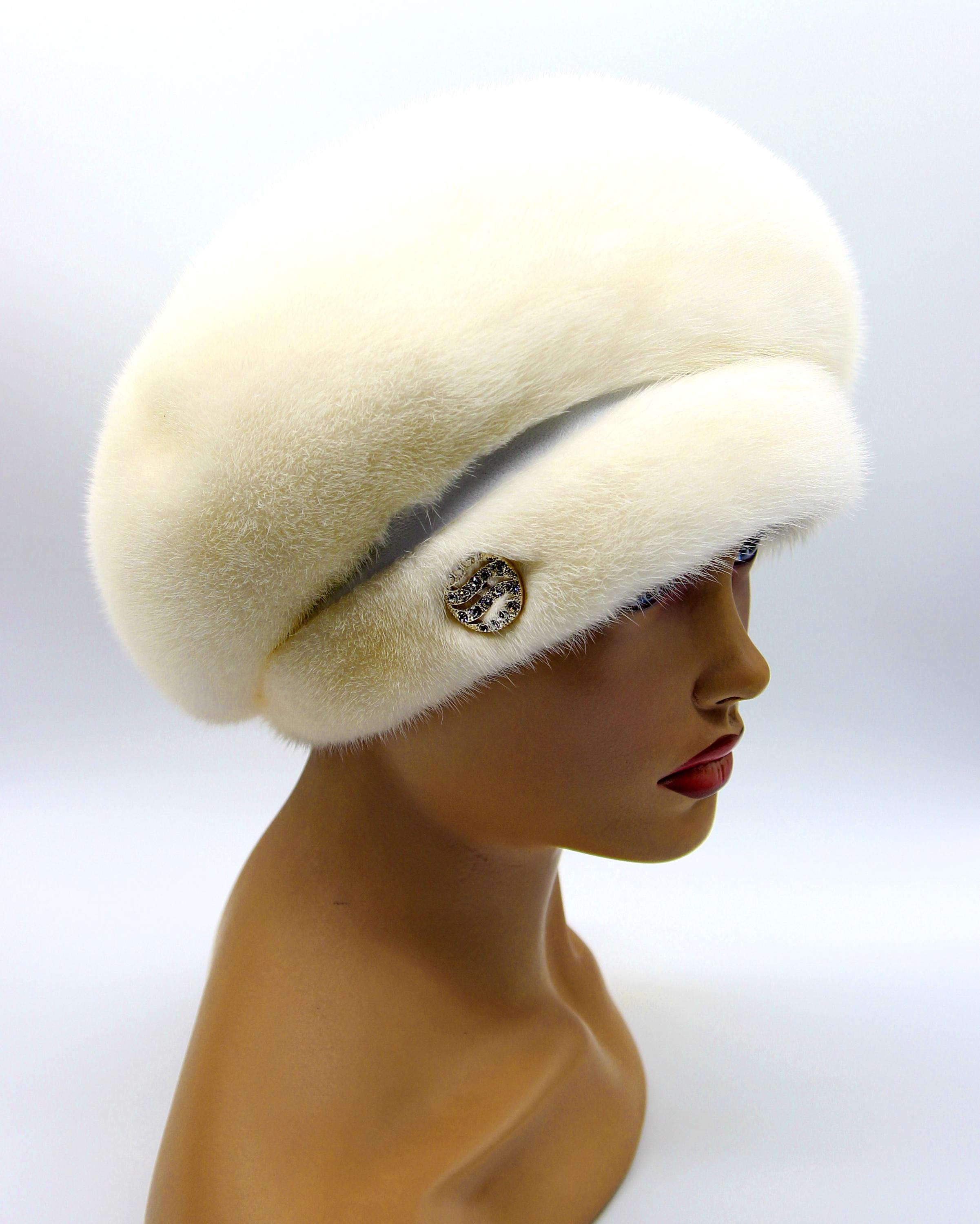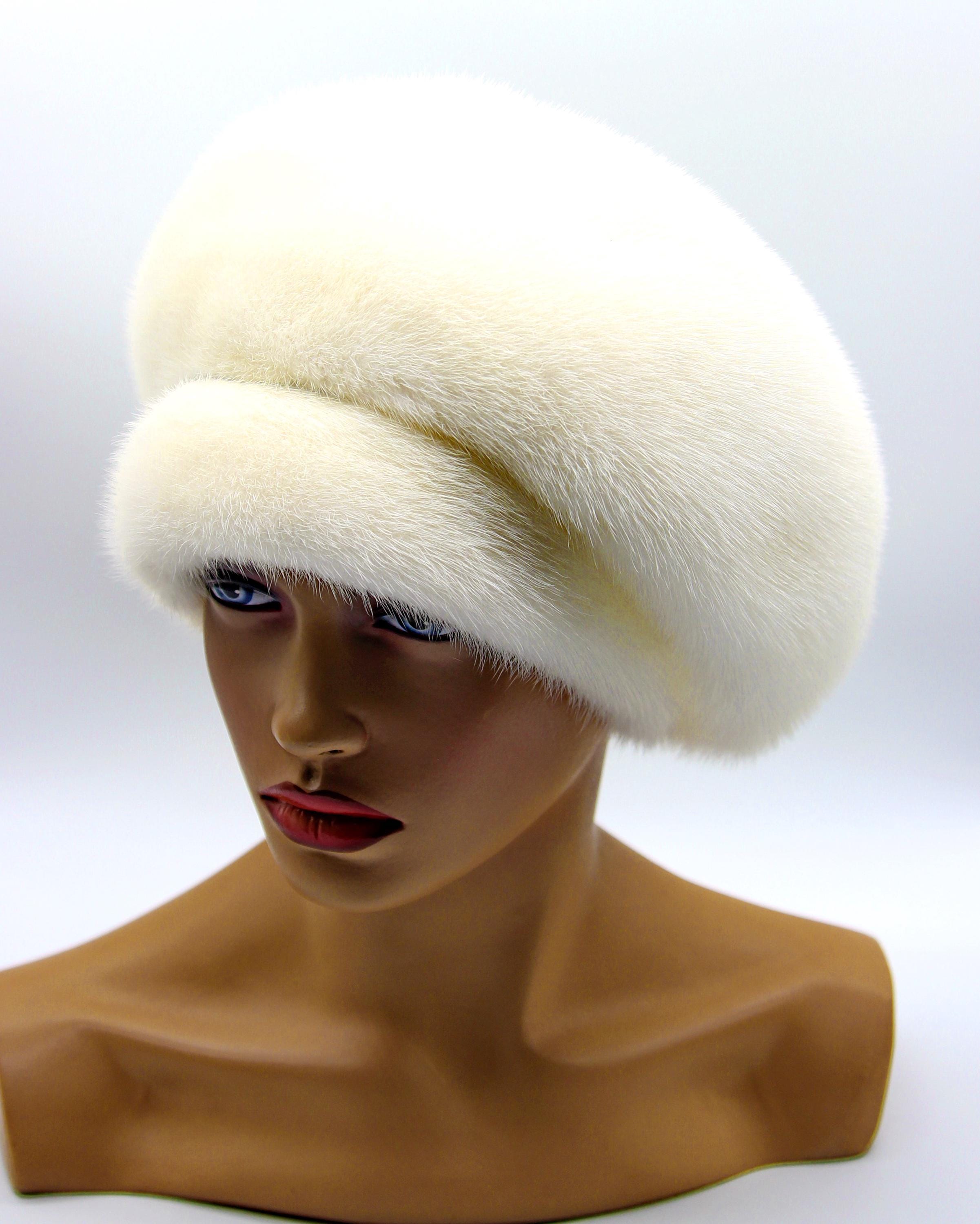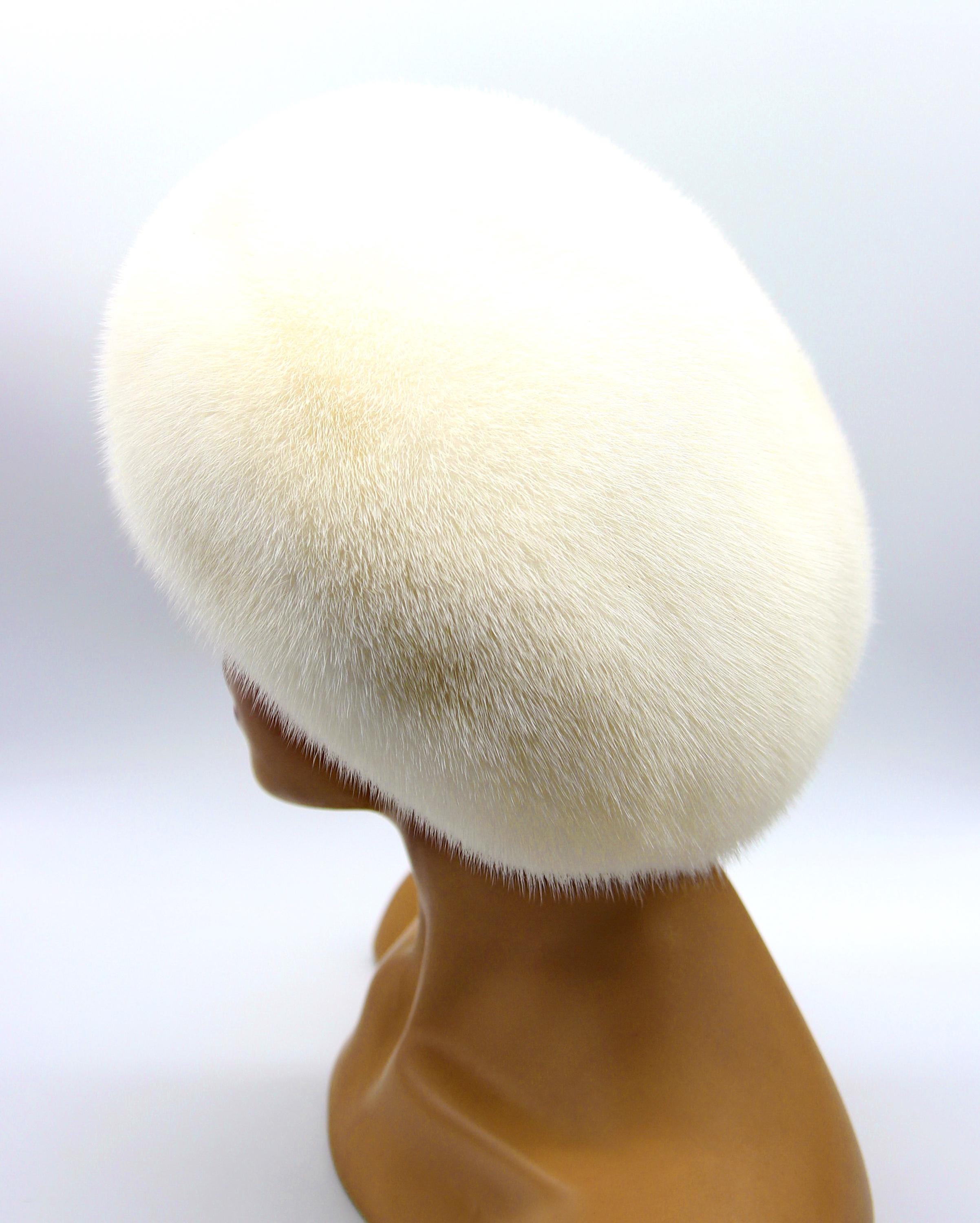 This fur hat sits rounder on your head in clean white. Not flat like some berets, not slim either. This fur hat for women has dimension with pure color. White mink showing natural beauty while fuller shape adds dramatic presence to your fur hat.