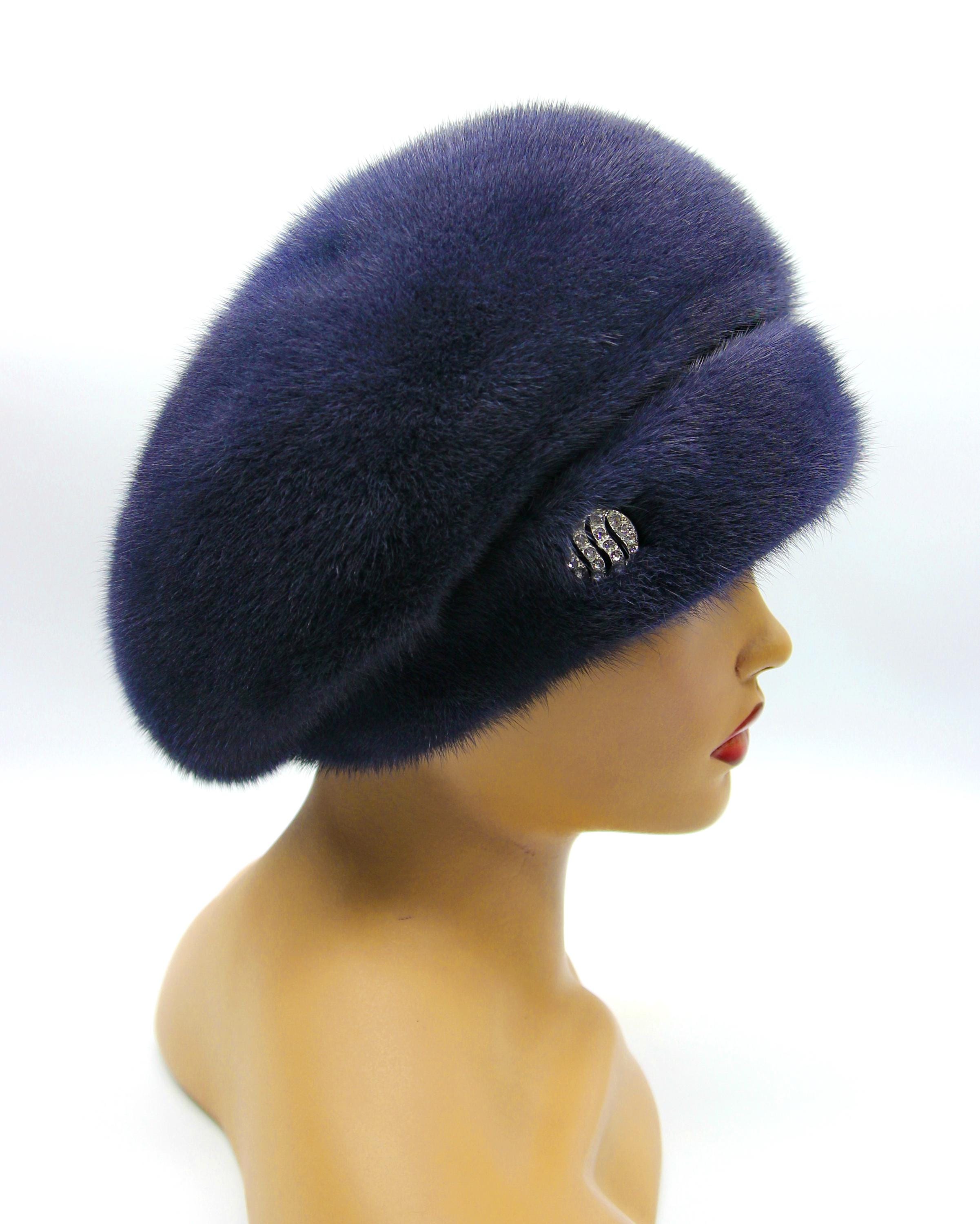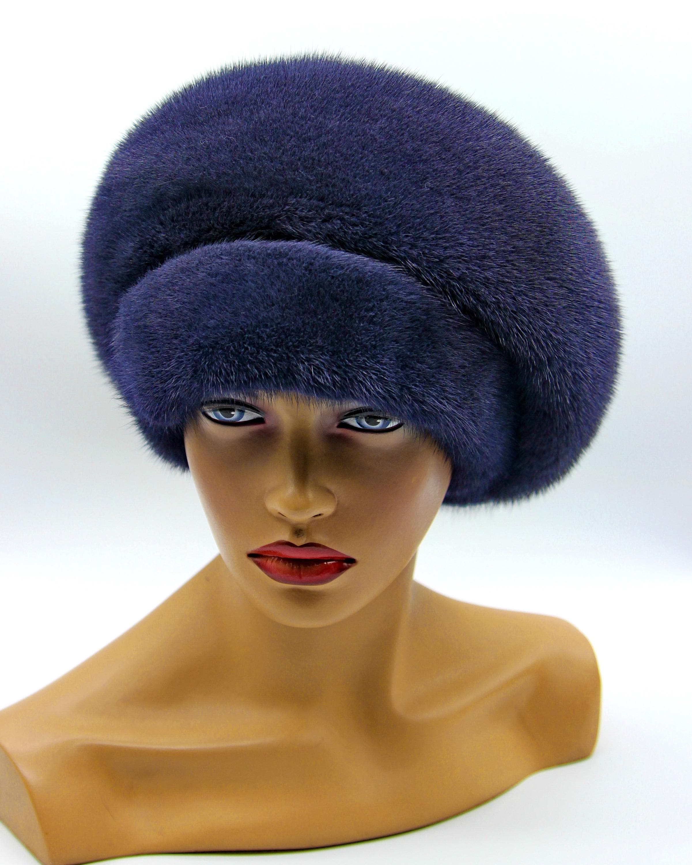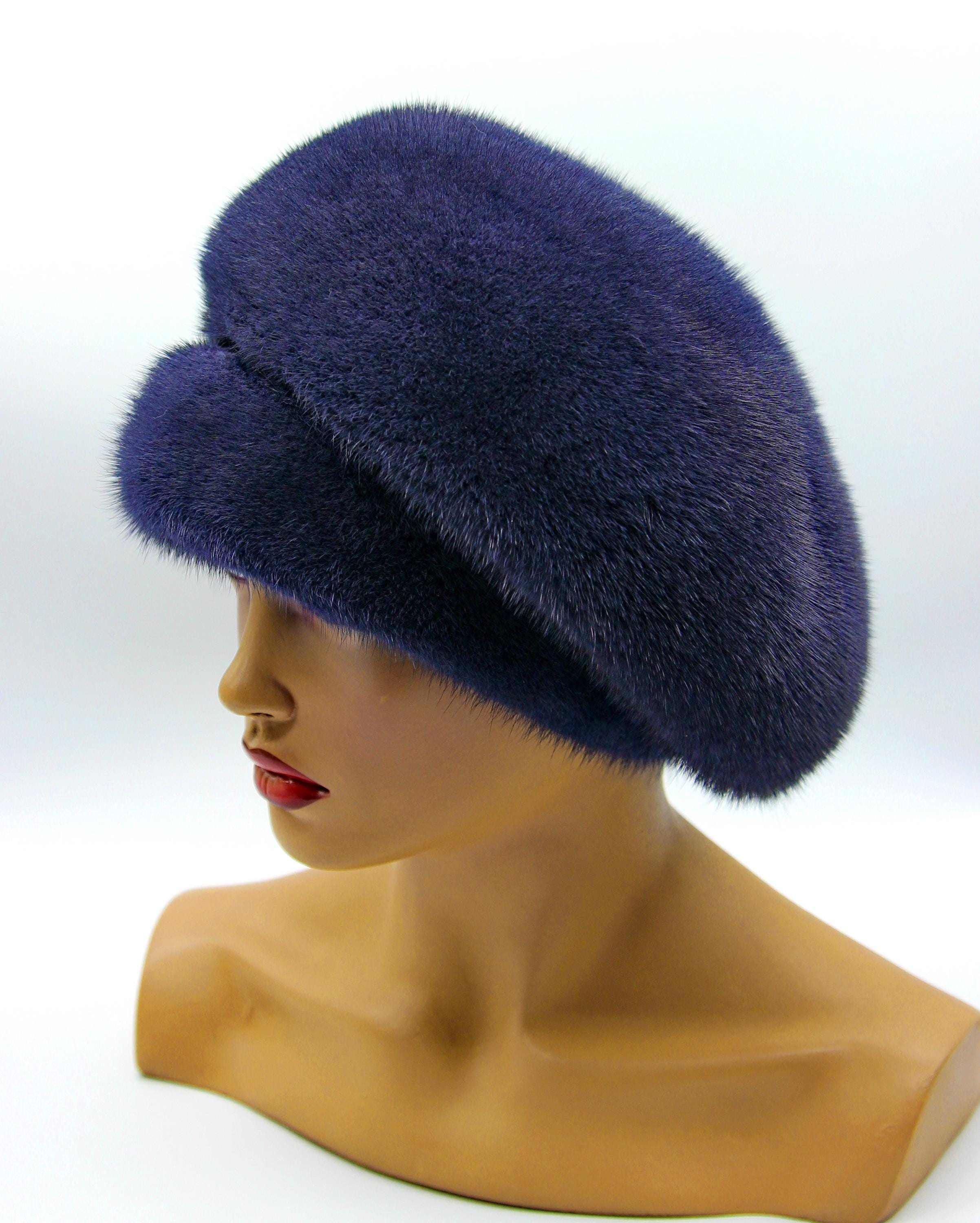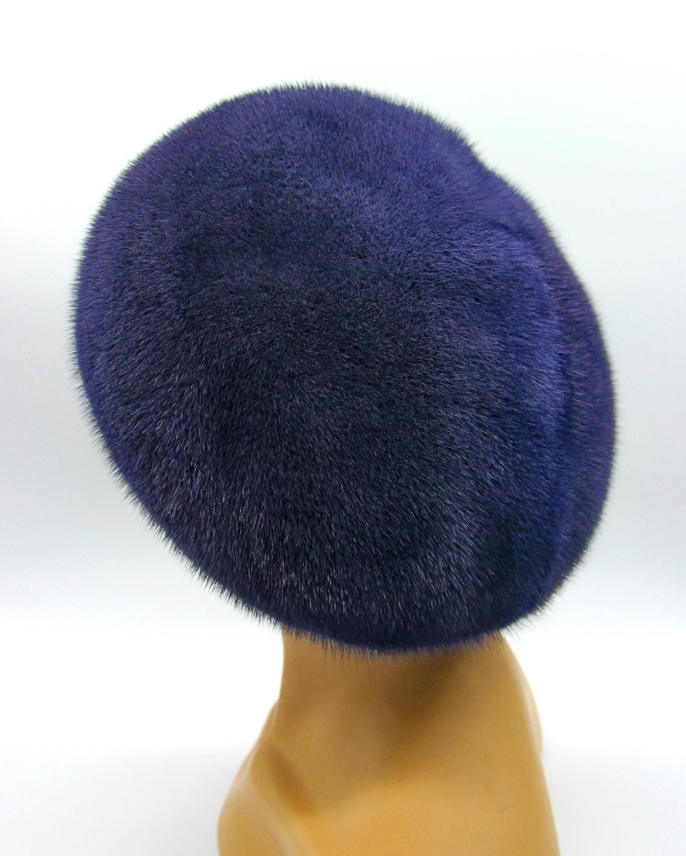 This fur hat sits rounder on your head in blue-grey graphite. Not flat like some berets, not natural mink color either. This fur hat for women has dimension with consistent dyed tone. Graphite color throughout while fuller shape adds presence to your fur hat.