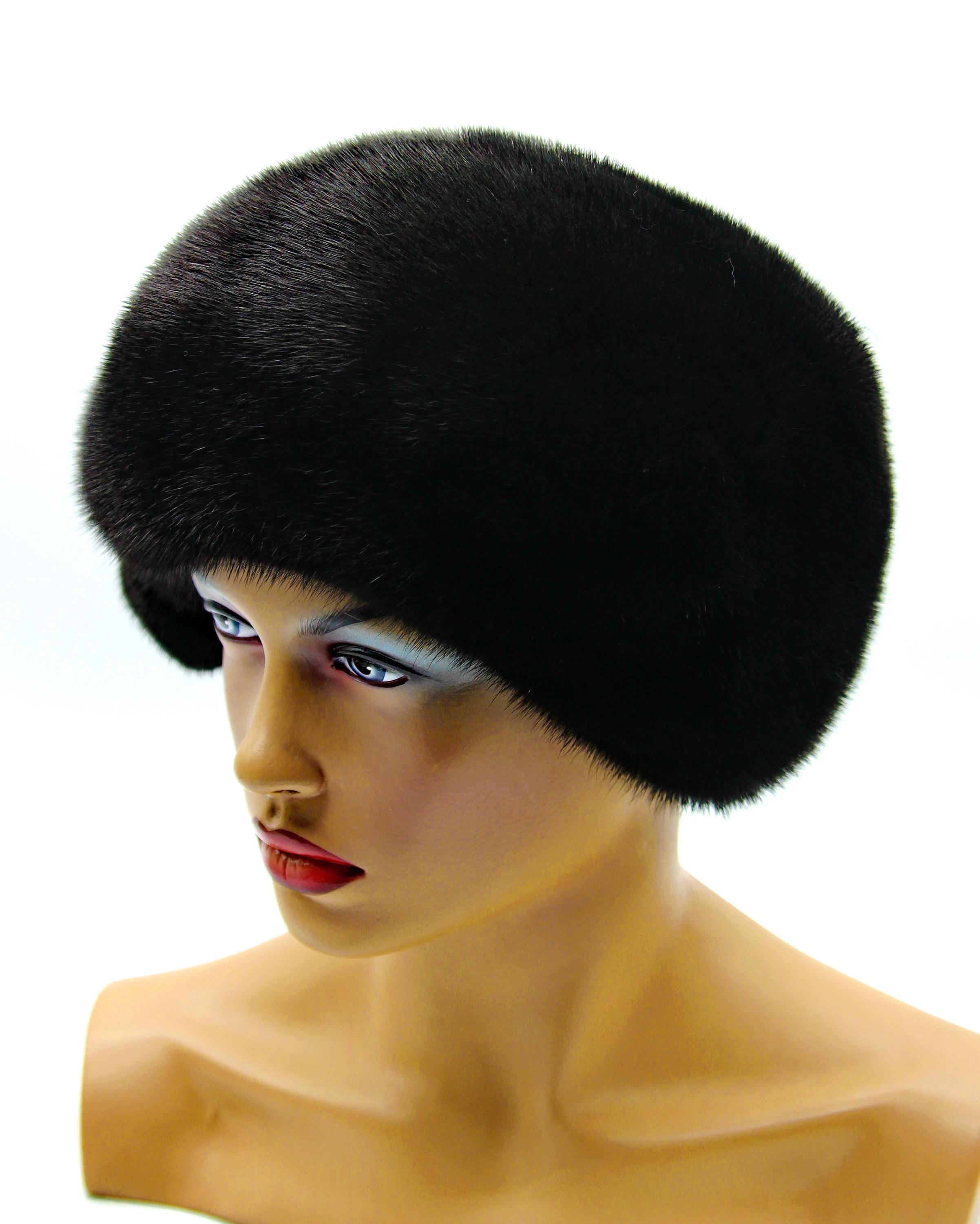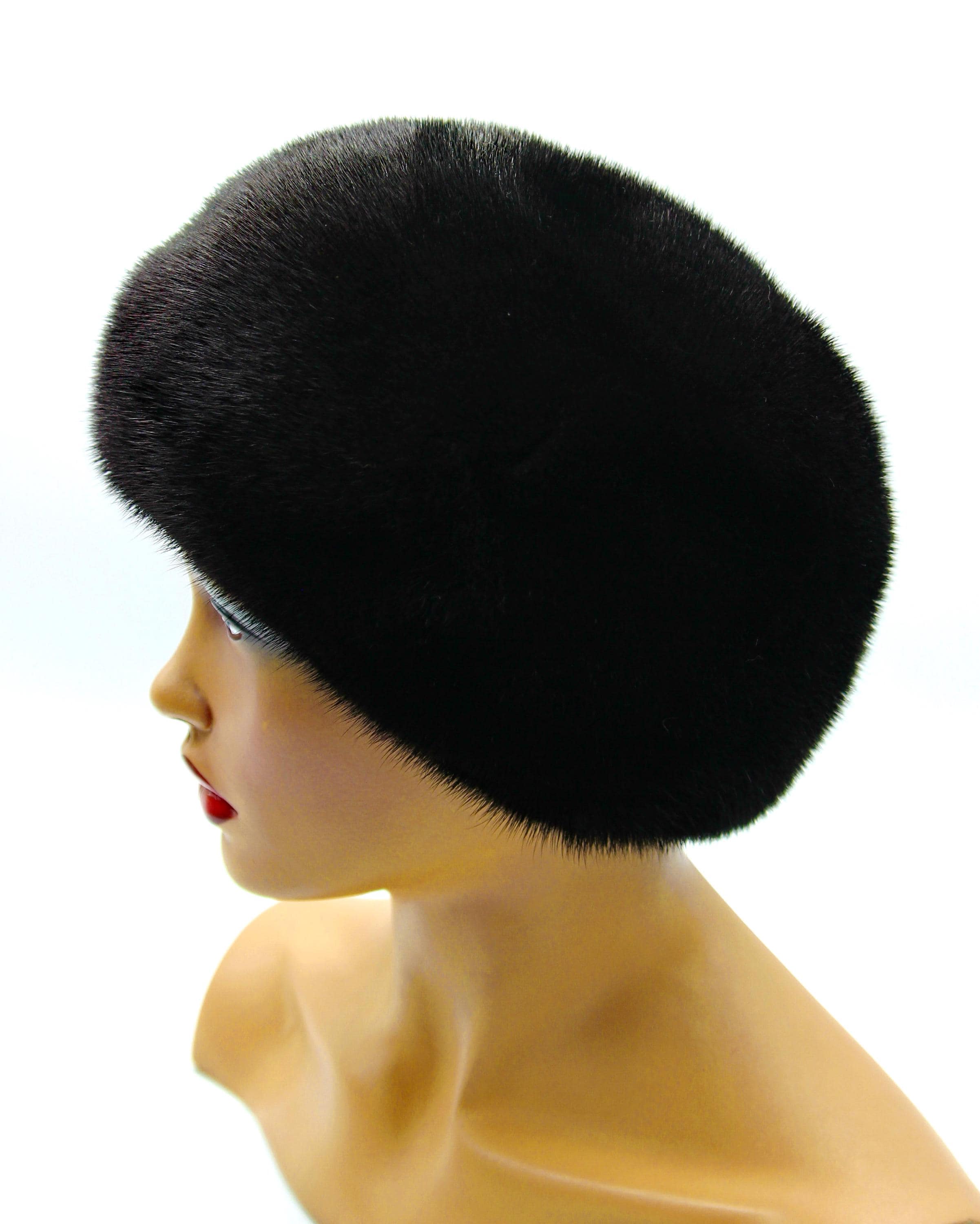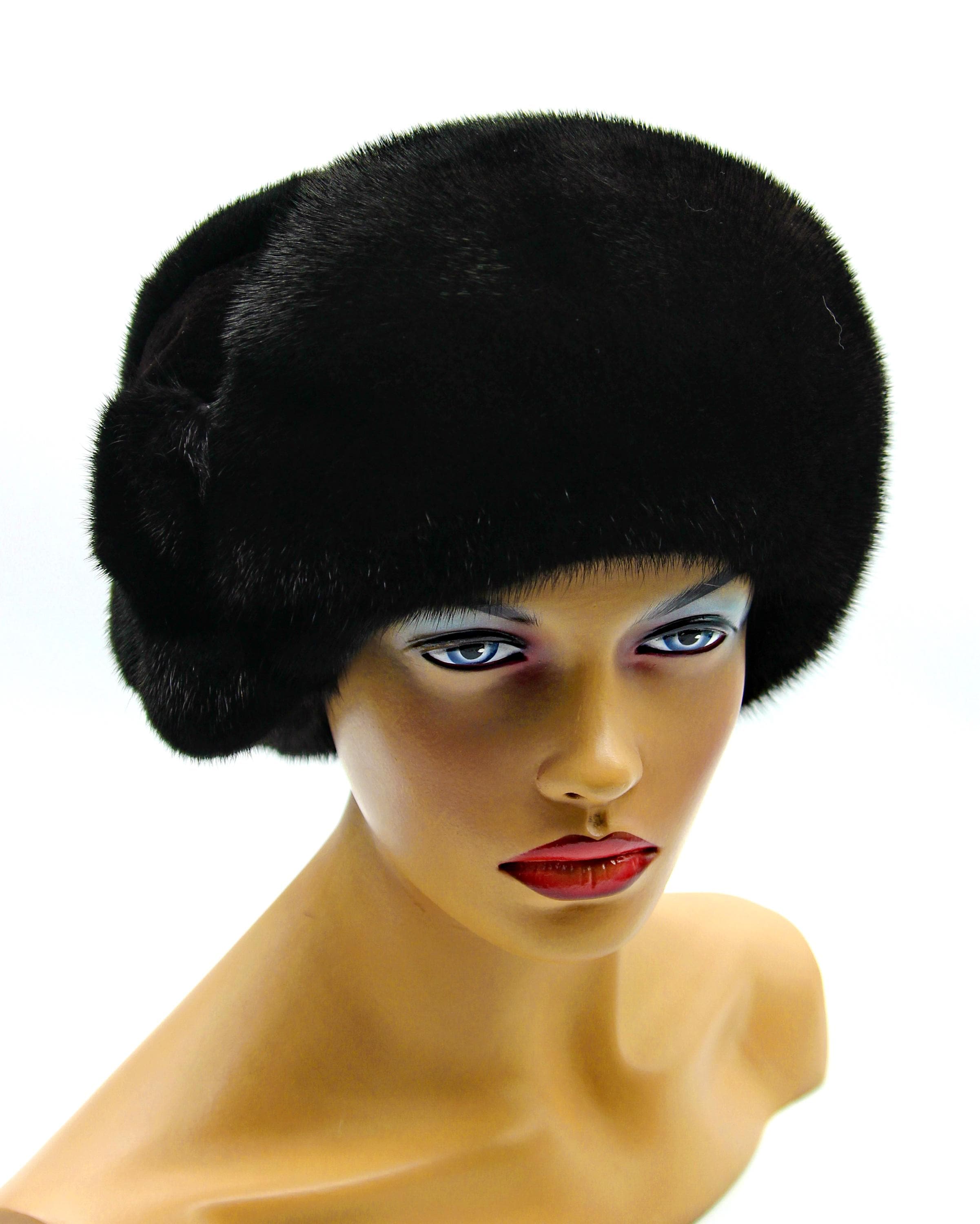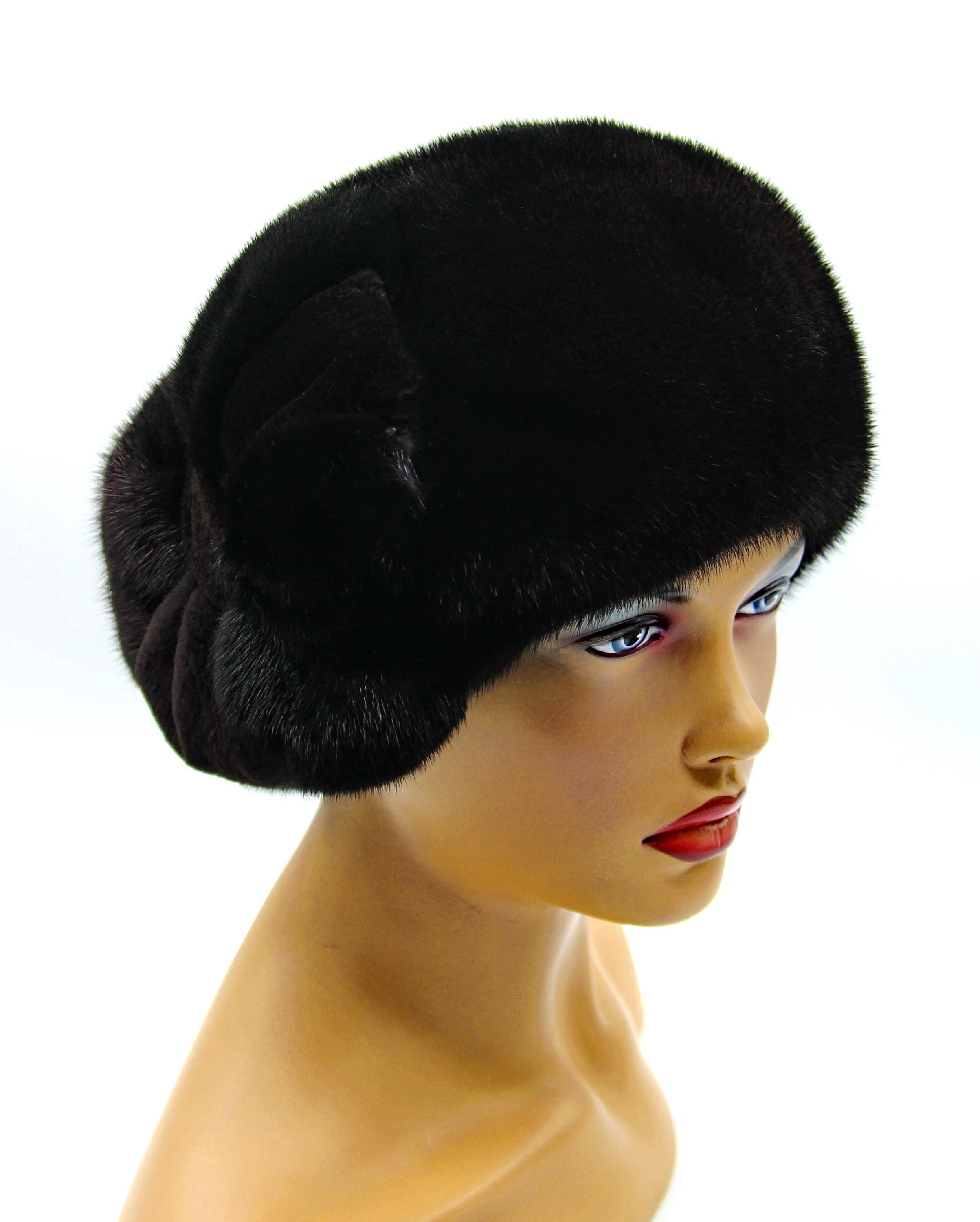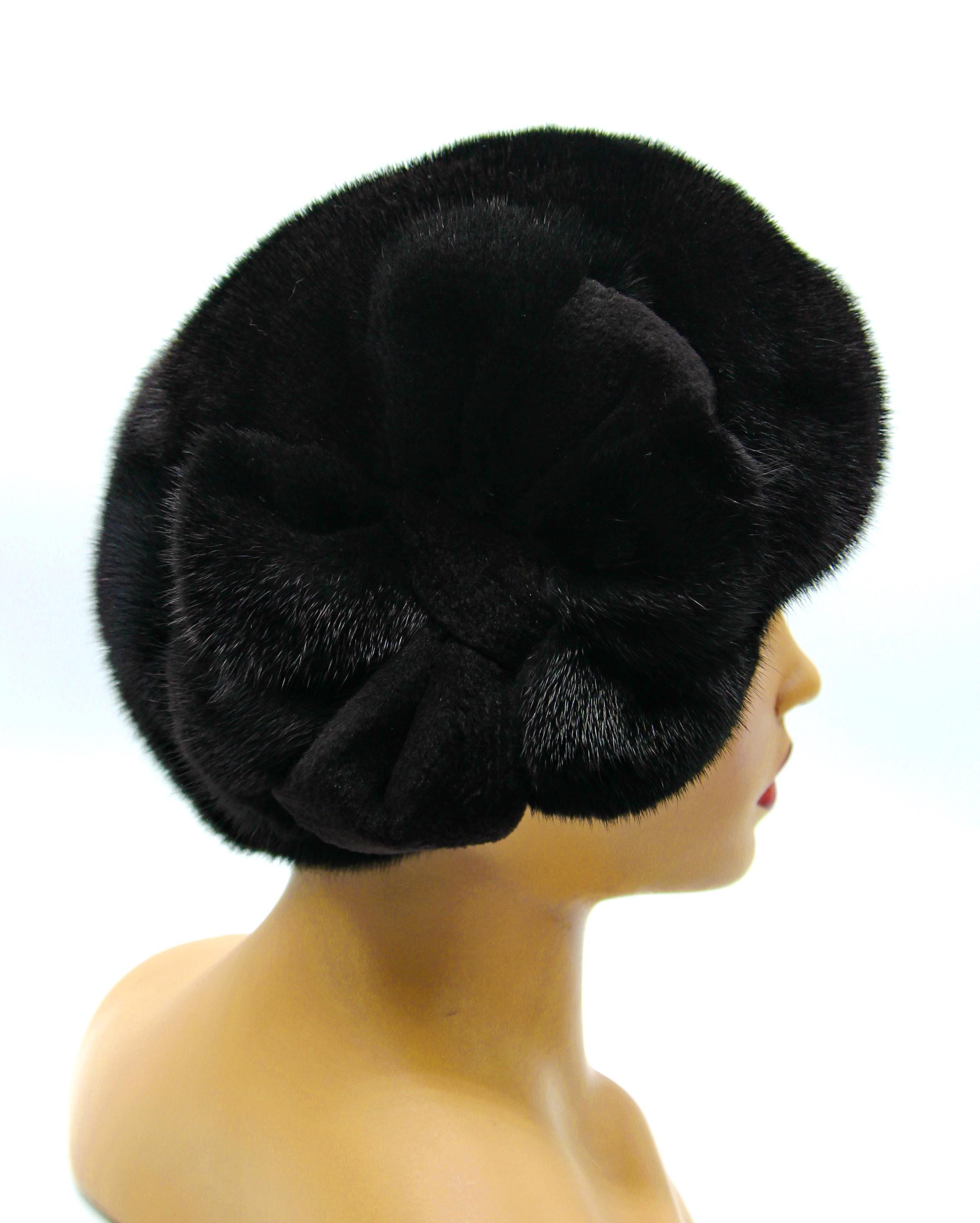 Black Mink Fur Hat Beret Flower Ukraine Women Elegant
