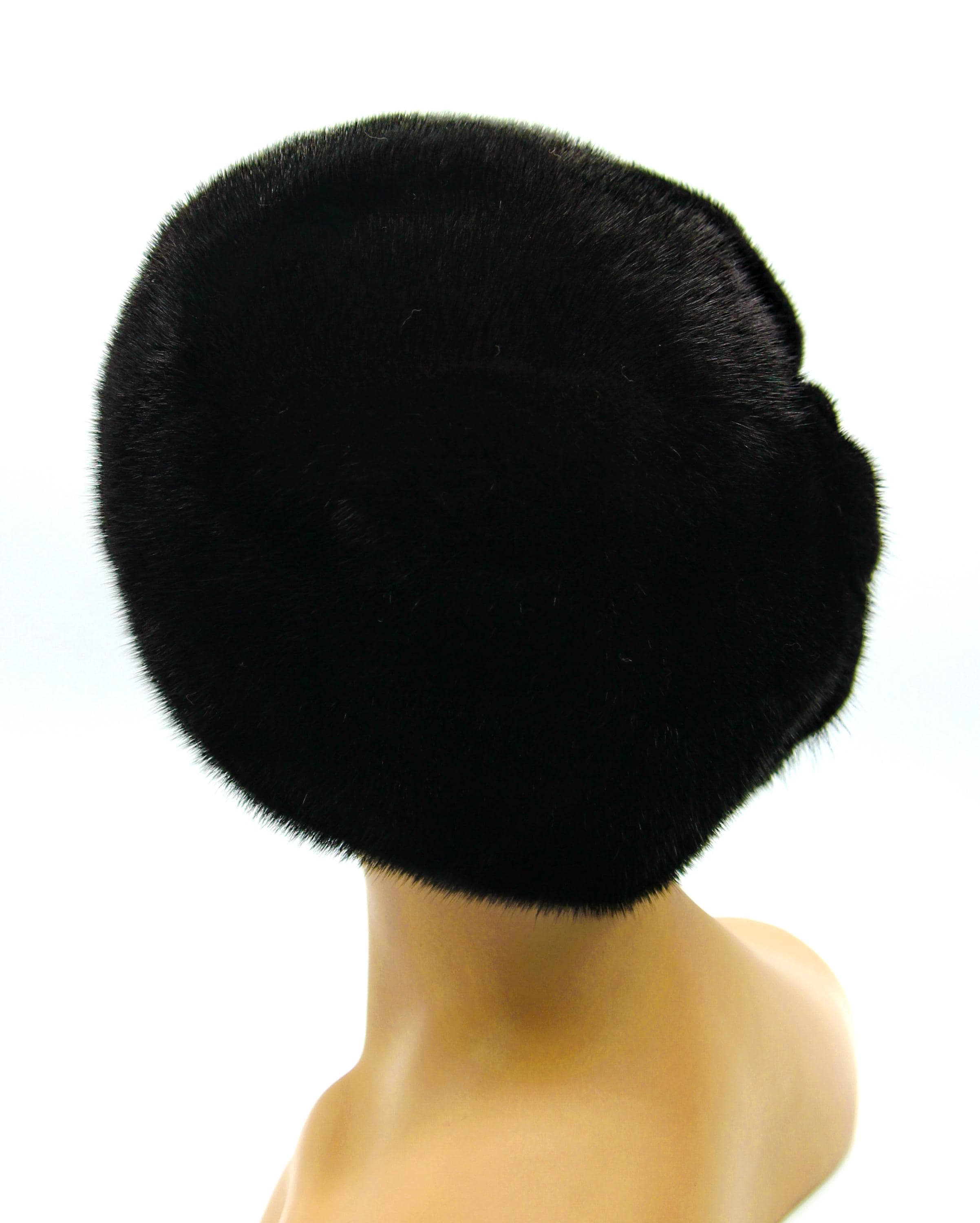 Pick this black mink fur hat with flower when you want a fur hat combining classic color with feminine floral accent.