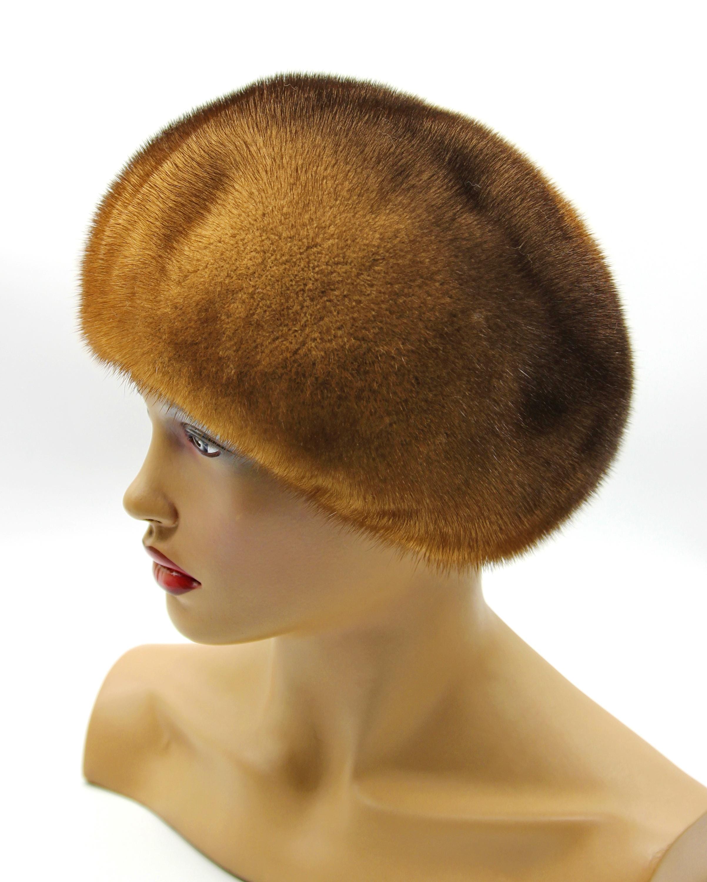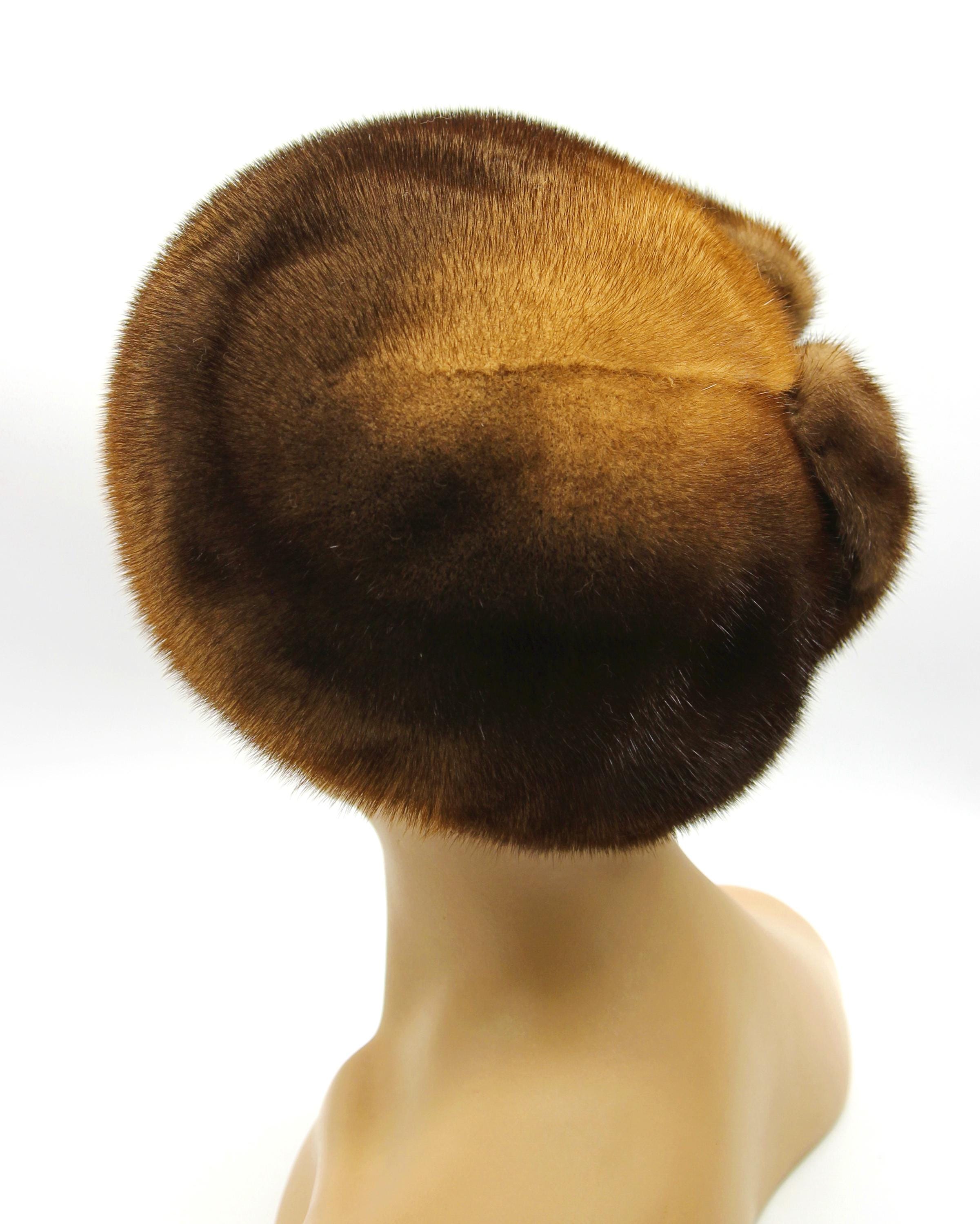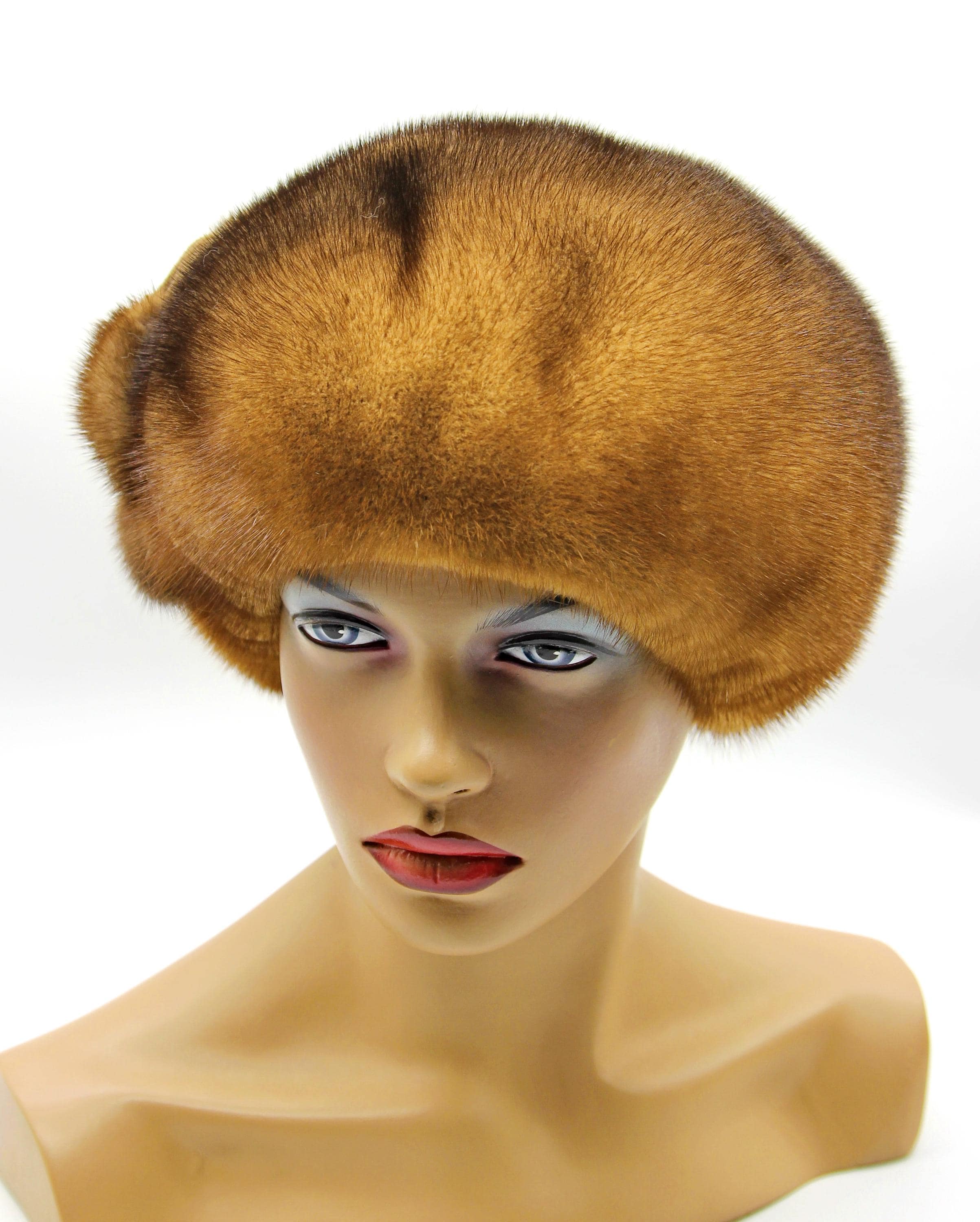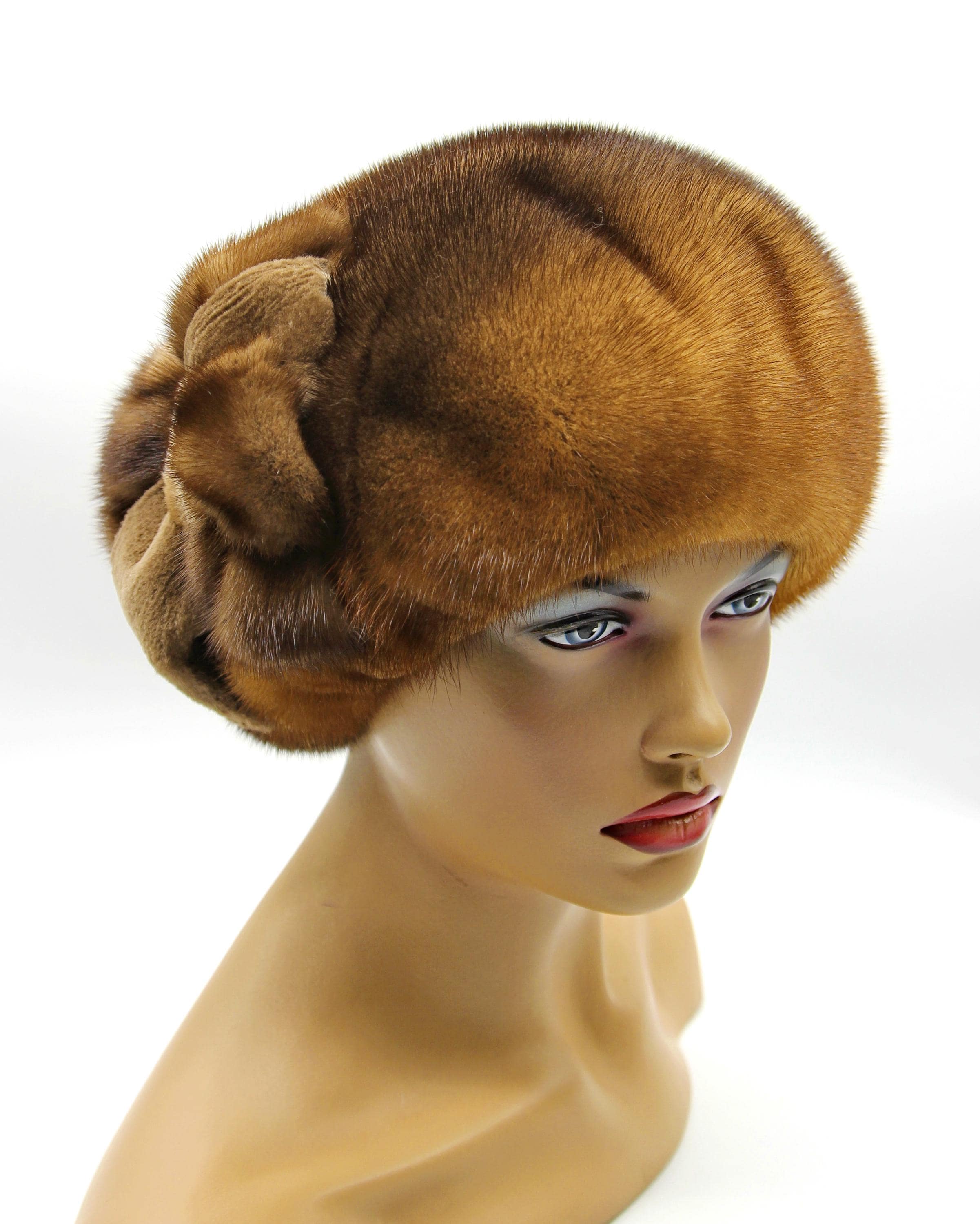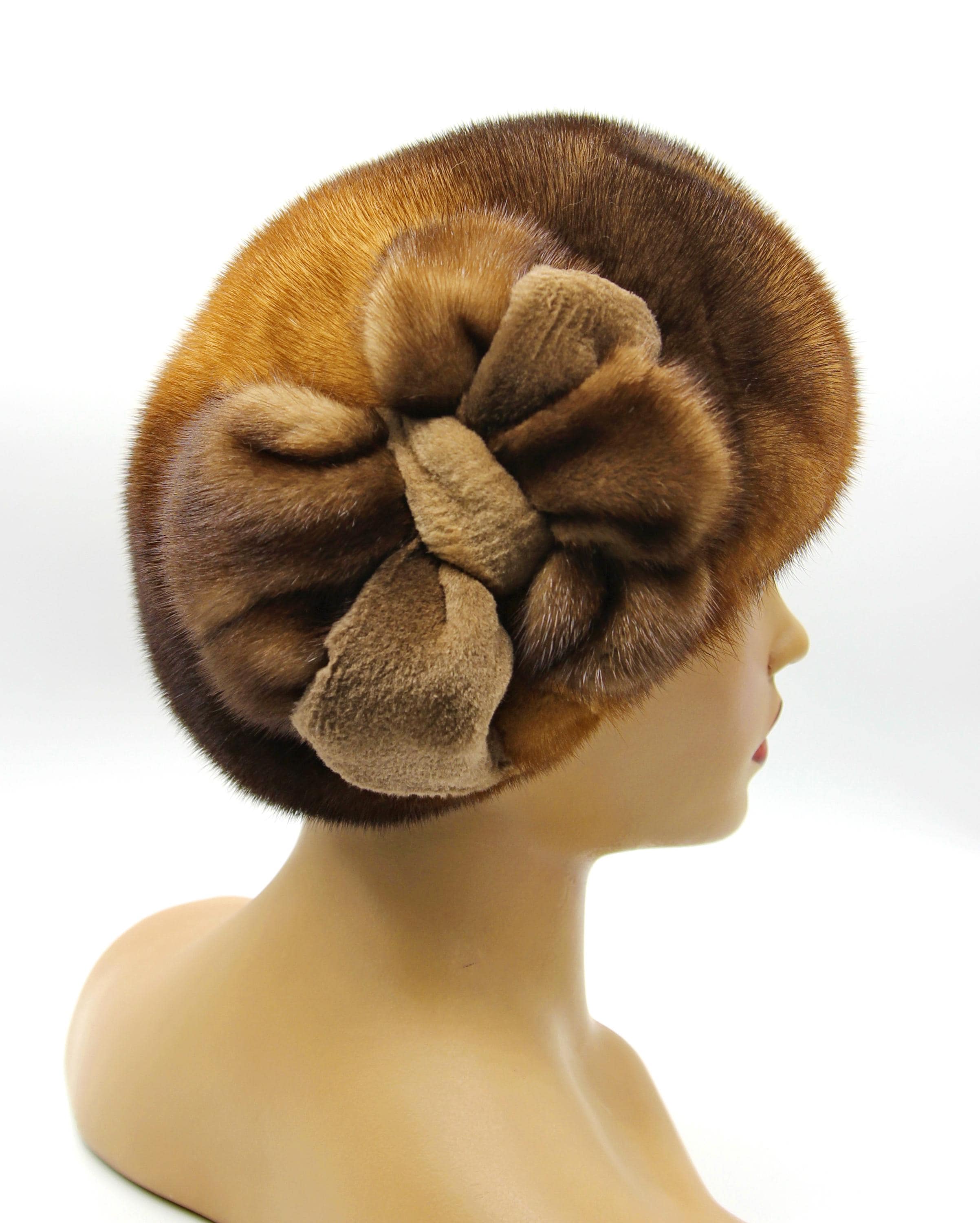 Choose this rare natural mink fur hat with flower when you want a fur hat in unique golden brown shade nature rarely produces.