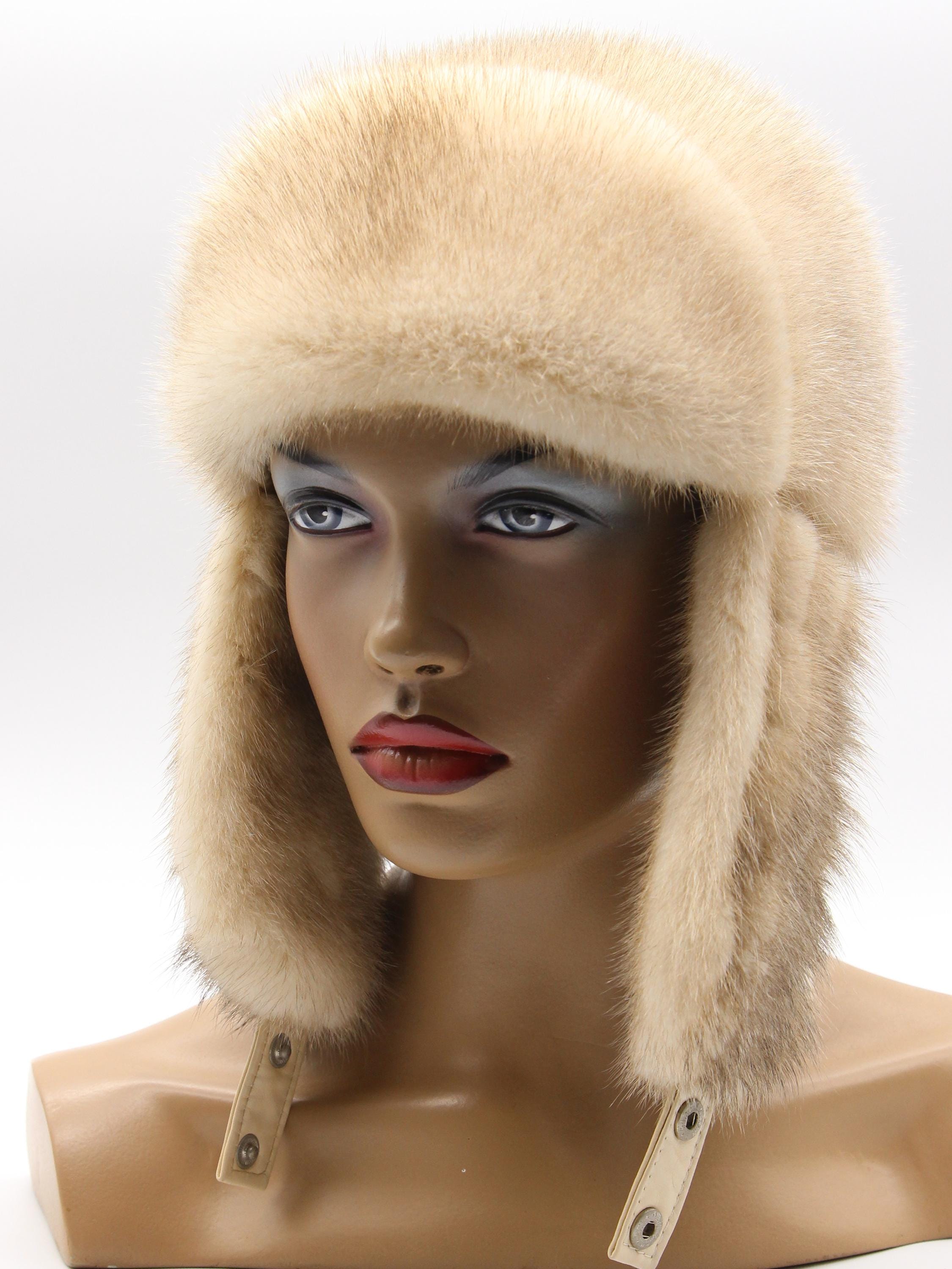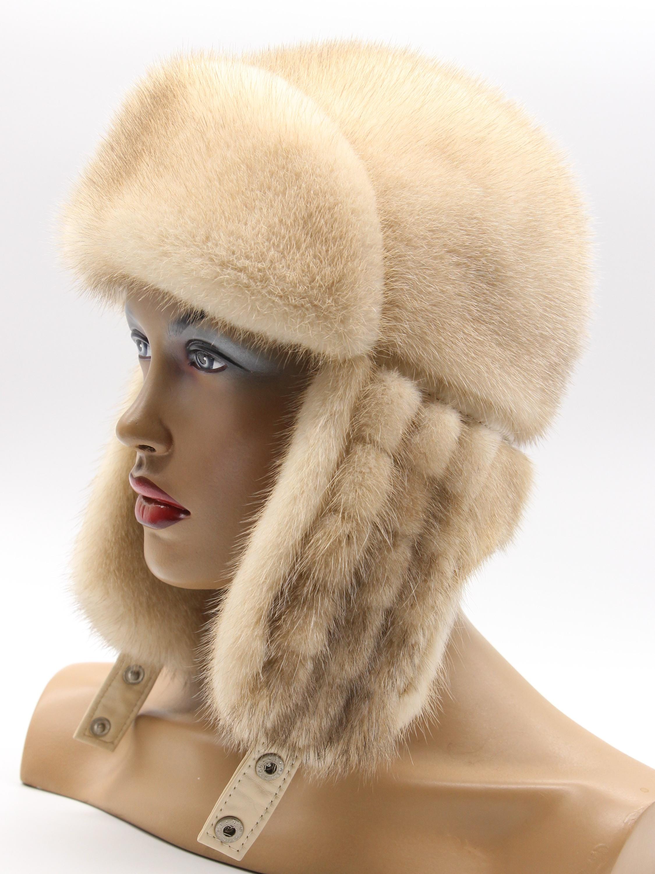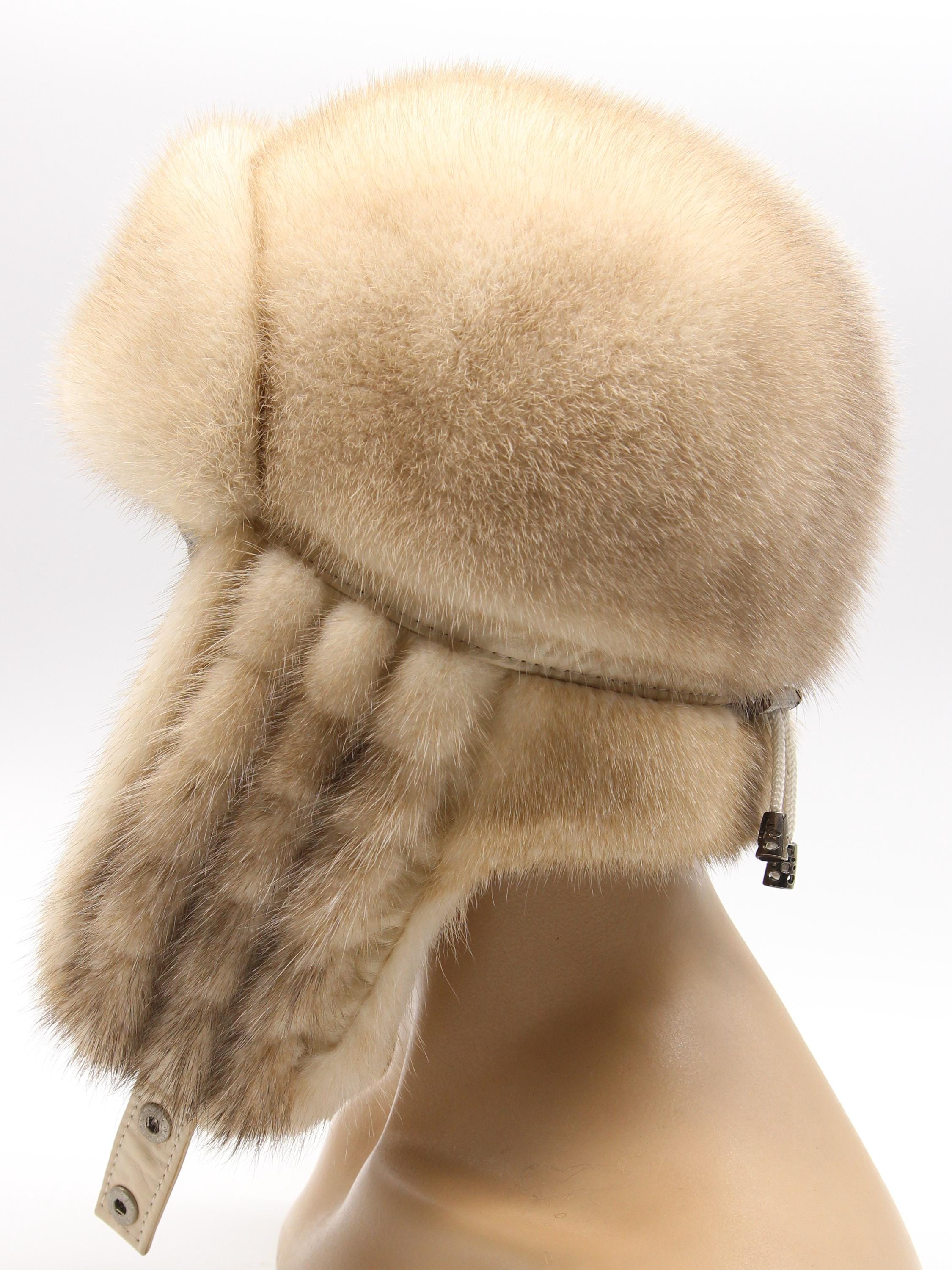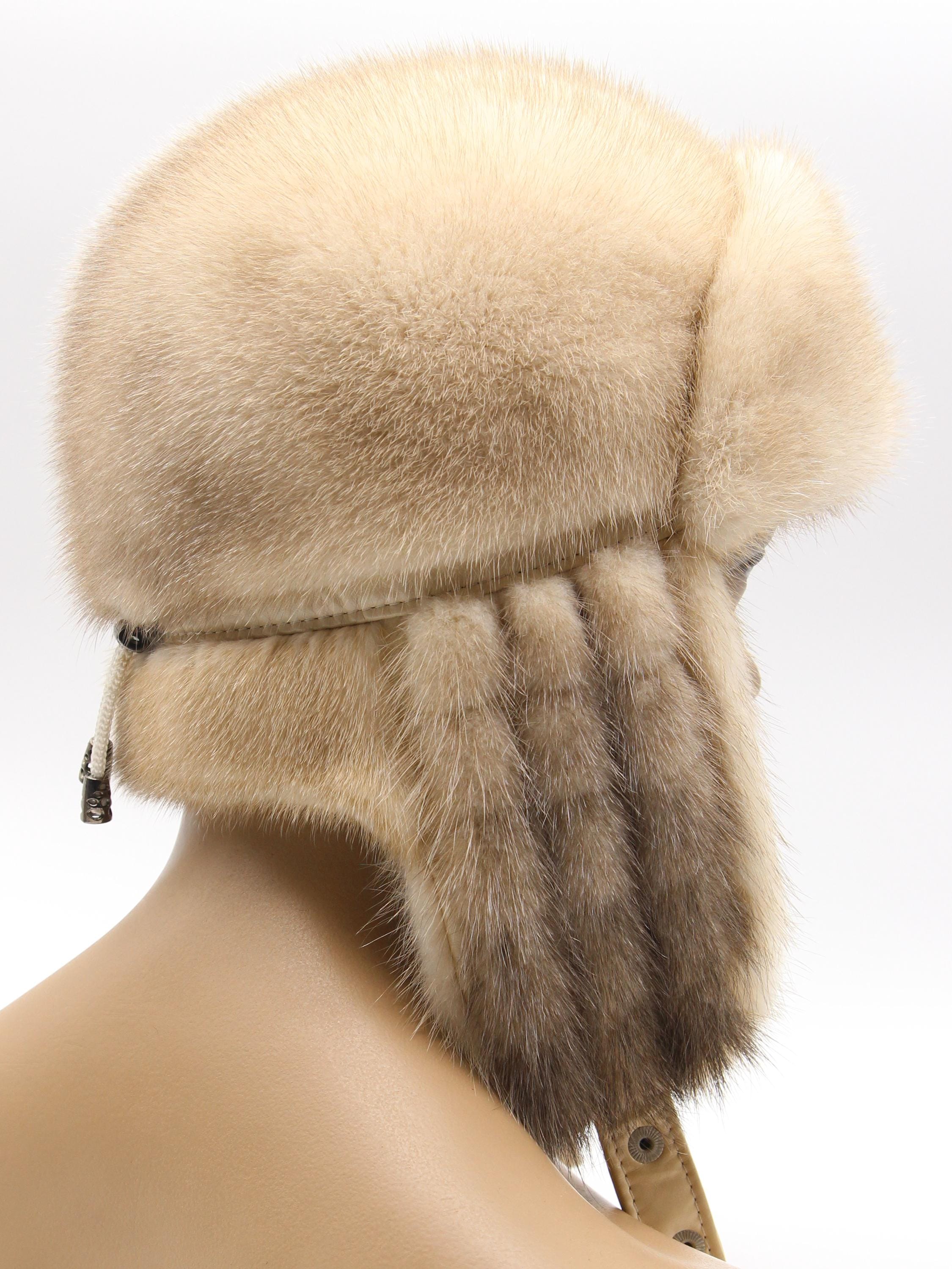 Handmade Pastel Beige Mink Fur Ushanka Hat for Women – Luxury Winter Trapper