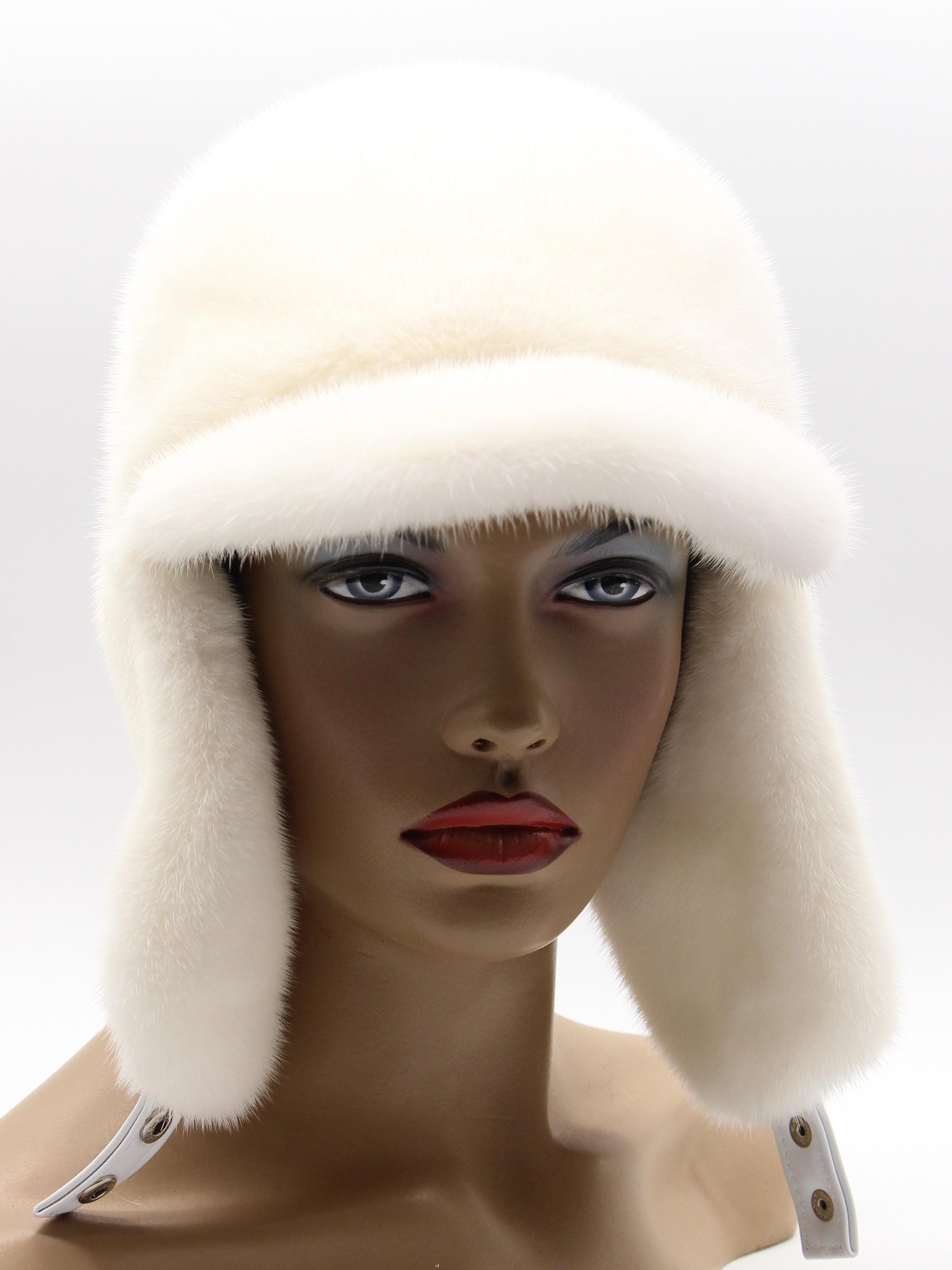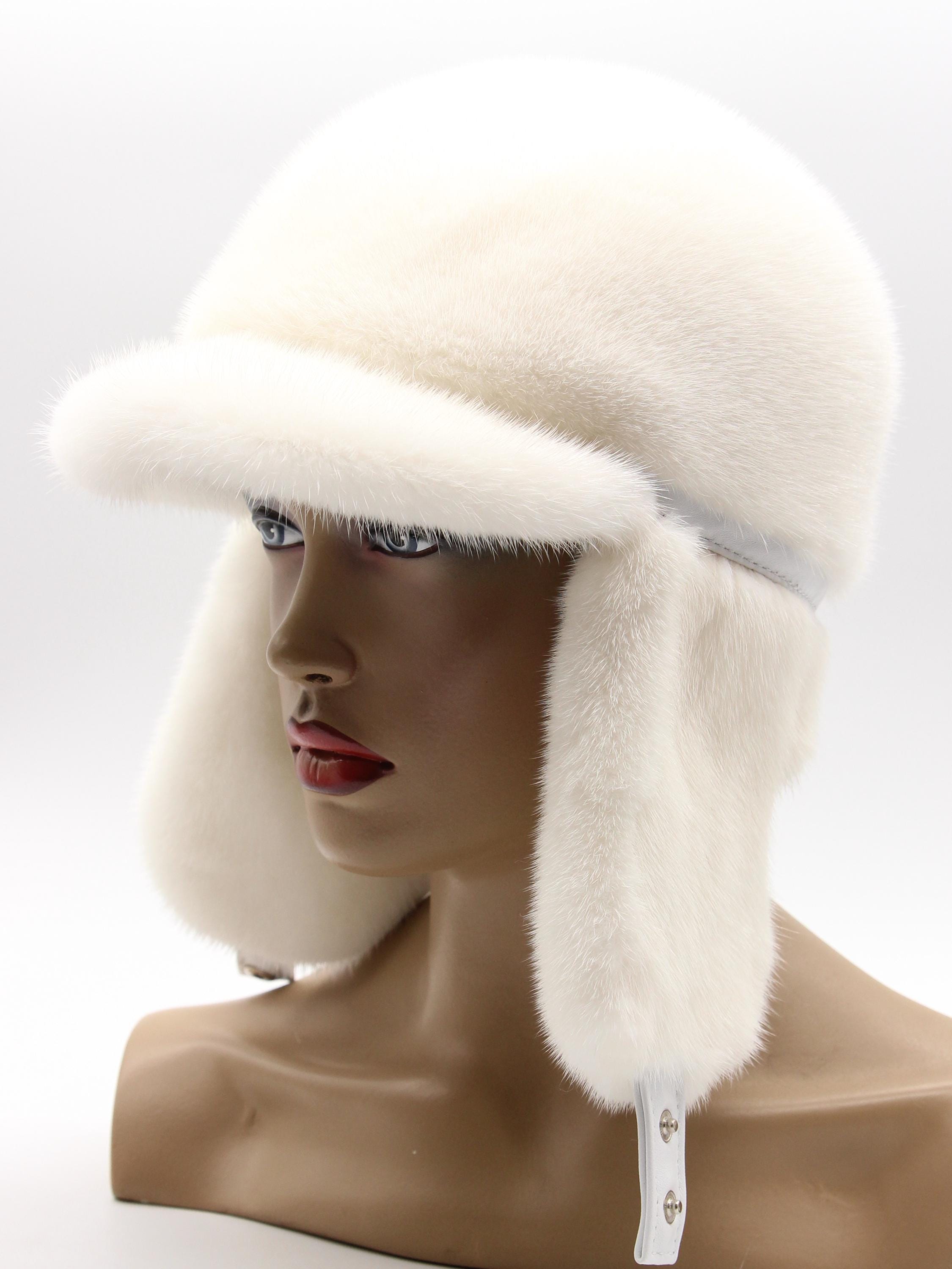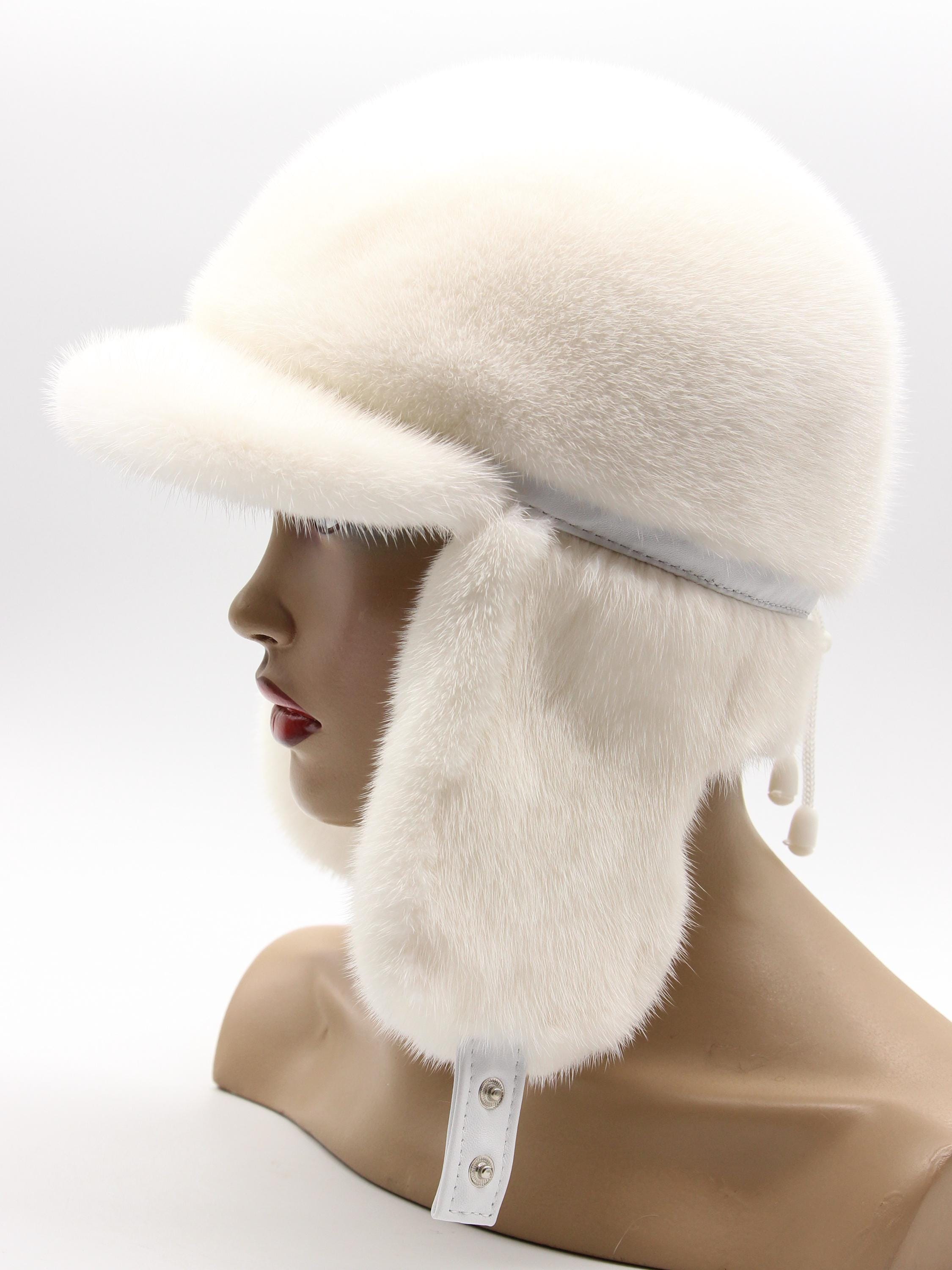 Handmade Pearl Beige Mink Fur Ushanka Hat with Visor for Women – Luxury Winter Trapper