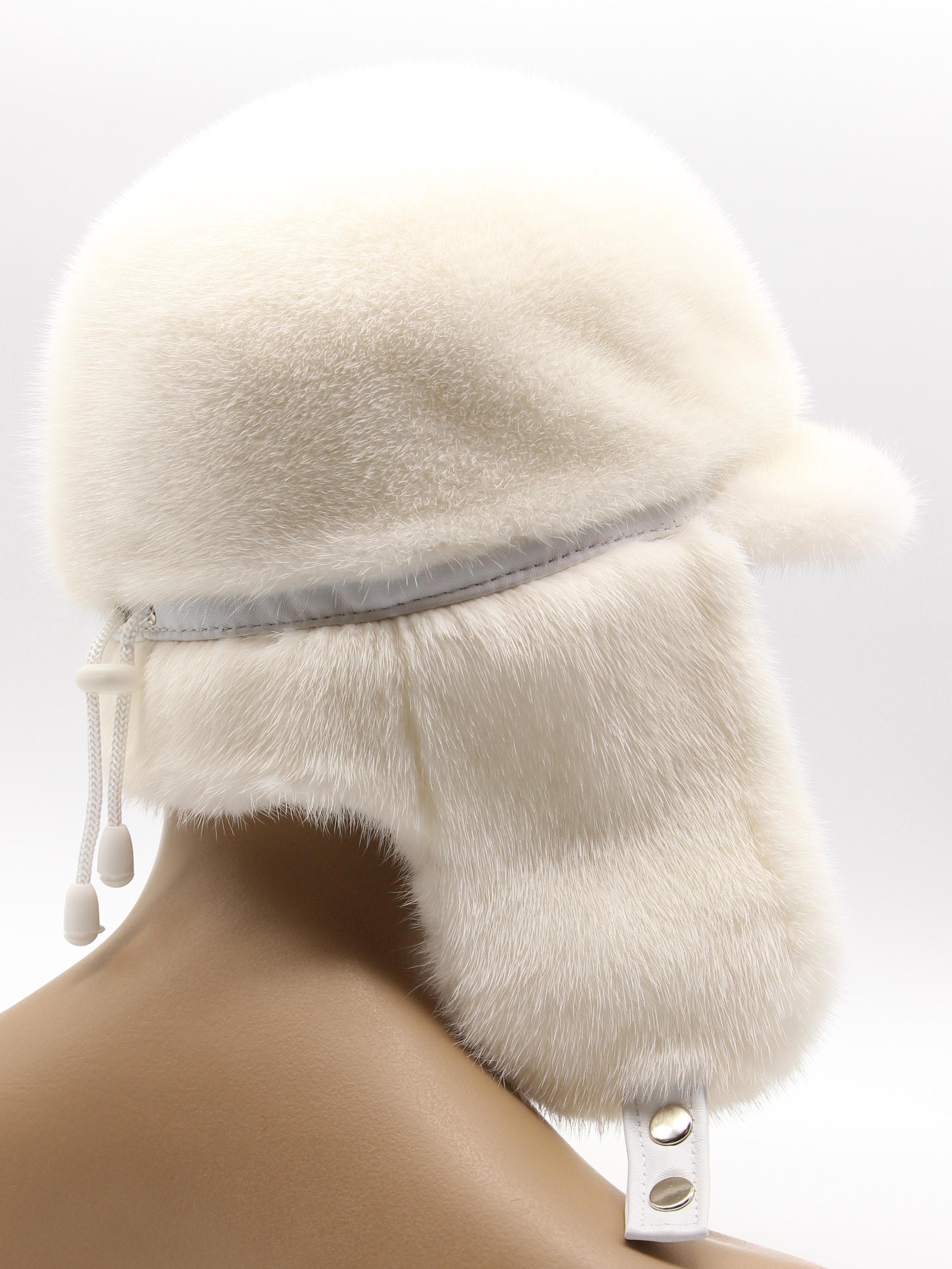 My mother's light beige mink ushanka from 1989 (classic style without visor) still looks current 36 years later. This pearl beige with visor will age the same way – timeless color, quality construction, proper care means decades of wear.