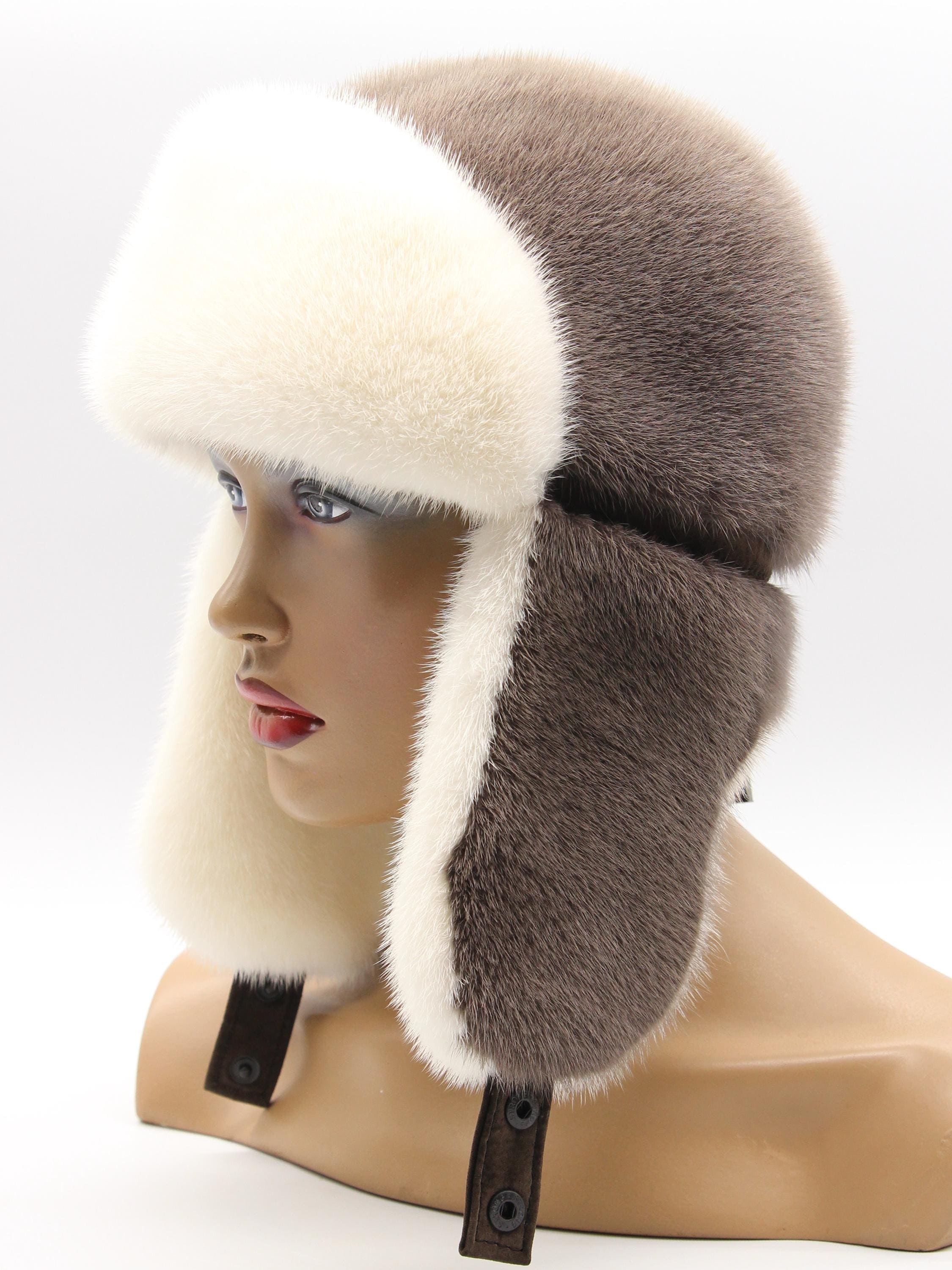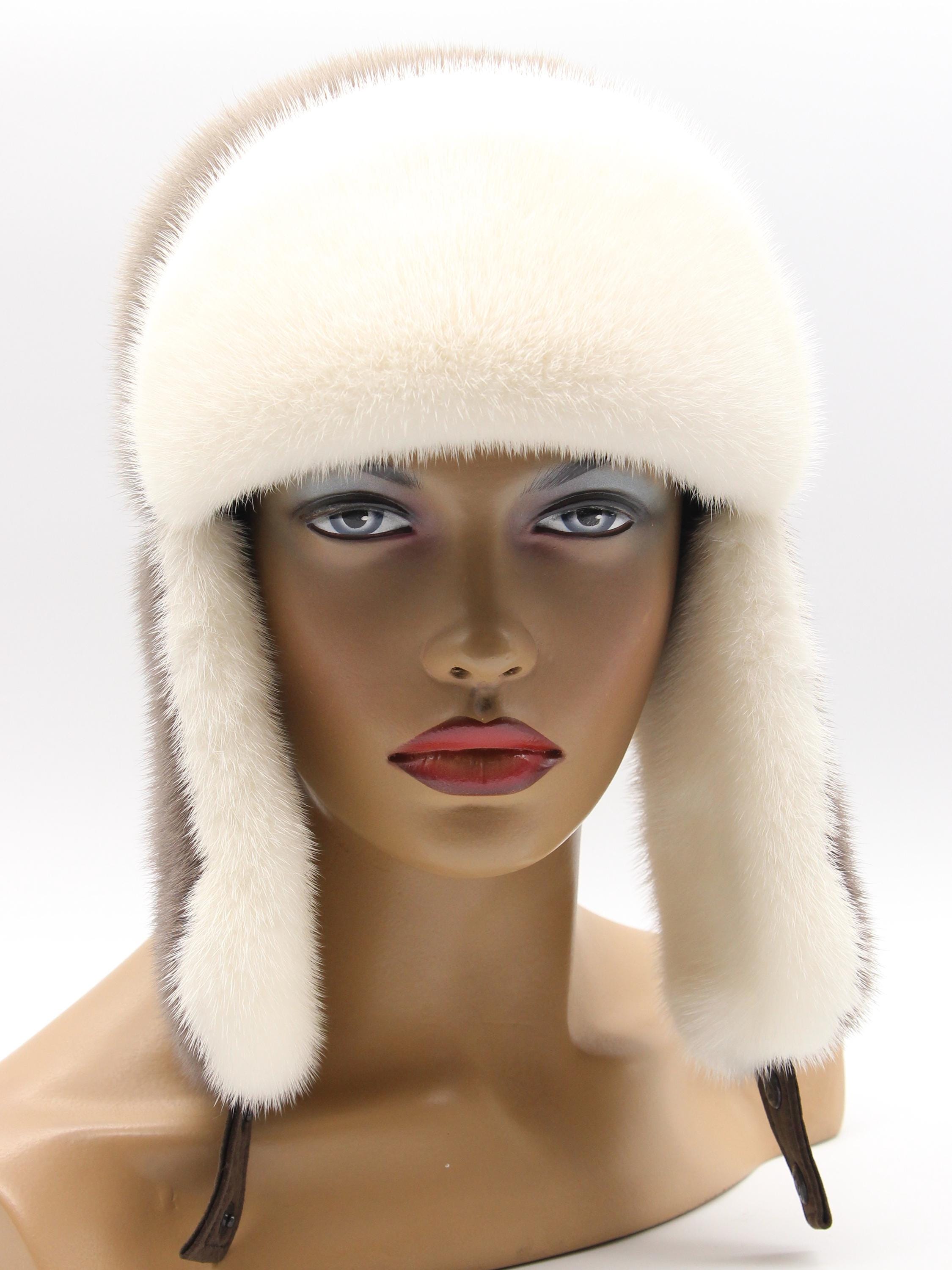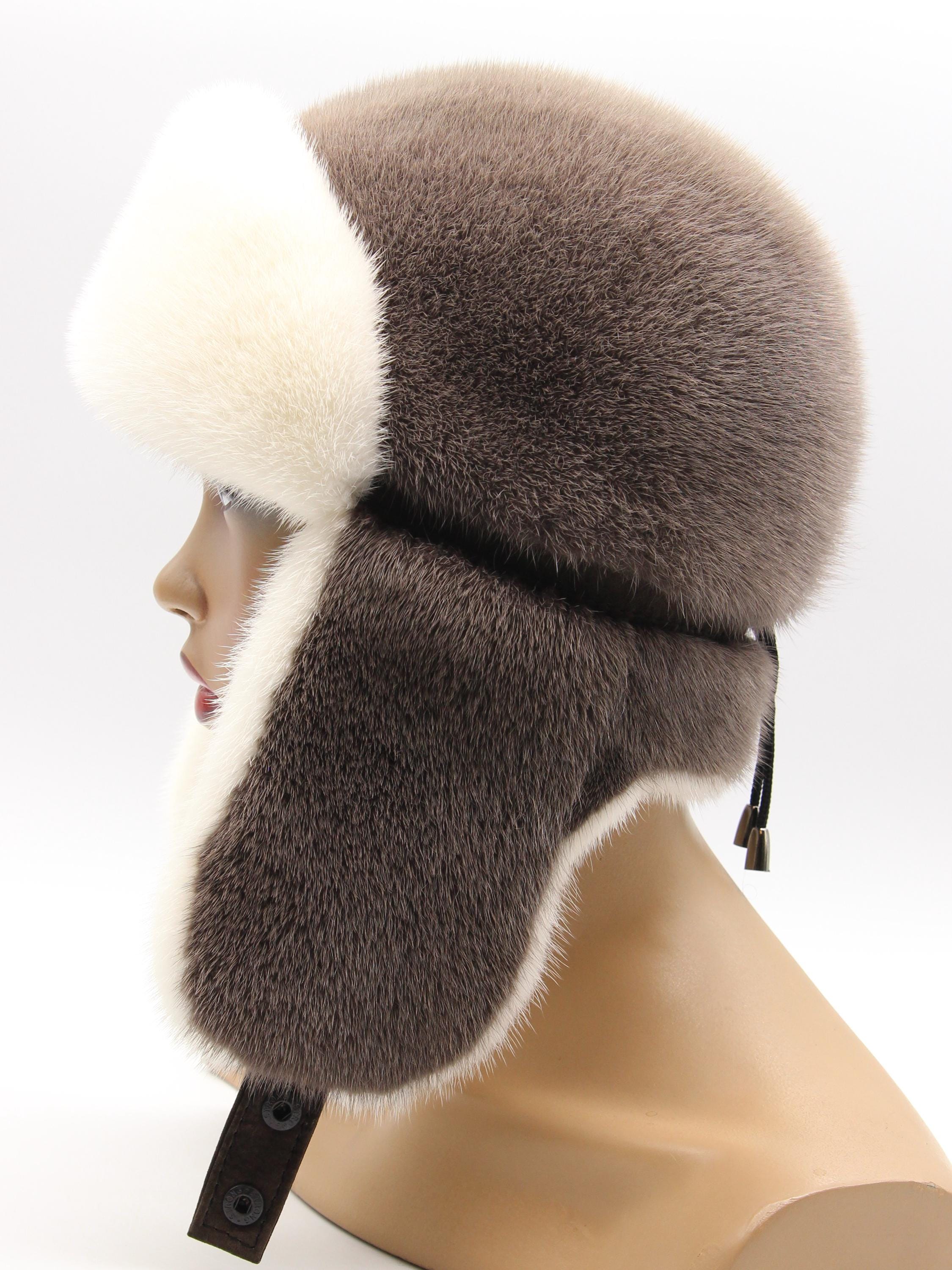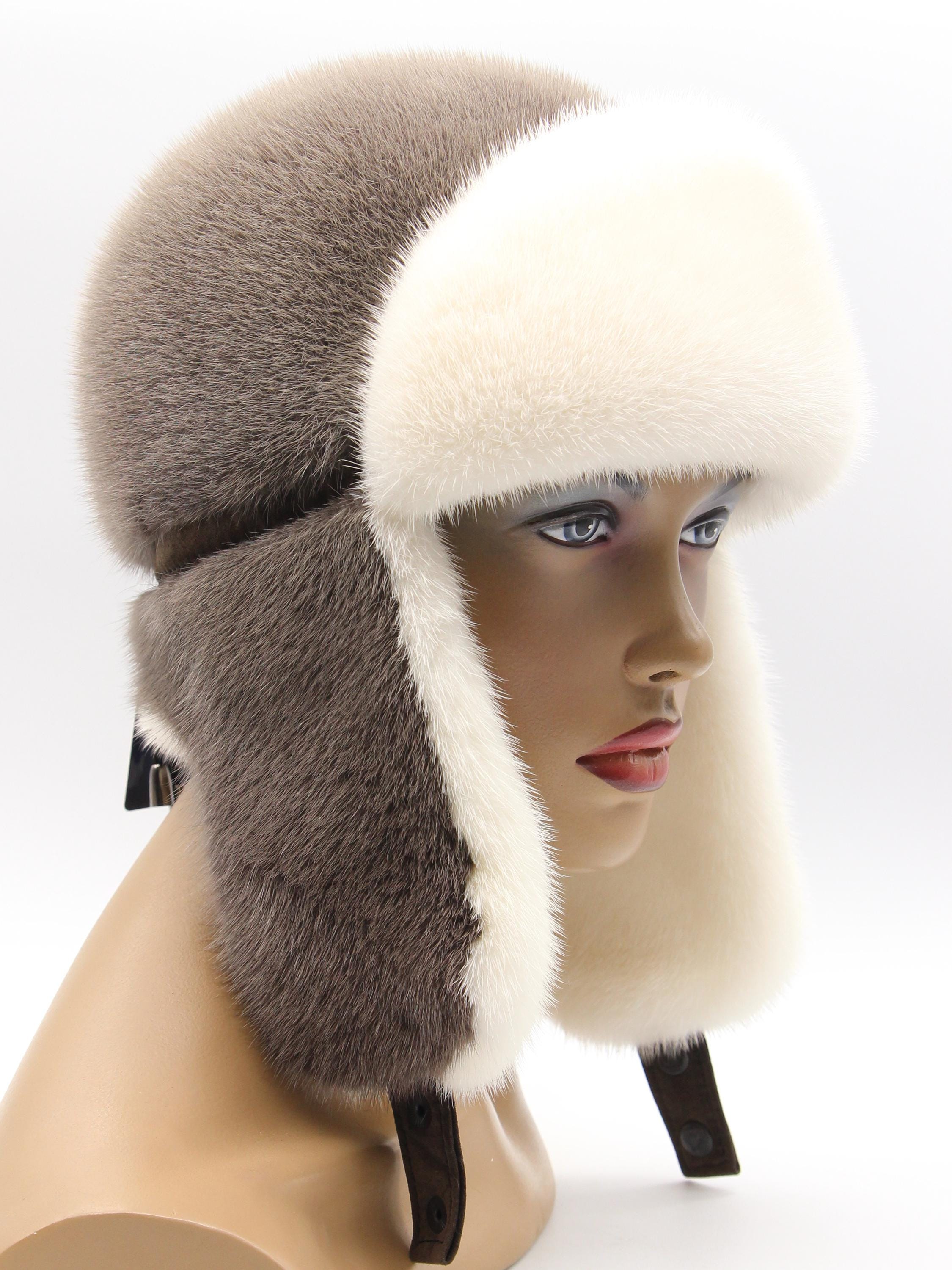Inside earflaps: White mink lining (visible when worn)