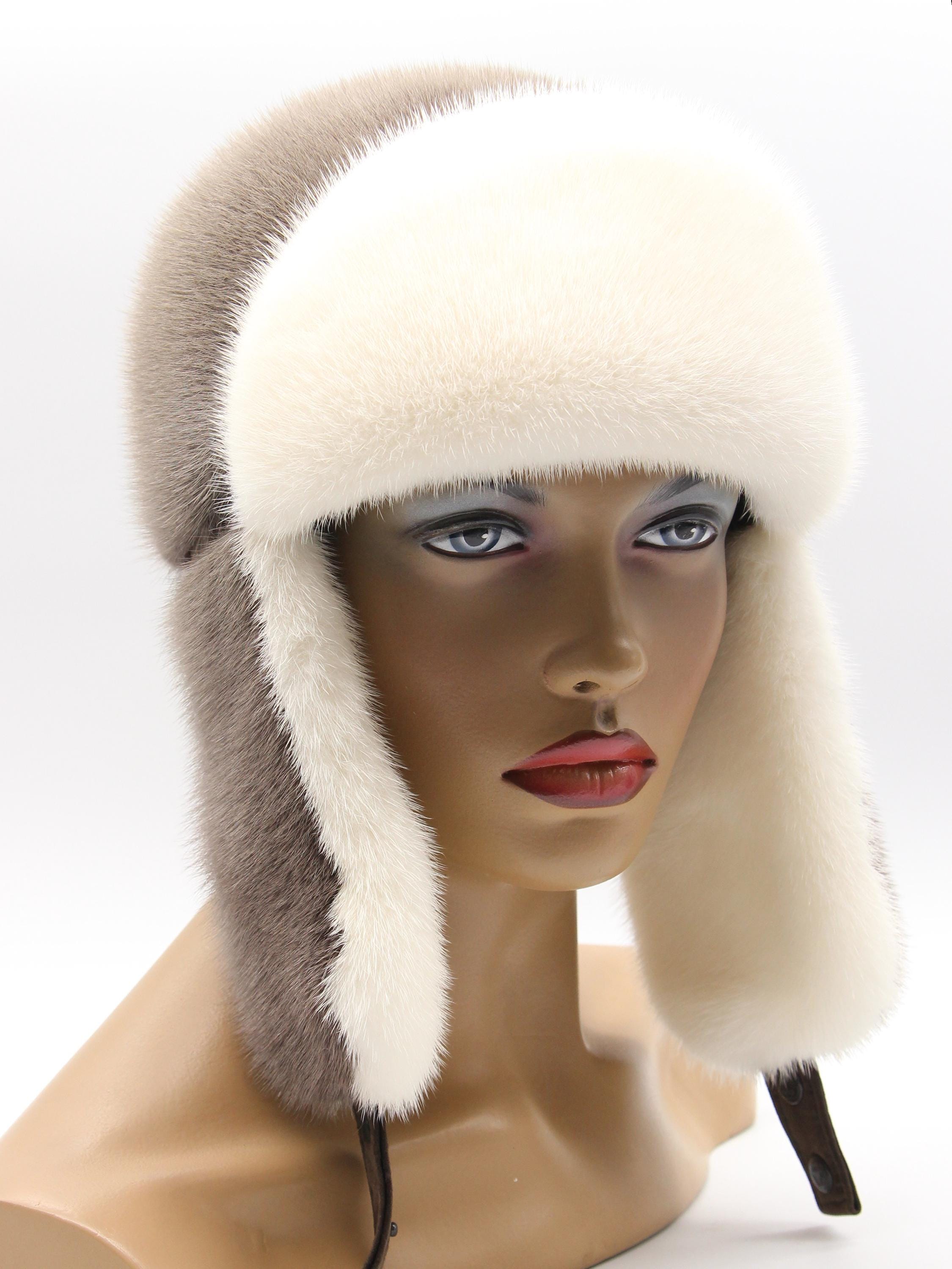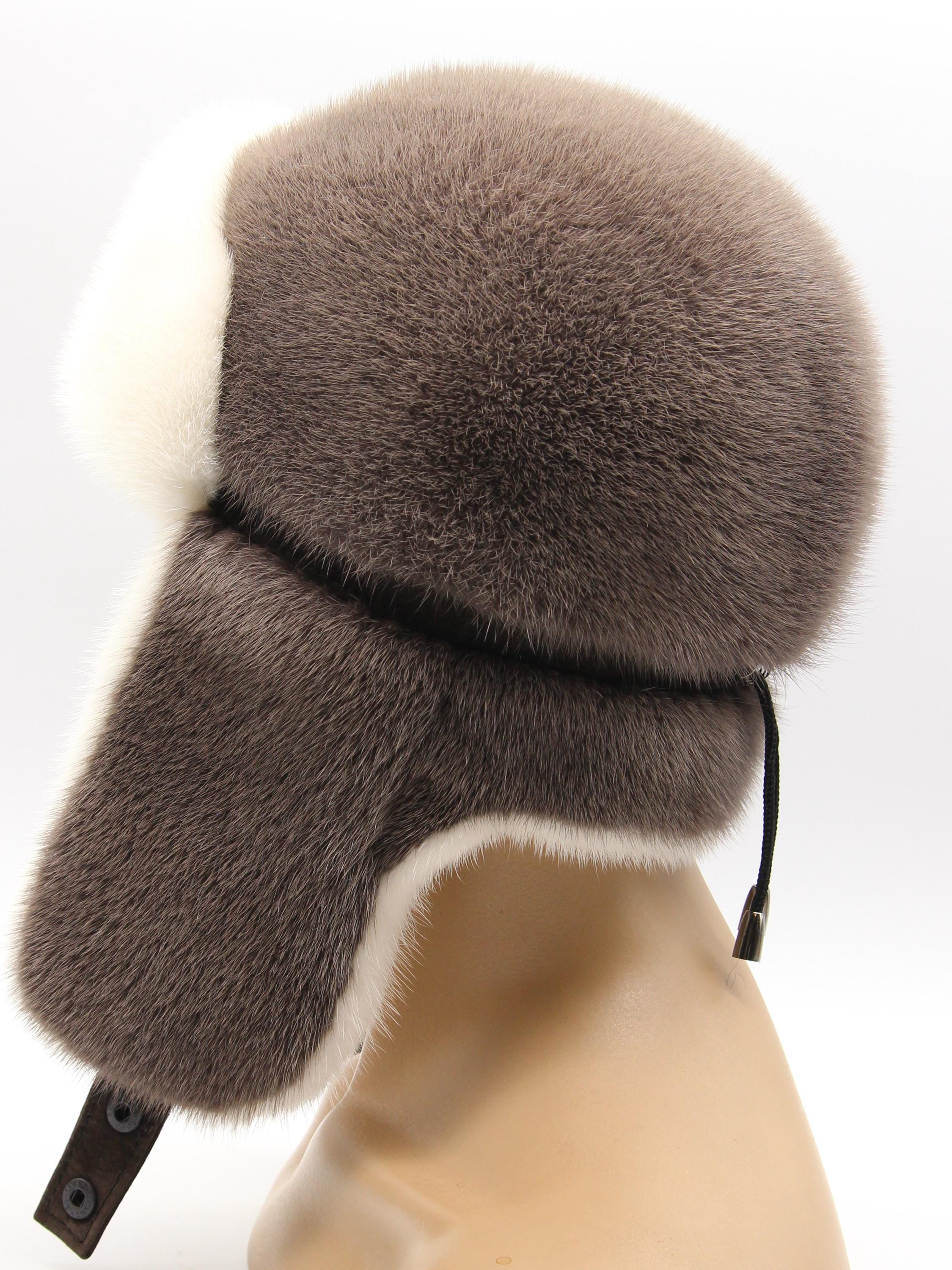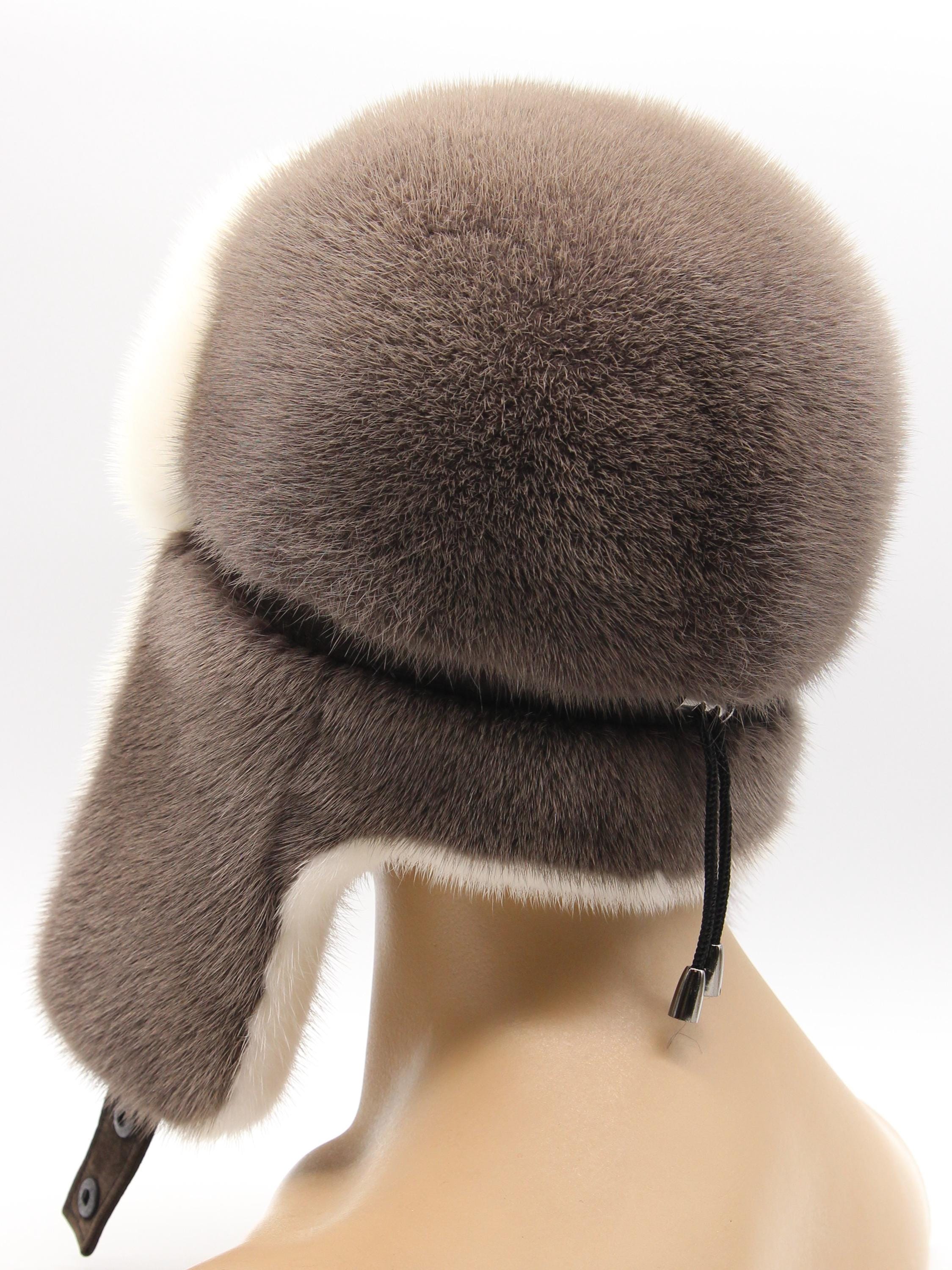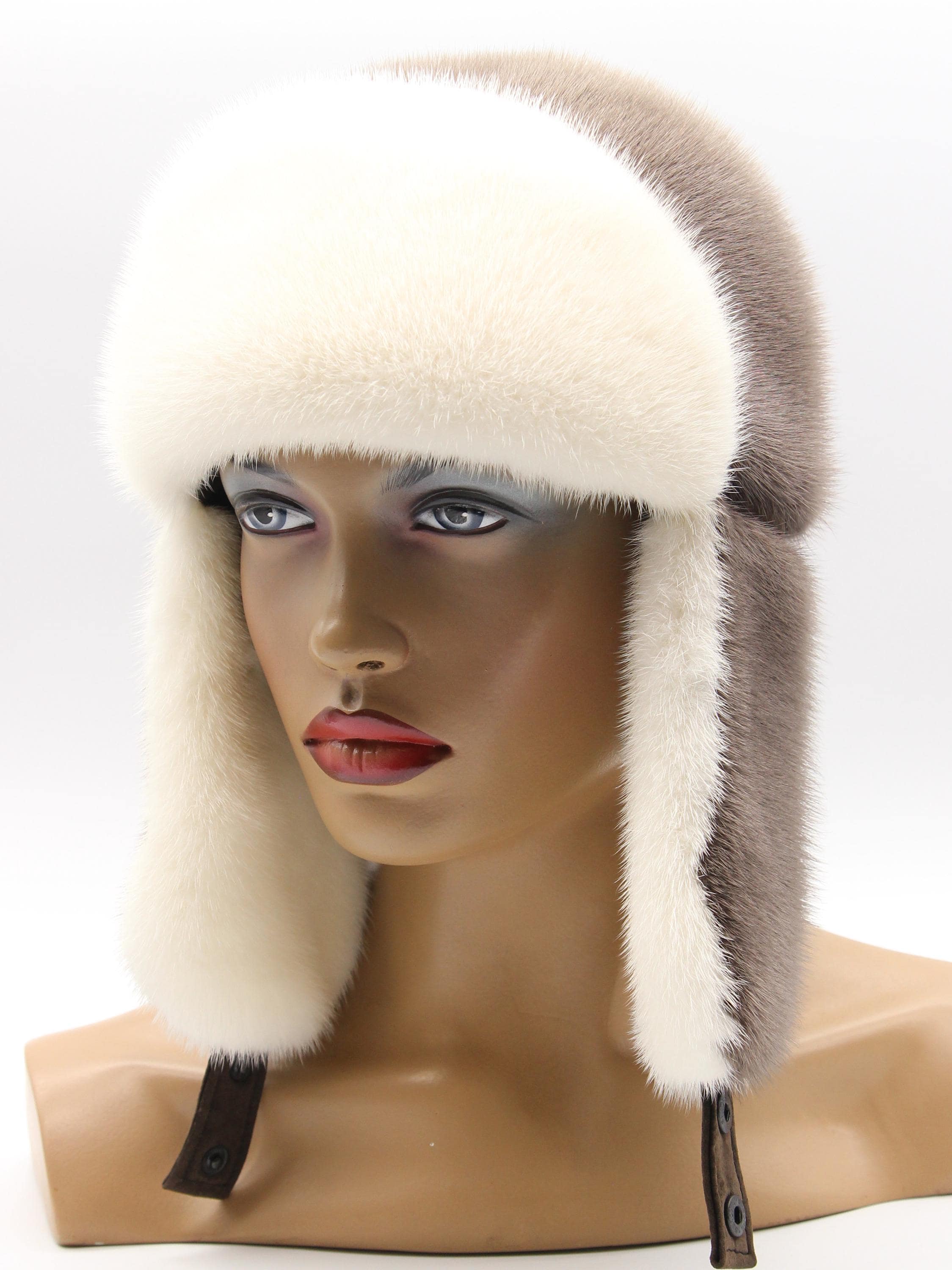 Inside earflaps: White mink lining (visible when worn)