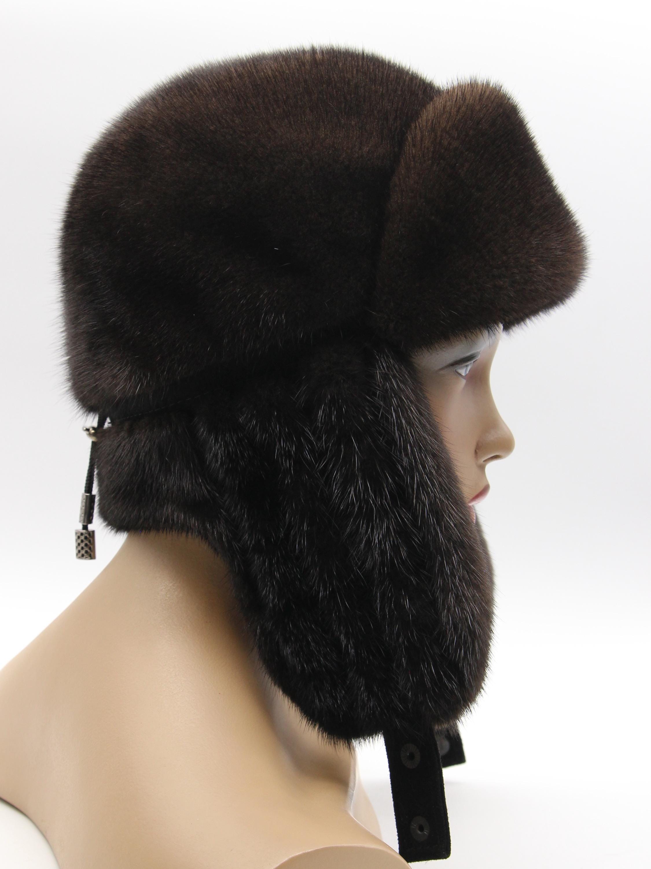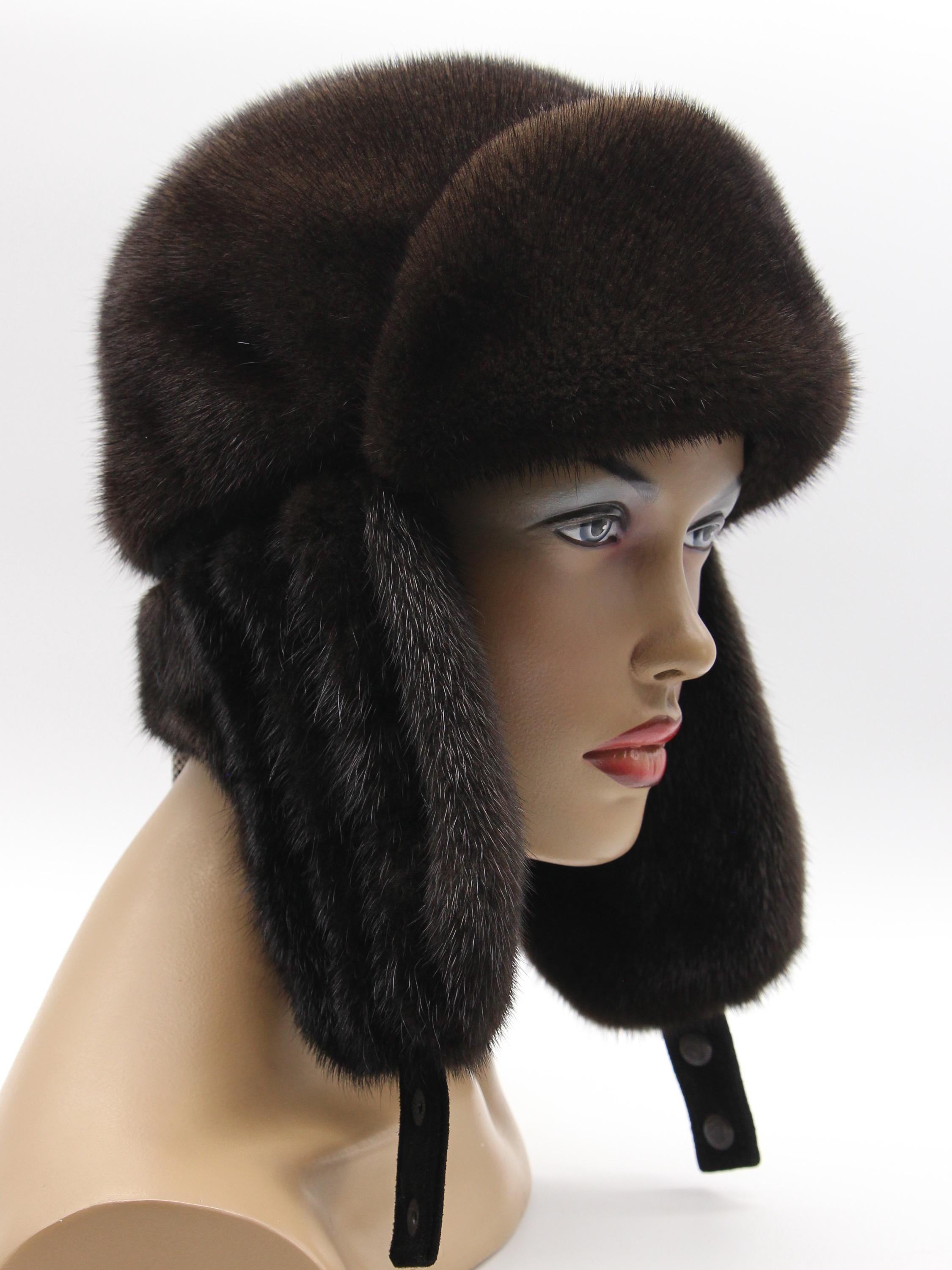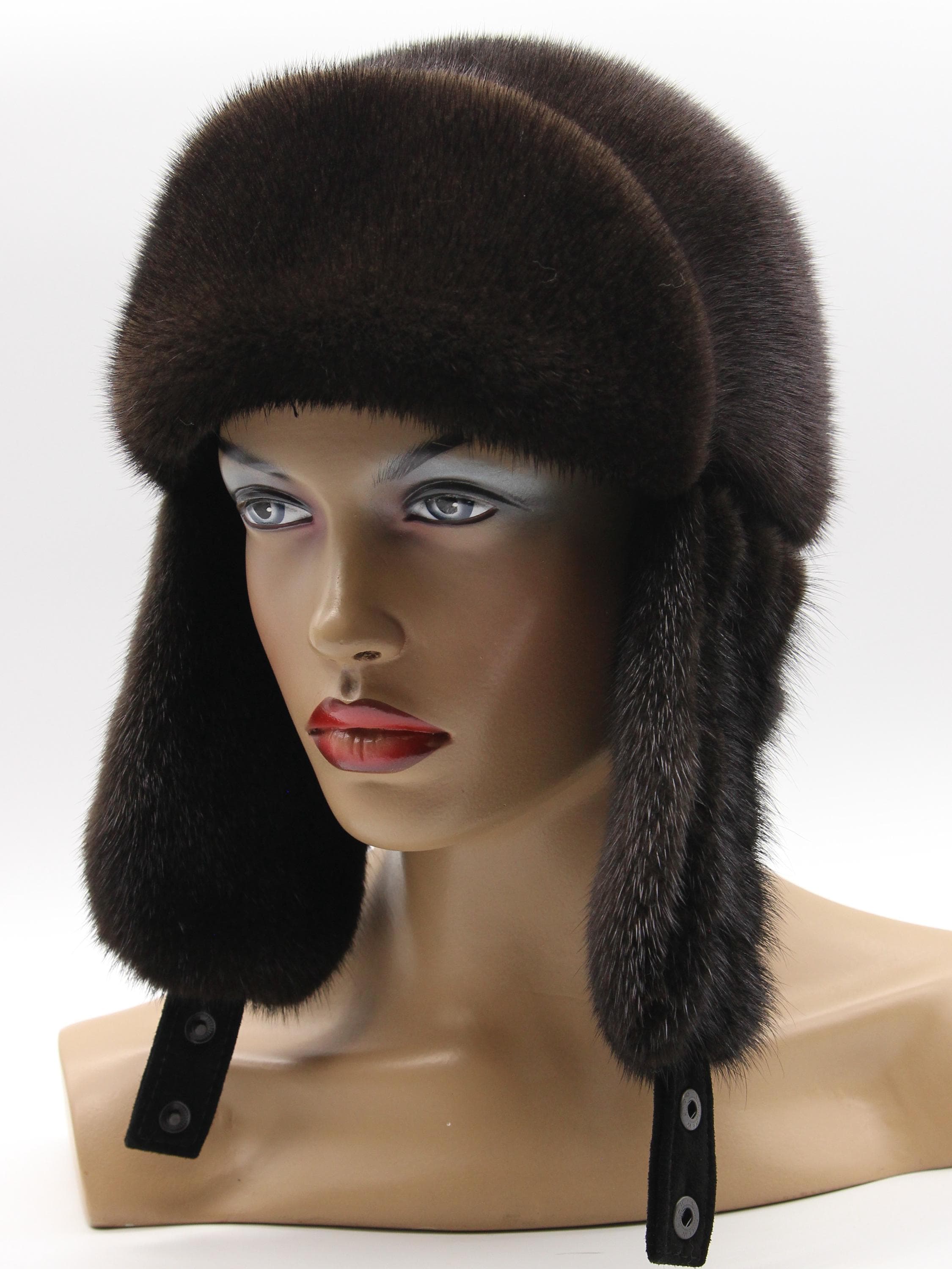 Handmade Brown Mink Fur Ushanka Hat for Women – Classic Winter Trapper