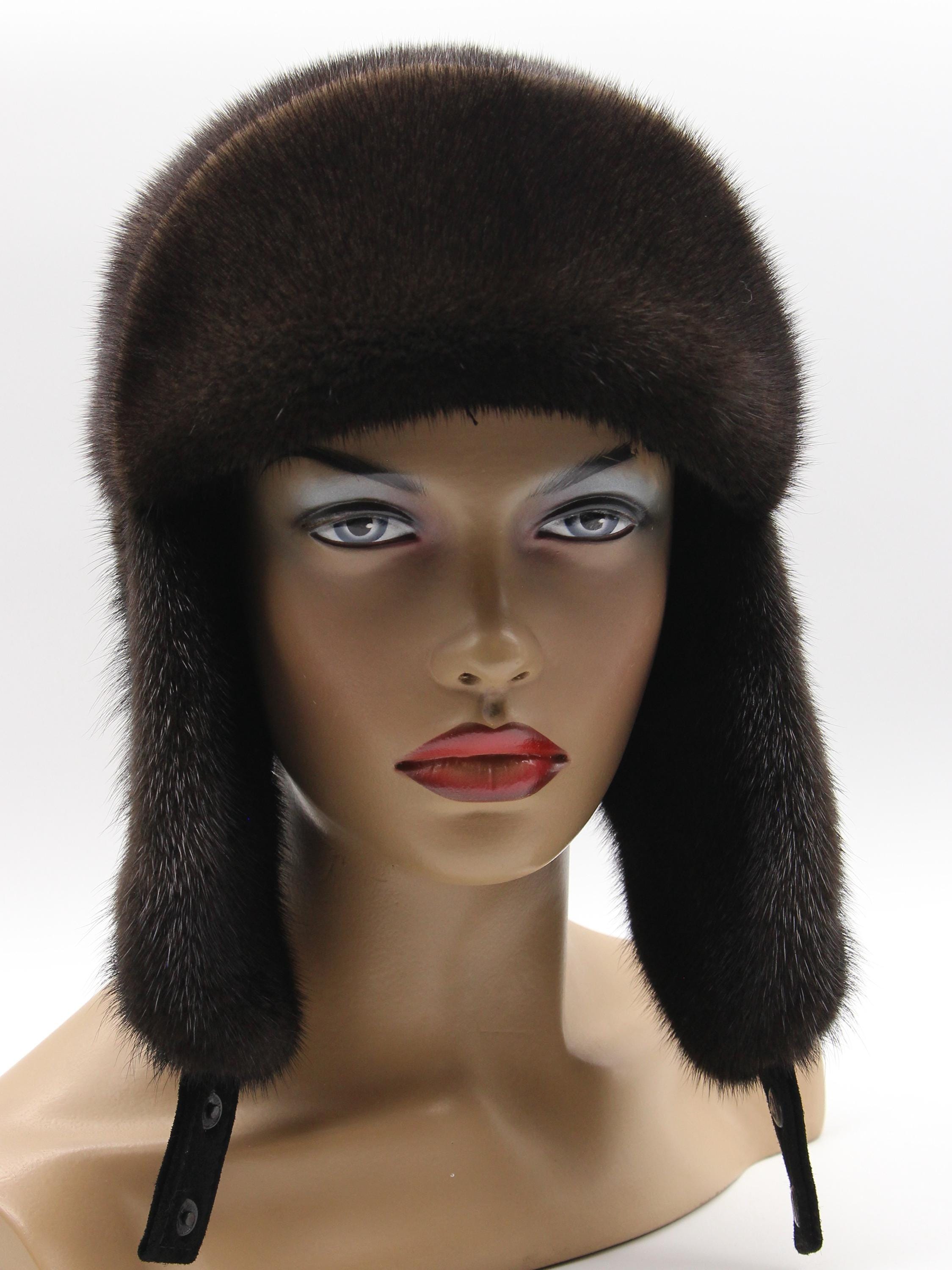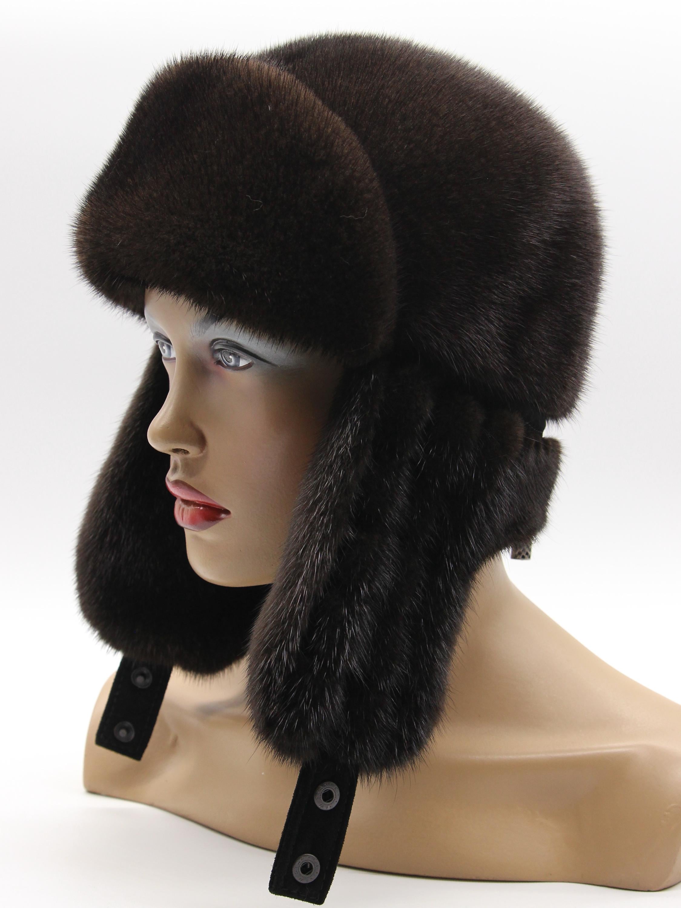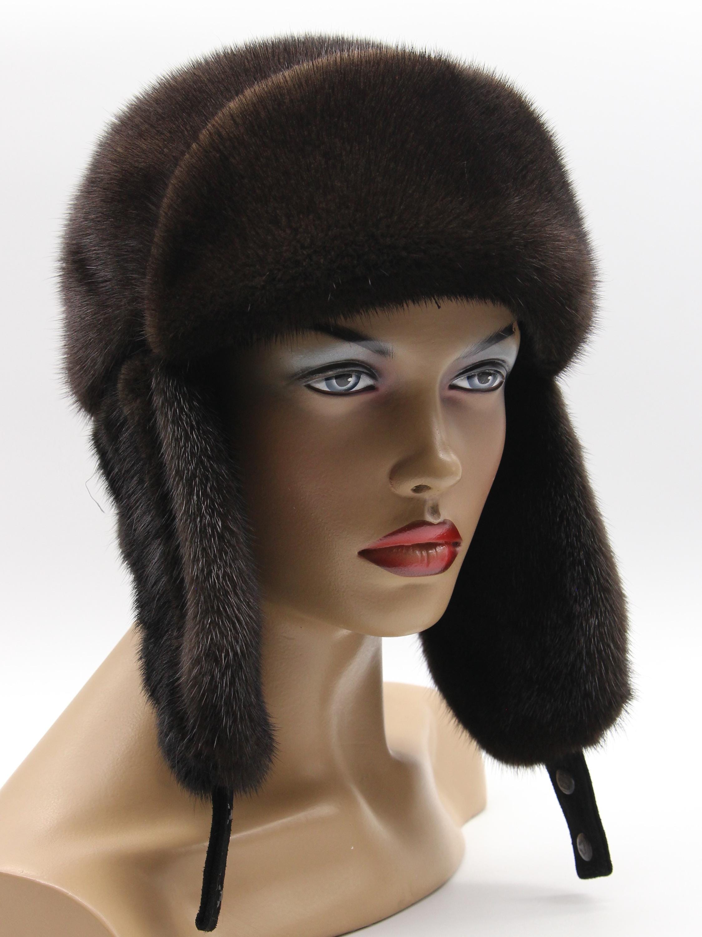 Handmade Brown Mink Fur Ushanka Hat for Women – Classic Winter Trapper