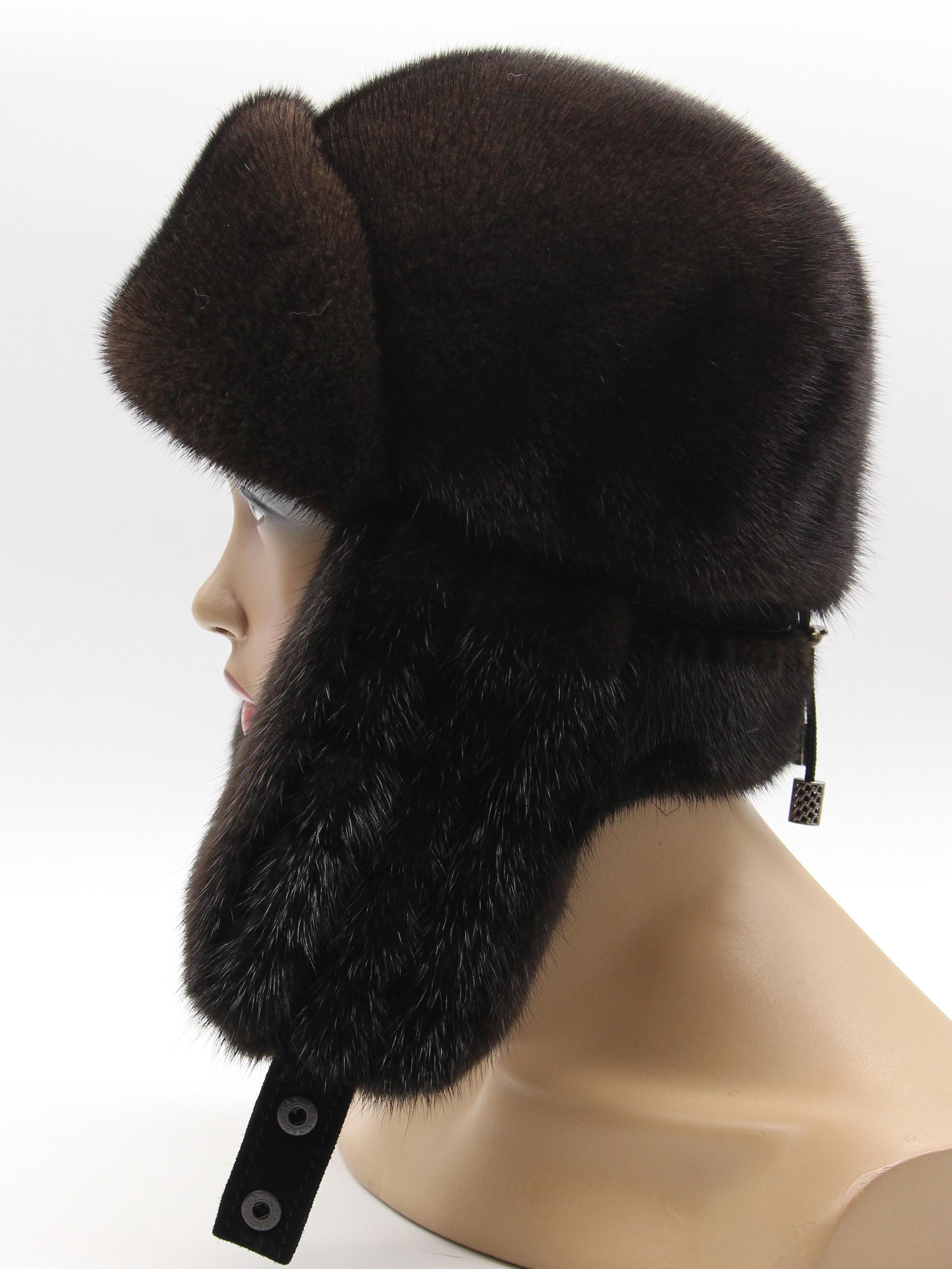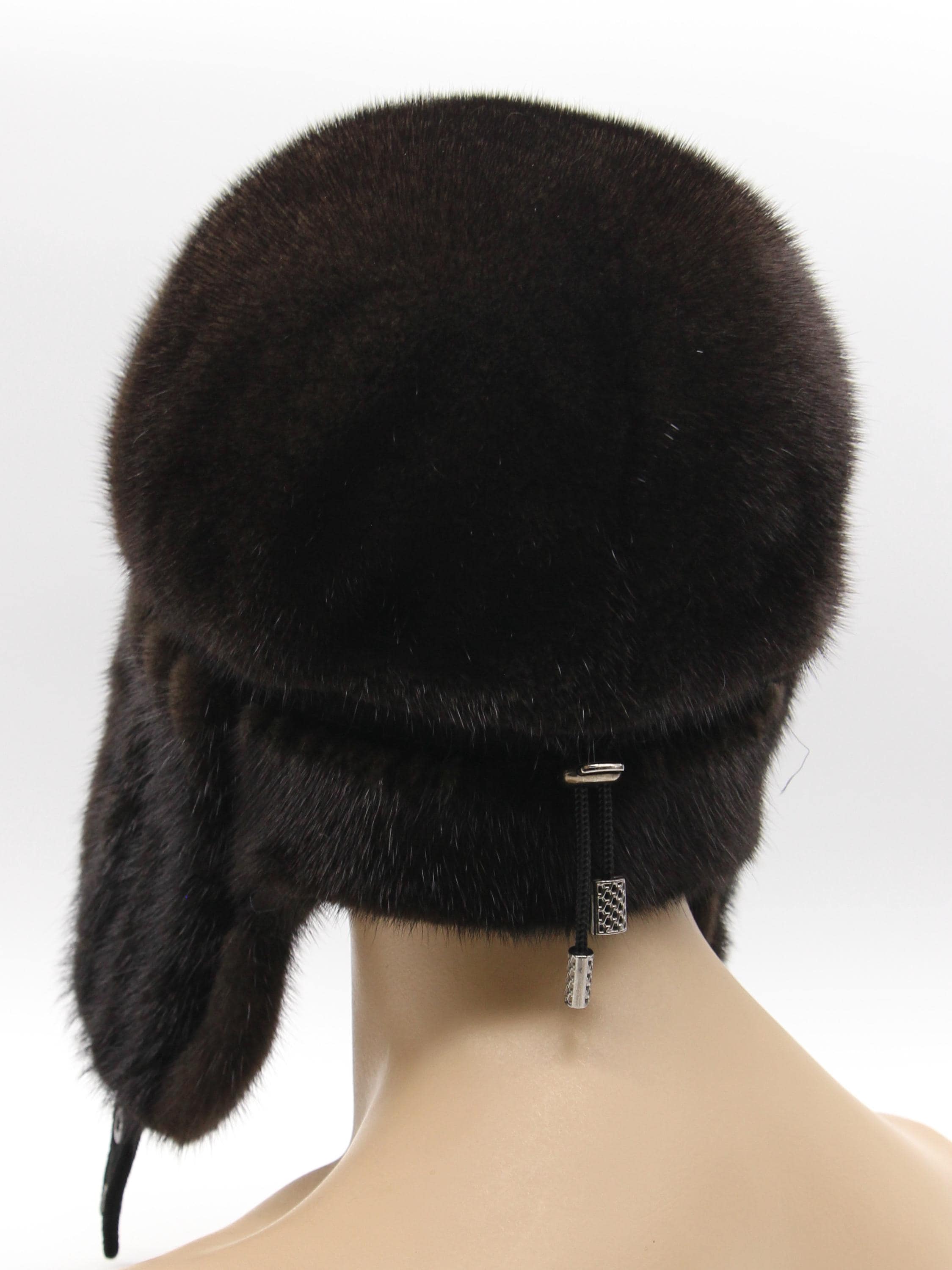 Brown mink ushanka in solid color. That versatile neutral everyone reaches for because it works with everything without needing thought.